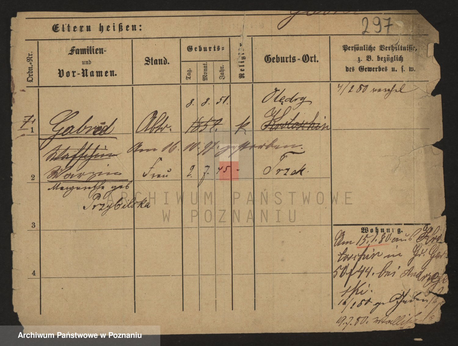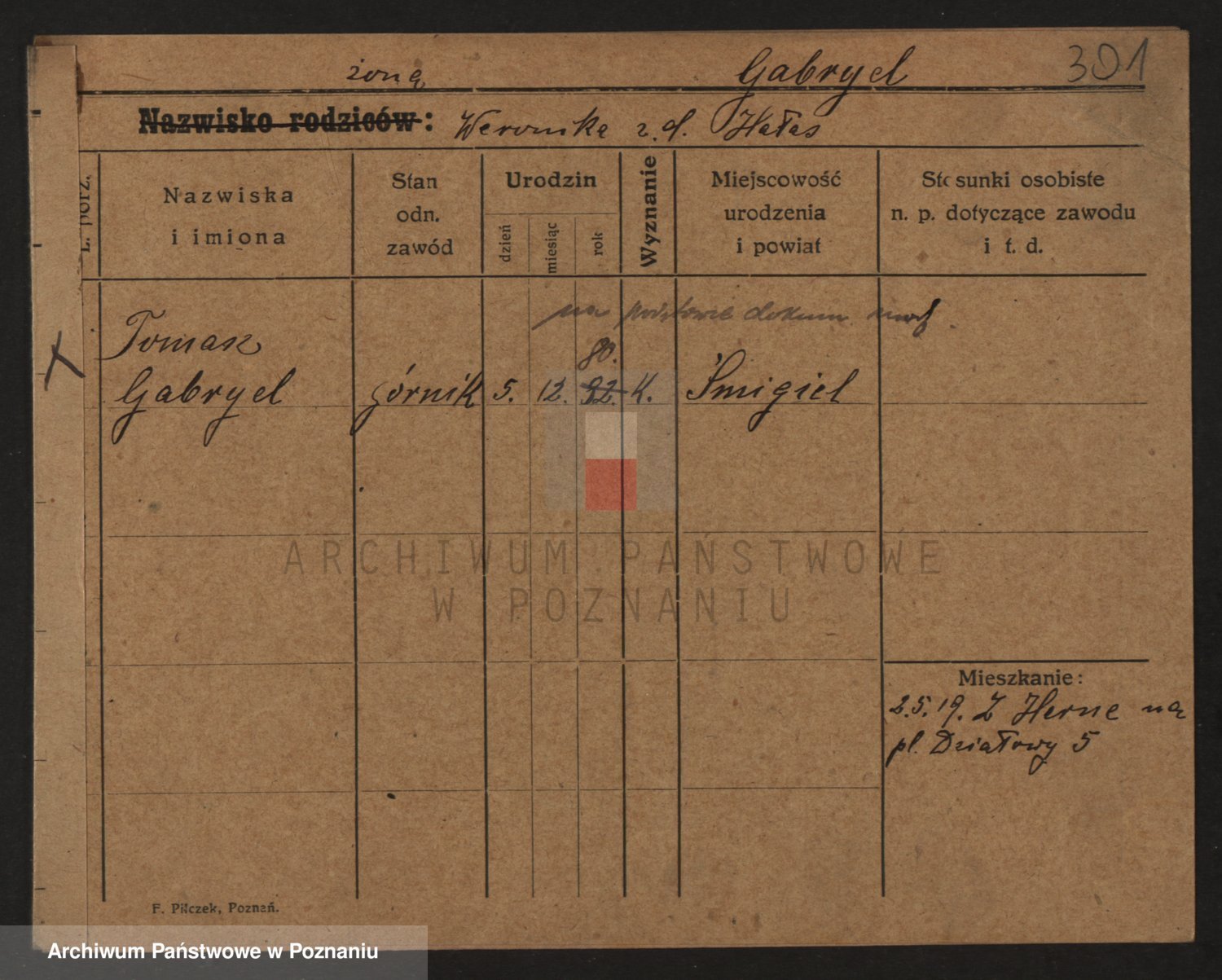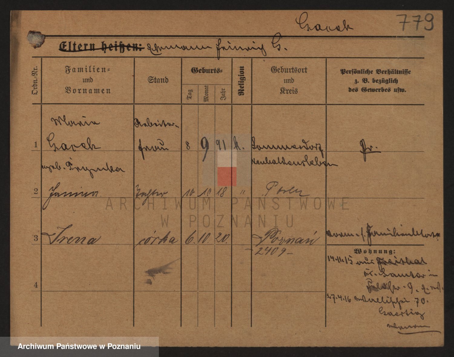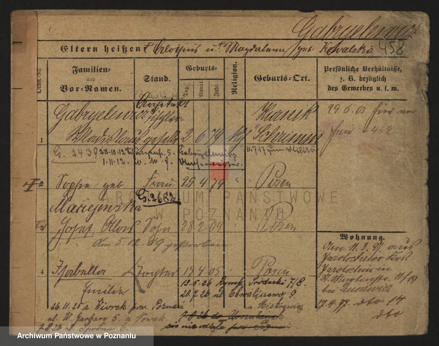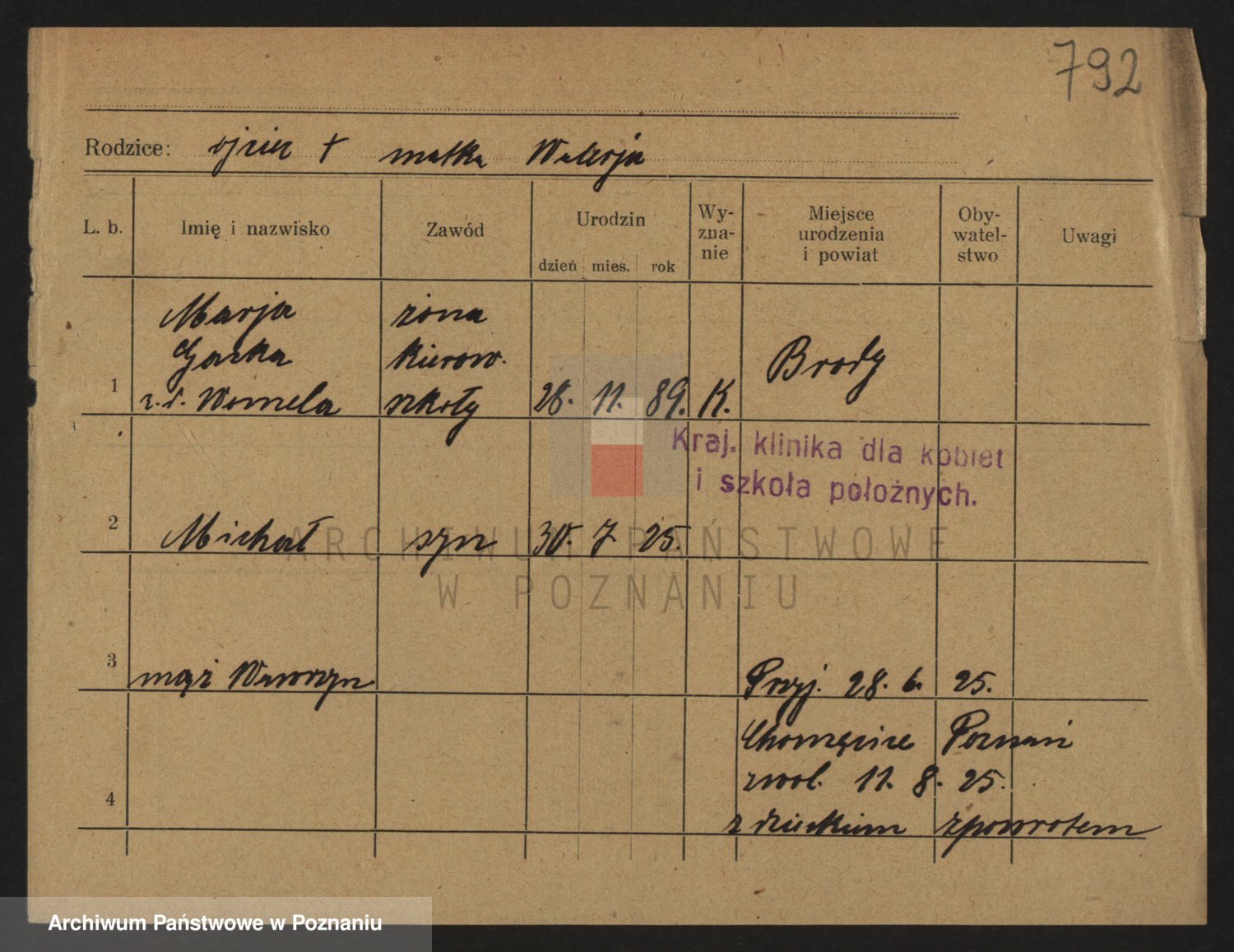 Podgląd karty osobowej dostępny jest po kliknięciu na nazwisko lub ikonkę karty. Można dokonywać powiększenia (ikony na górze) lub przechodzić między kolejnymi skanami (strzałki po bokach).