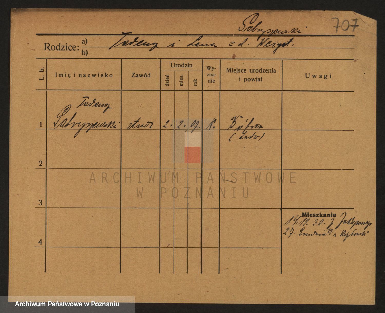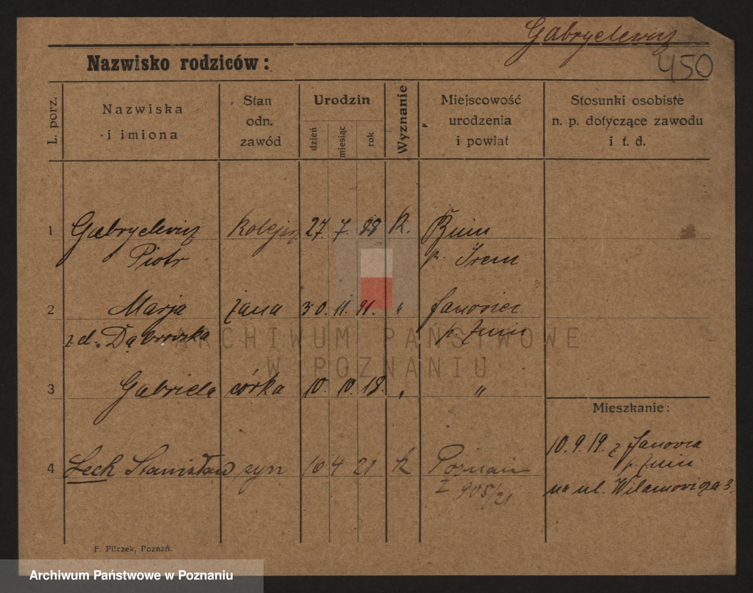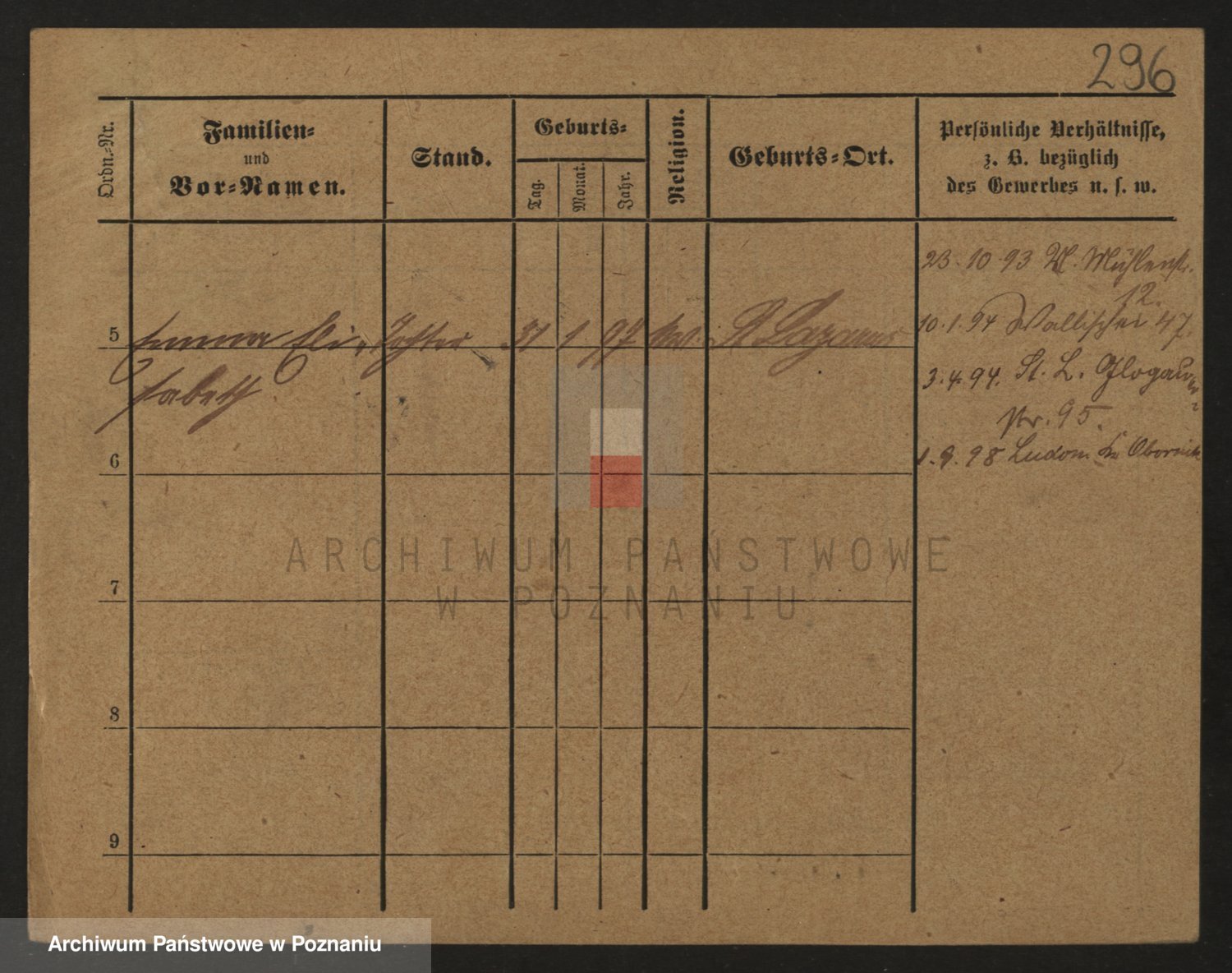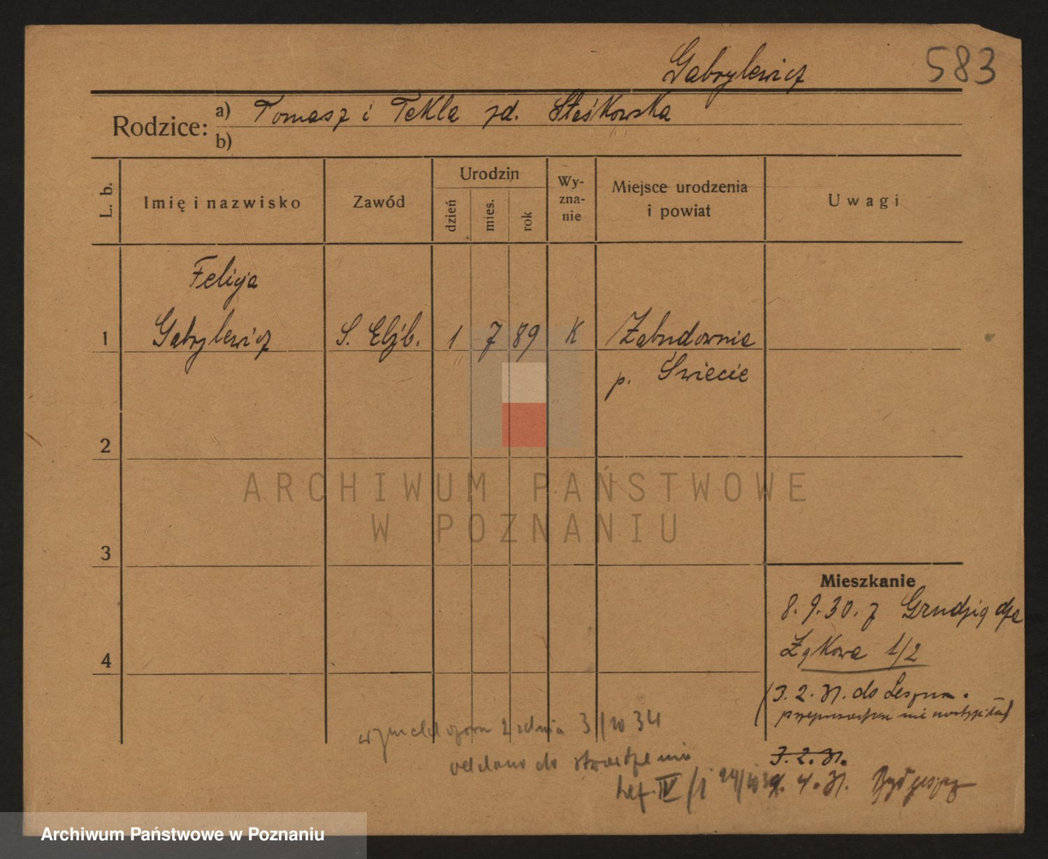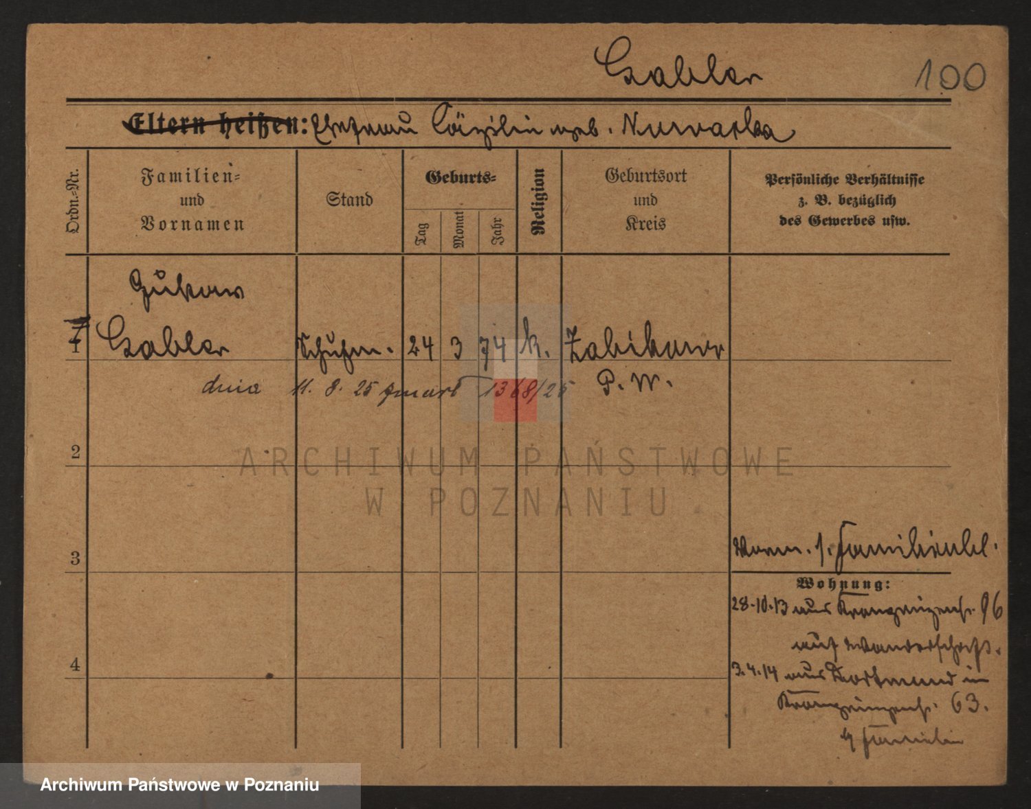 Podgląd karty osobowej dostępny jest po kliknięciu na nazwisko lub ikonkę karty. Można dokonywać powiększenia (ikony na górze) lub przechodzić między kolejnymi skanami (strzałki po bokach).
