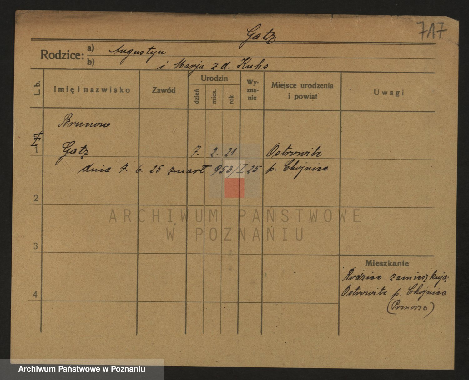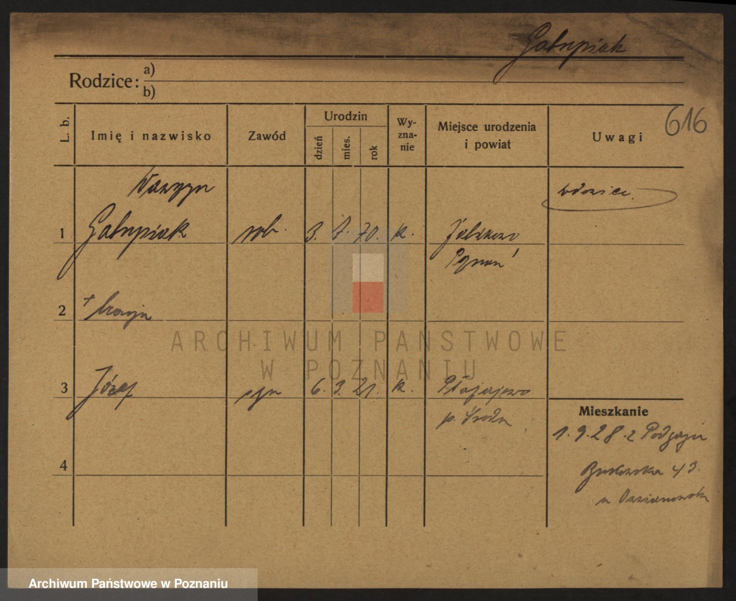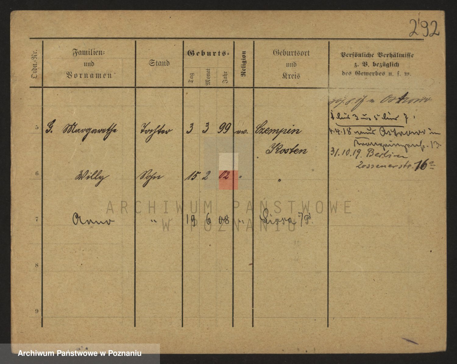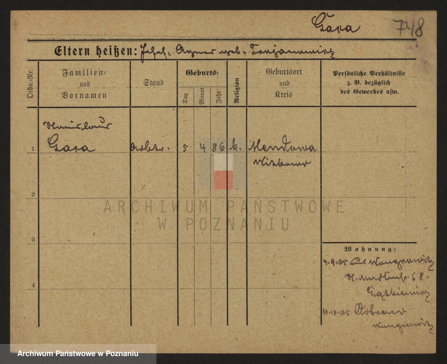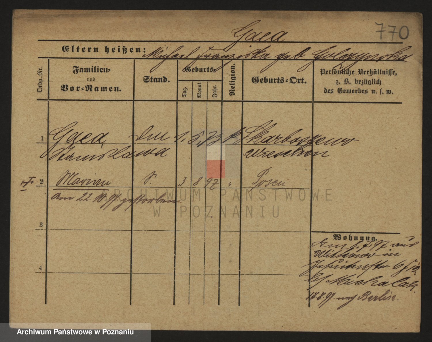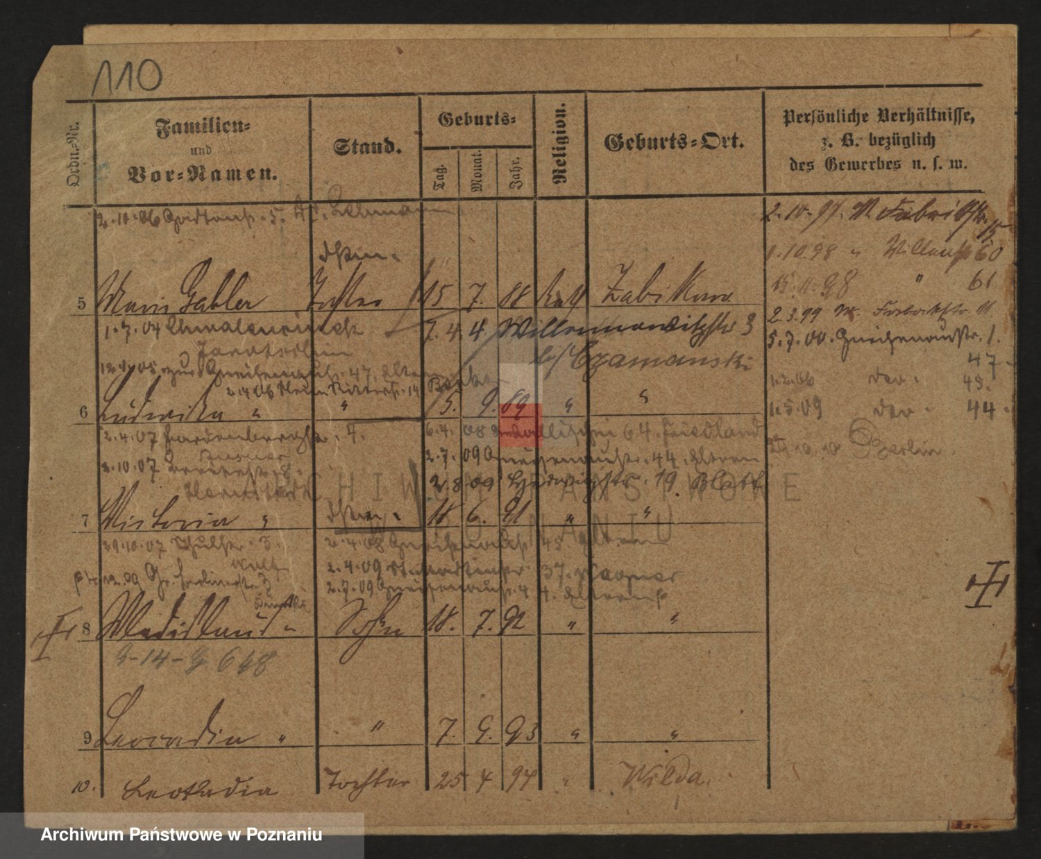 Podgląd karty osobowej dostępny jest po kliknięciu na nazwisko lub ikonkę karty. Można dokonywać powiększenia (ikony na górze) lub przechodzić między kolejnymi skanami (strzałki po bokach).