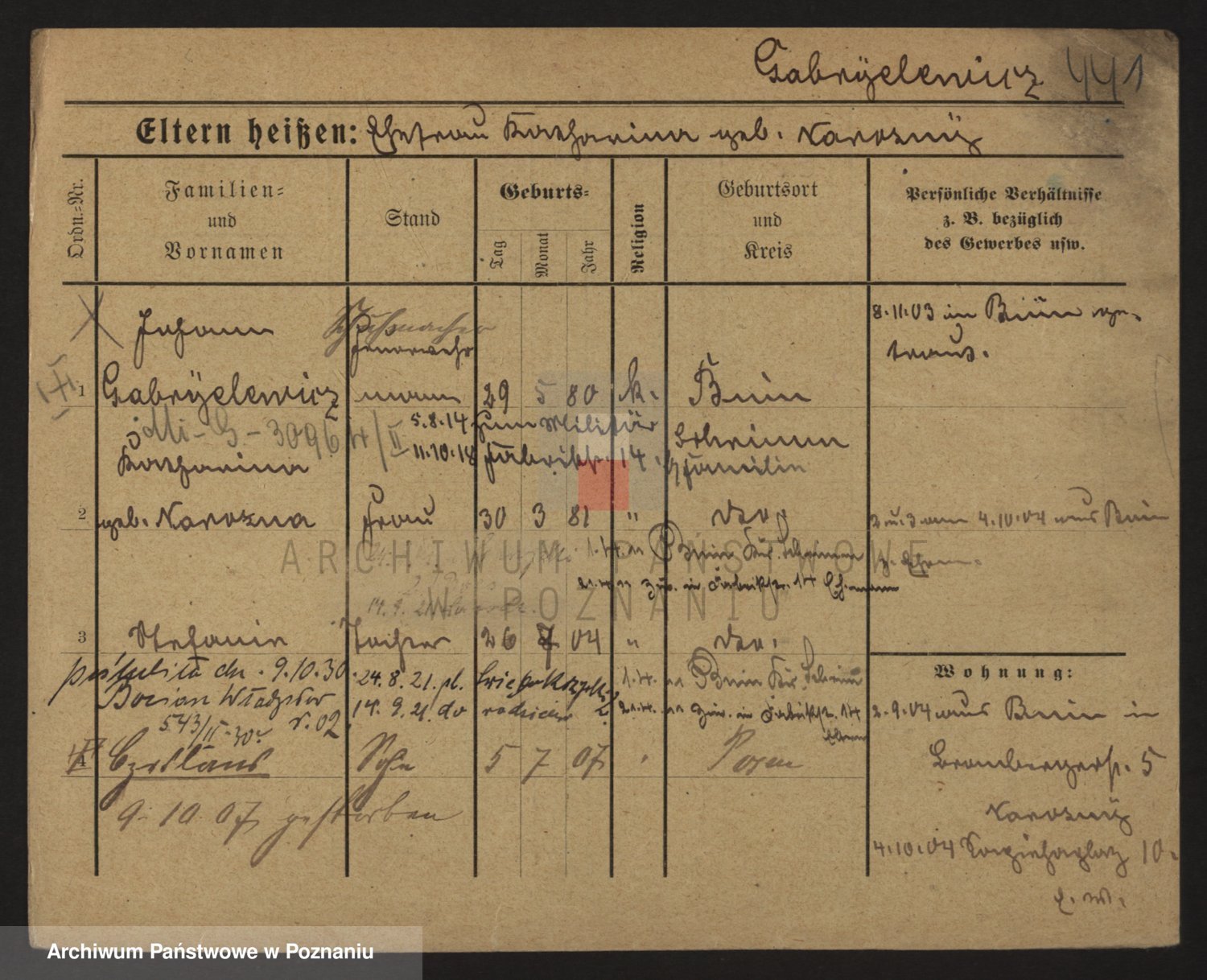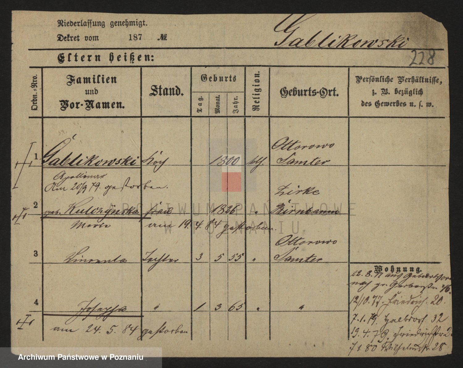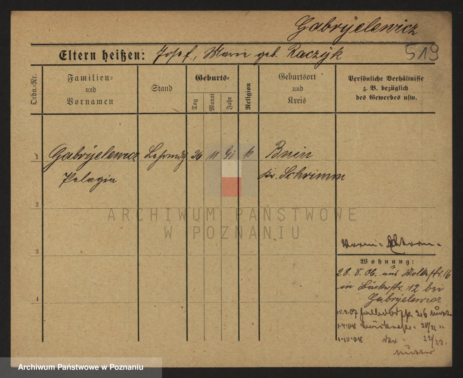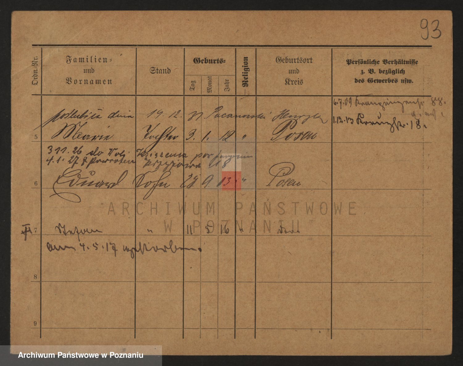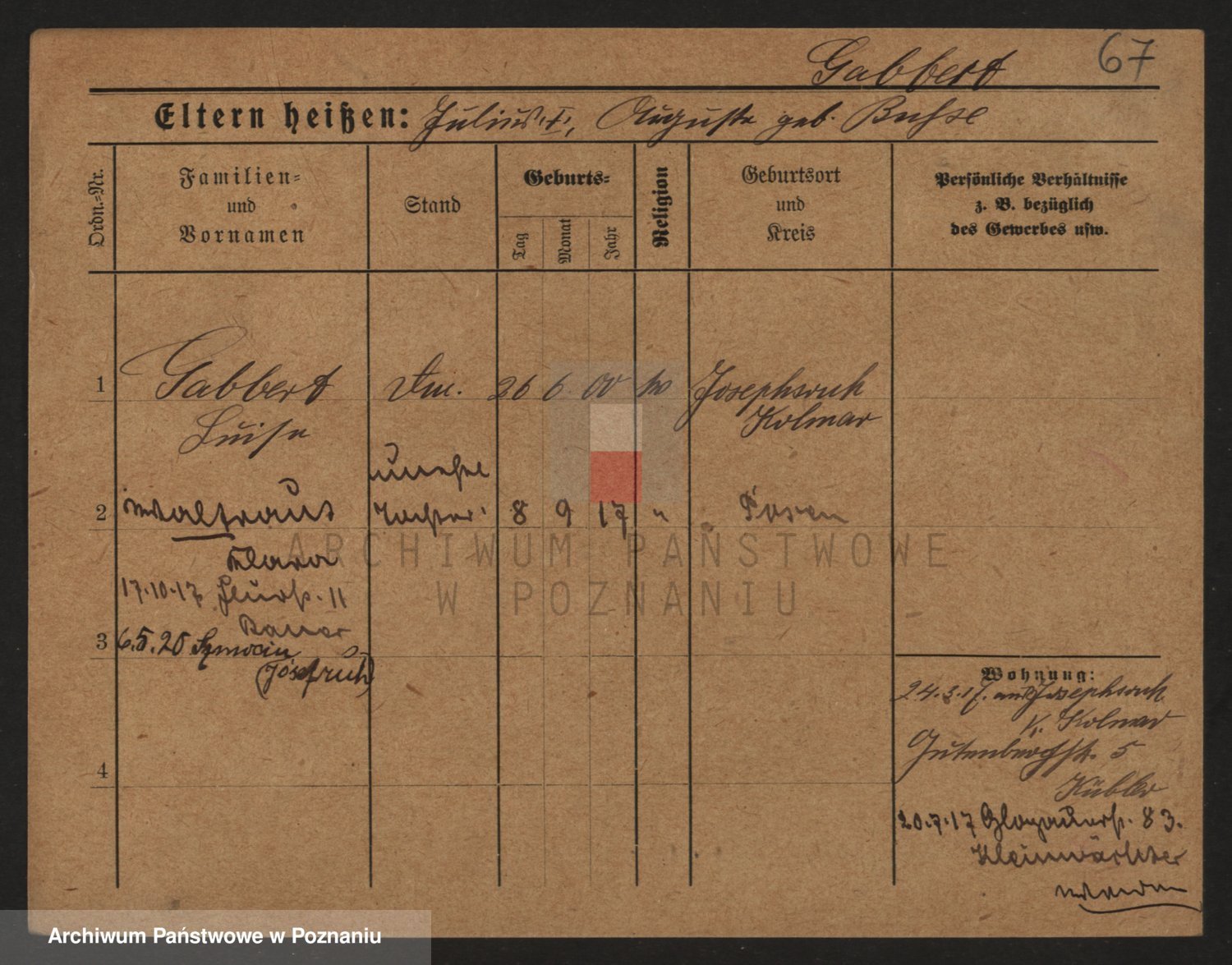 Podgląd karty osobowej dostępny jest po kliknięciu na nazwisko lub ikonkę karty. Można dokonywać powiększenia (ikony na górze) lub przechodzić między kolejnymi skanami (strzałki po bokach).