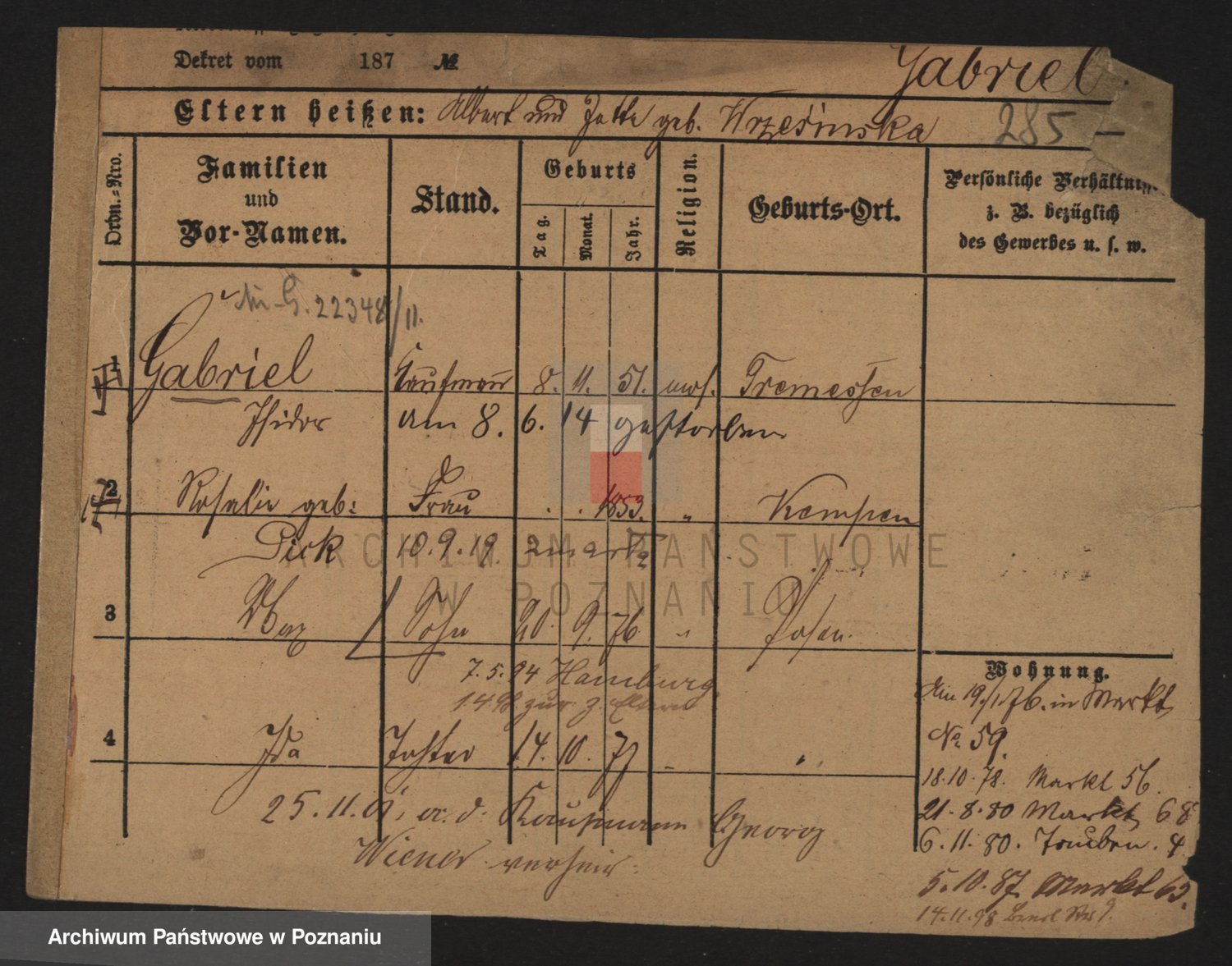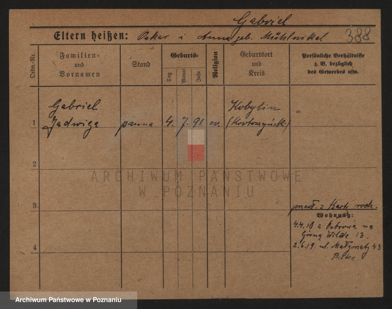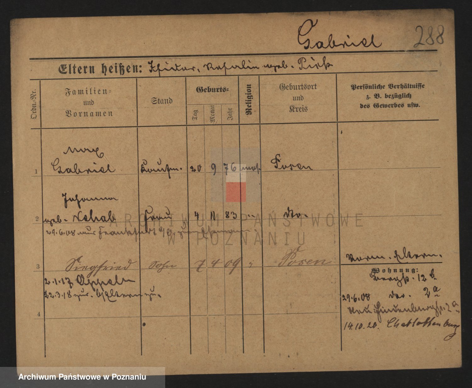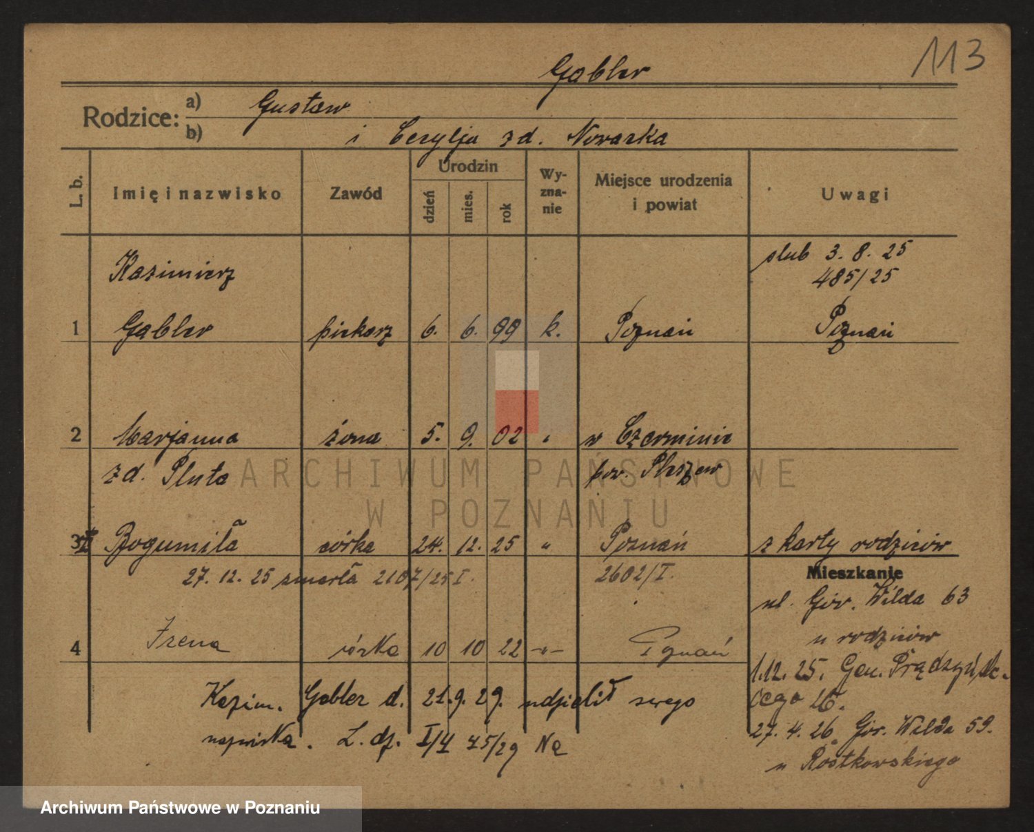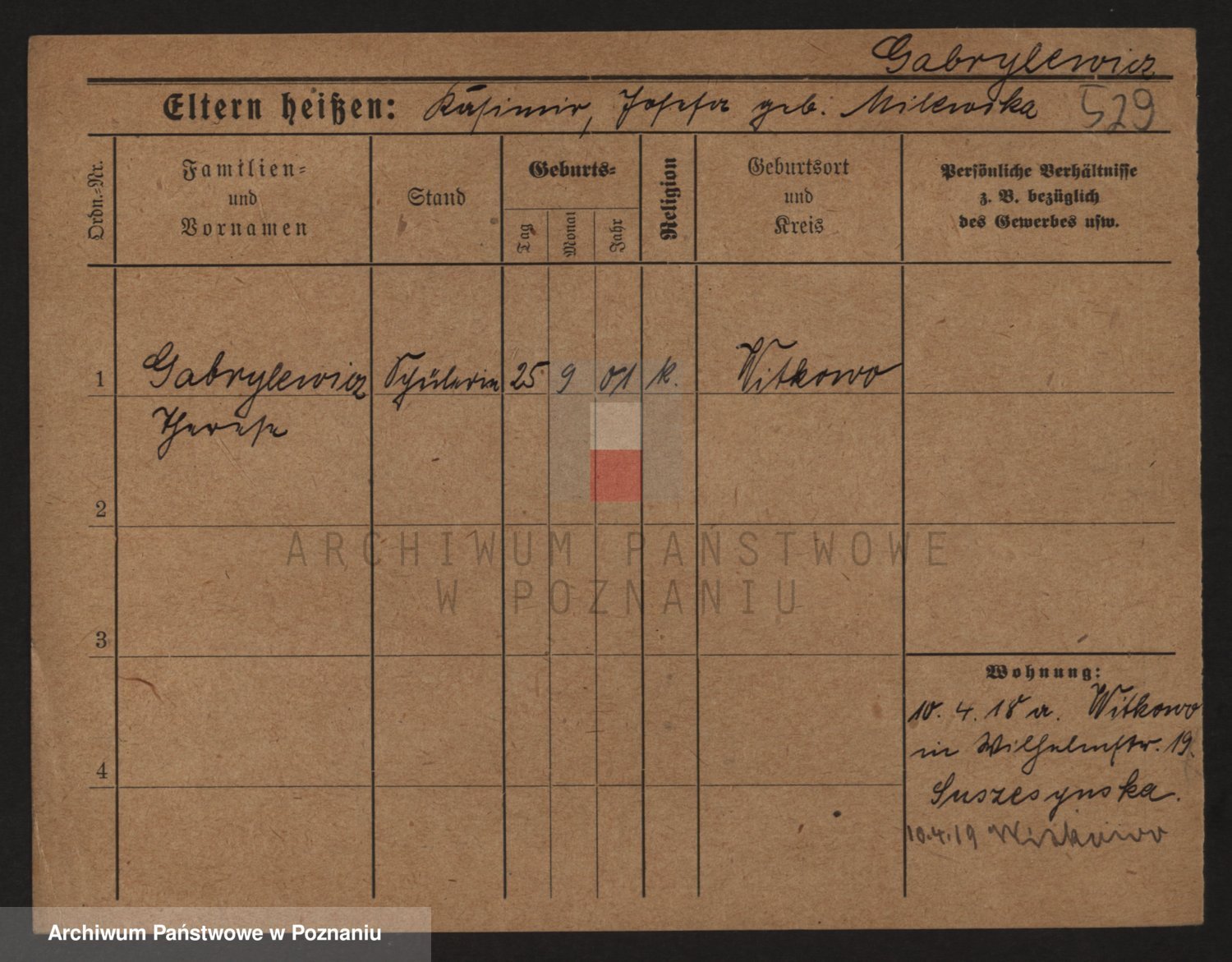 Podgląd karty osobowej dostępny jest po kliknięciu na nazwisko lub ikonkę karty. Można dokonywać powiększenia (ikony na górze) lub przechodzić między kolejnymi skanami (strzałki po bokach).
