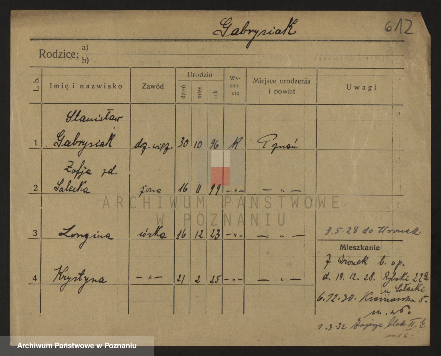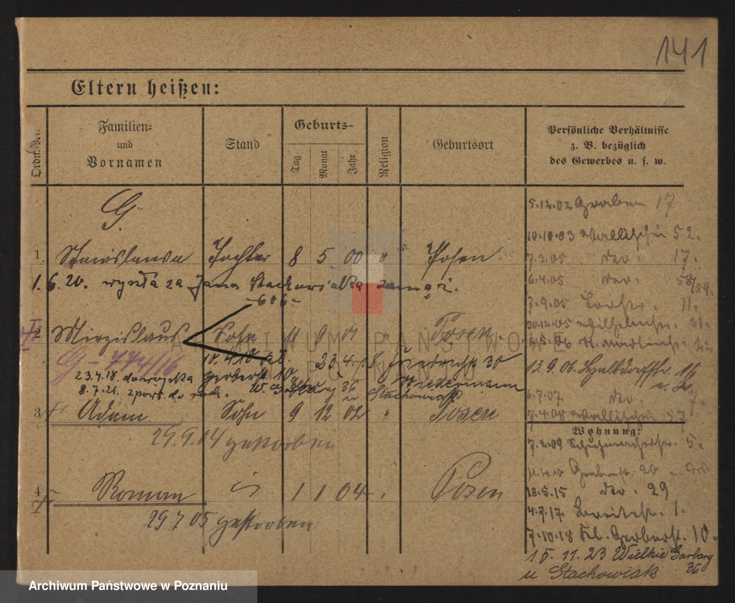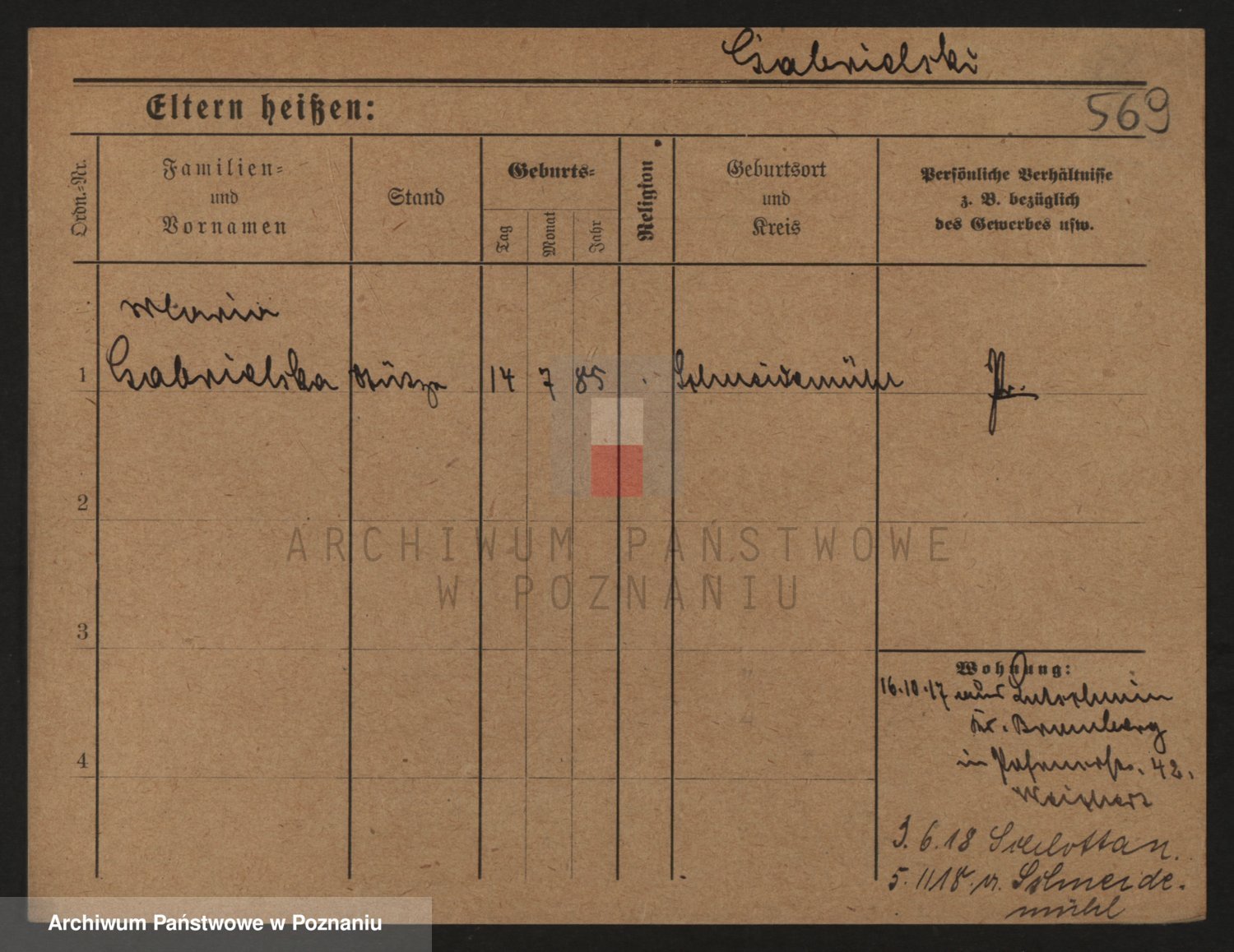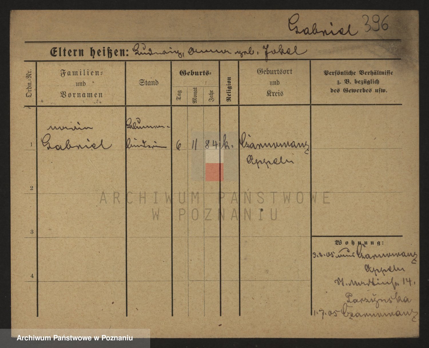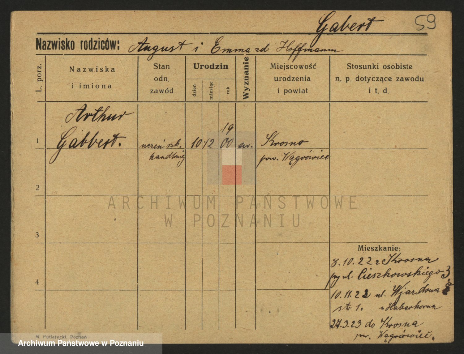 Podgląd karty osobowej dostępny jest po kliknięciu na nazwisko lub ikonkę karty. Można dokonywać powiększenia (ikony na górze) lub przechodzić między kolejnymi skanami (strzałki po bokach).