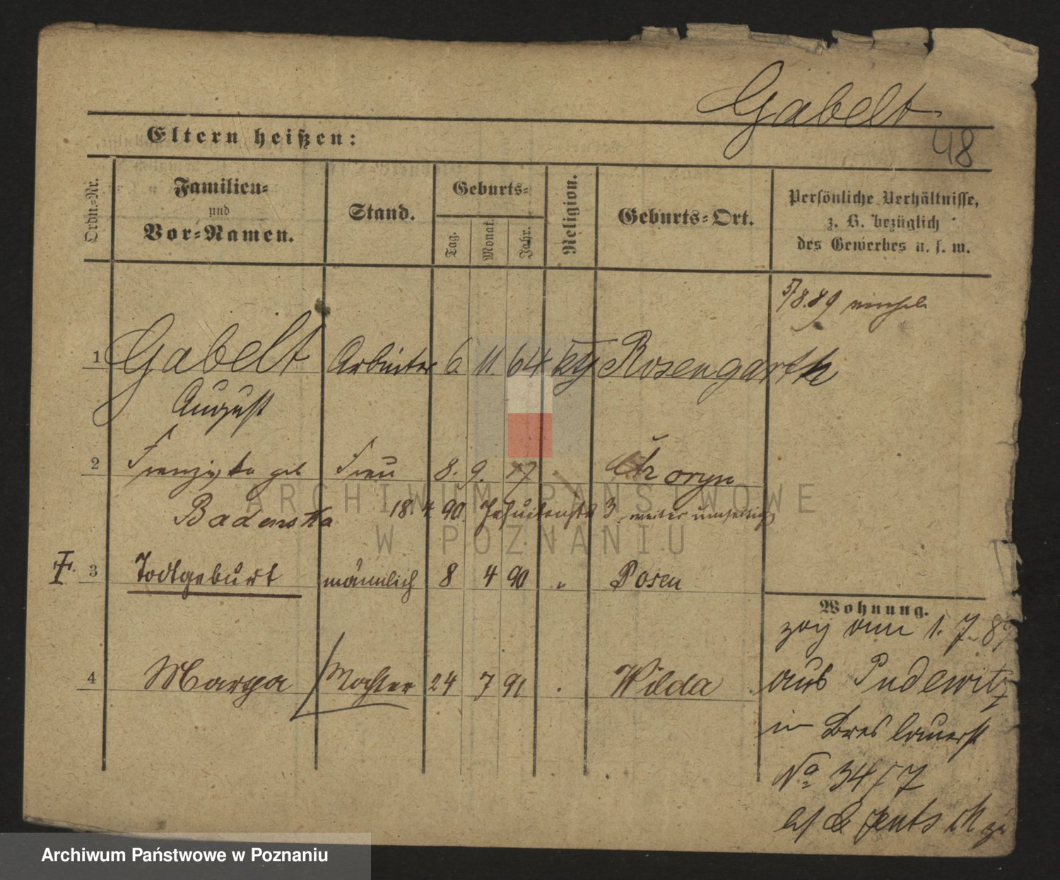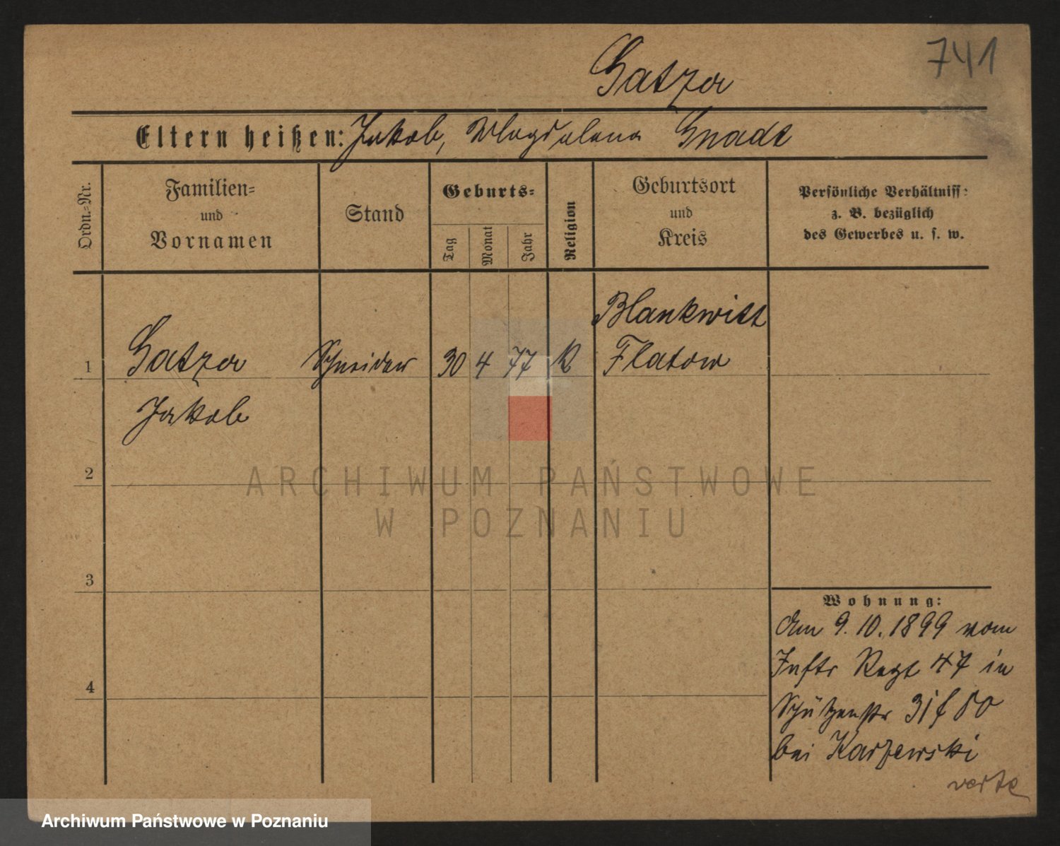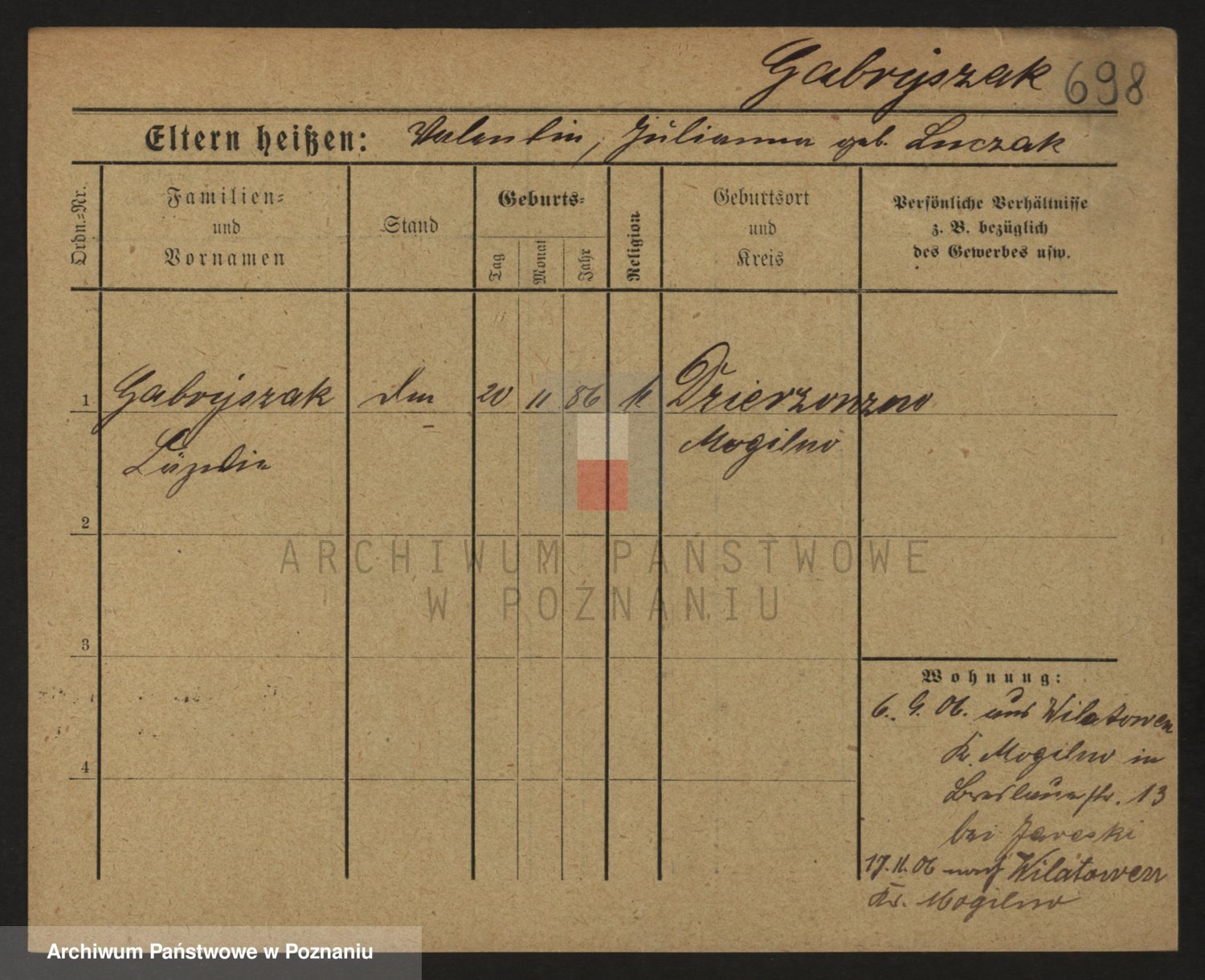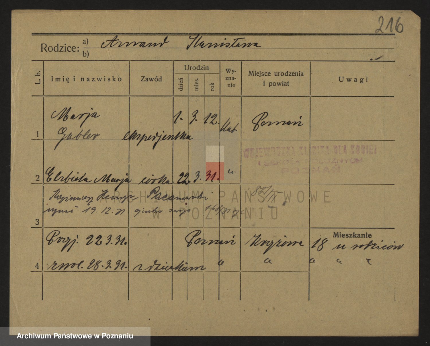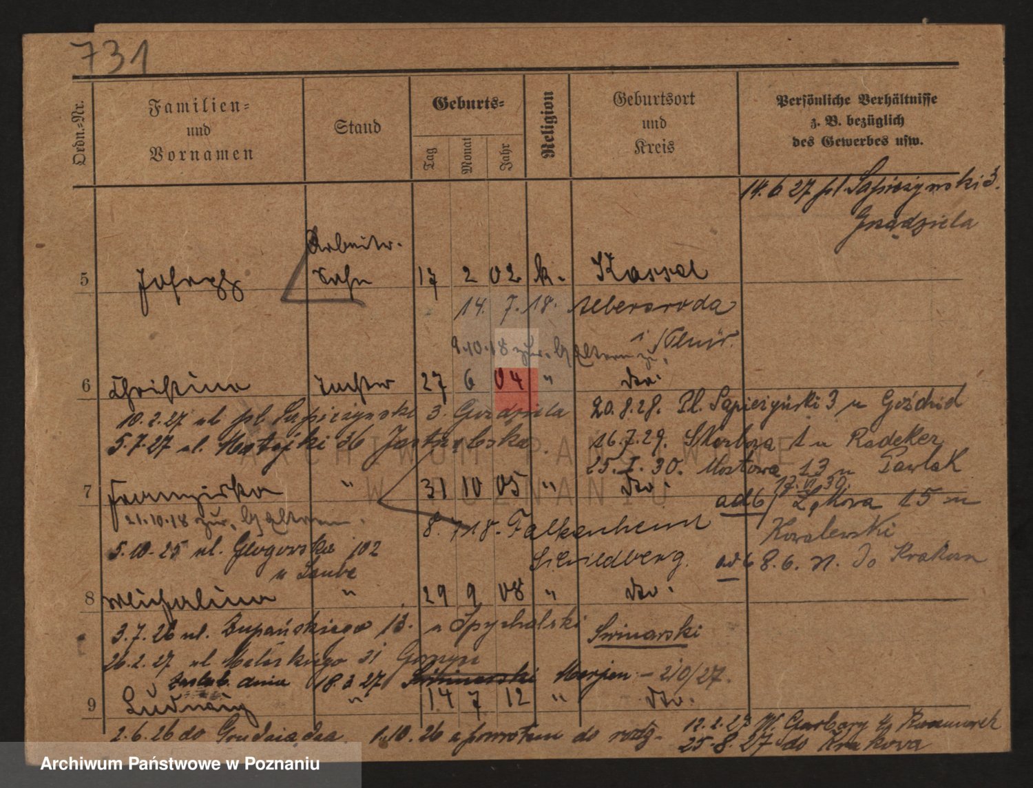 Podgląd karty osobowej dostępny jest po kliknięciu na nazwisko lub ikonkę karty. Można dokonywać powiększenia (ikony na górze) lub przechodzić między kolejnymi skanami (strzałki po bokach).