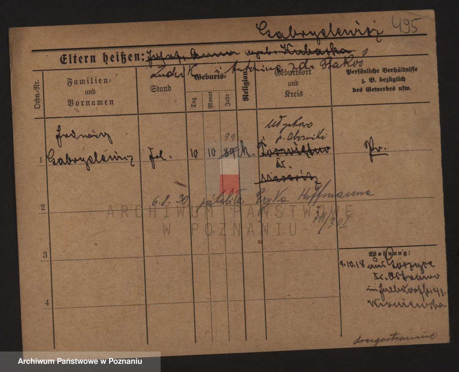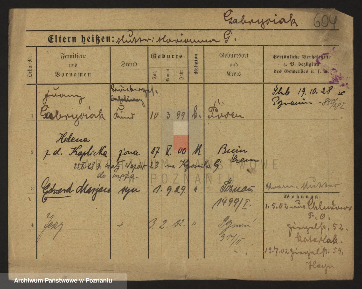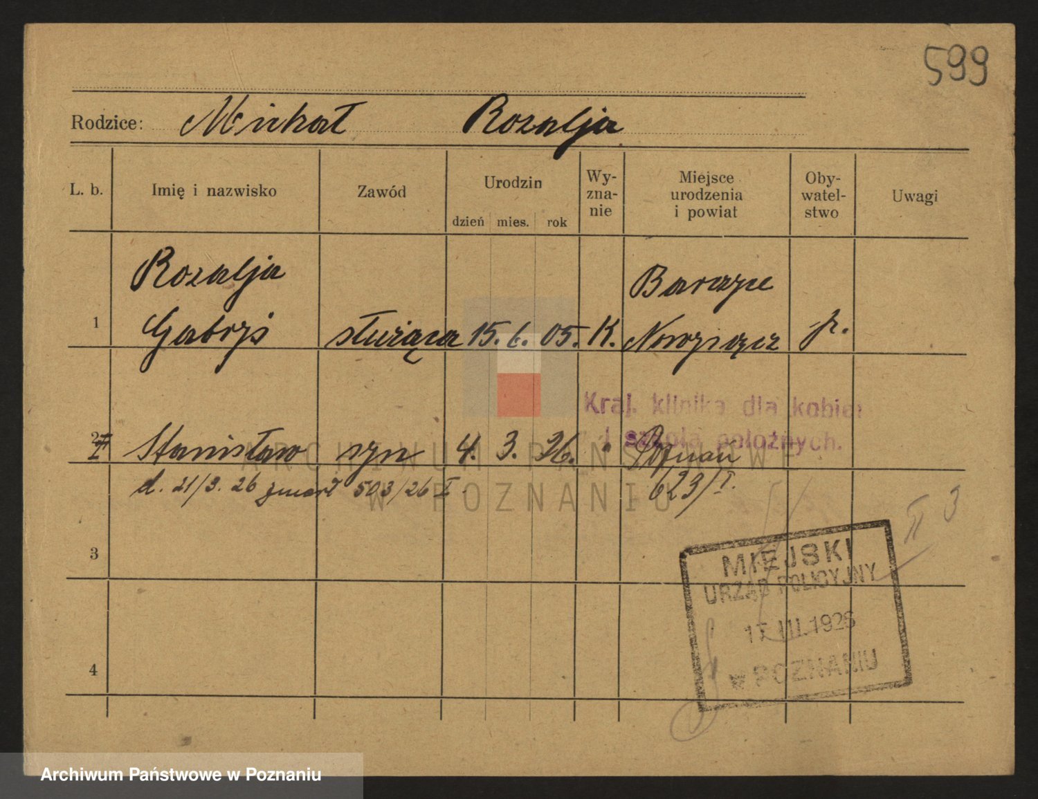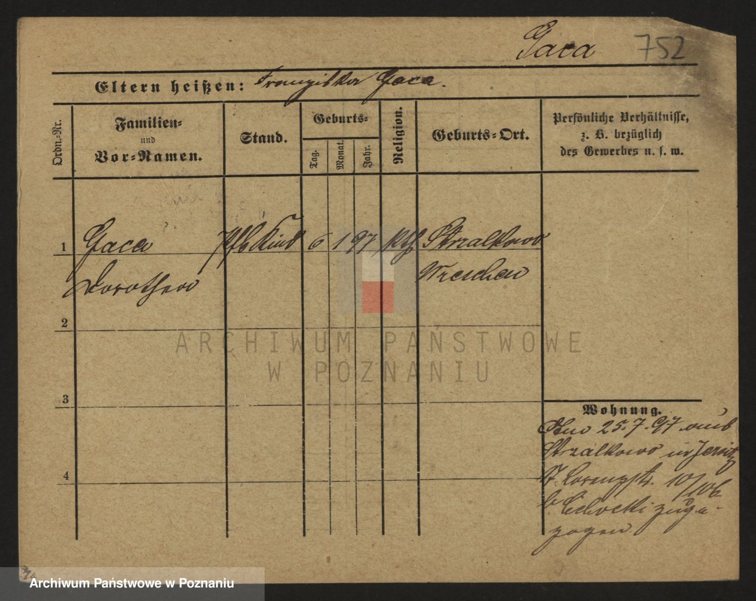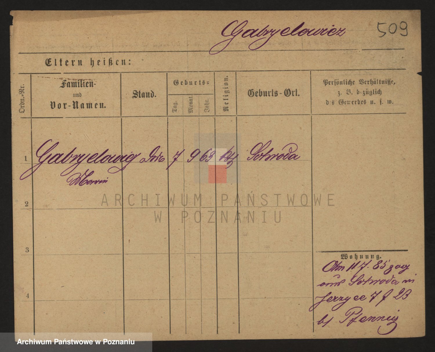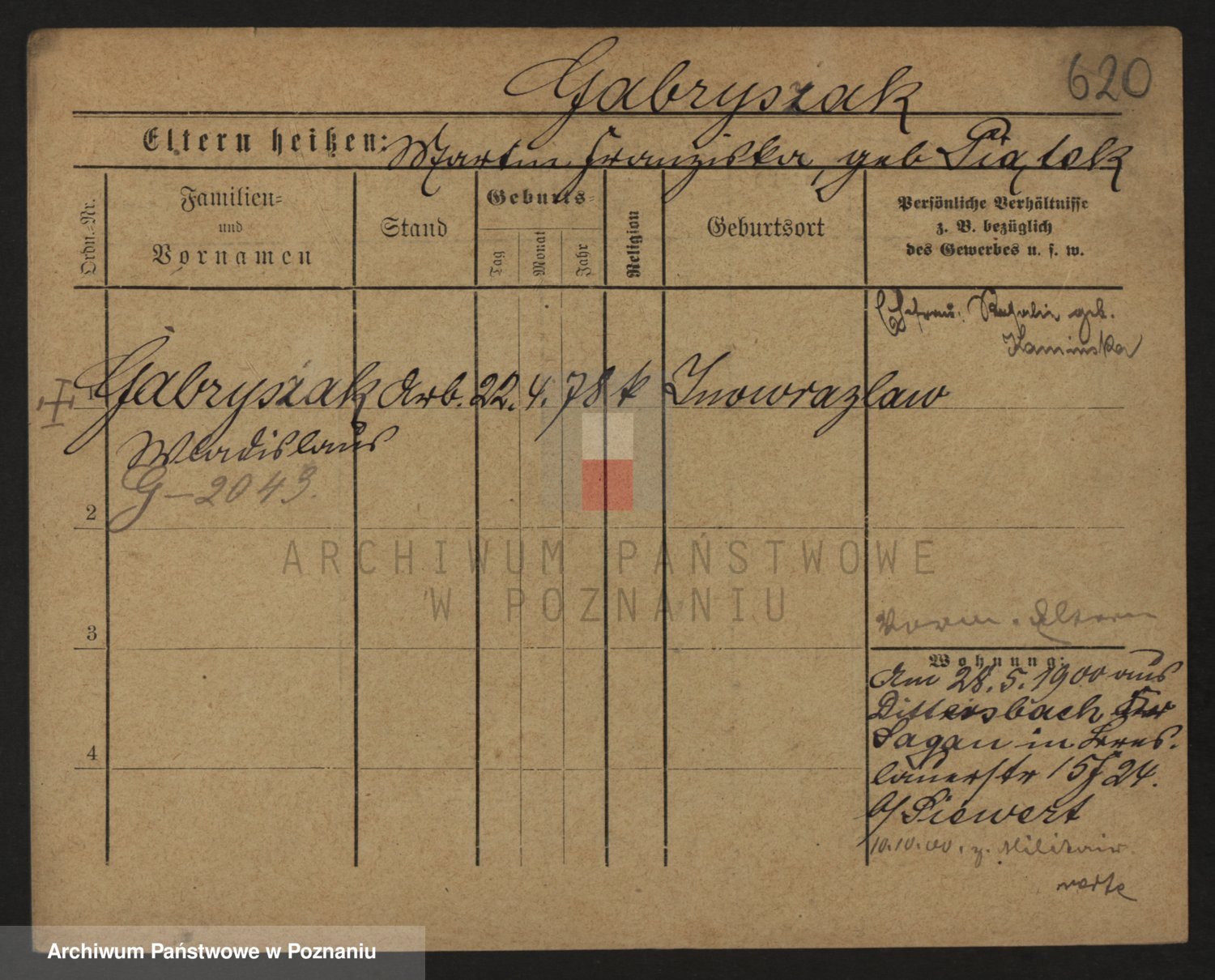 Podgląd karty osobowej dostępny jest po kliknięciu na nazwisko lub ikonkę karty. Można dokonywać powiększenia (ikony na górze) lub przechodzić między kolejnymi skanami (strzałki po bokach).