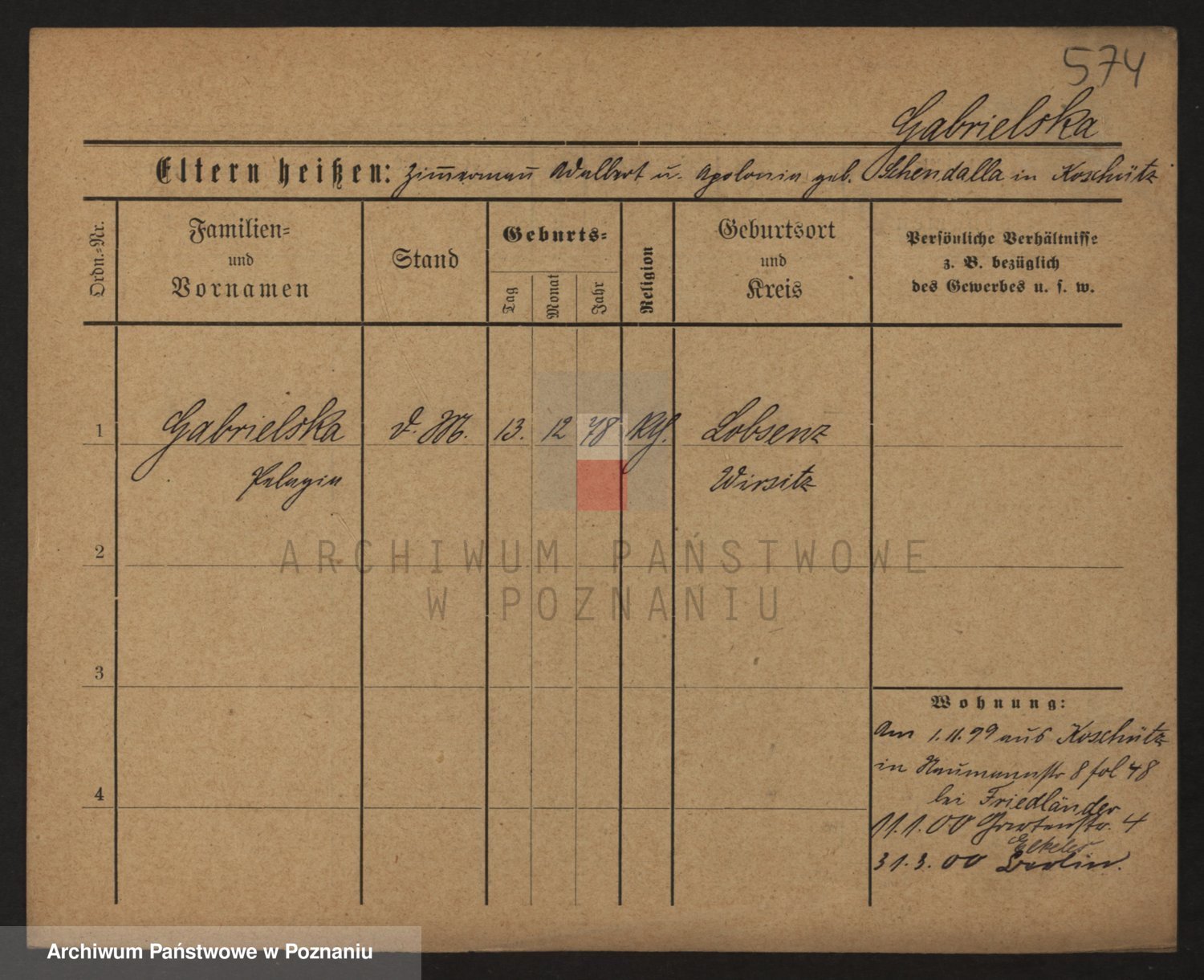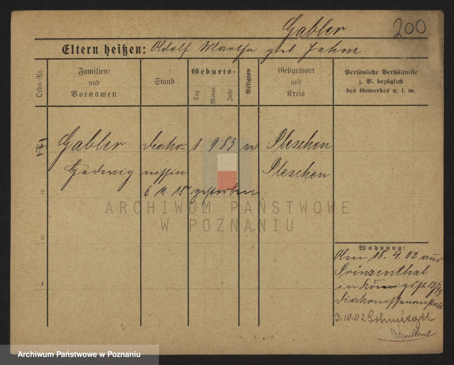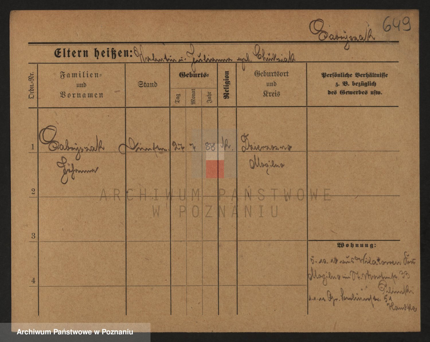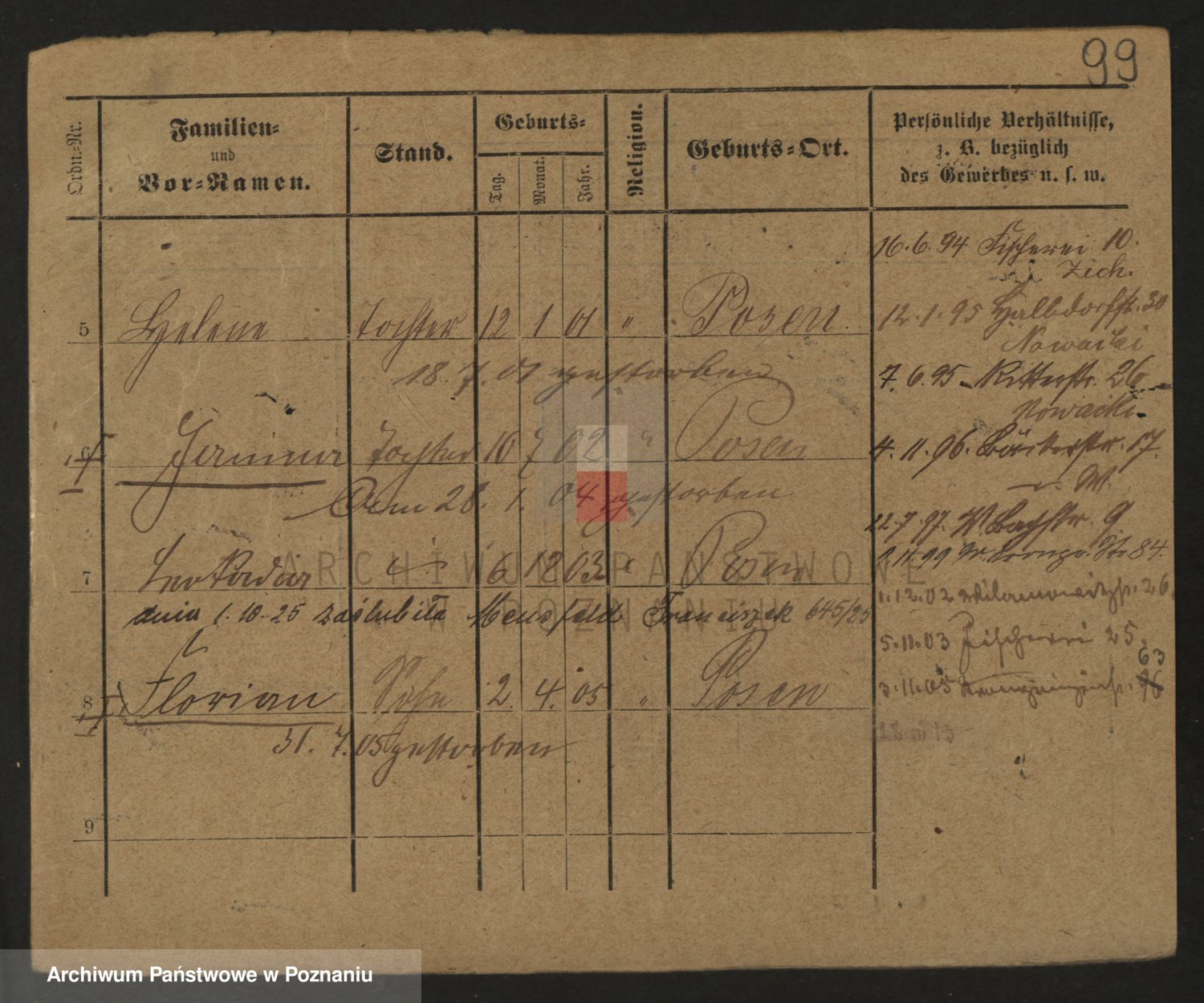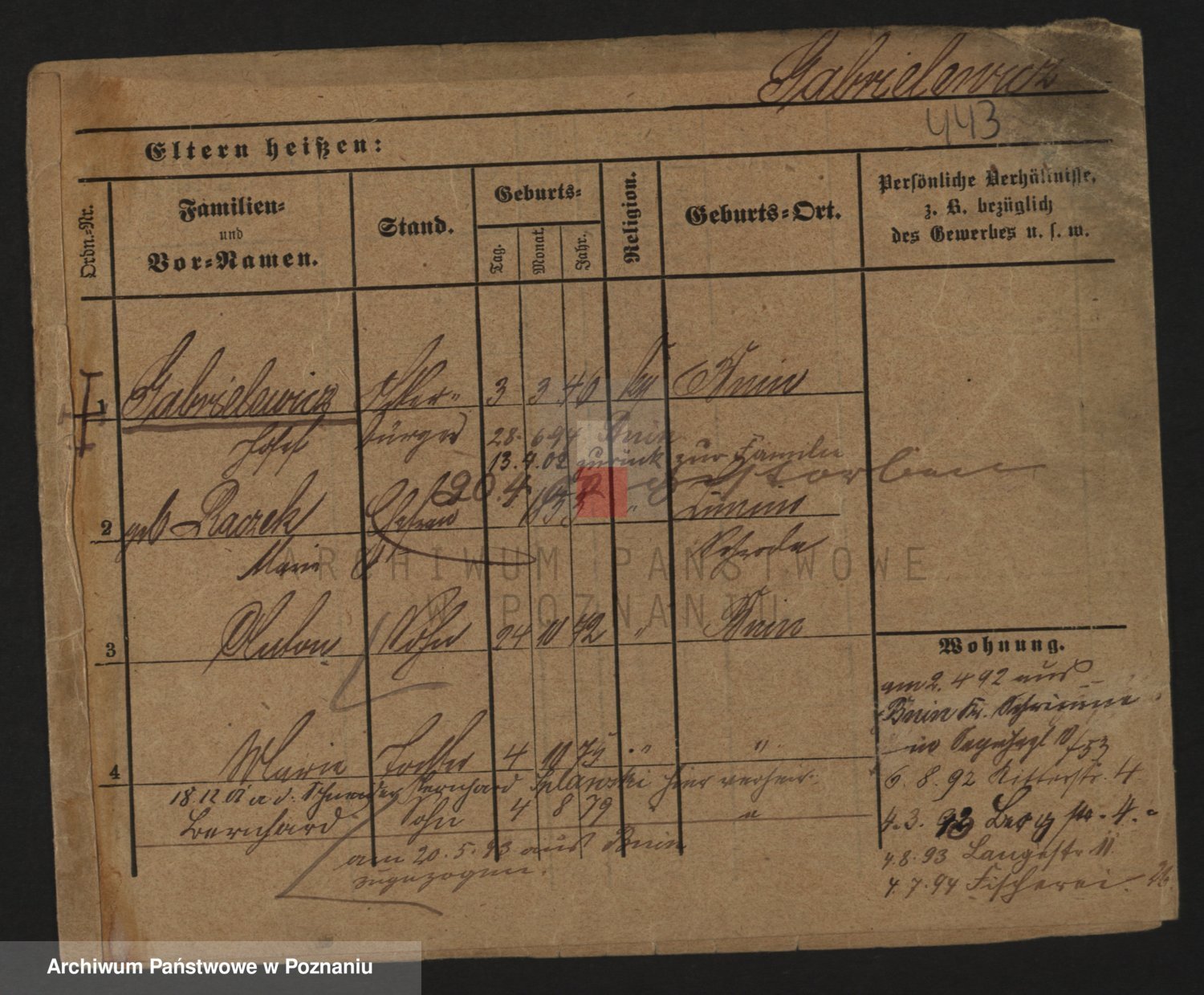 Podgląd karty osobowej dostępny jest po kliknięciu na nazwisko lub ikonkę karty. Można dokonywać powiększenia (ikony na górze) lub przechodzić między kolejnymi skanami (strzałki po bokach).