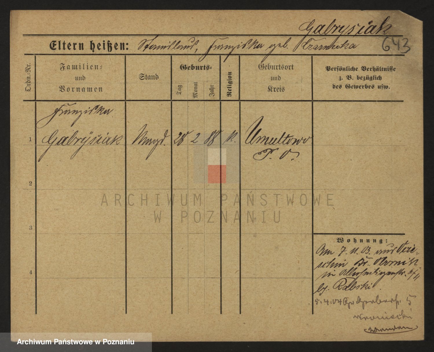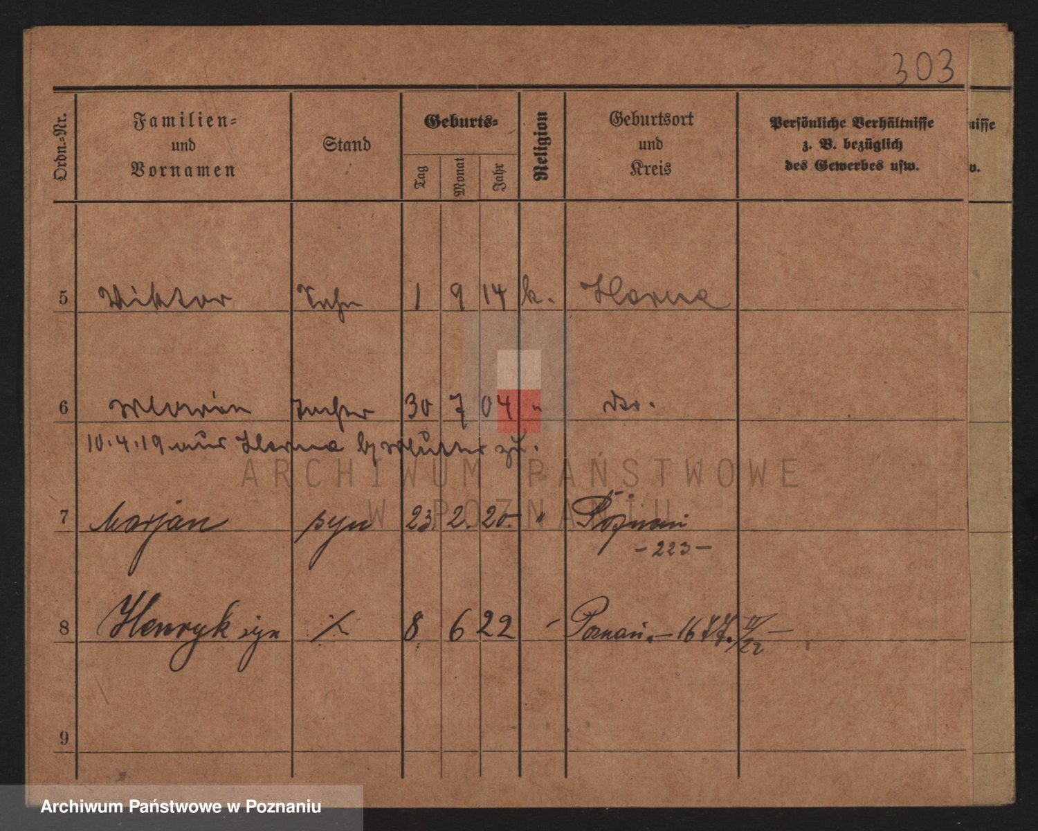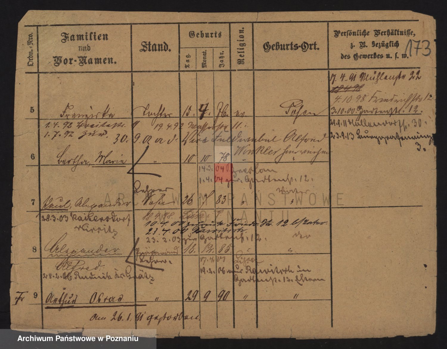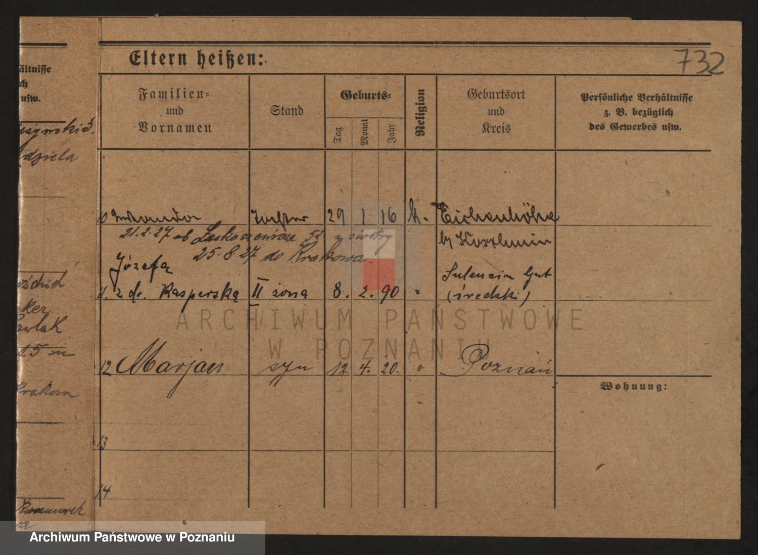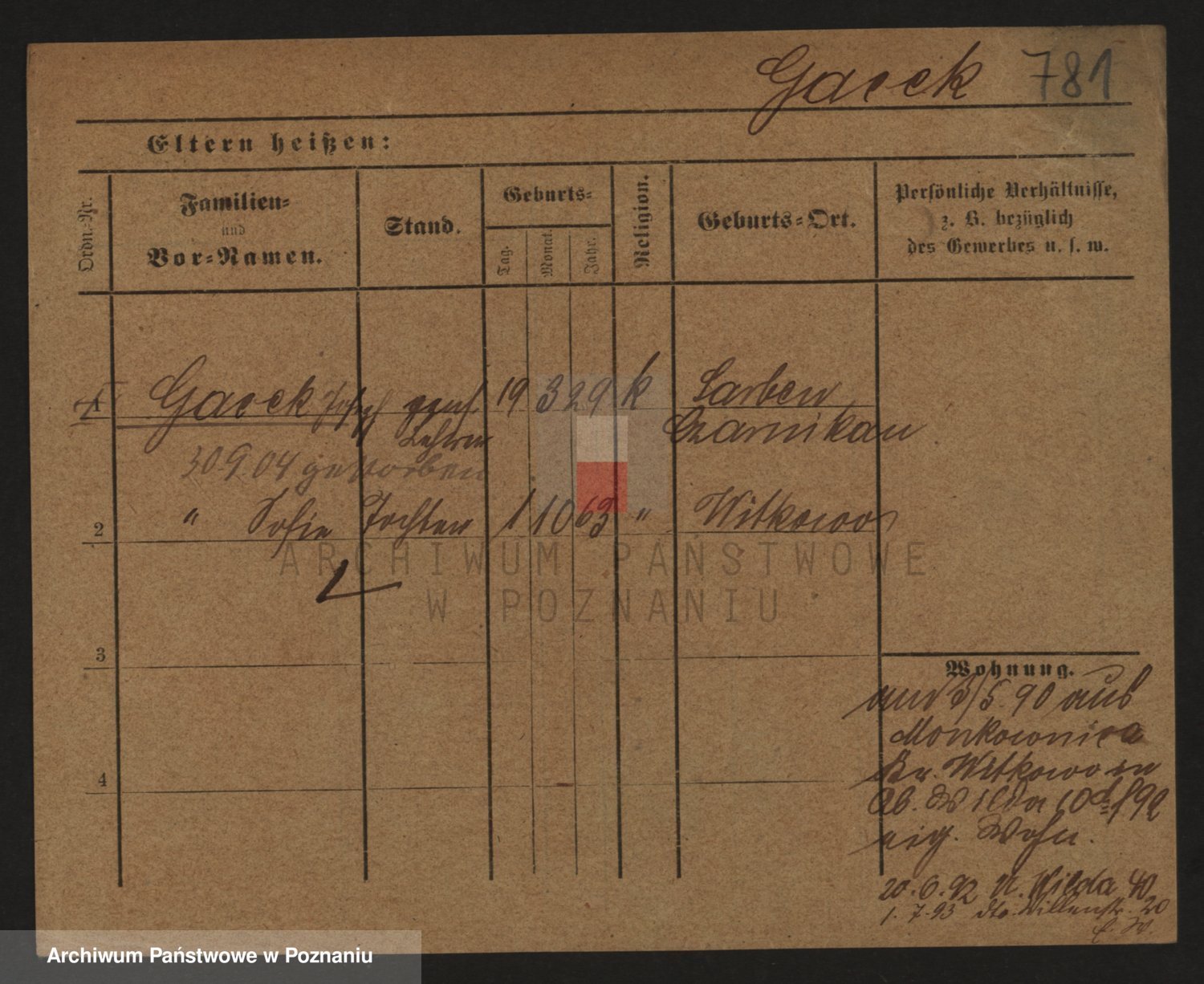 Podgląd karty osobowej dostępny jest po kliknięciu na nazwisko lub ikonkę karty. Można dokonywać powiększenia (ikony na górze) lub przechodzić między kolejnymi skanami (strzałki po bokach).