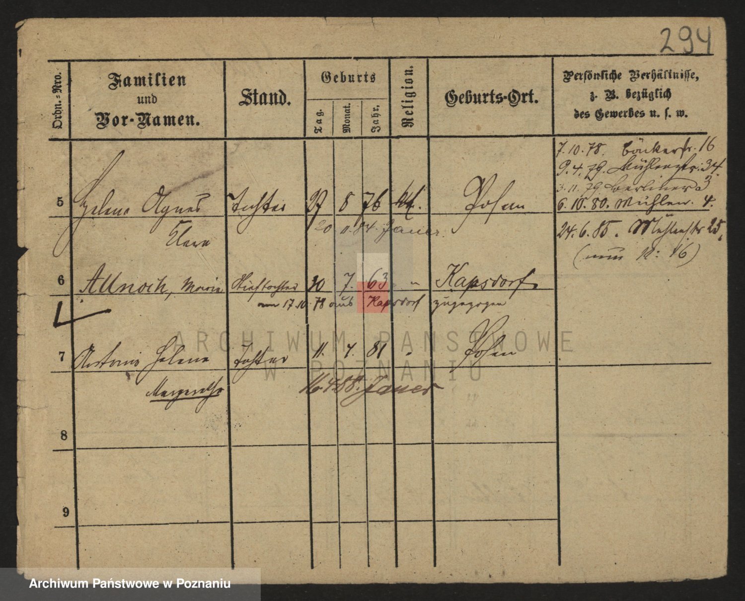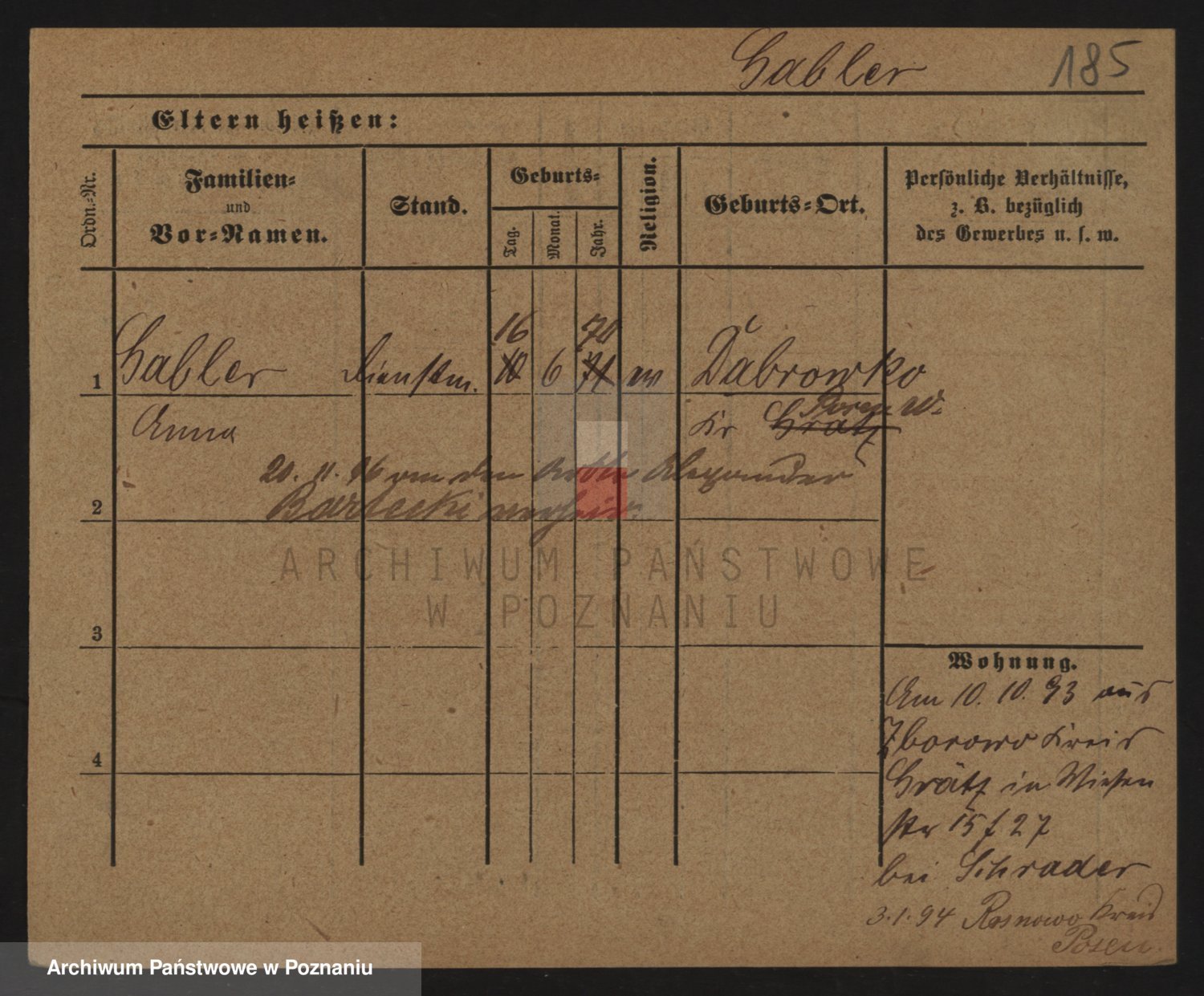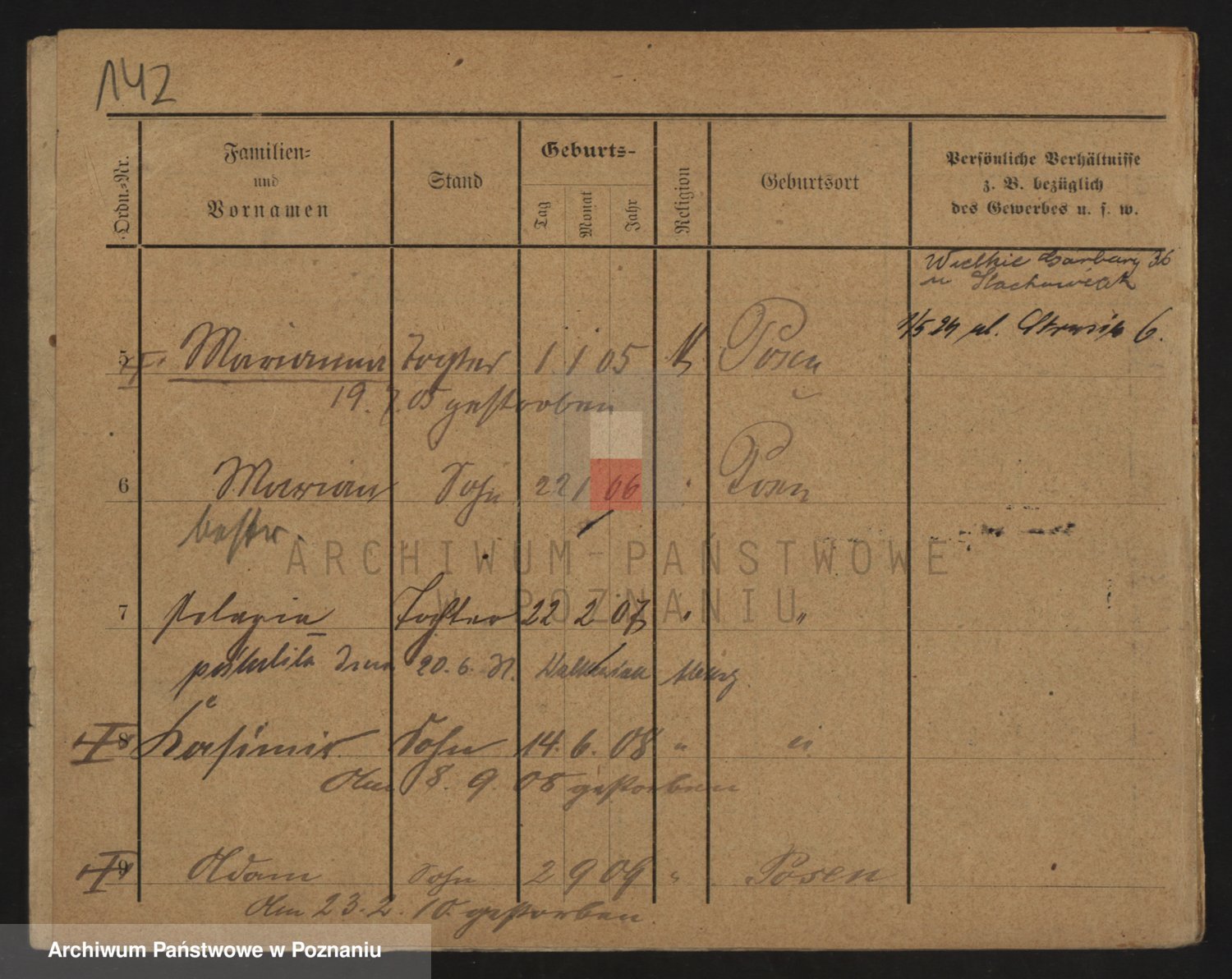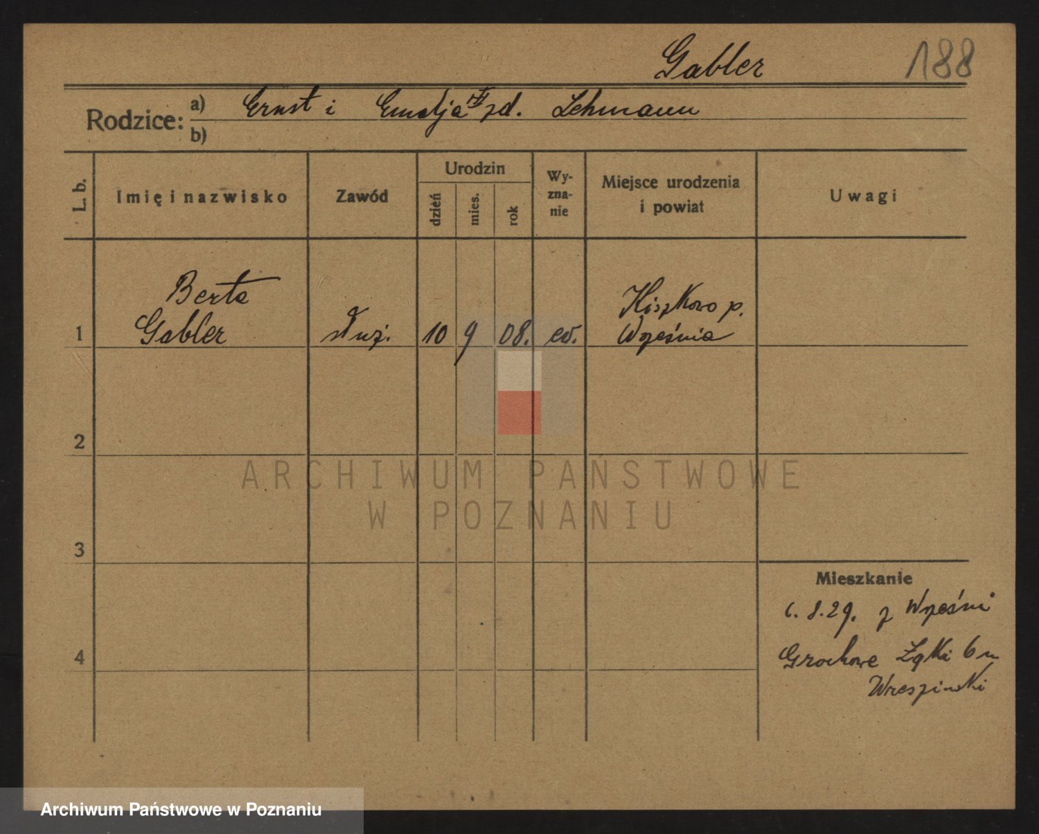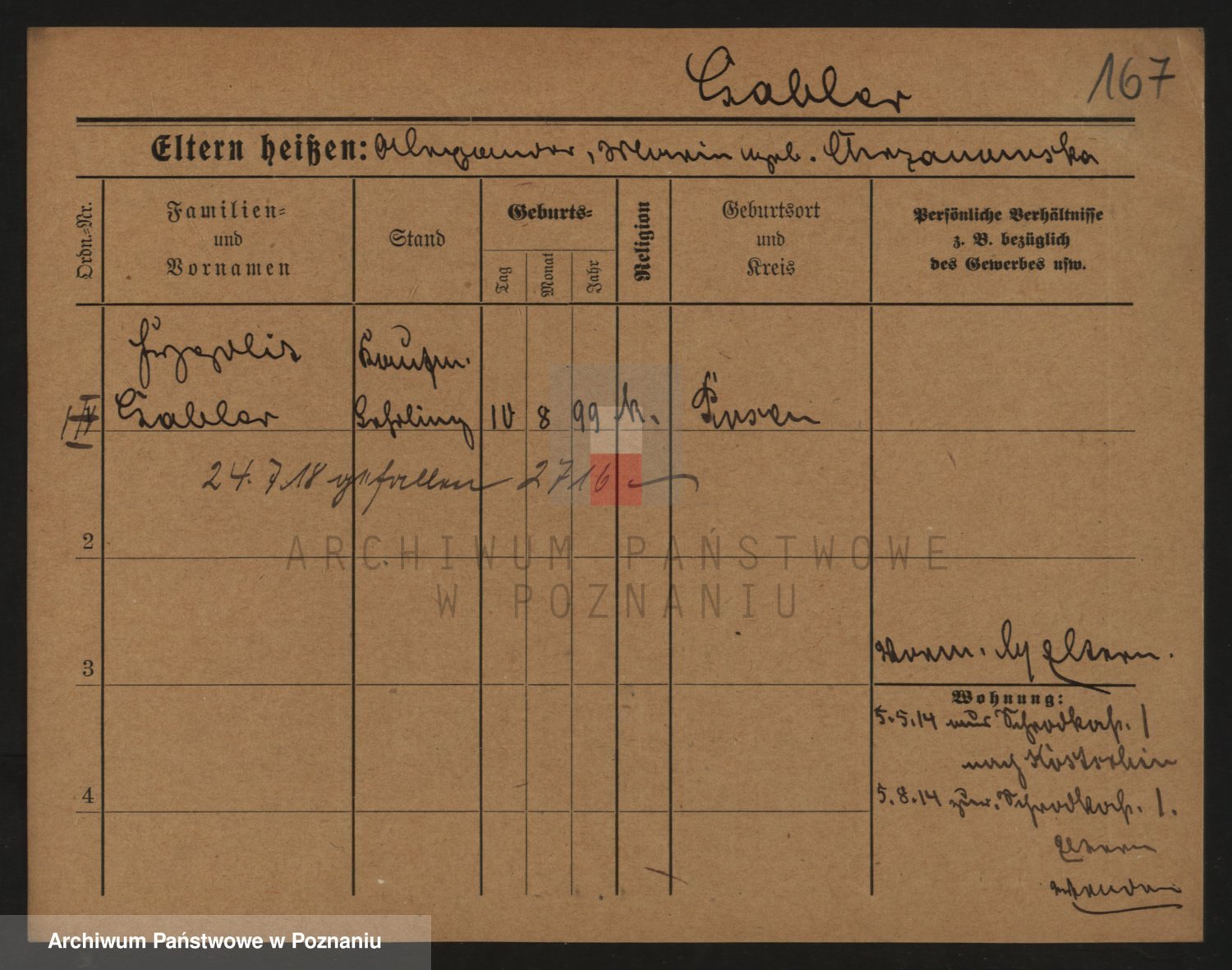 Podgląd karty osobowej dostępny jest po kliknięciu na nazwisko lub ikonkę karty. Można dokonywać powiększenia (ikony na górze) lub przechodzić między kolejnymi skanami (strzałki po bokach).
