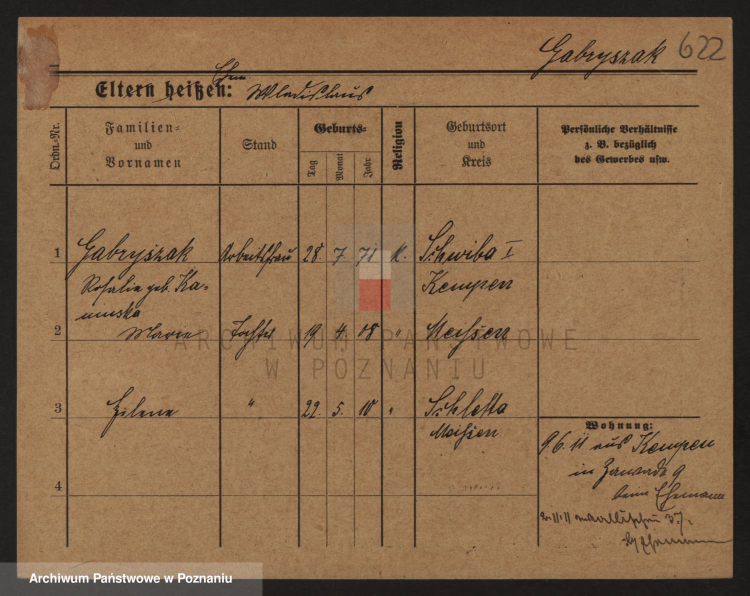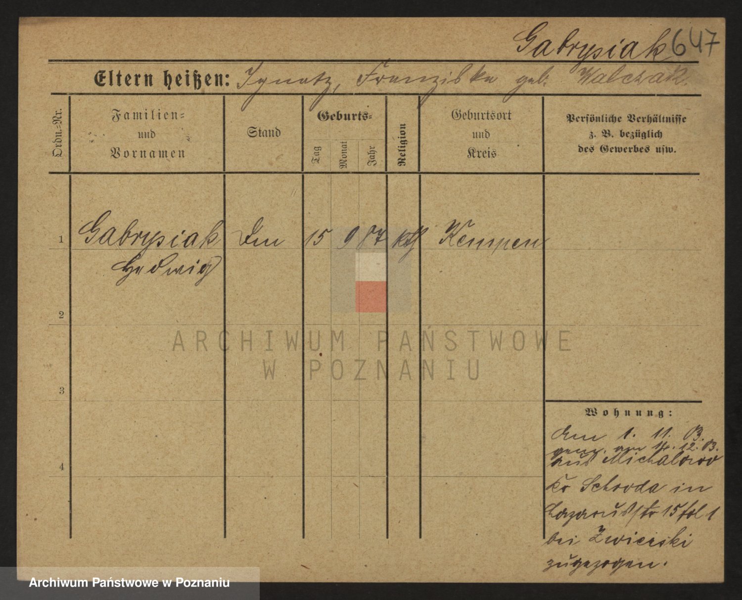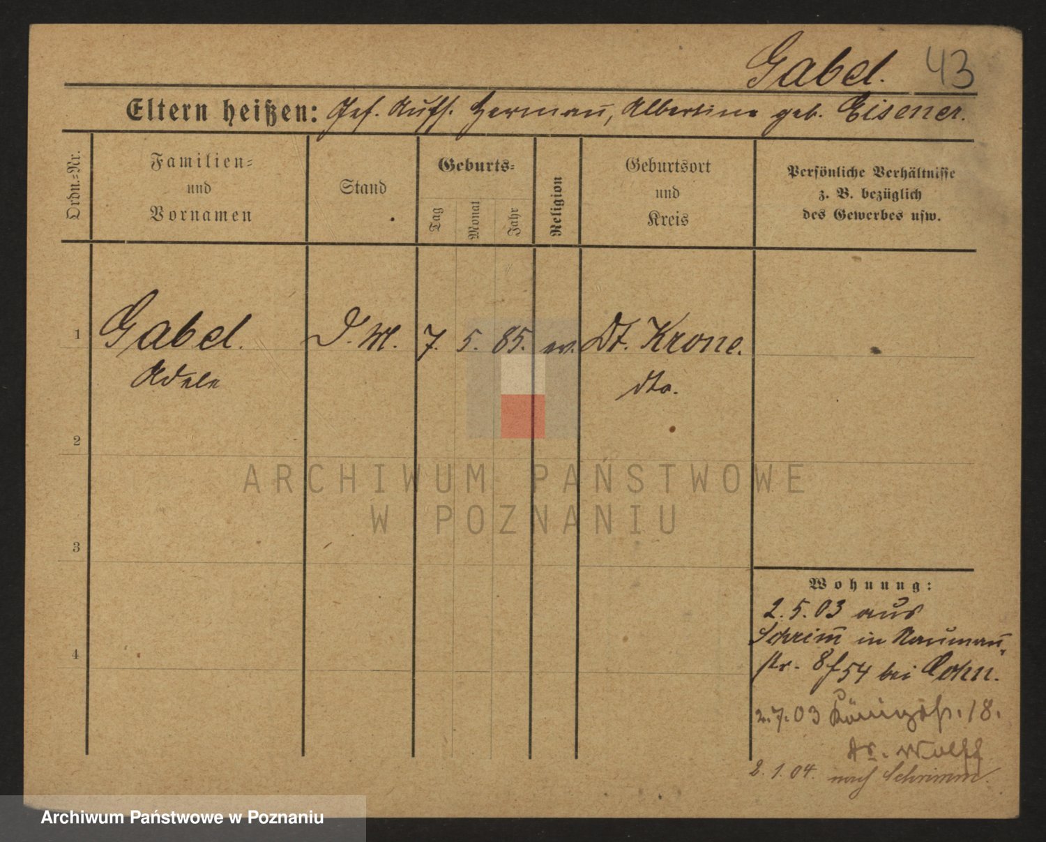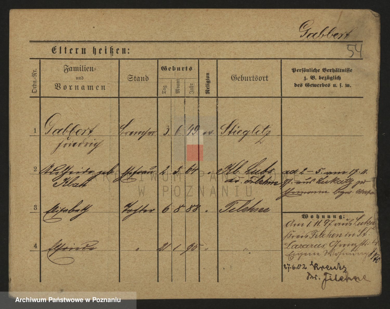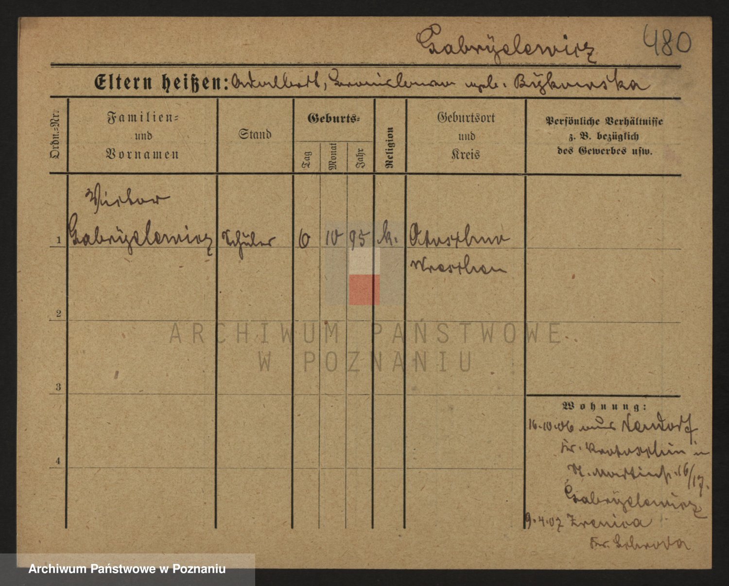 Podgląd karty osobowej dostępny jest po kliknięciu na nazwisko lub ikonkę karty. Można dokonywać powiększenia (ikony na górze) lub przechodzić między kolejnymi skanami (strzałki po bokach).