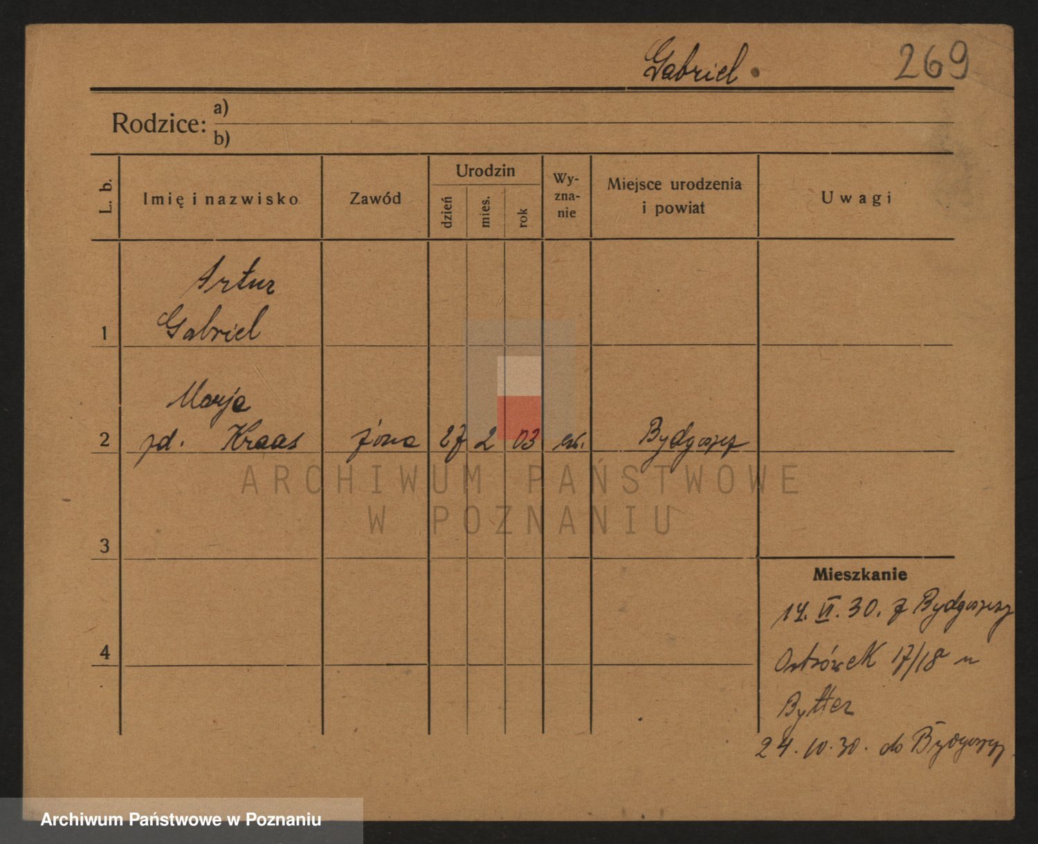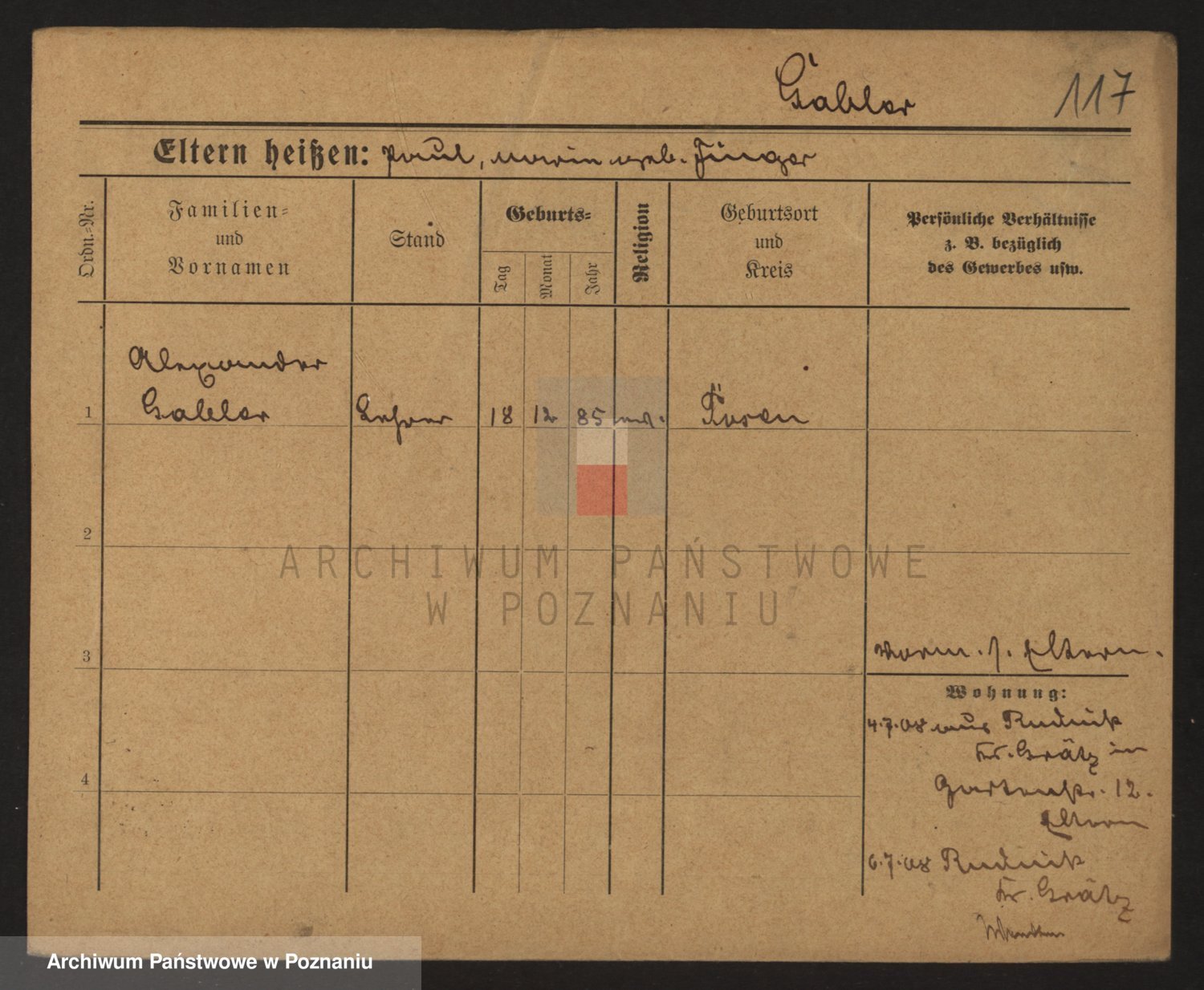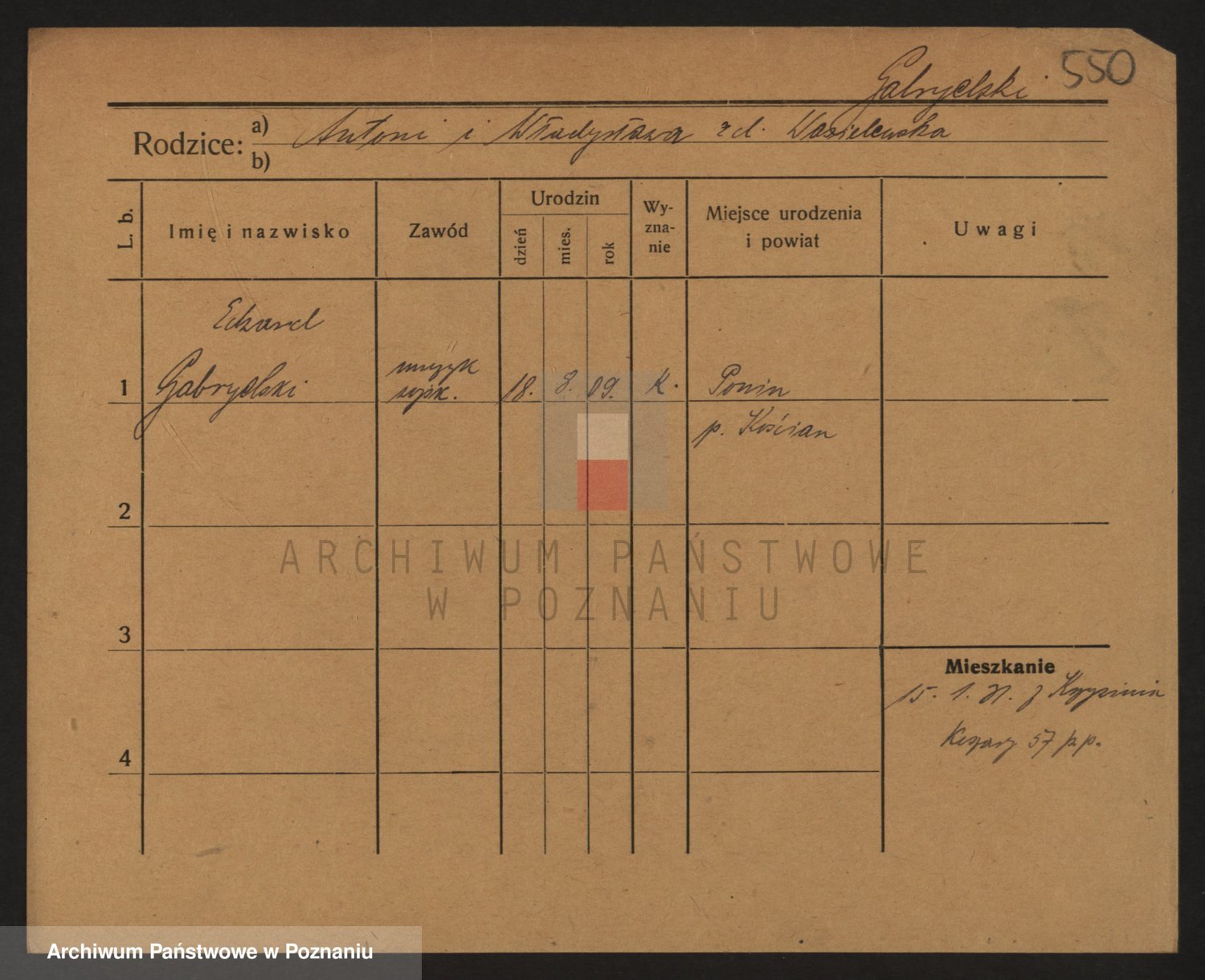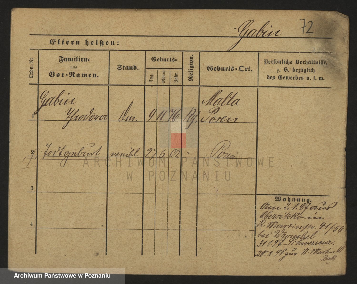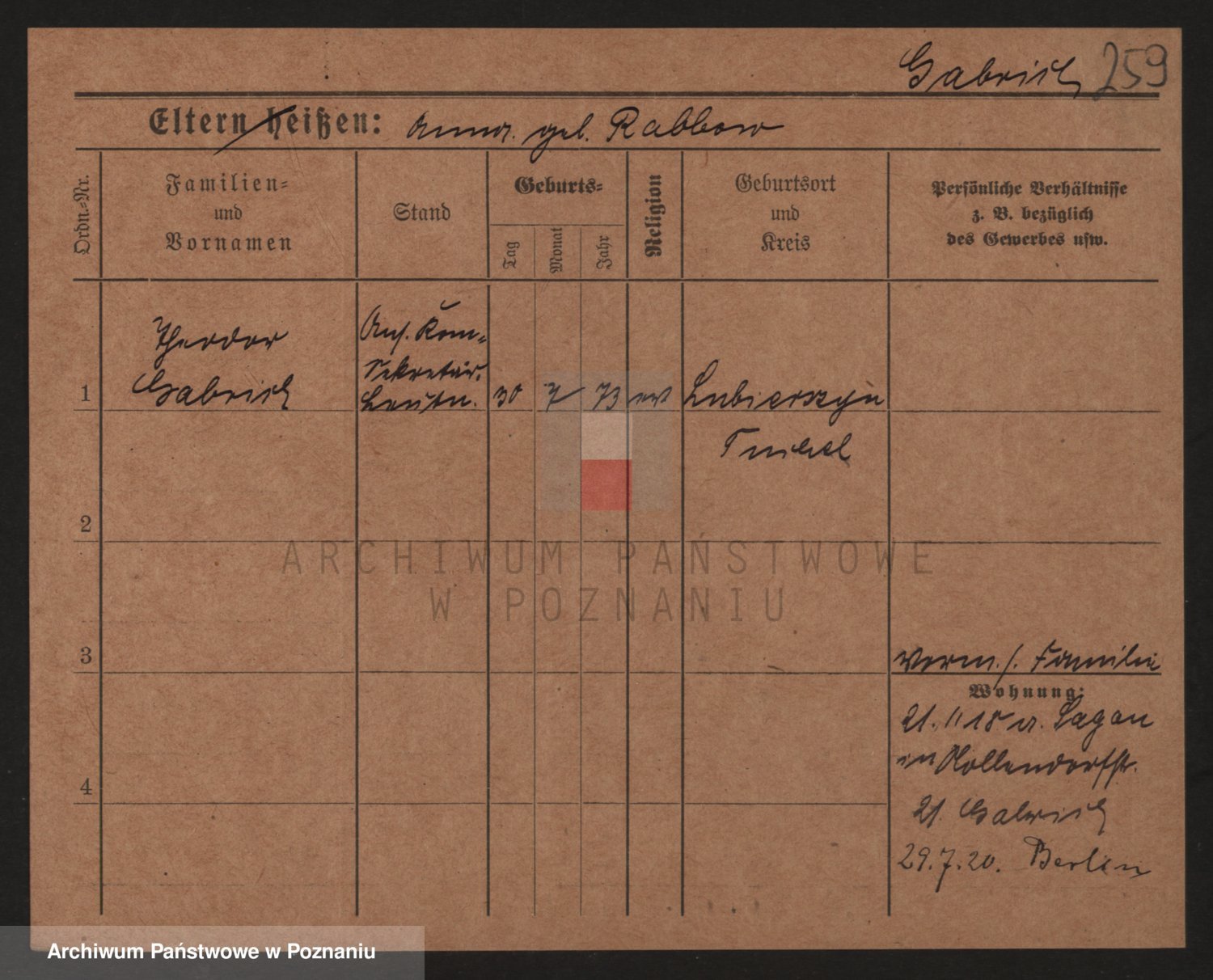Podgląd karty osobowej dostępny jest po kliknięciu na nazwisko lub ikonkę karty. Można dokonywać powiększenia (ikony na górze) lub przechodzić między kolejnymi skanami (strzałki po bokach).