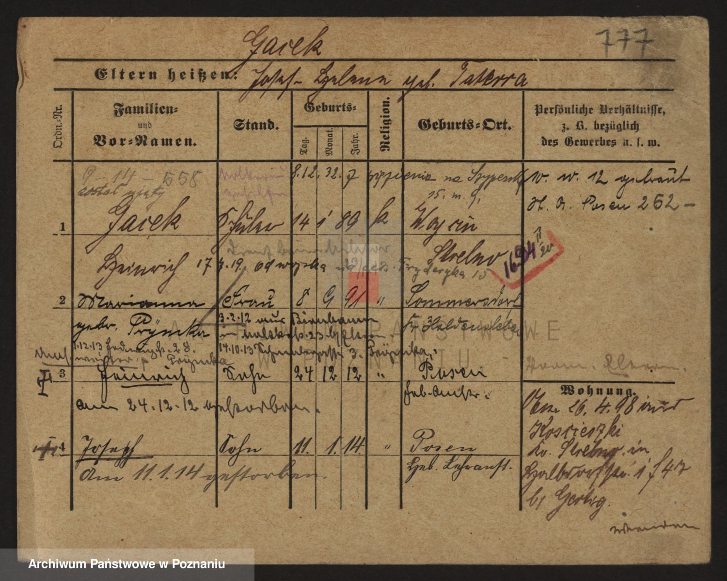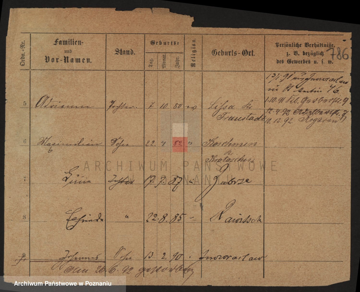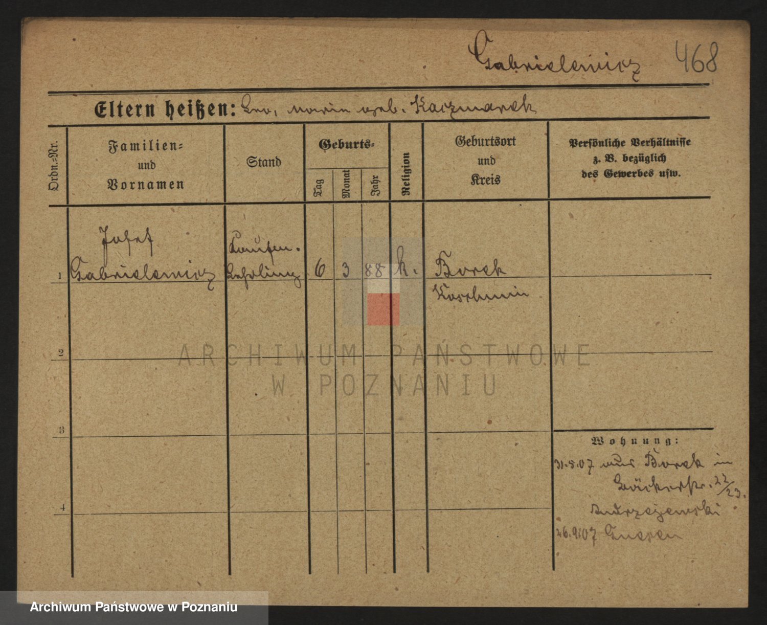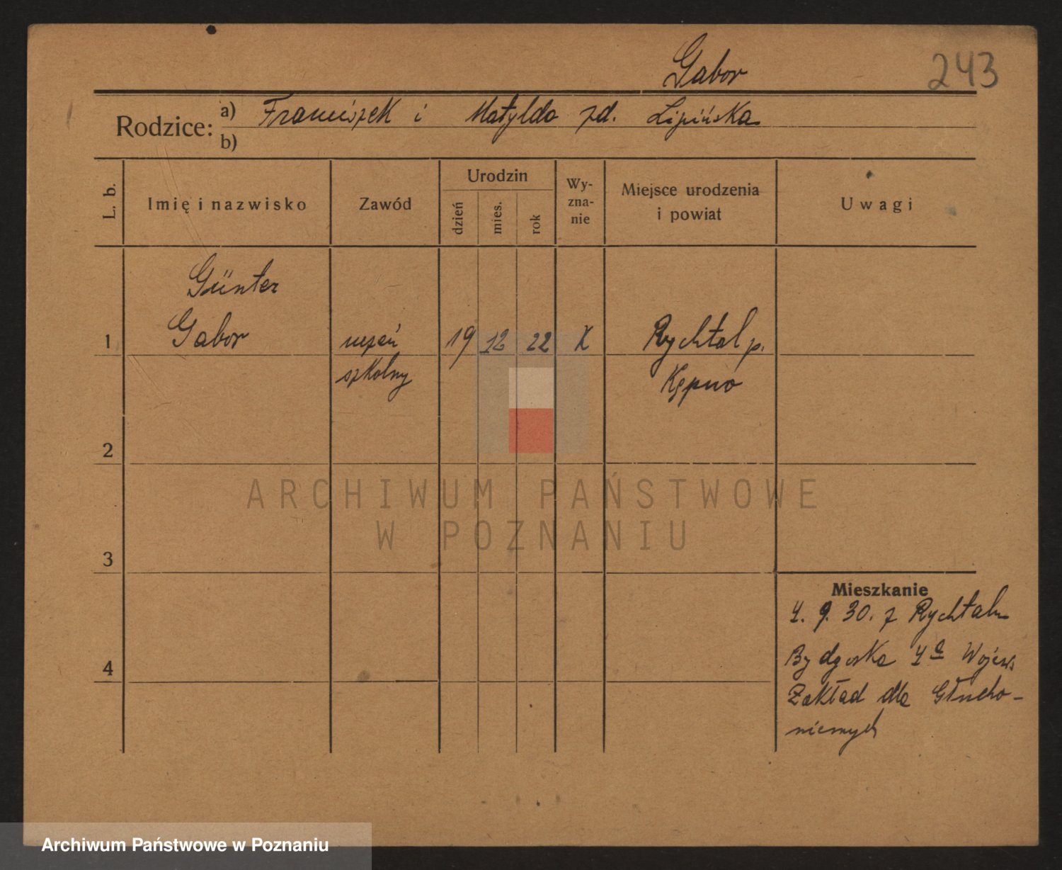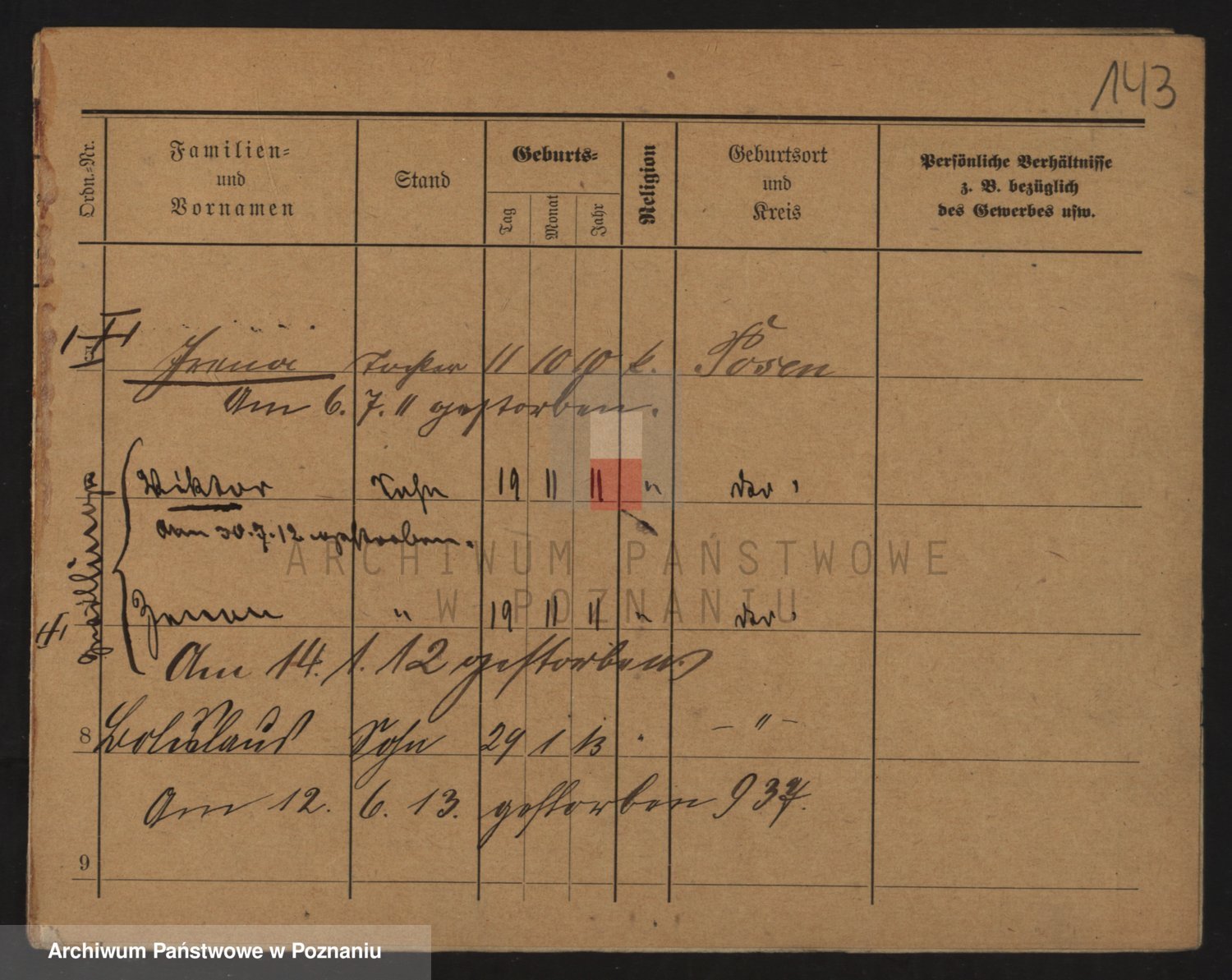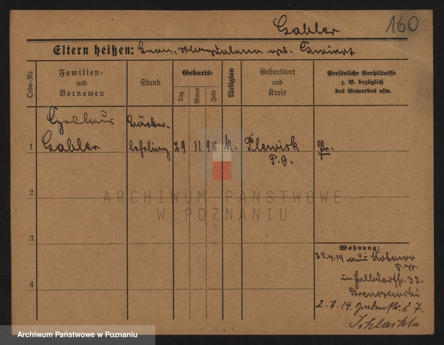 Podgląd karty osobowej dostępny jest po kliknięciu na nazwisko lub ikonkę karty. Można dokonywać powiększenia (ikony na górze) lub przechodzić między kolejnymi skanami (strzałki po bokach).
