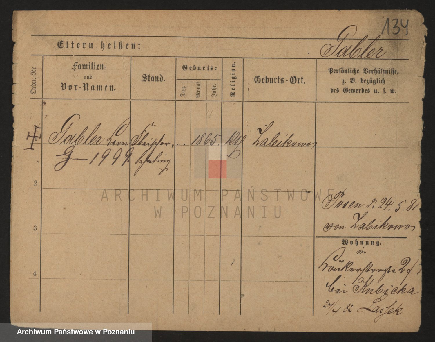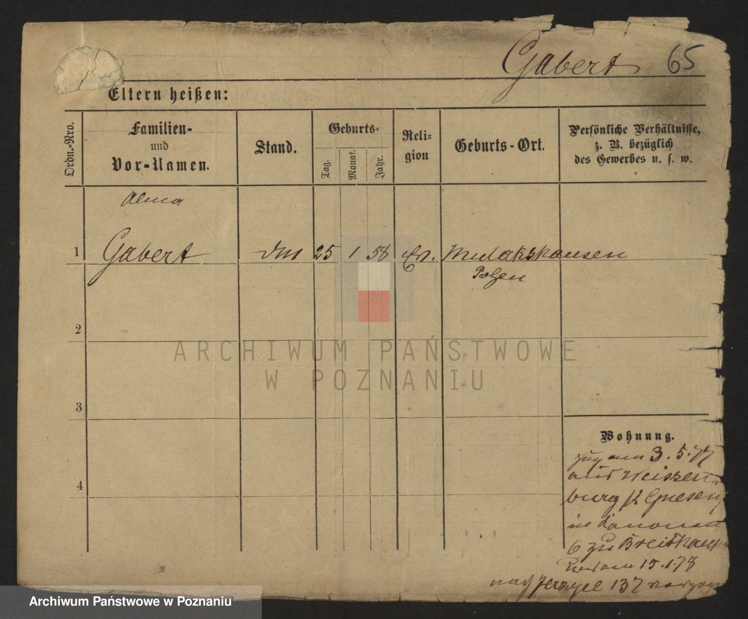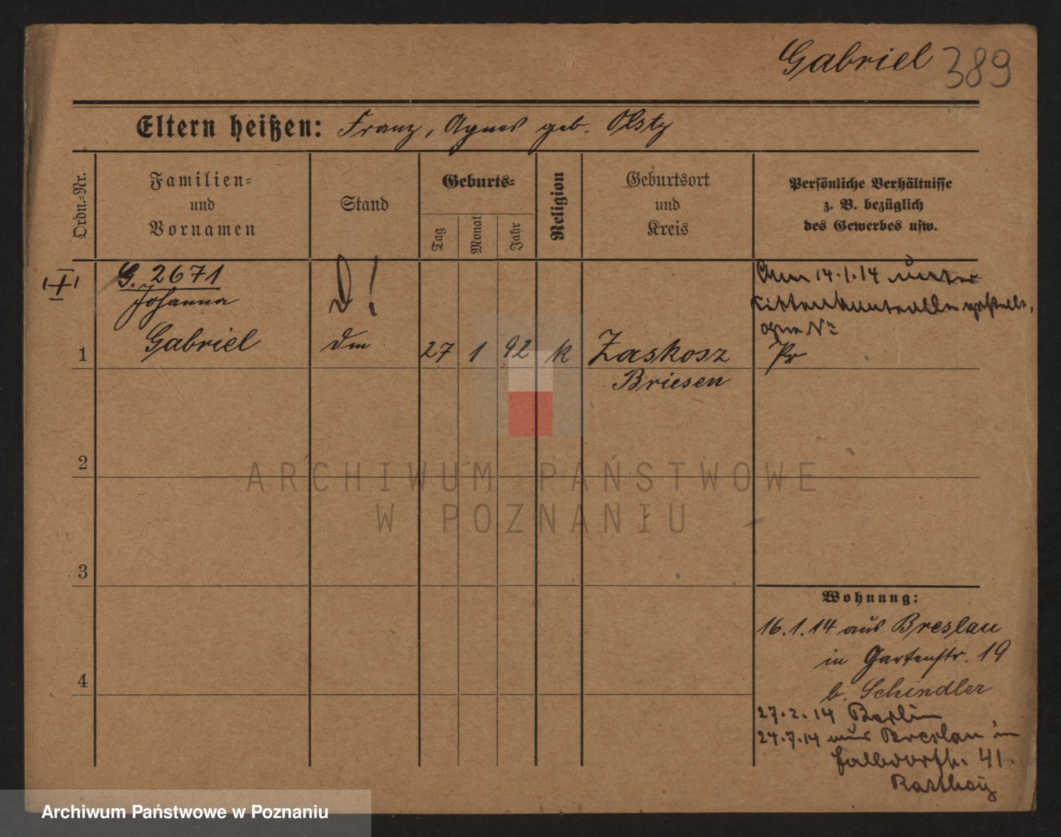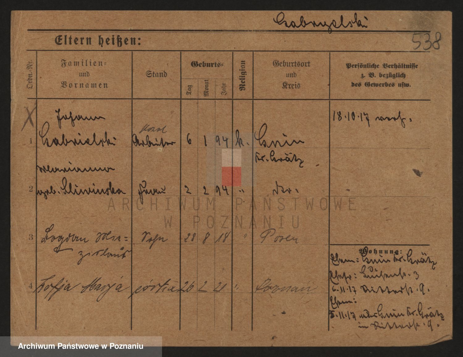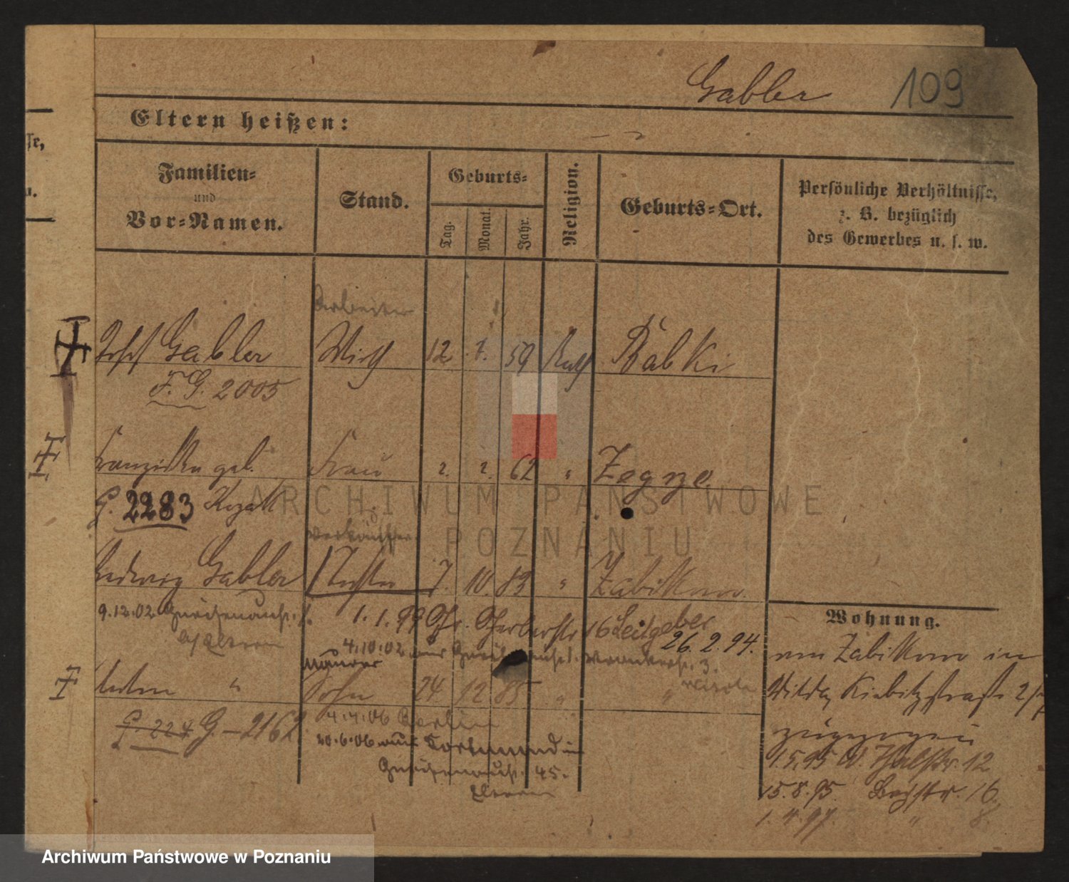 Podgląd karty osobowej dostępny jest po kliknięciu na nazwisko lub ikonkę karty. Można dokonywać powiększenia (ikony na górze) lub przechodzić między kolejnymi skanami (strzałki po bokach).