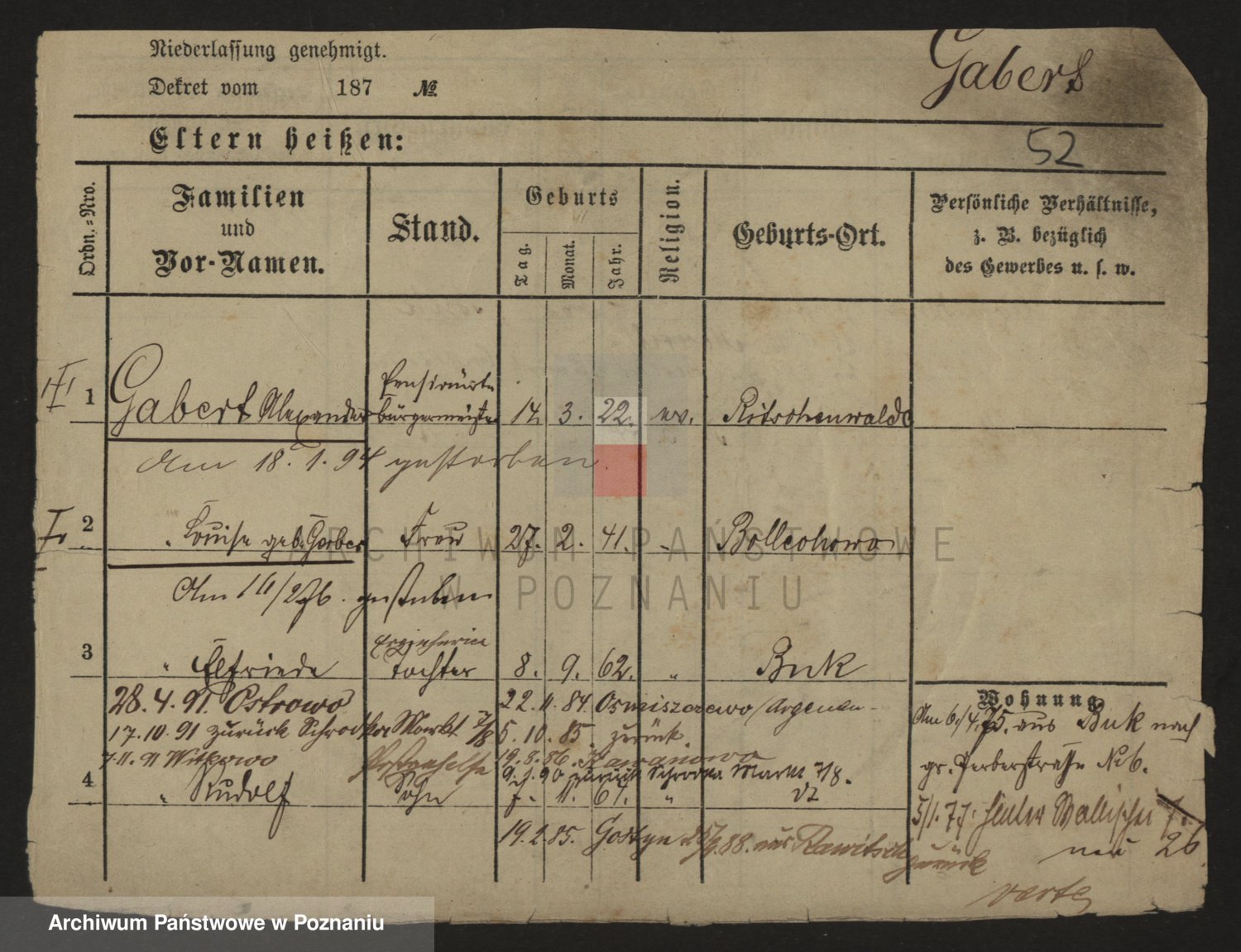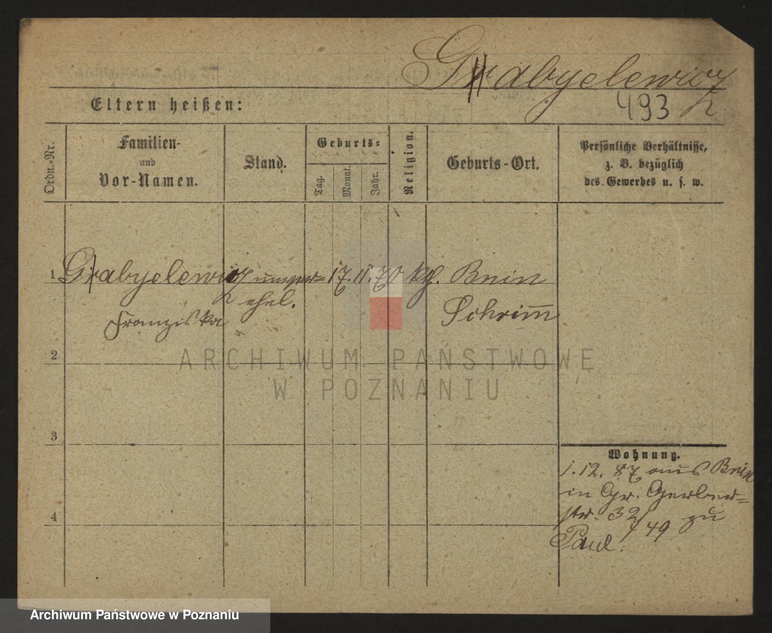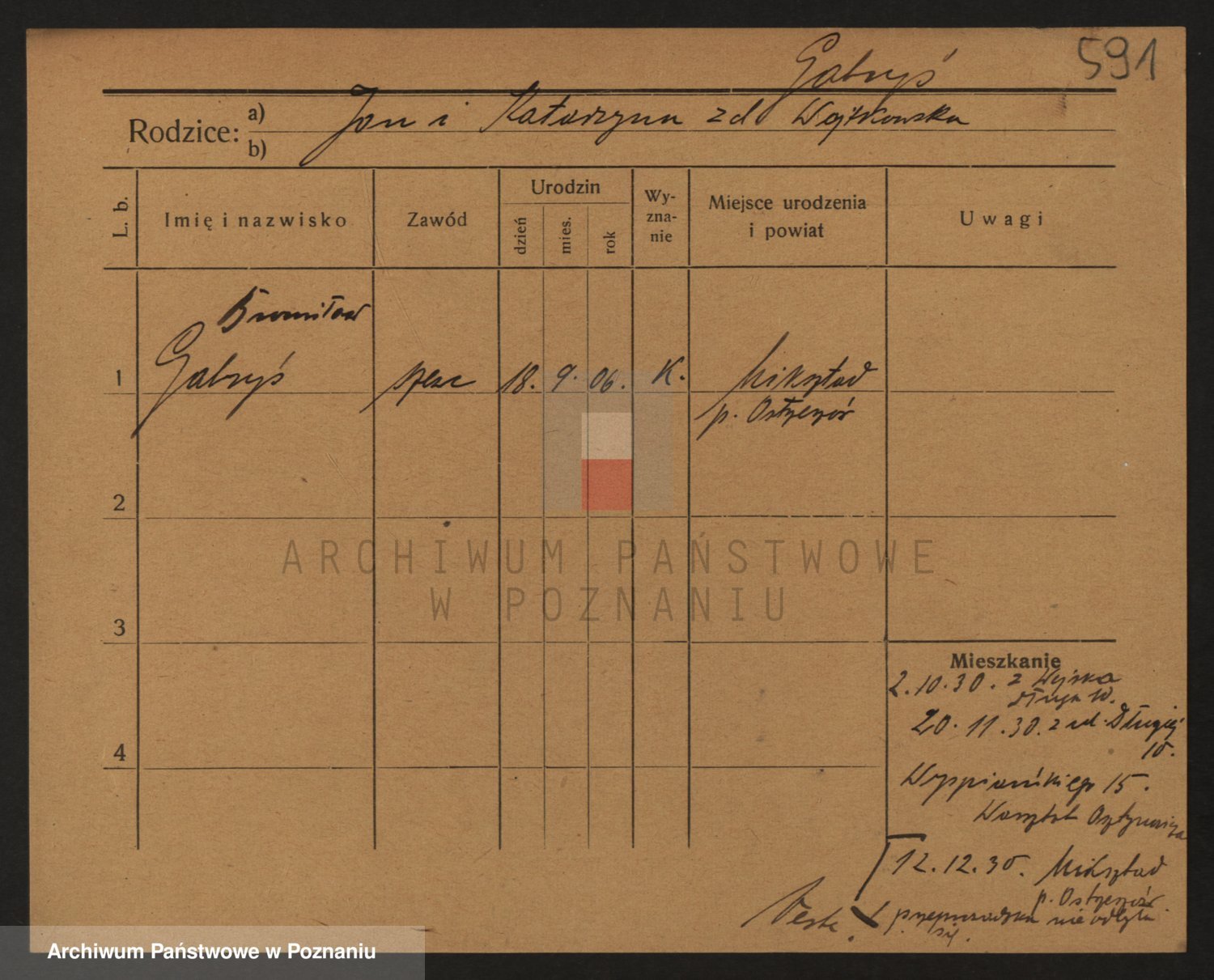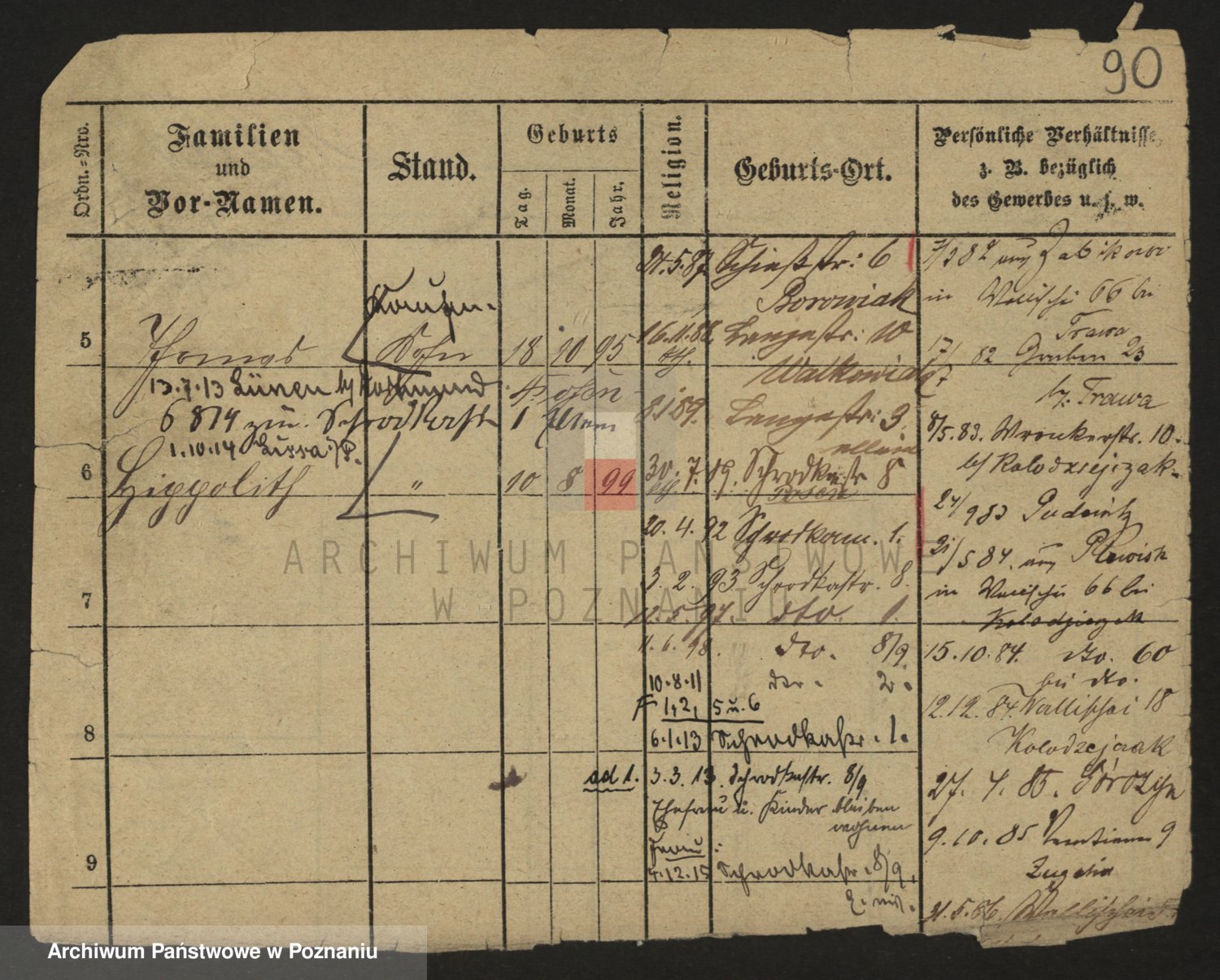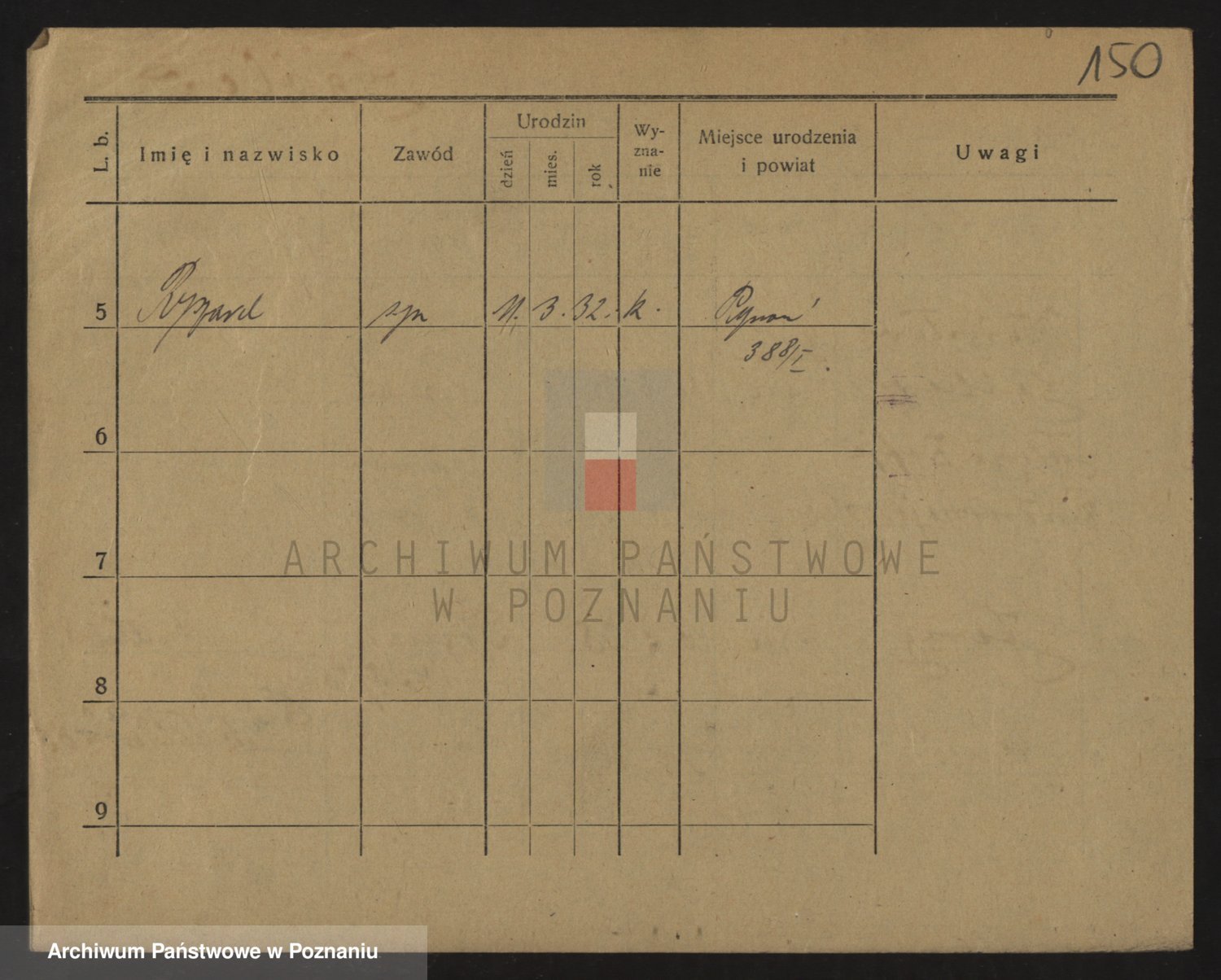 Podgląd karty osobowej dostępny jest po kliknięciu na nazwisko lub ikonkę karty. Można dokonywać powiększenia (ikony na górze) lub przechodzić między kolejnymi skanami (strzałki po bokach).