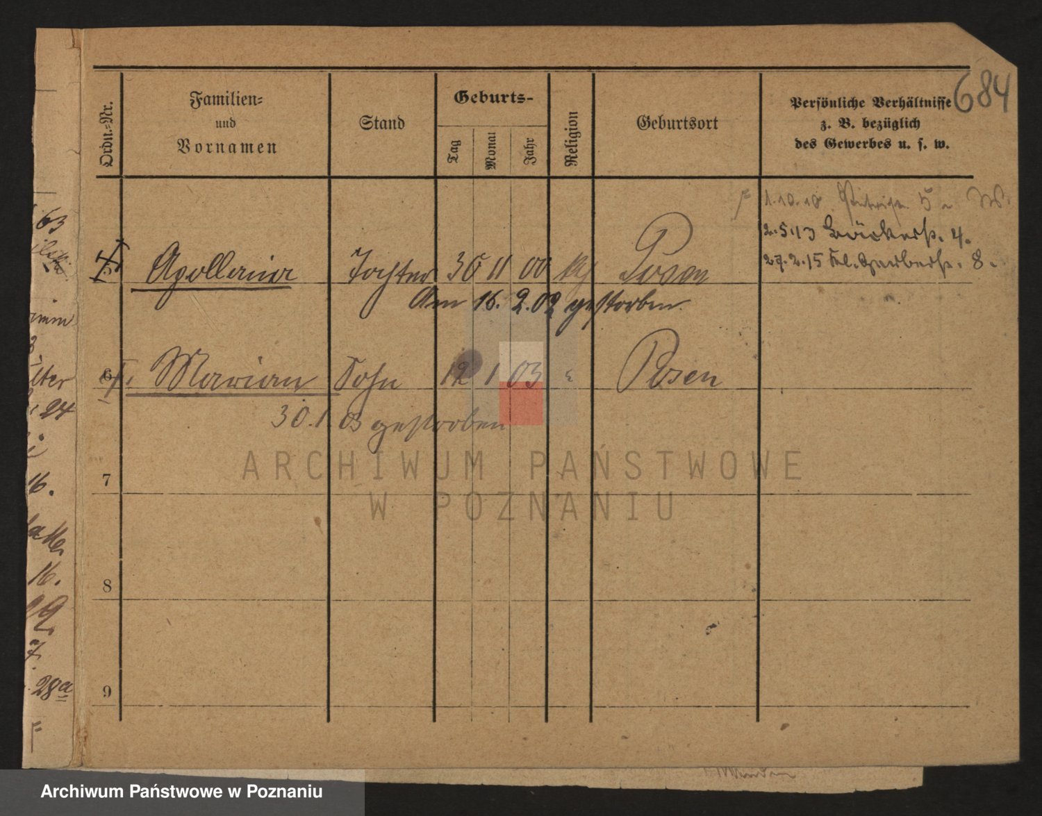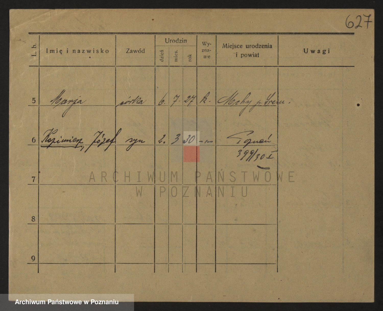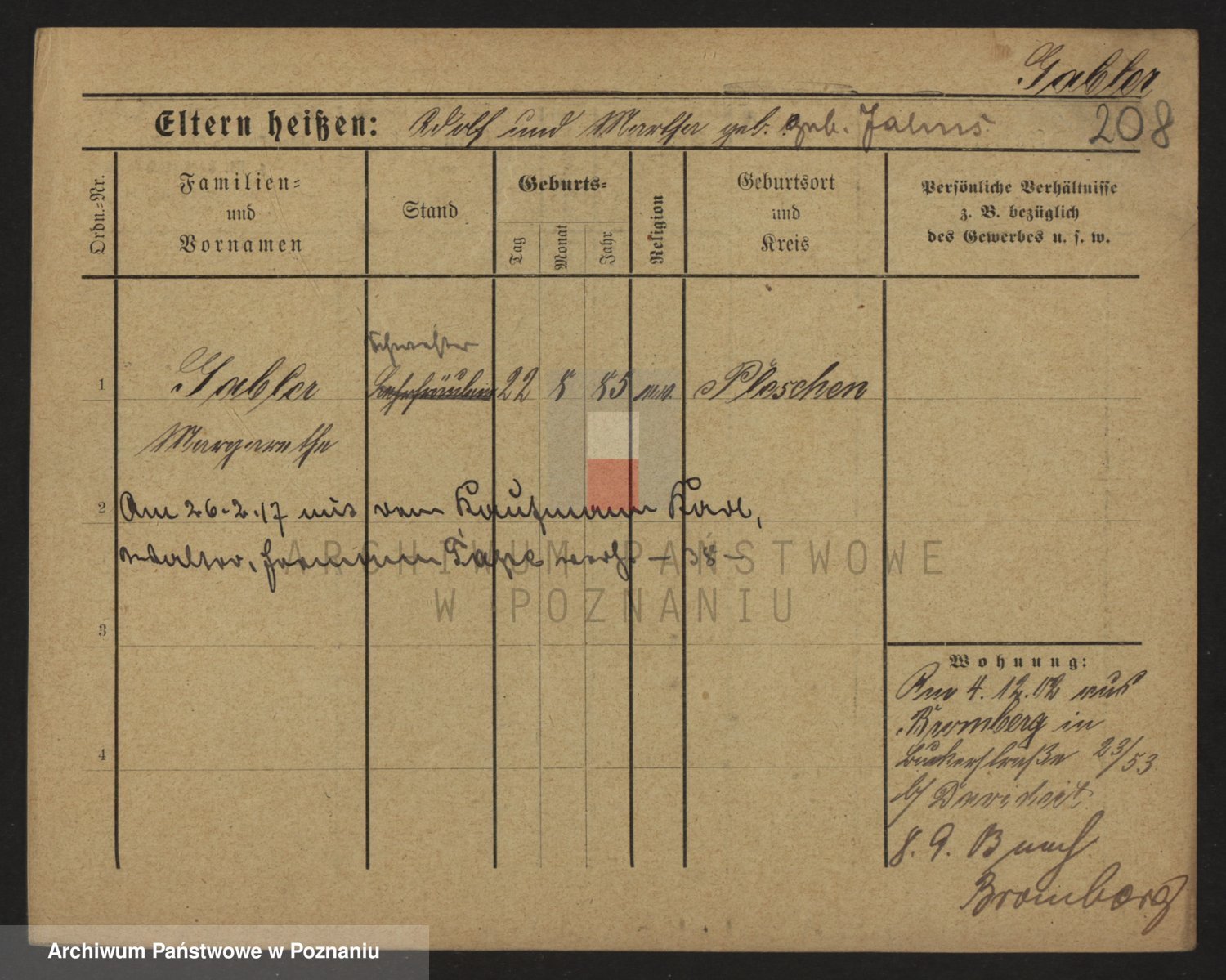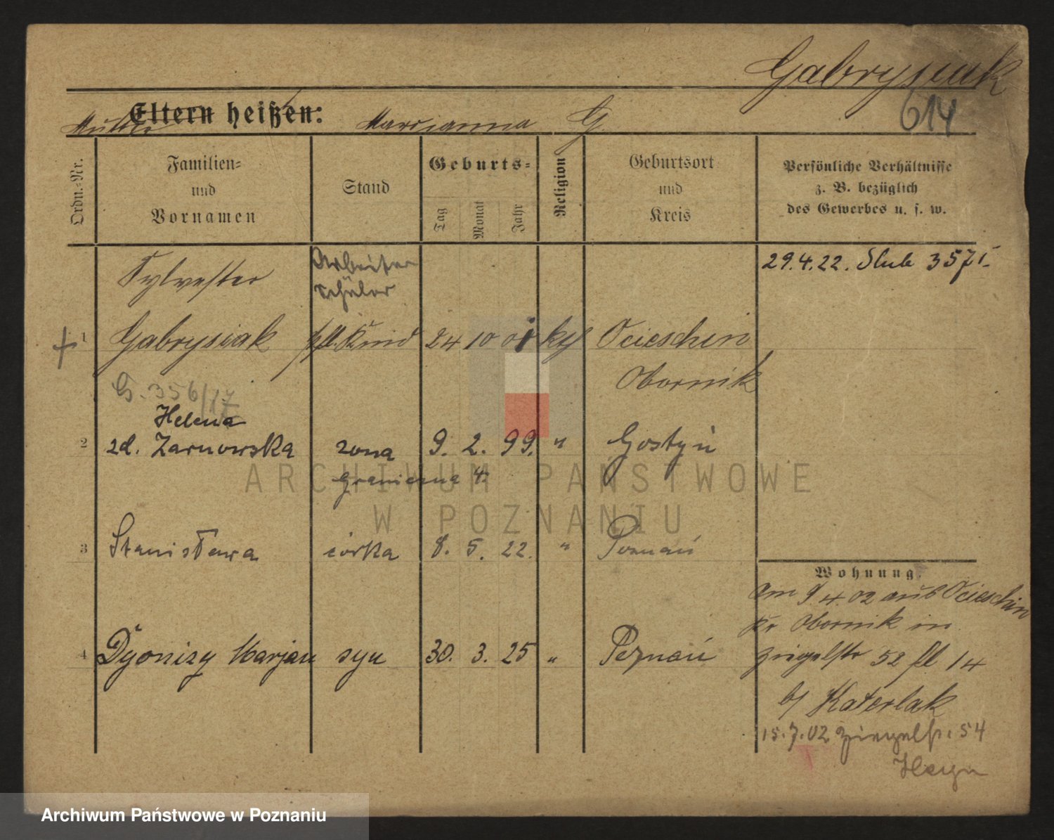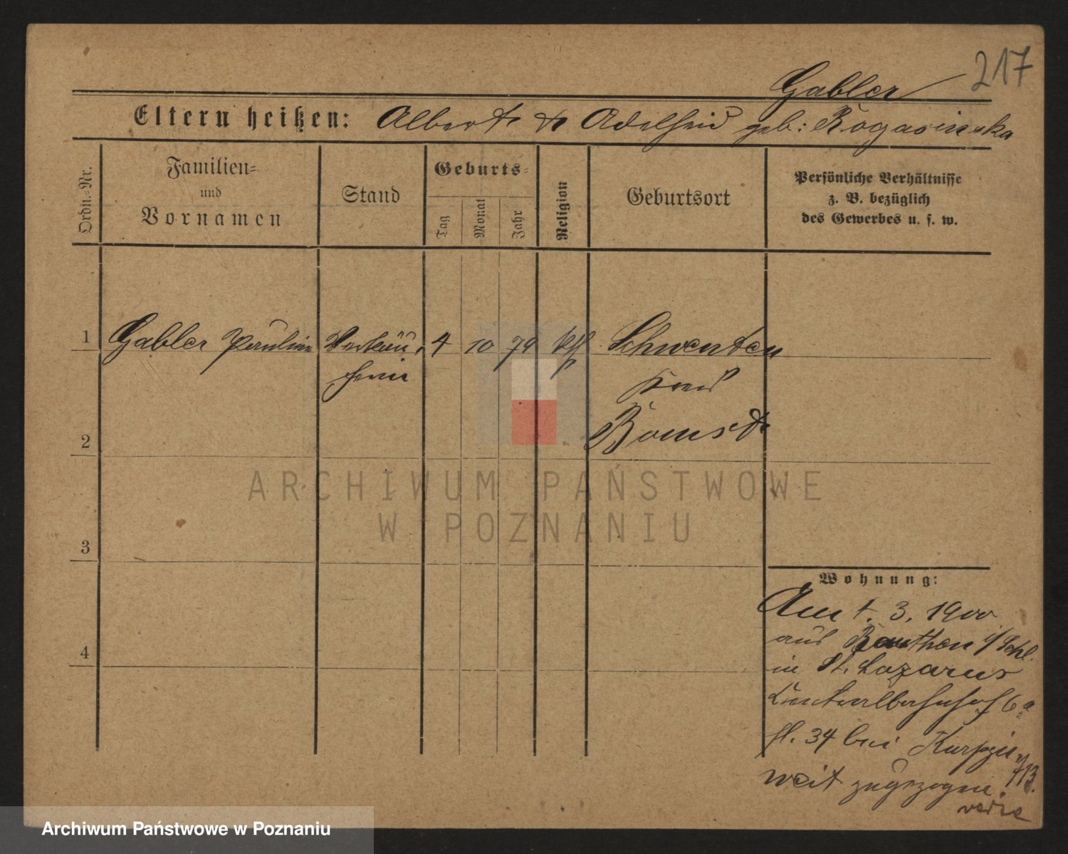 Podgląd karty osobowej dostępny jest po kliknięciu na nazwisko lub ikonkę karty. Można dokonywać powiększenia (ikony na górze) lub przechodzić między kolejnymi skanami (strzałki po bokach).