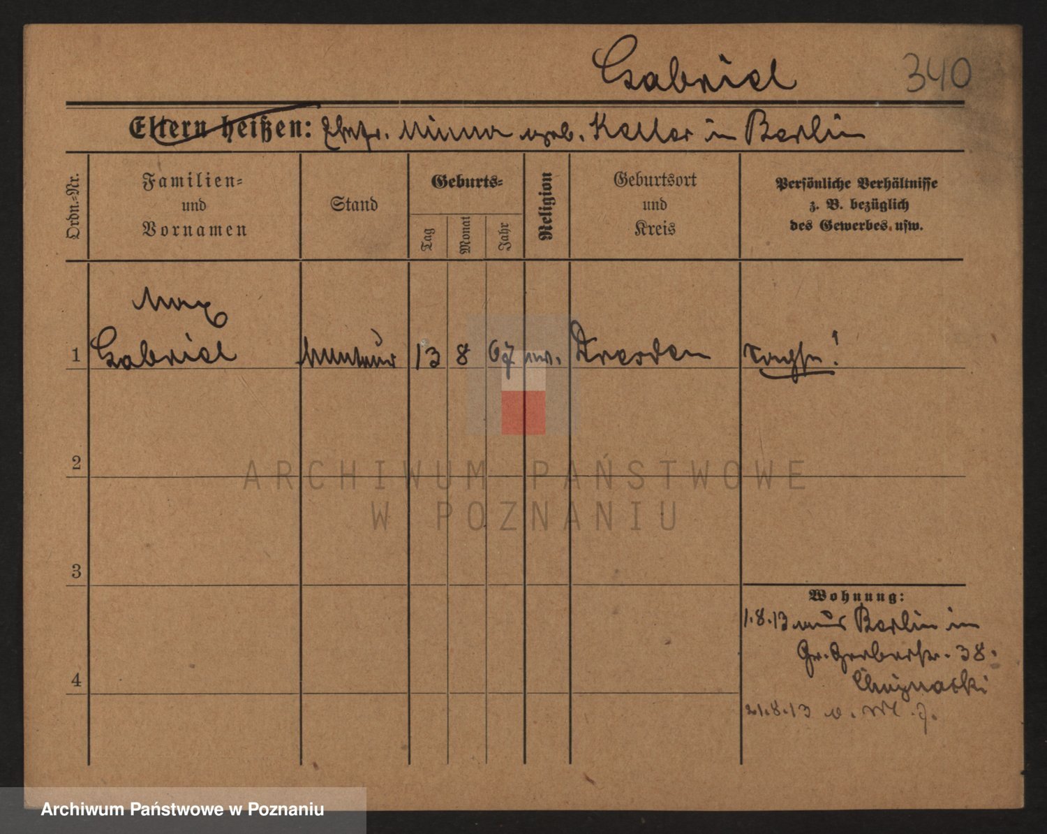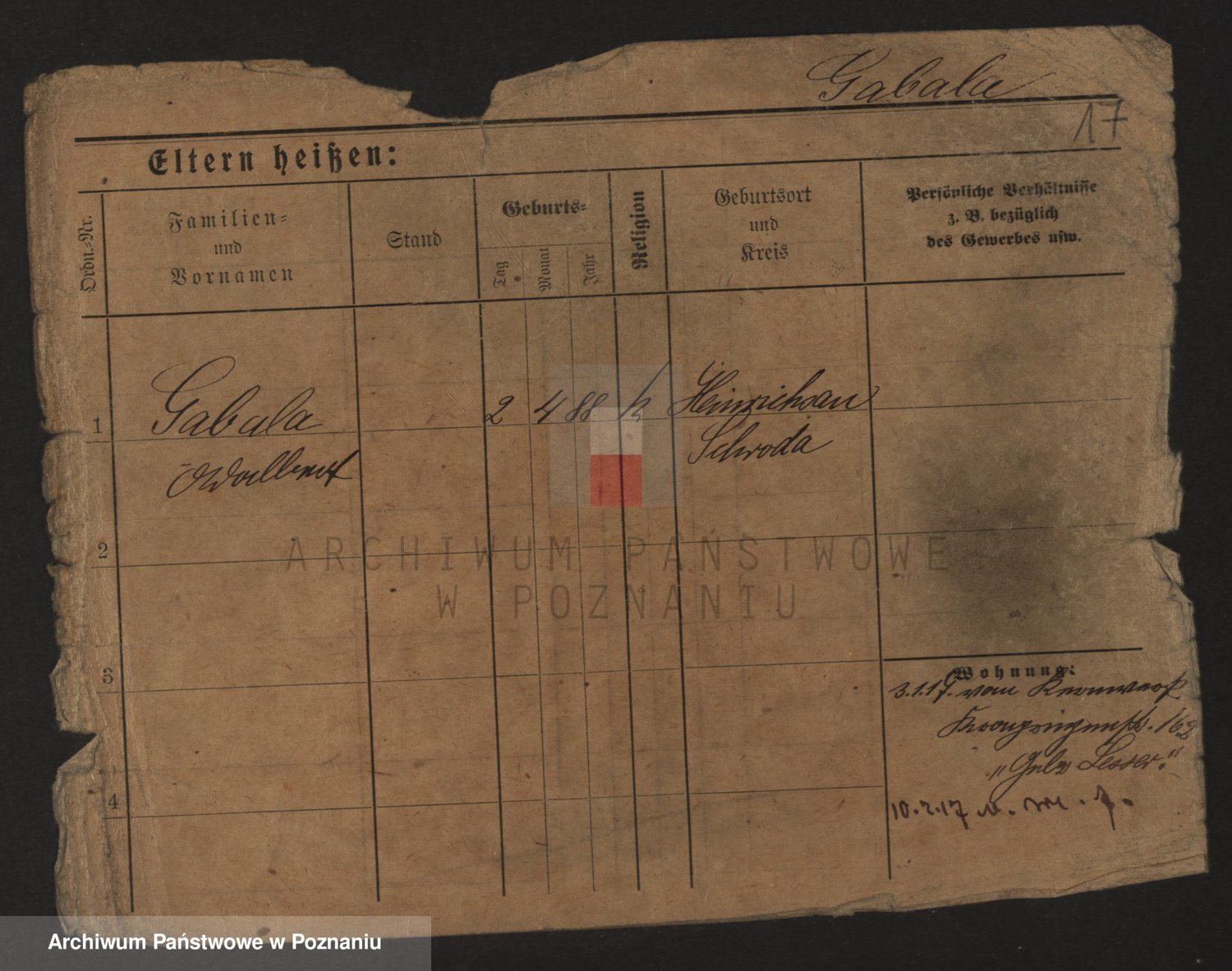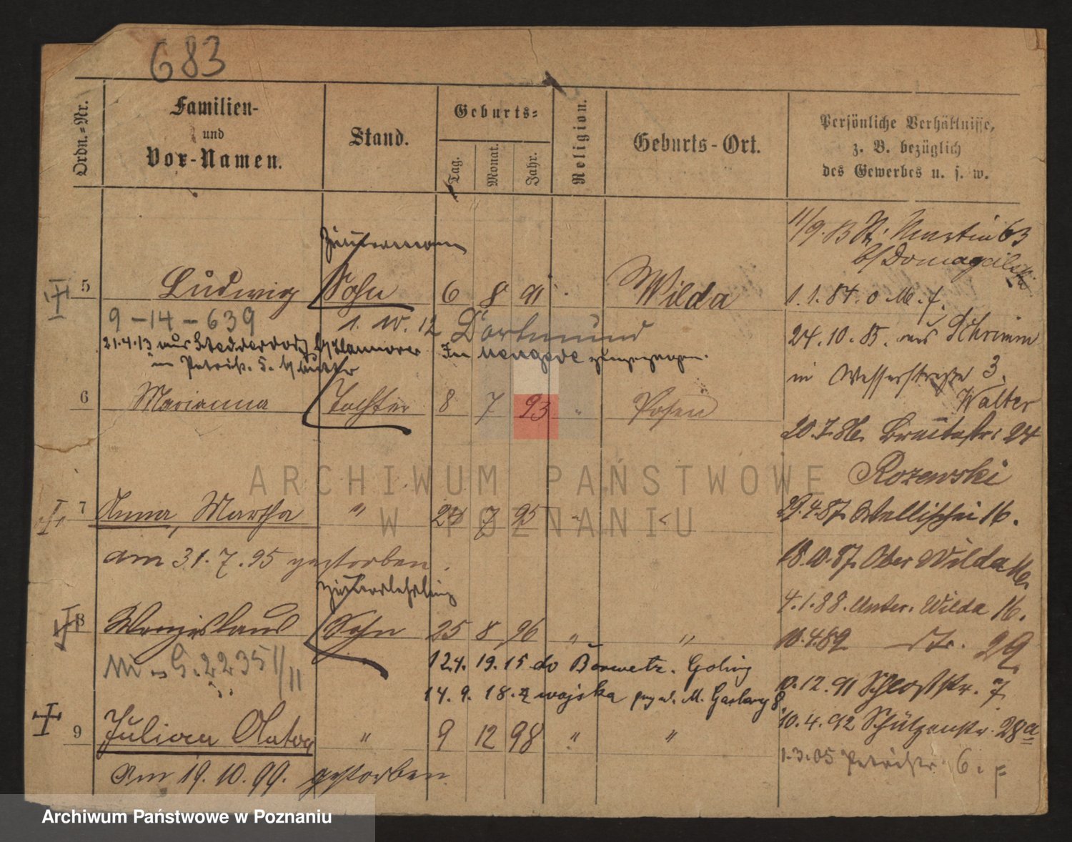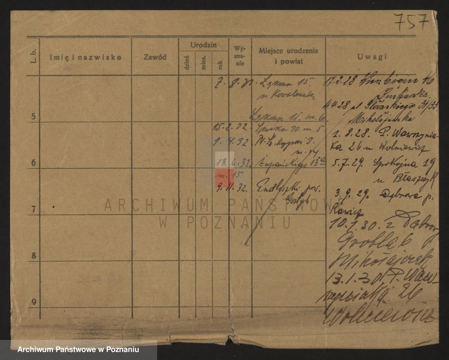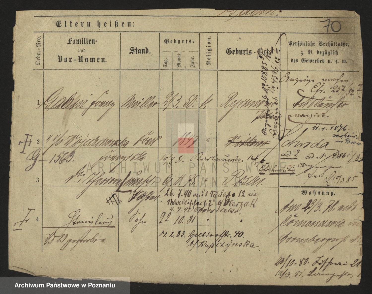 Podgląd karty osobowej dostępny jest po kliknięciu na nazwisko lub ikonkę karty. Można dokonywać powiększenia (ikony na górze) lub przechodzić między kolejnymi skanami (strzałki po bokach).