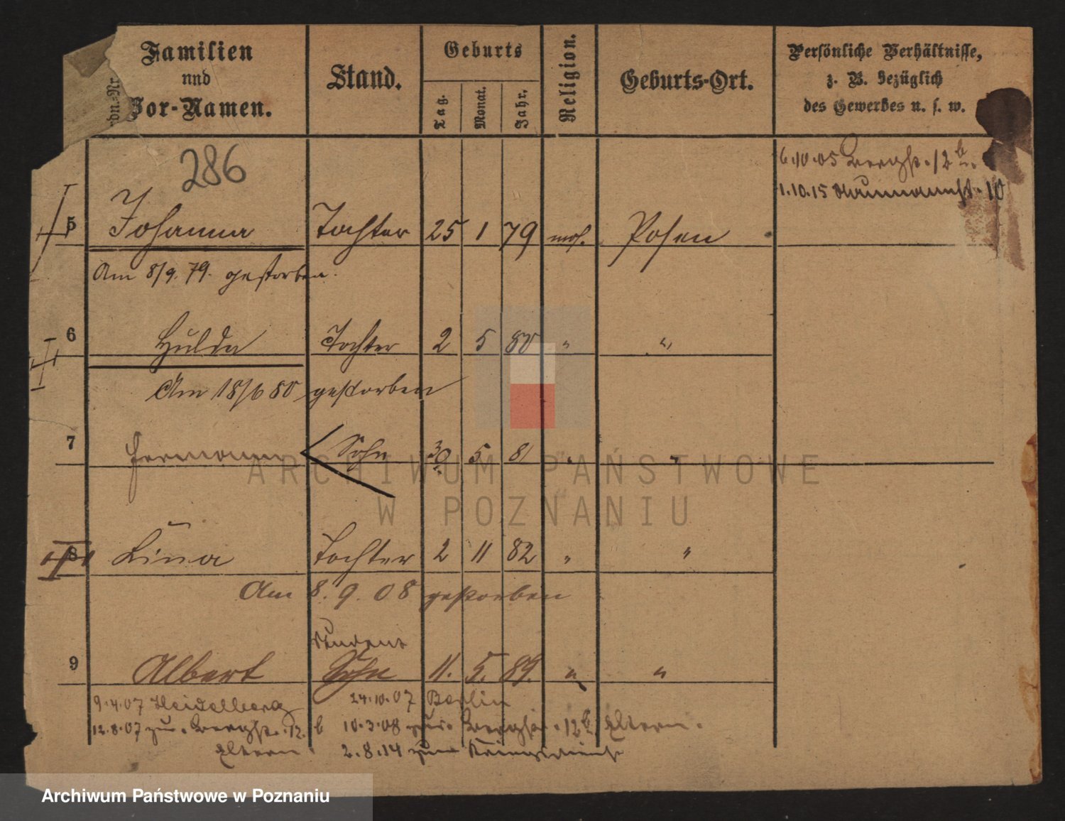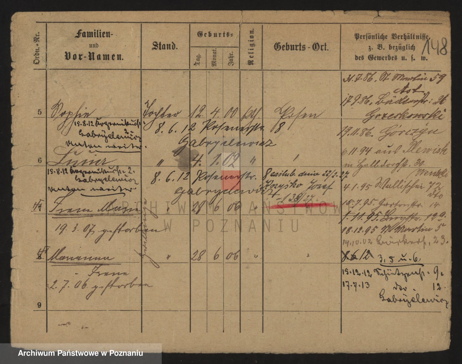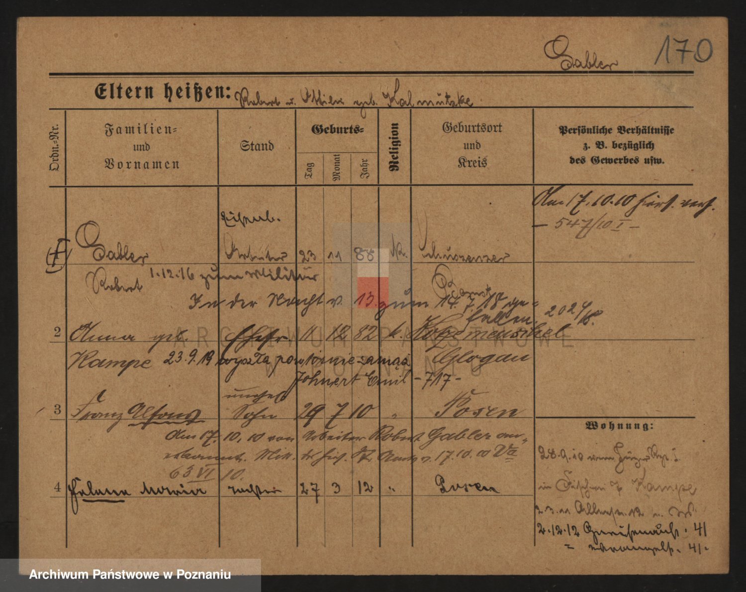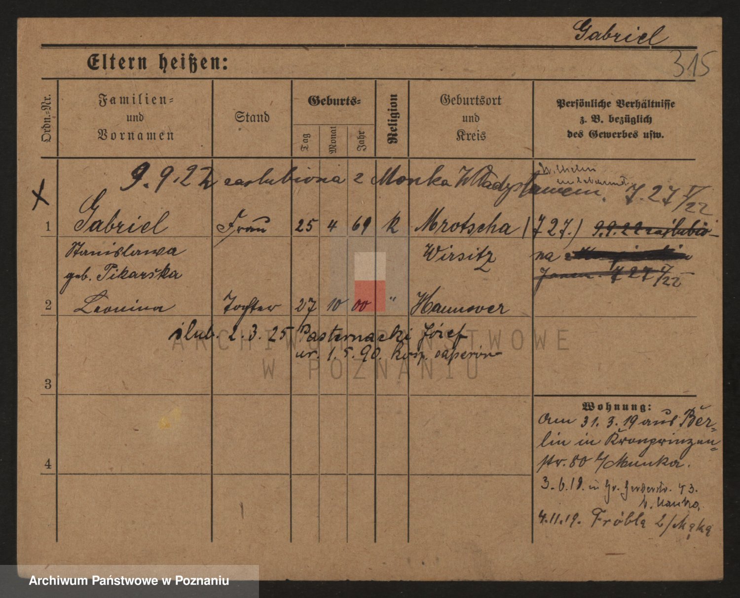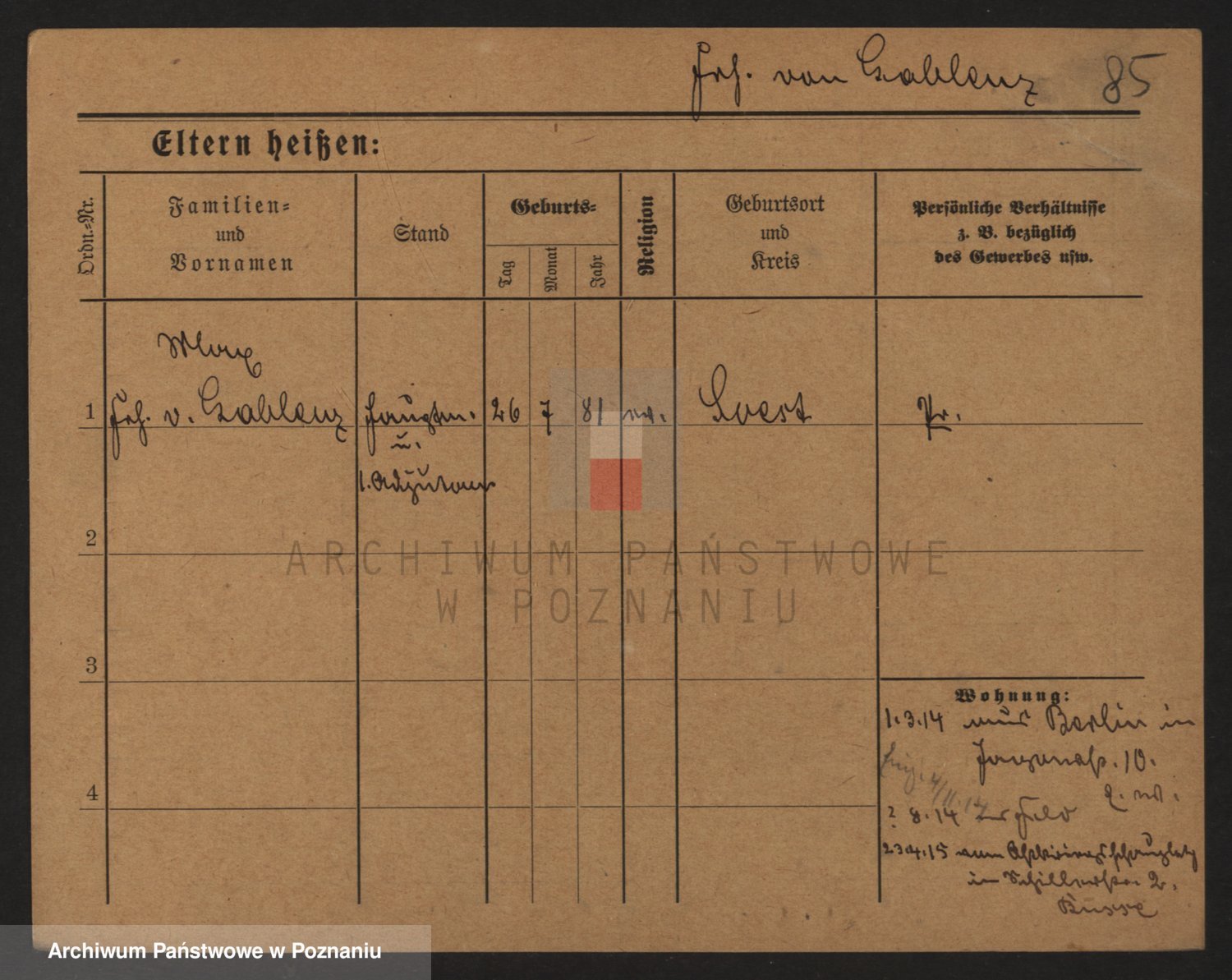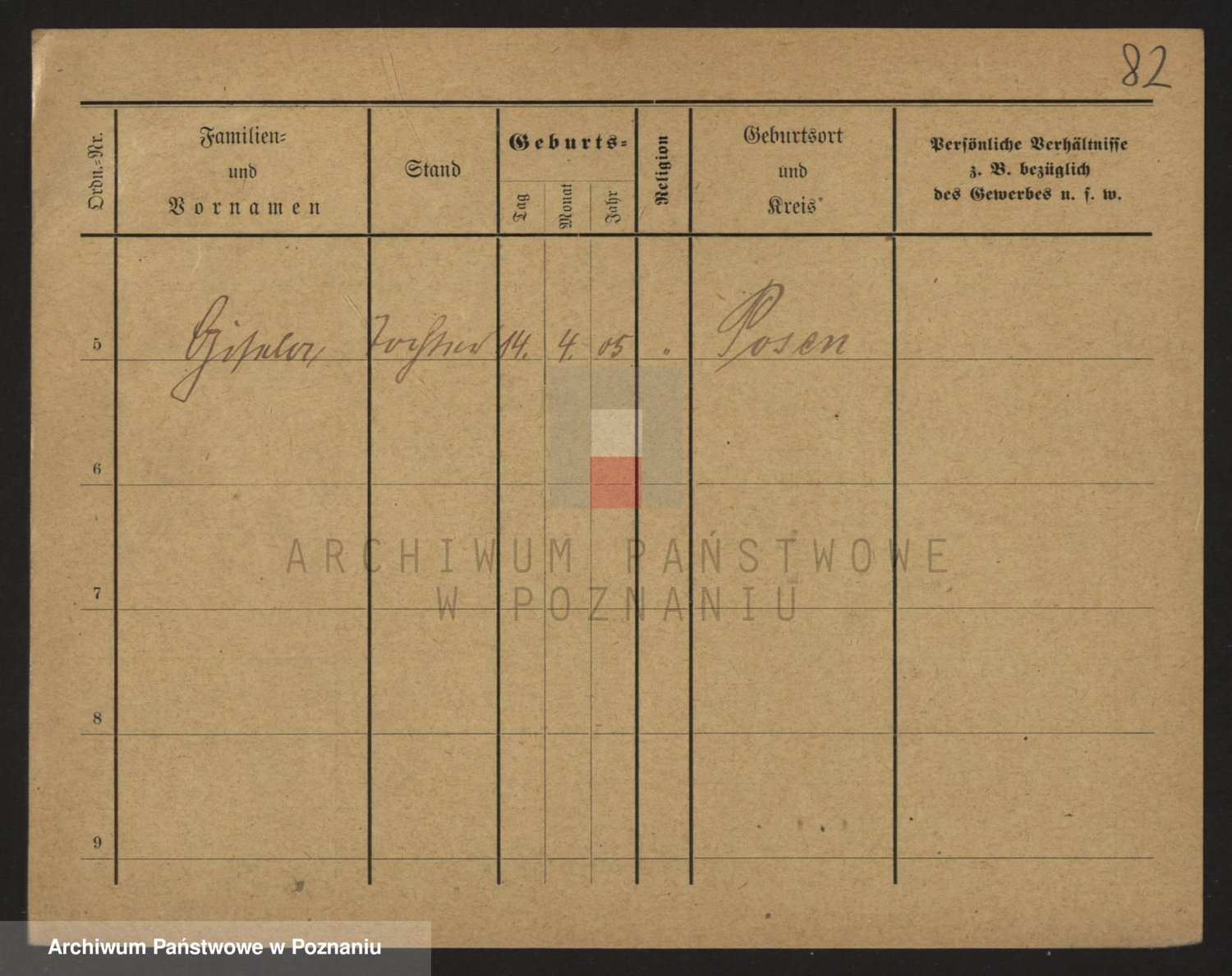 Podgląd karty osobowej dostępny jest po kliknięciu na nazwisko lub ikonkę karty. Można dokonywać powiększenia (ikony na górze) lub przechodzić między kolejnymi skanami (strzałki po bokach).