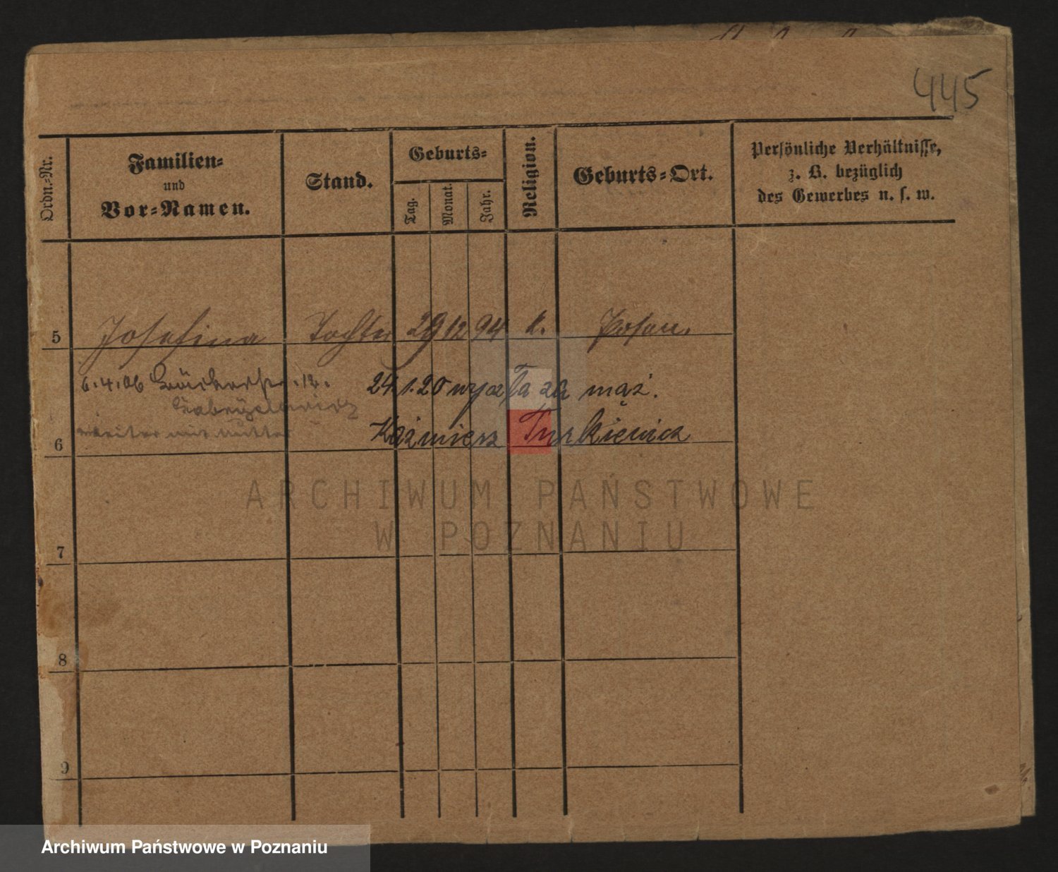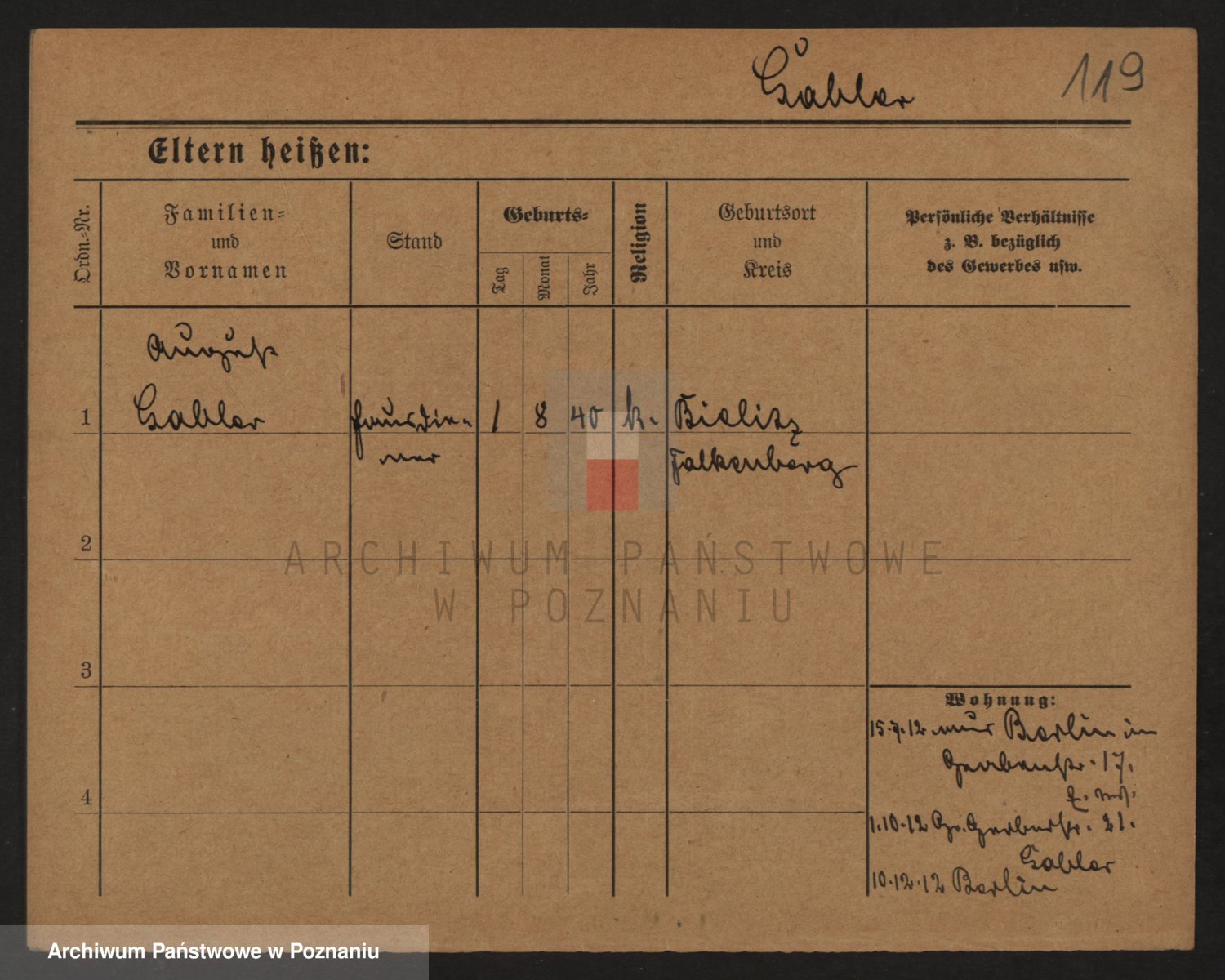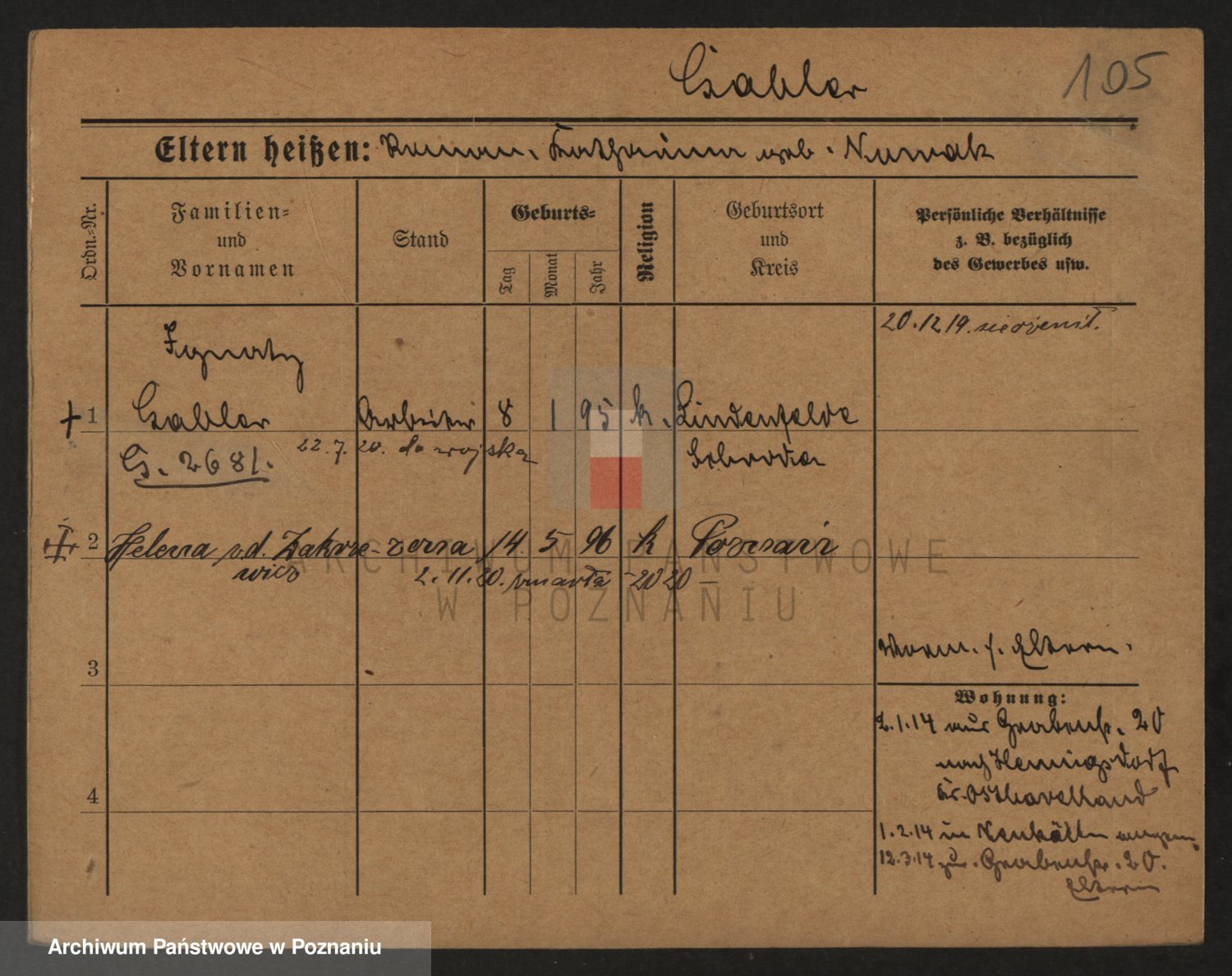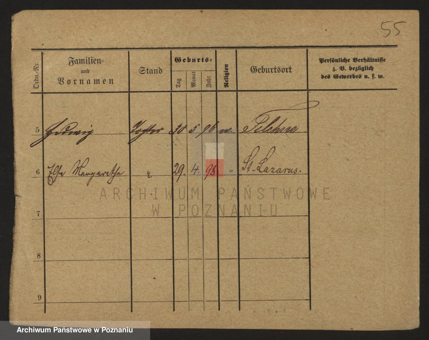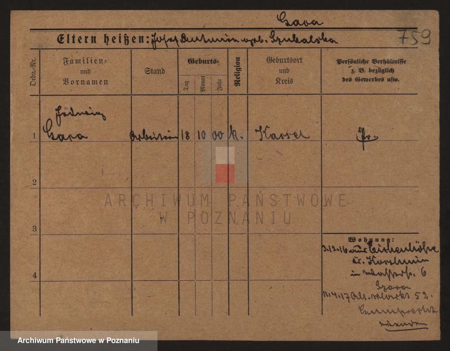 Podgląd karty osobowej dostępny jest po kliknięciu na nazwisko lub ikonkę karty. Można dokonywać powiększenia (ikony na górze) lub przechodzić między kolejnymi skanami (strzałki po bokach).