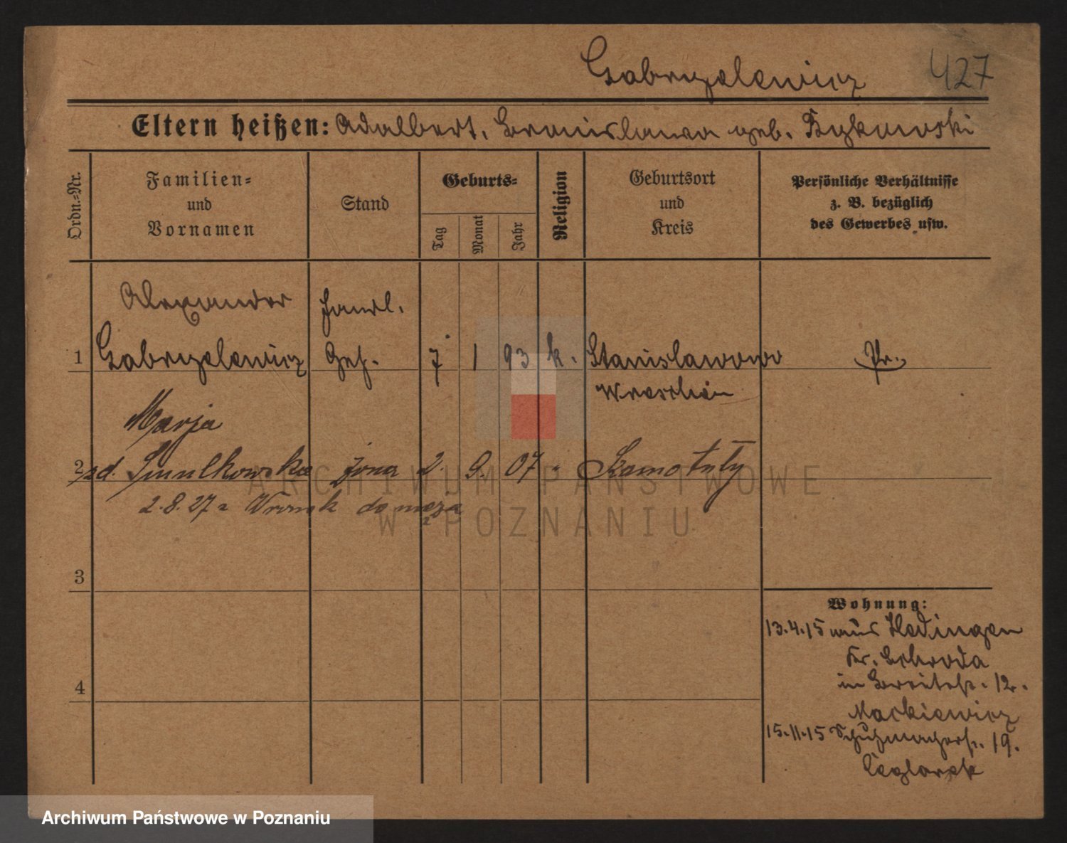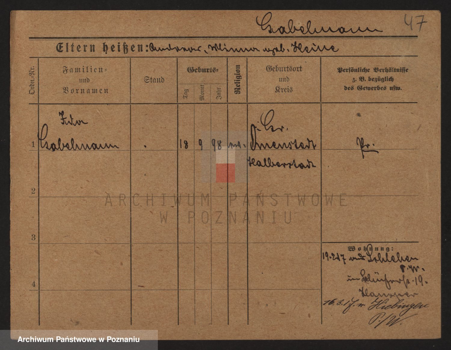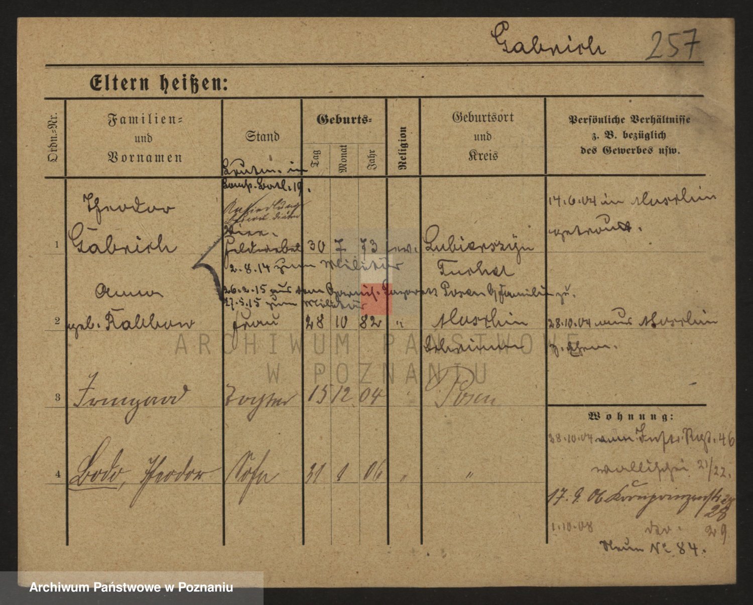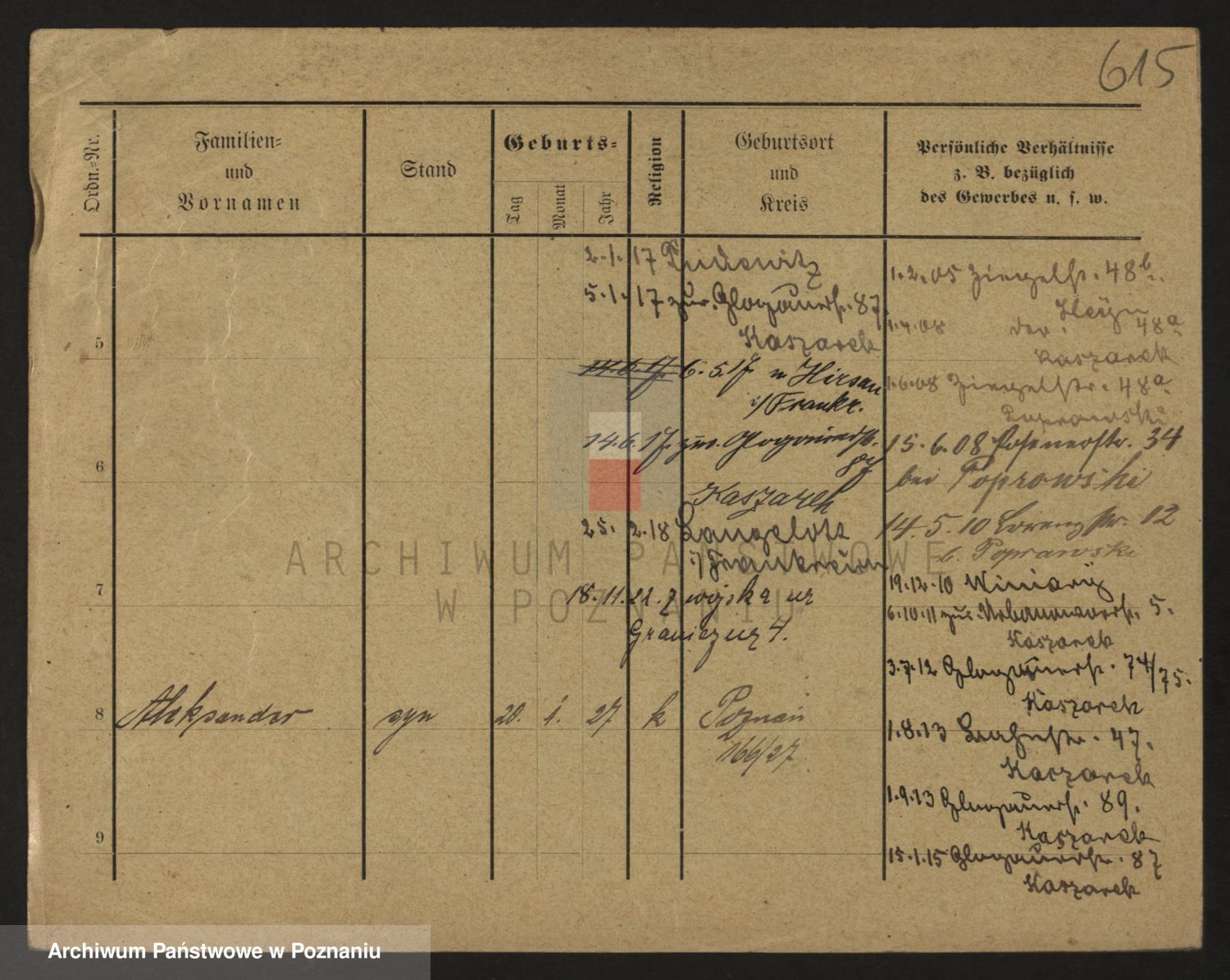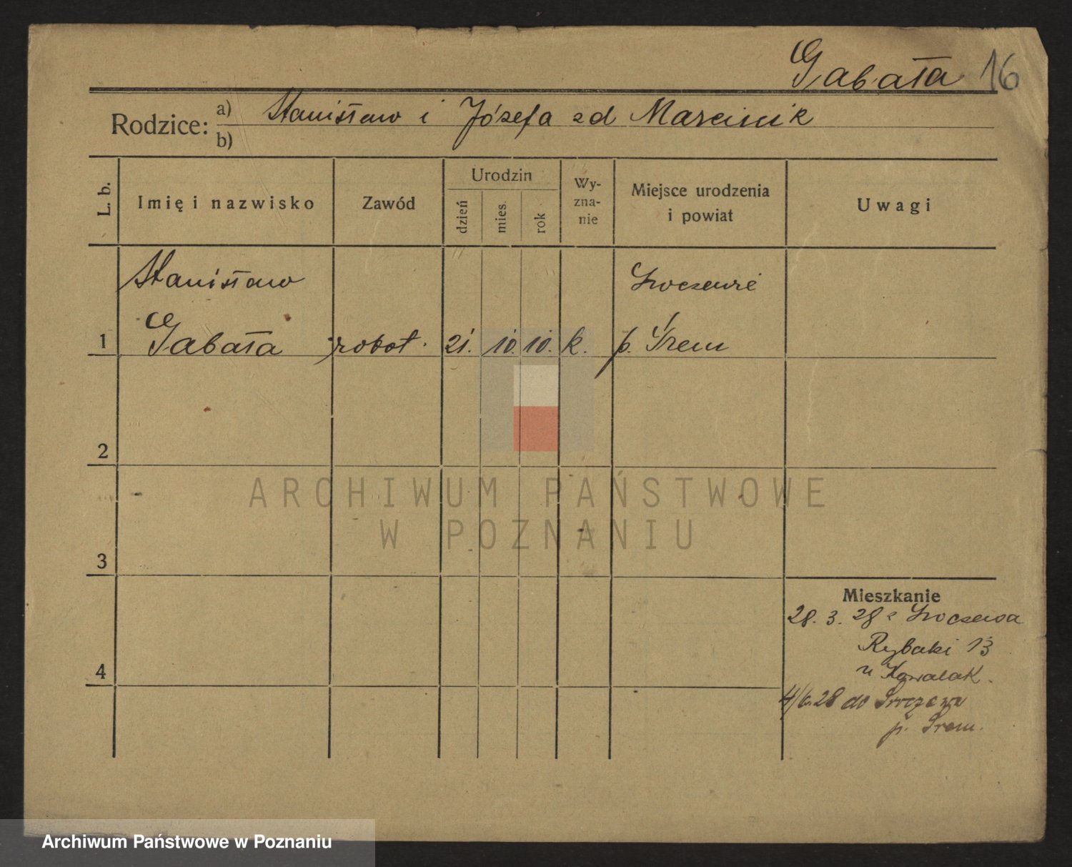 Podgląd karty osobowej dostępny jest po kliknięciu na nazwisko lub ikonkę karty. Można dokonywać powiększenia (ikony na górze) lub przechodzić między kolejnymi skanami (strzałki po bokach).