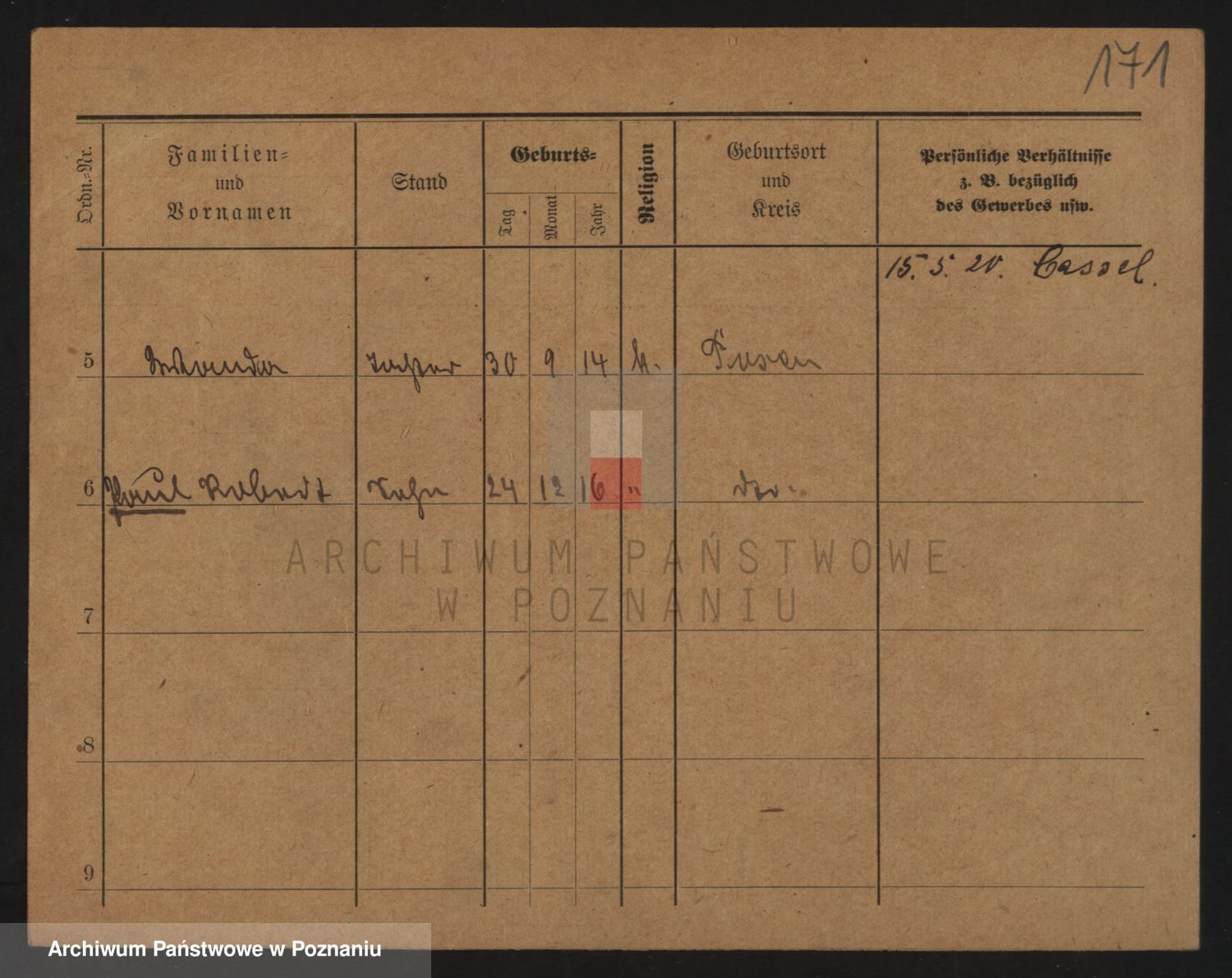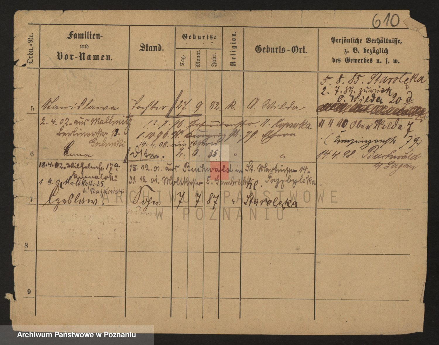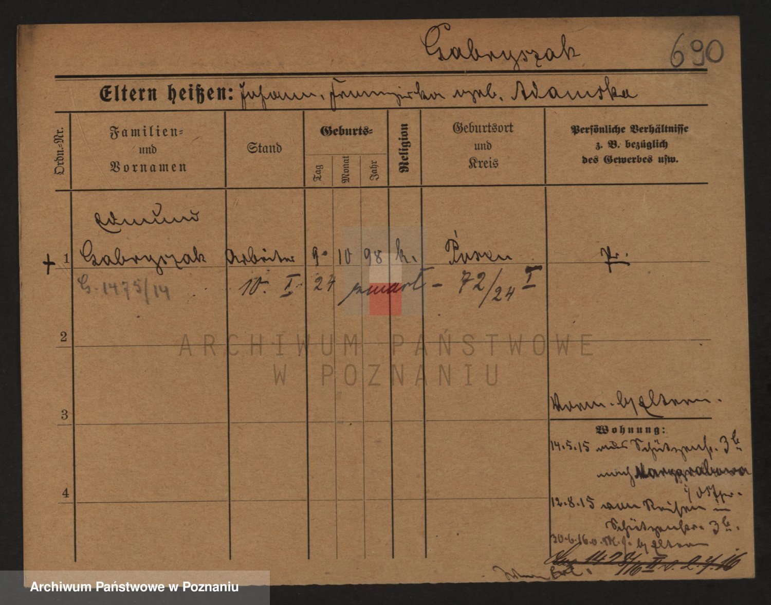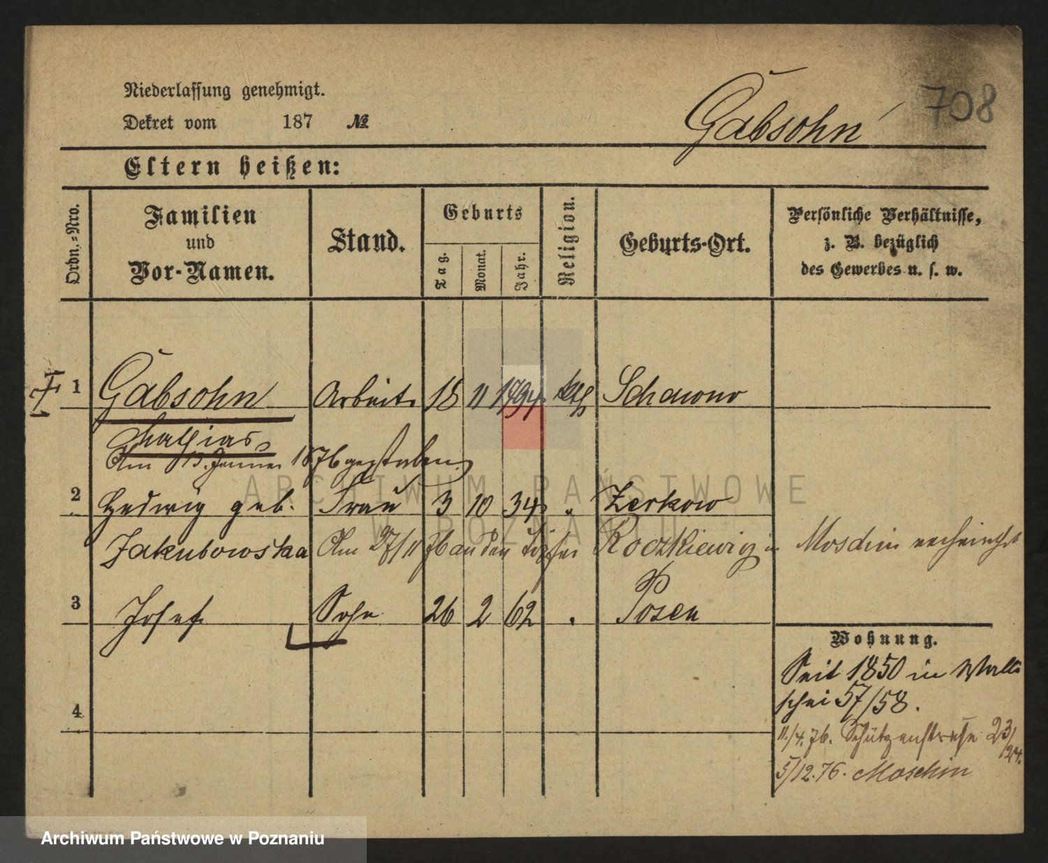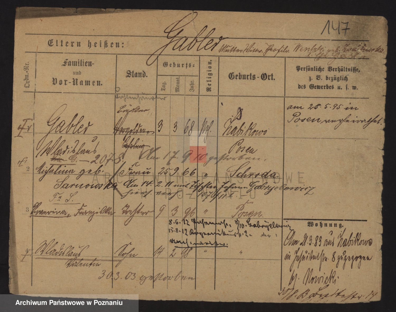 Podgląd karty osobowej dostępny jest po kliknięciu na nazwisko lub ikonkę karty. Można dokonywać powiększenia (ikony na górze) lub przechodzić między kolejnymi skanami (strzałki po bokach).