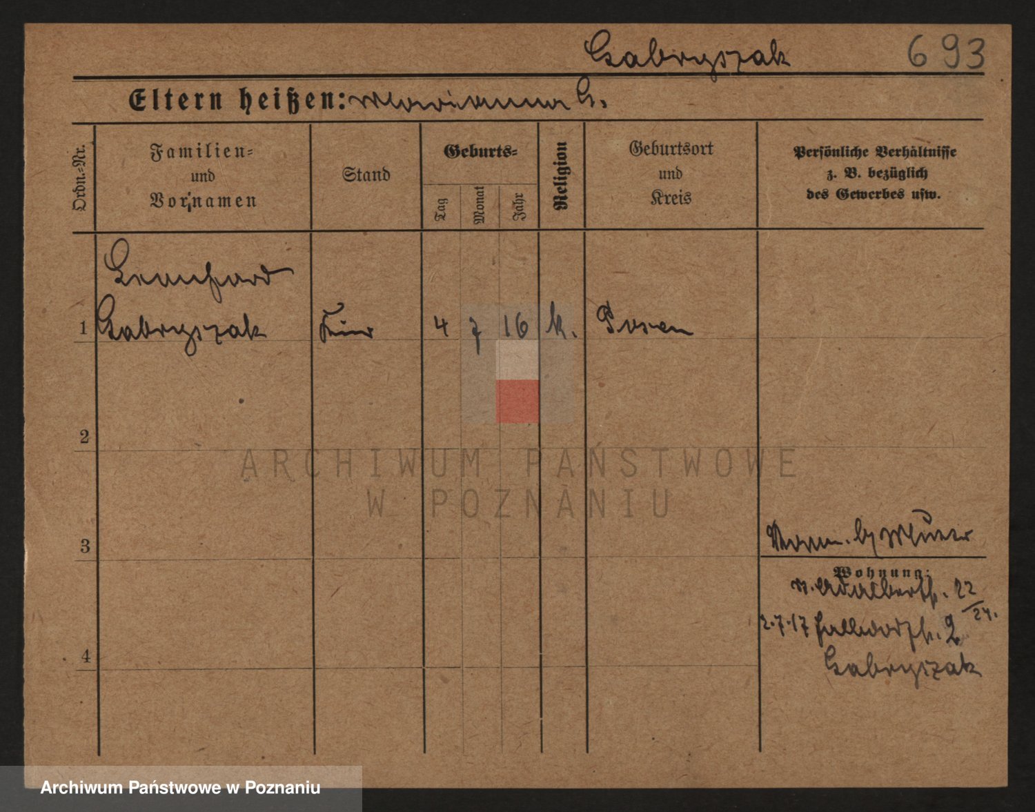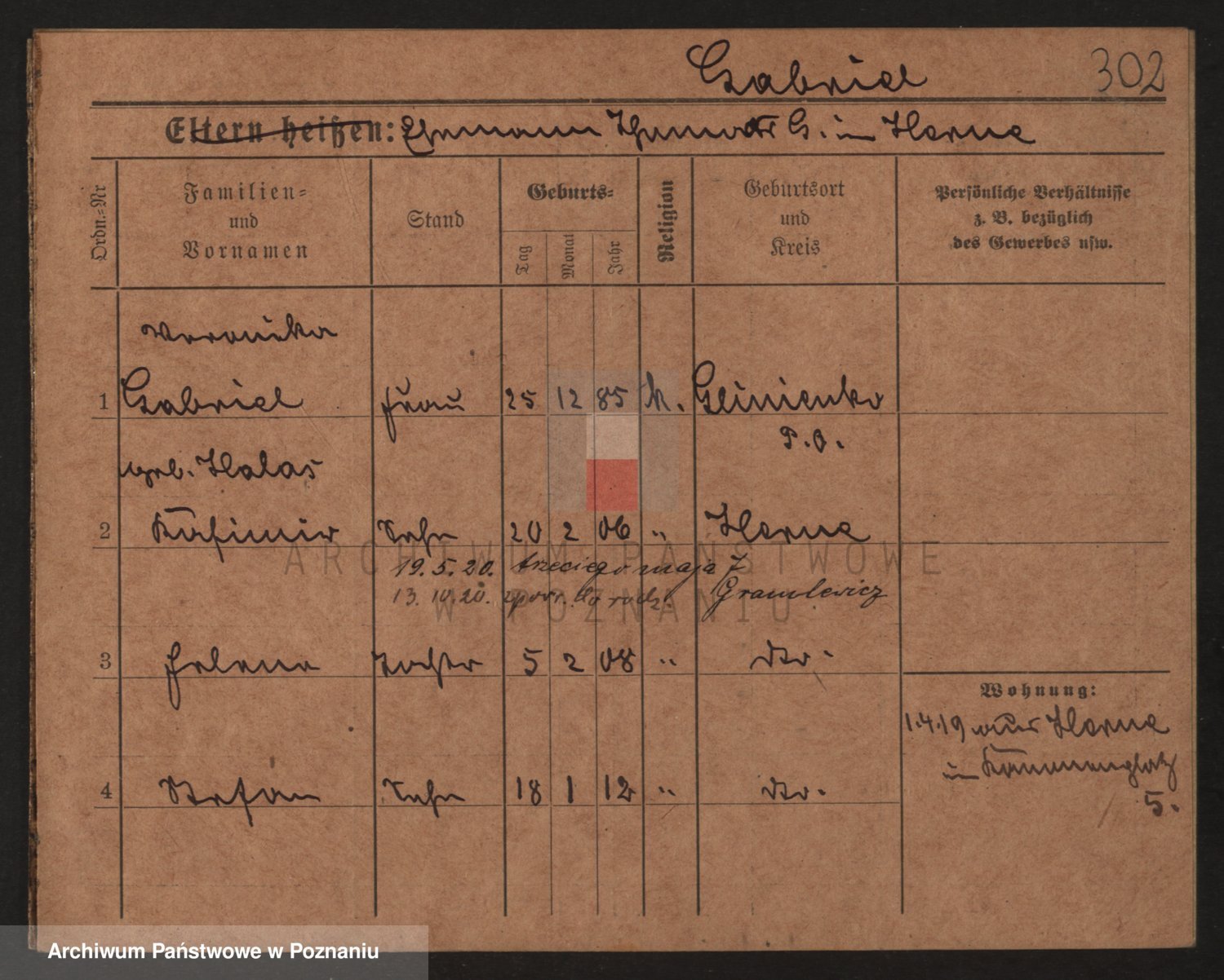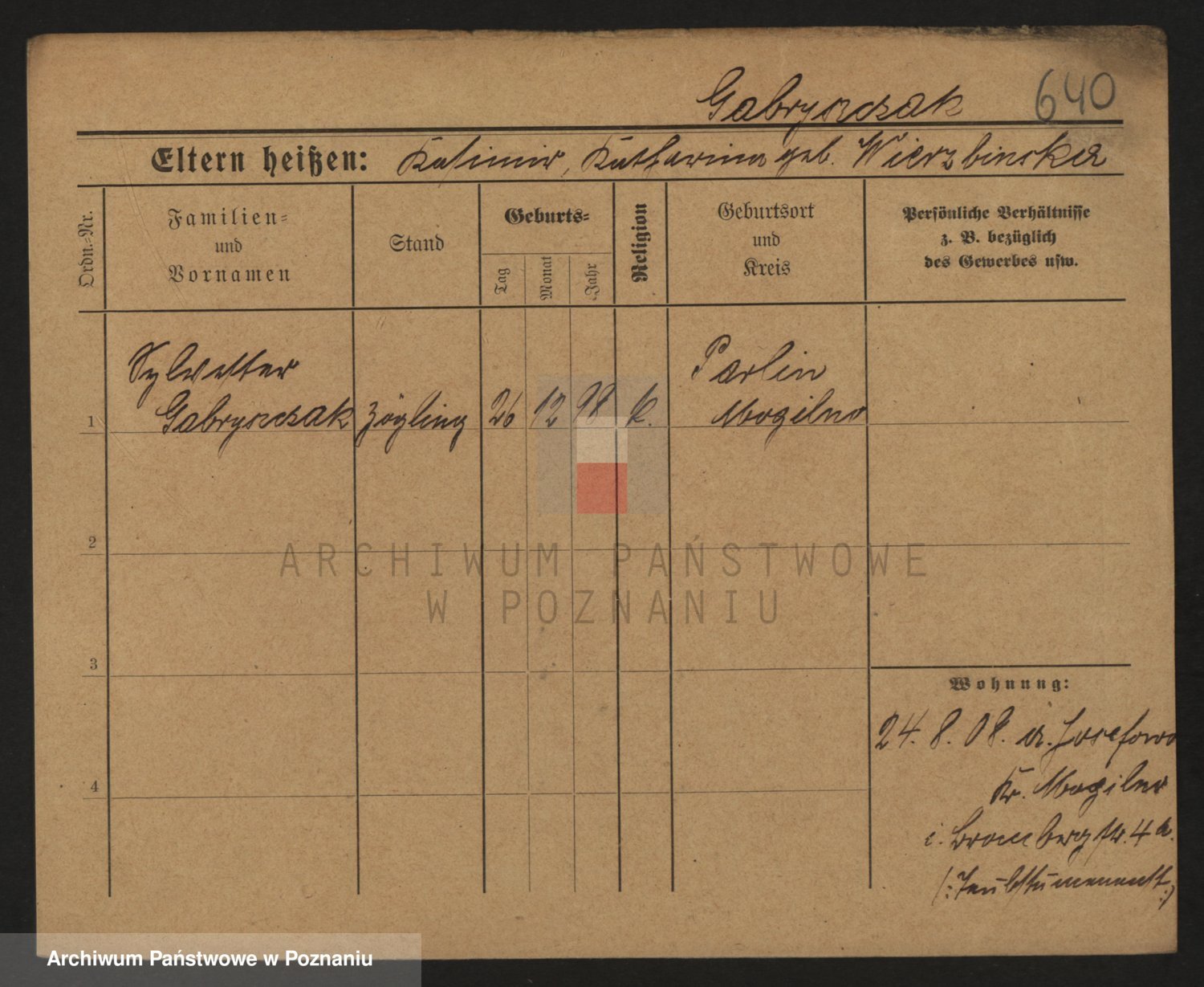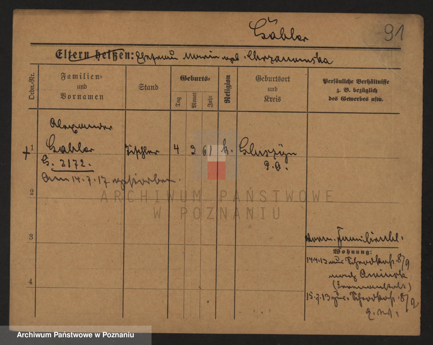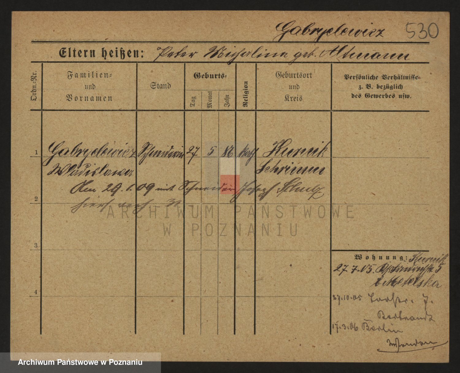 Podgląd karty osobowej dostępny jest po kliknięciu na nazwisko lub ikonkę karty. Można dokonywać powiększenia (ikony na górze) lub przechodzić między kolejnymi skanami (strzałki po bokach).