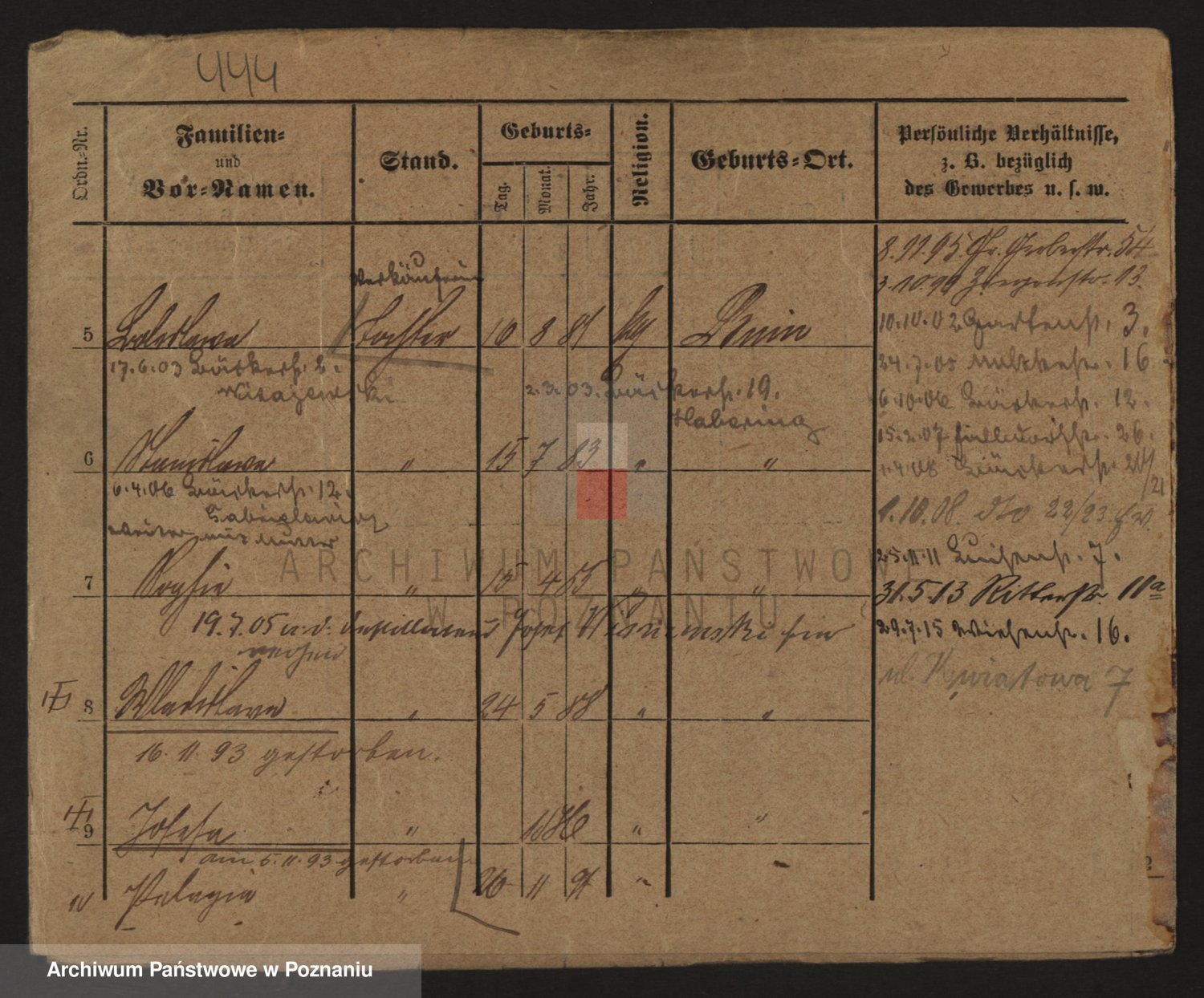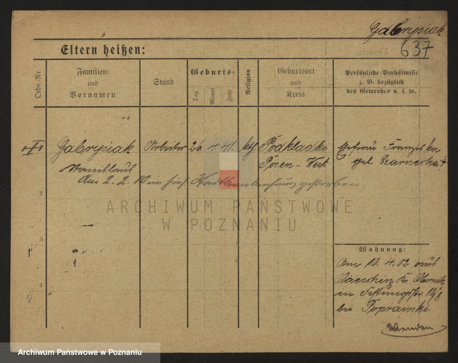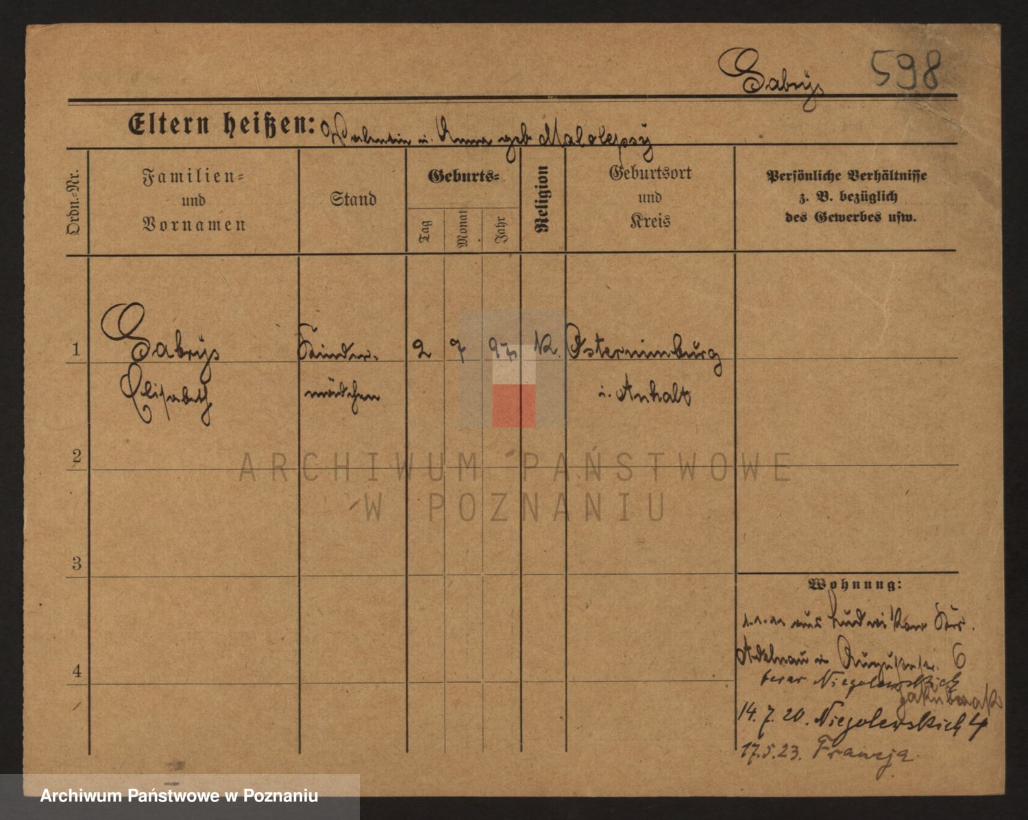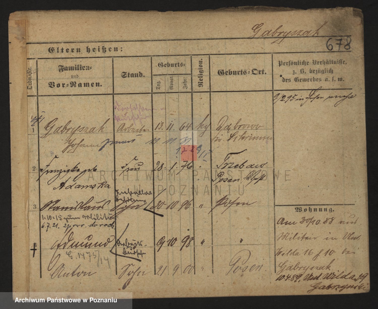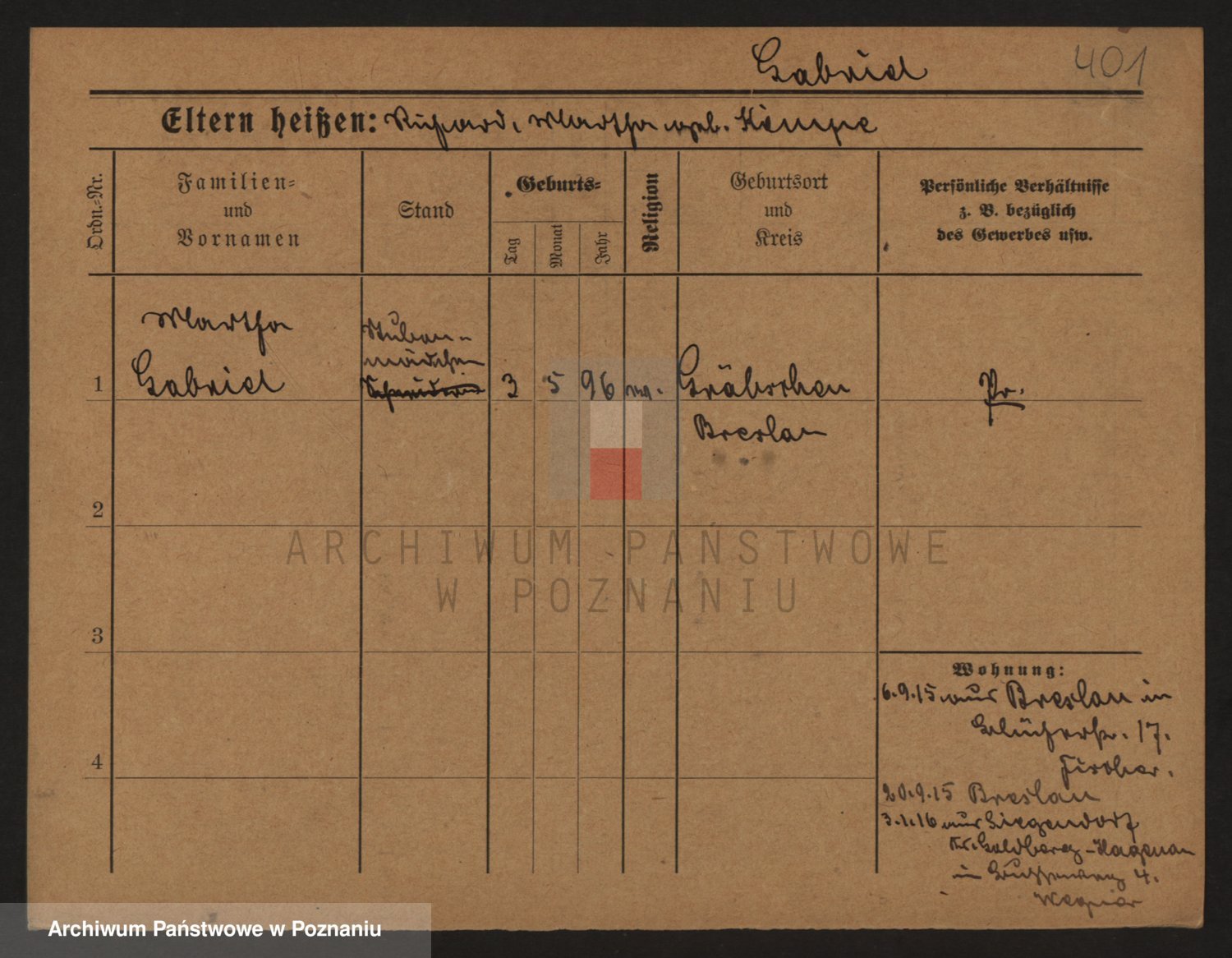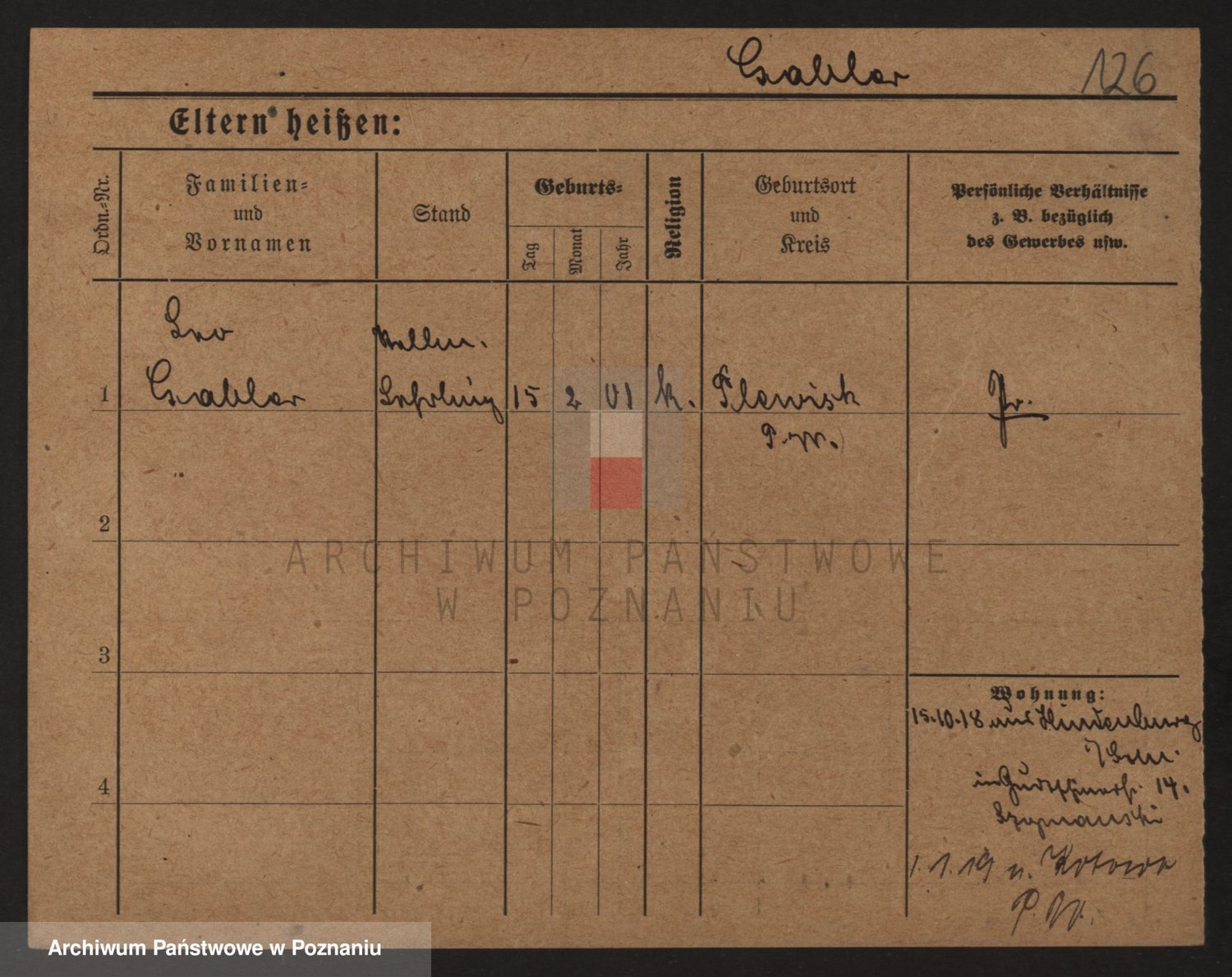 Podgląd karty osobowej dostępny jest po kliknięciu na nazwisko lub ikonkę karty. Można dokonywać powiększenia (ikony na górze) lub przechodzić między kolejnymi skanami (strzałki po bokach).