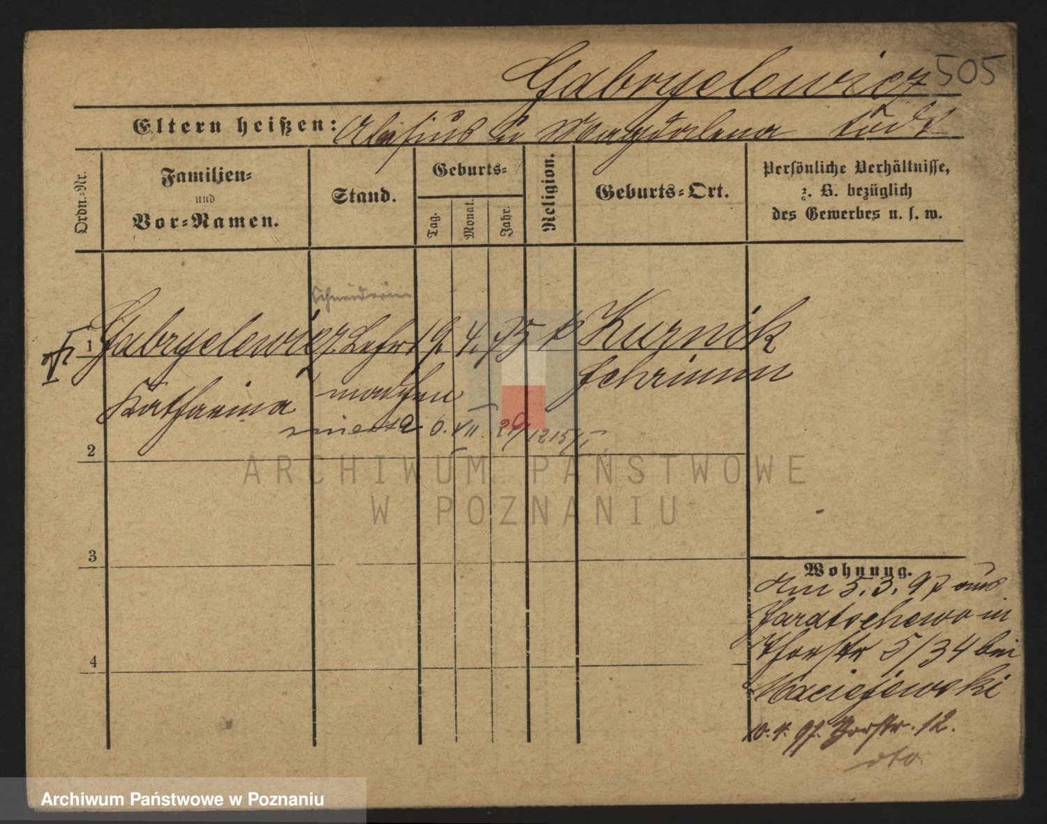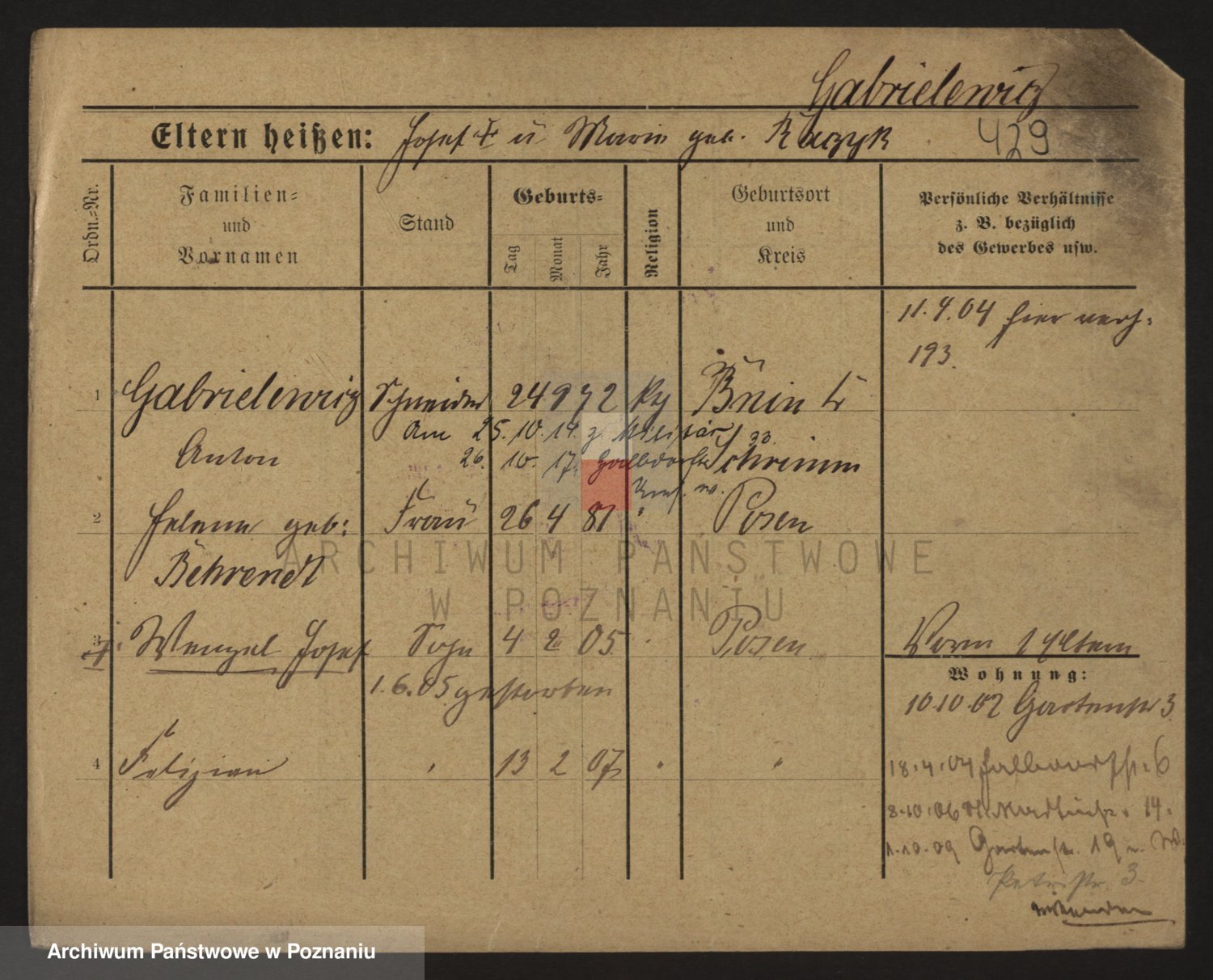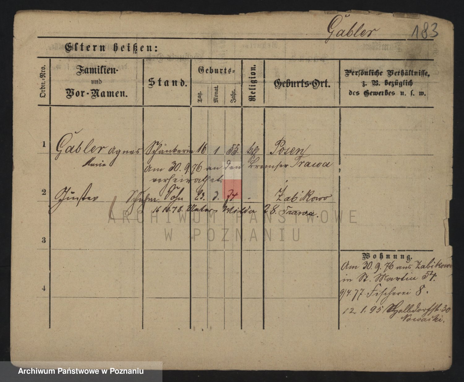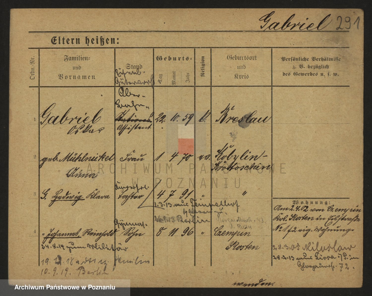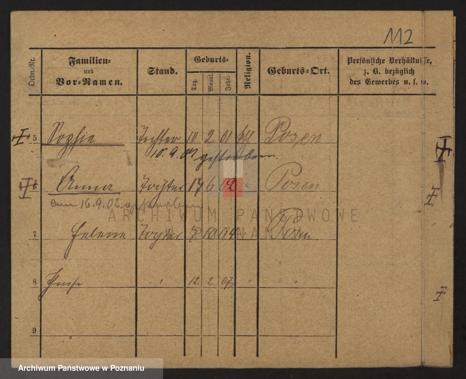 Podgląd karty osobowej dostępny jest po kliknięciu na nazwisko lub ikonkę karty. Można dokonywać powiększenia (ikony na górze) lub przechodzić między kolejnymi skanami (strzałki po bokach).
