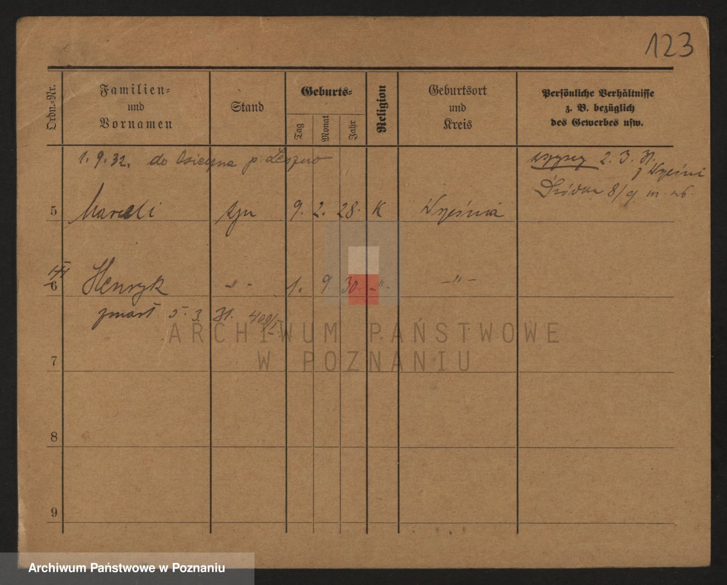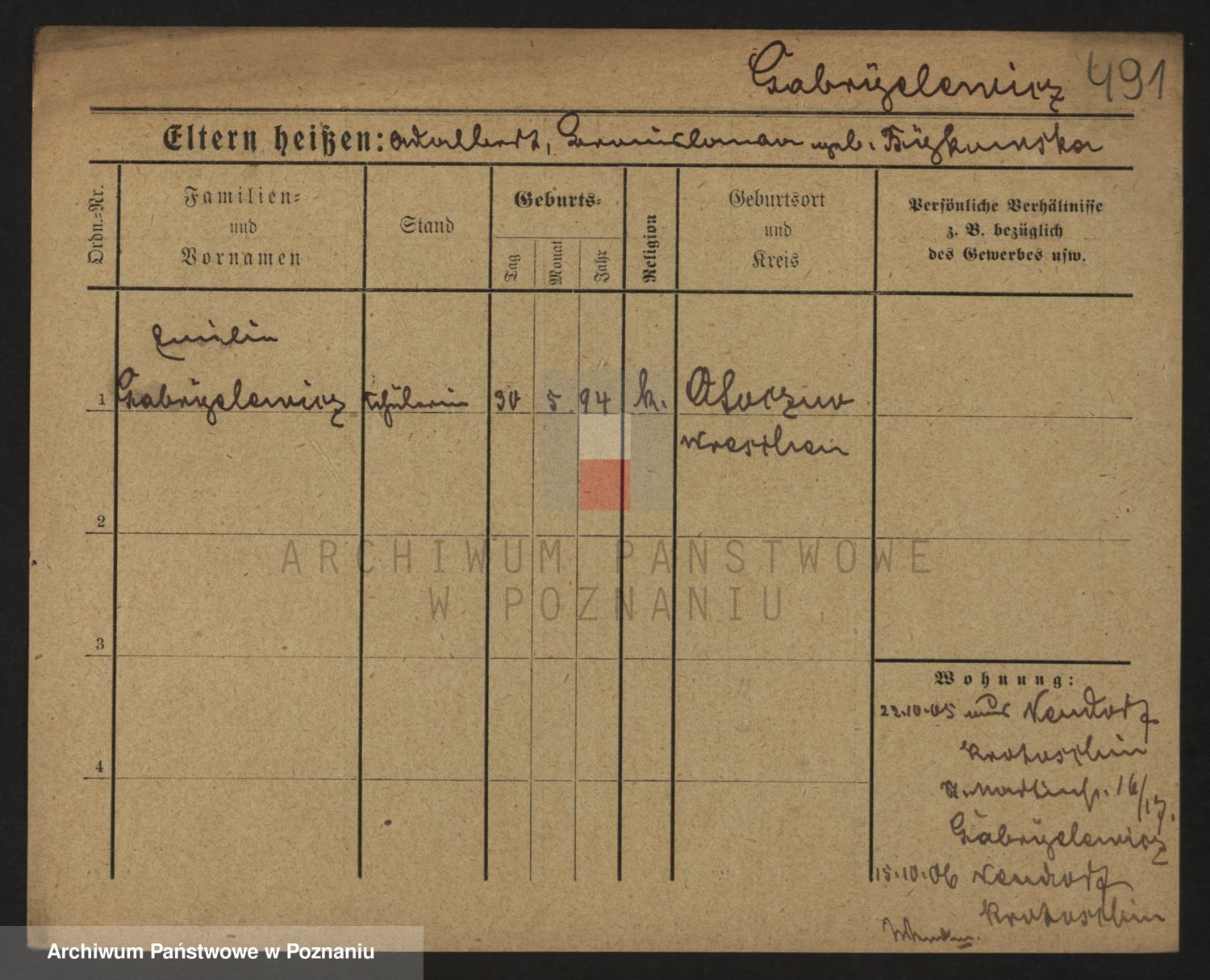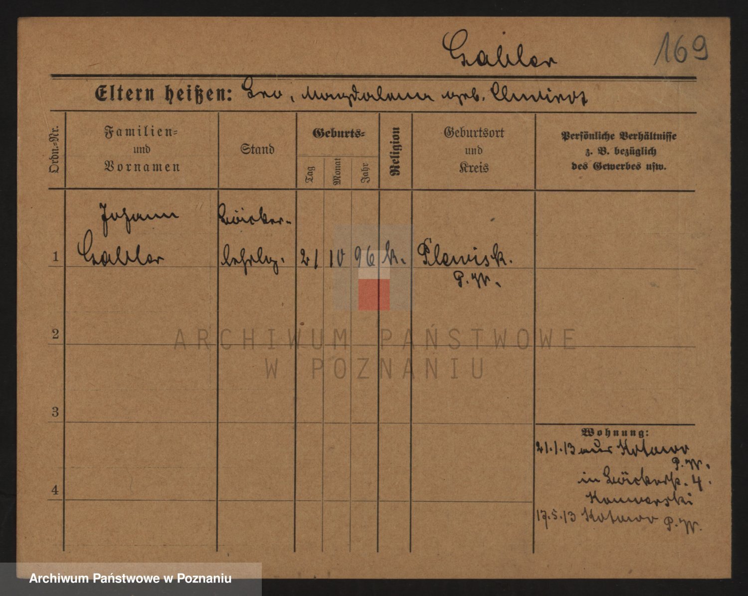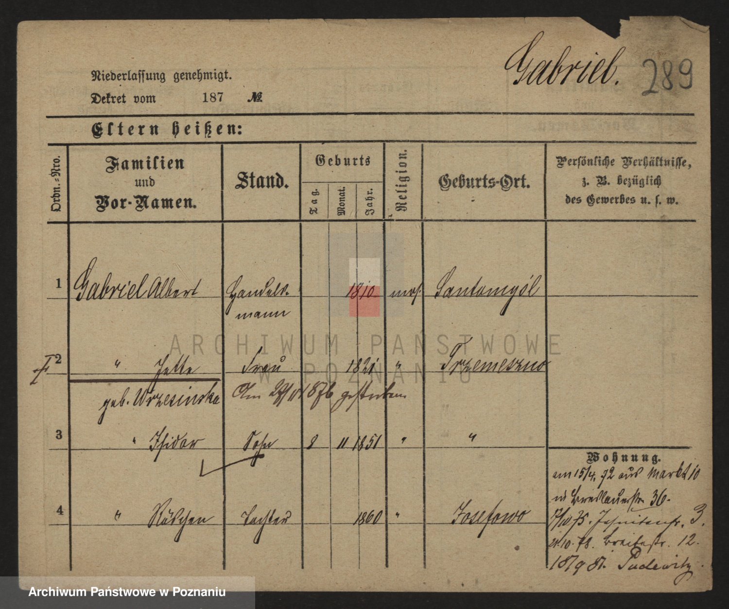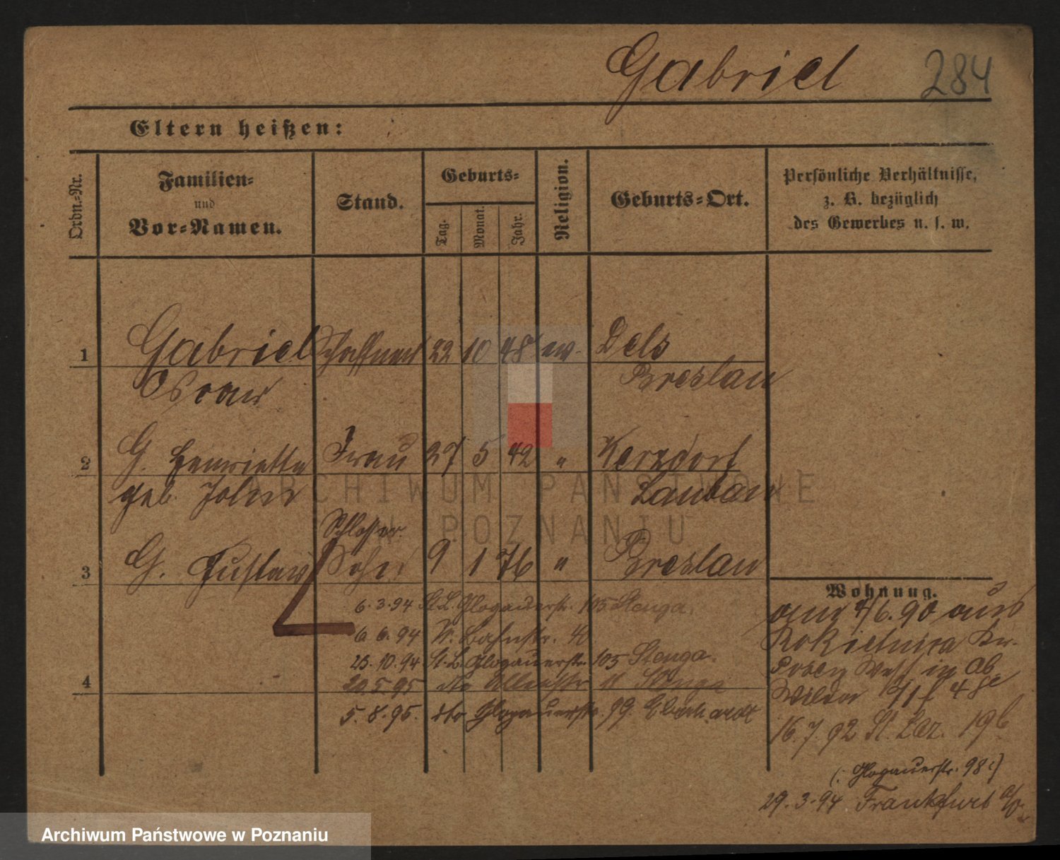 Podgląd karty osobowej dostępny jest po kliknięciu na nazwisko lub ikonkę karty. Można dokonywać powiększenia (ikony na górze) lub przechodzić między kolejnymi skanami (strzałki po bokach).