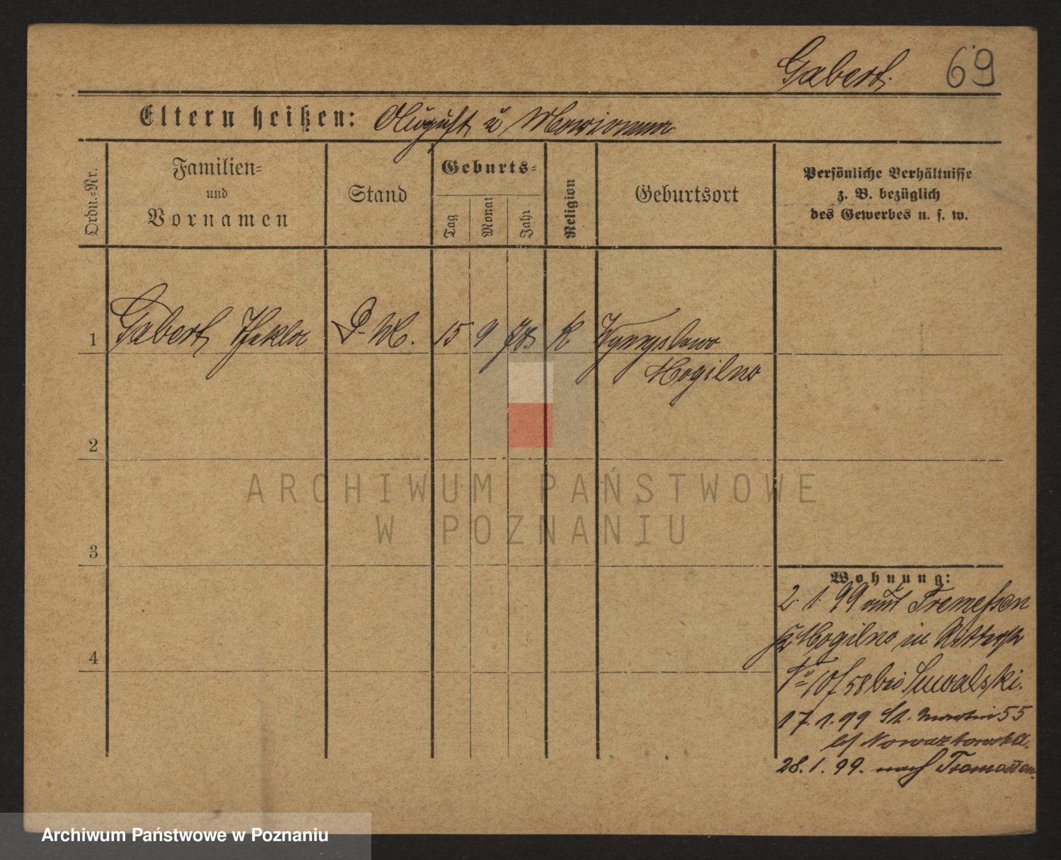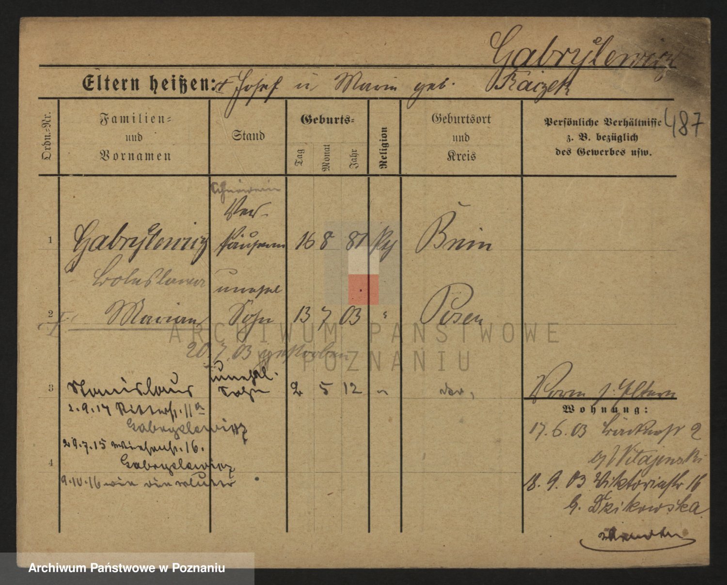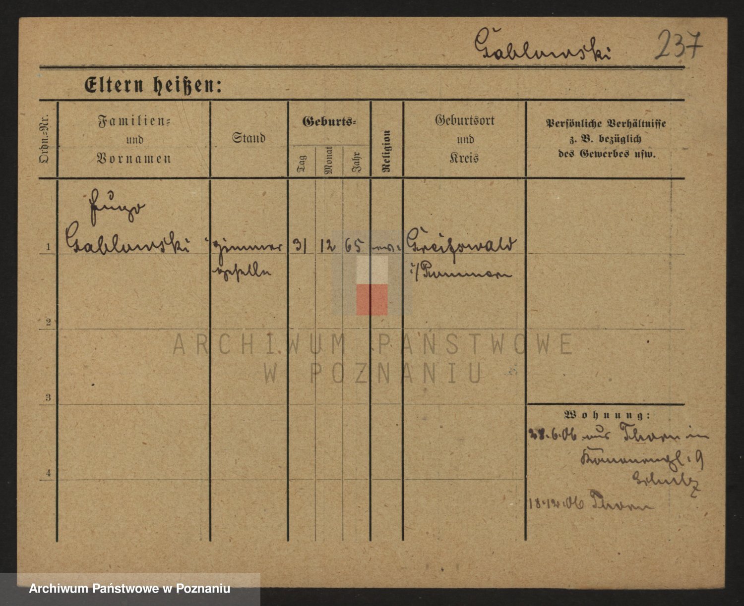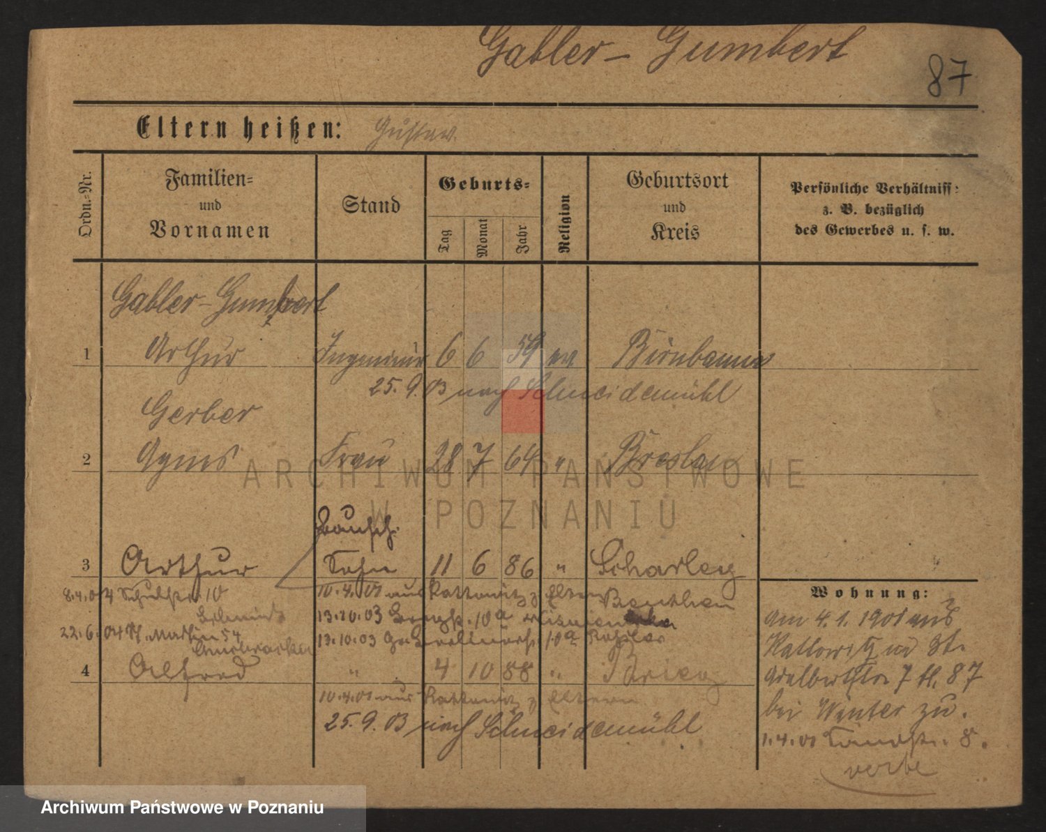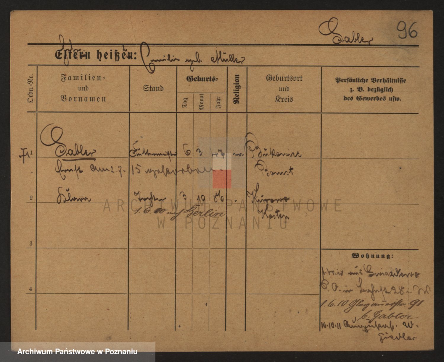 Podgląd karty osobowej dostępny jest po kliknięciu na nazwisko lub ikonkę karty. Można dokonywać powiększenia (ikony na górze) lub przechodzić między kolejnymi skanami (strzałki po bokach).