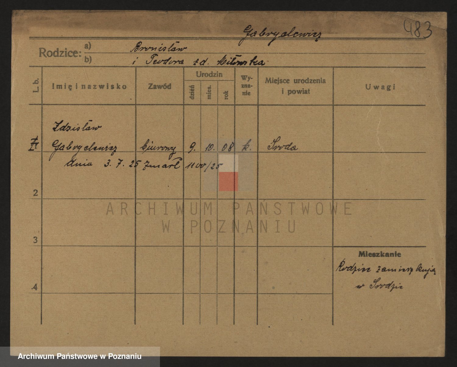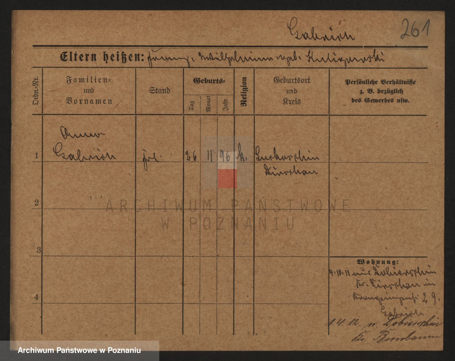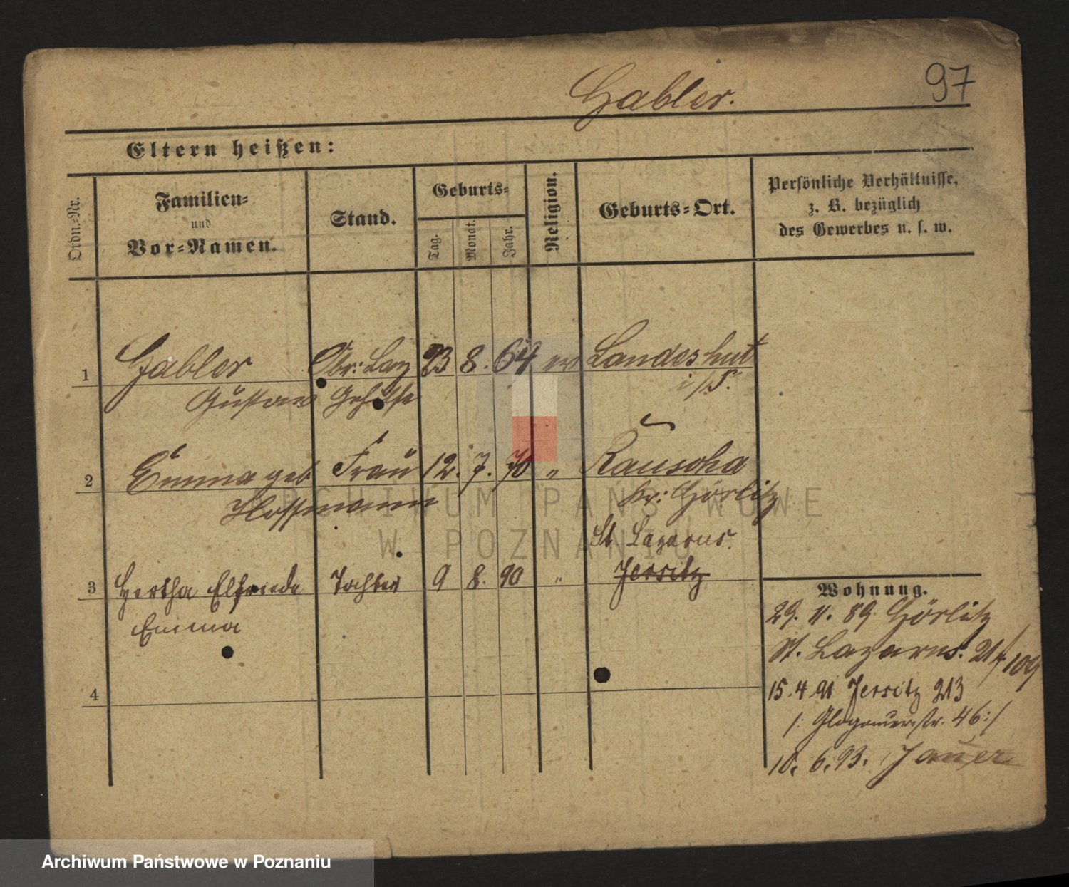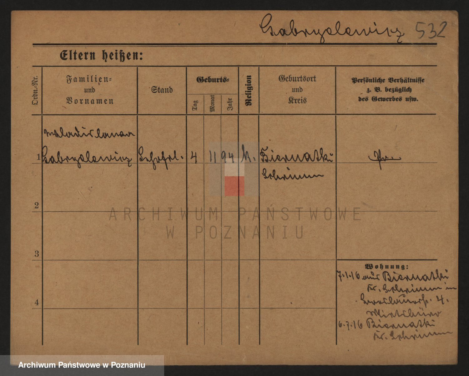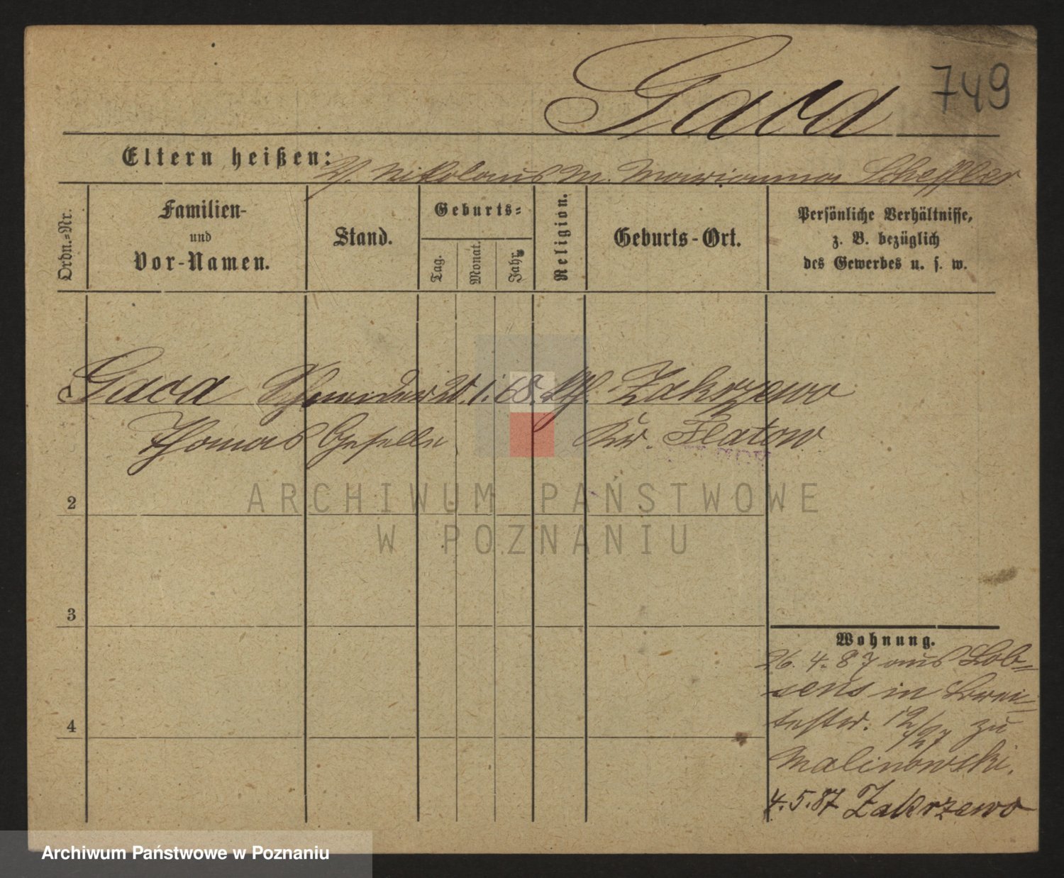 Podgląd karty osobowej dostępny jest po kliknięciu na nazwisko lub ikonkę karty. Można dokonywać powiększenia (ikony na górze) lub przechodzić między kolejnymi skanami (strzałki po bokach).