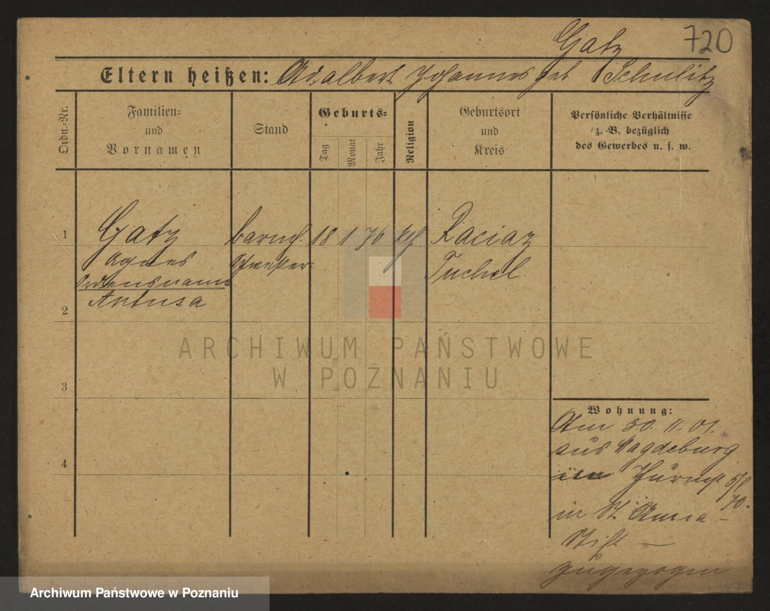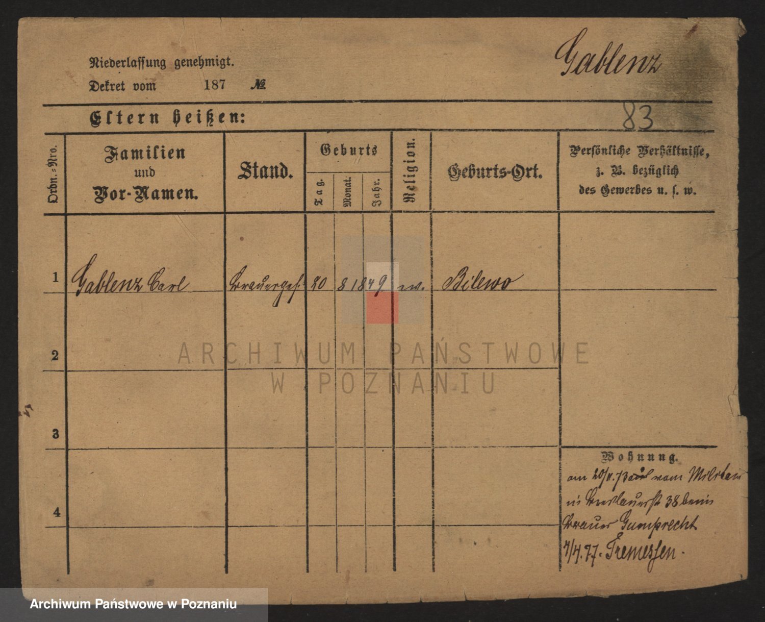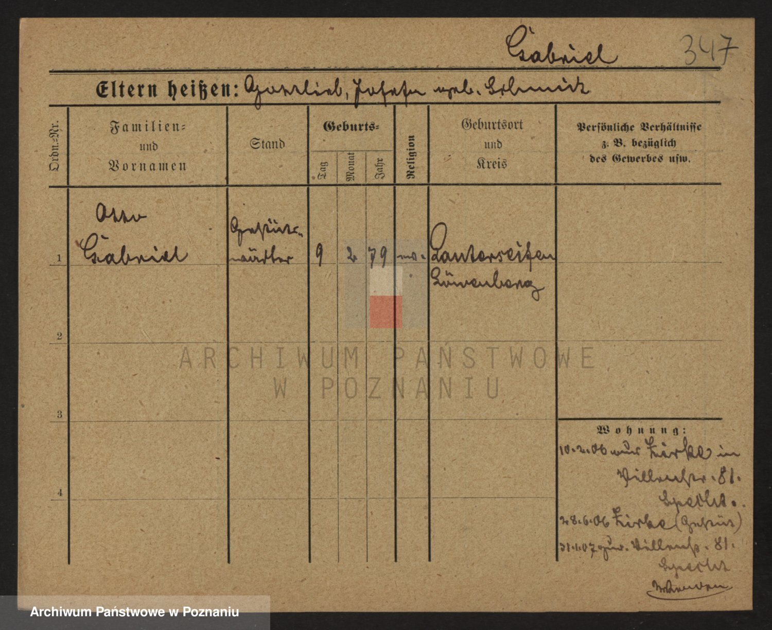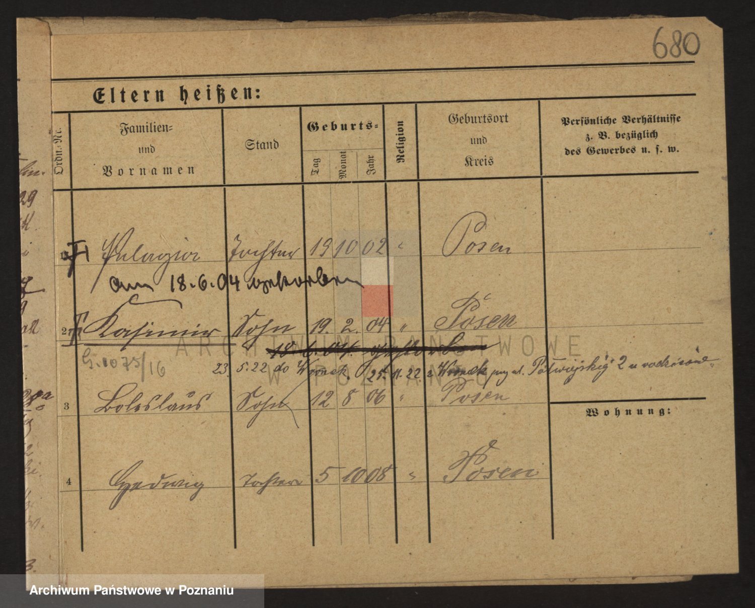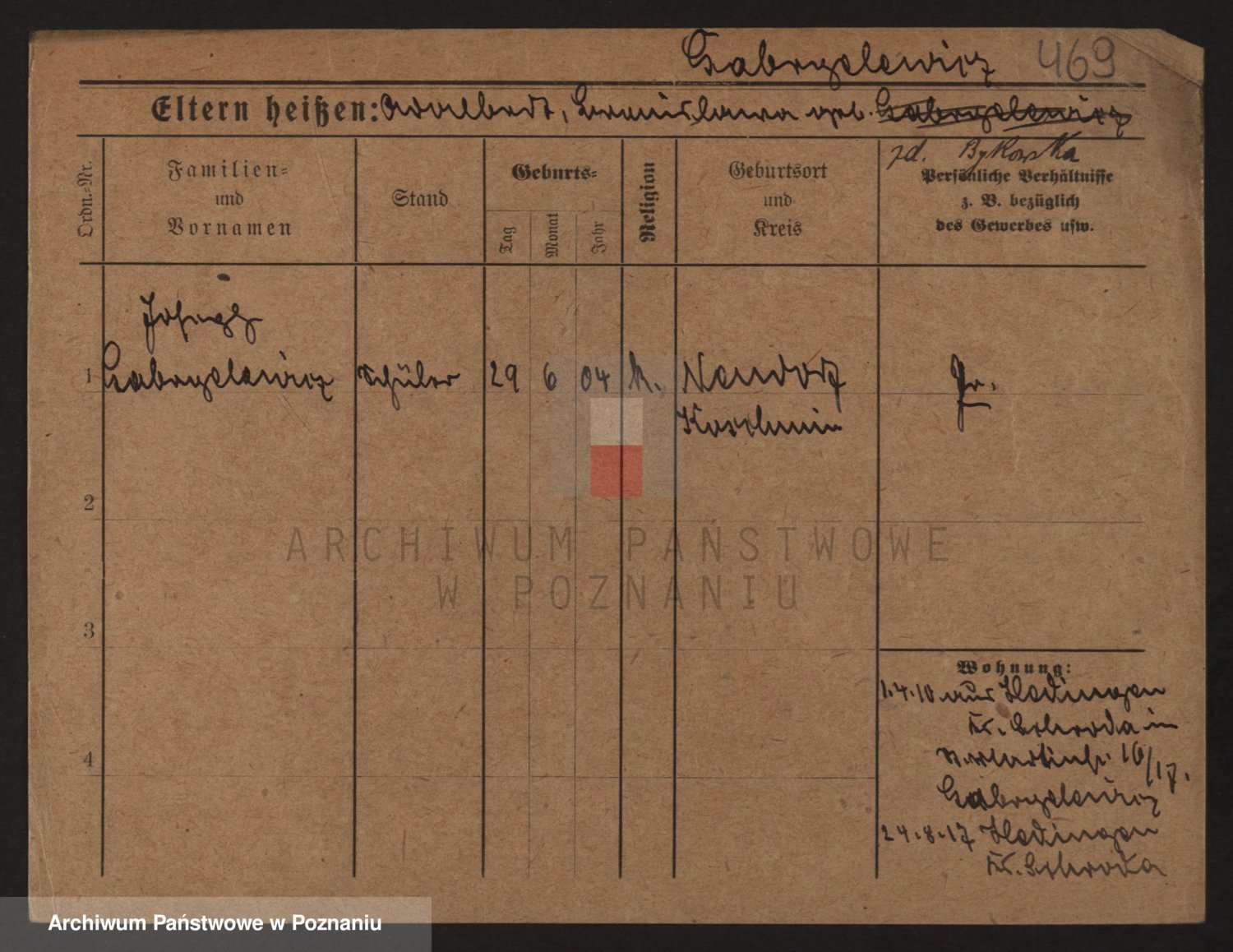 Podgląd karty osobowej dostępny jest po kliknięciu na nazwisko lub ikonkę karty. Można dokonywać powiększenia (ikony na górze) lub przechodzić między kolejnymi skanami (strzałki po bokach).