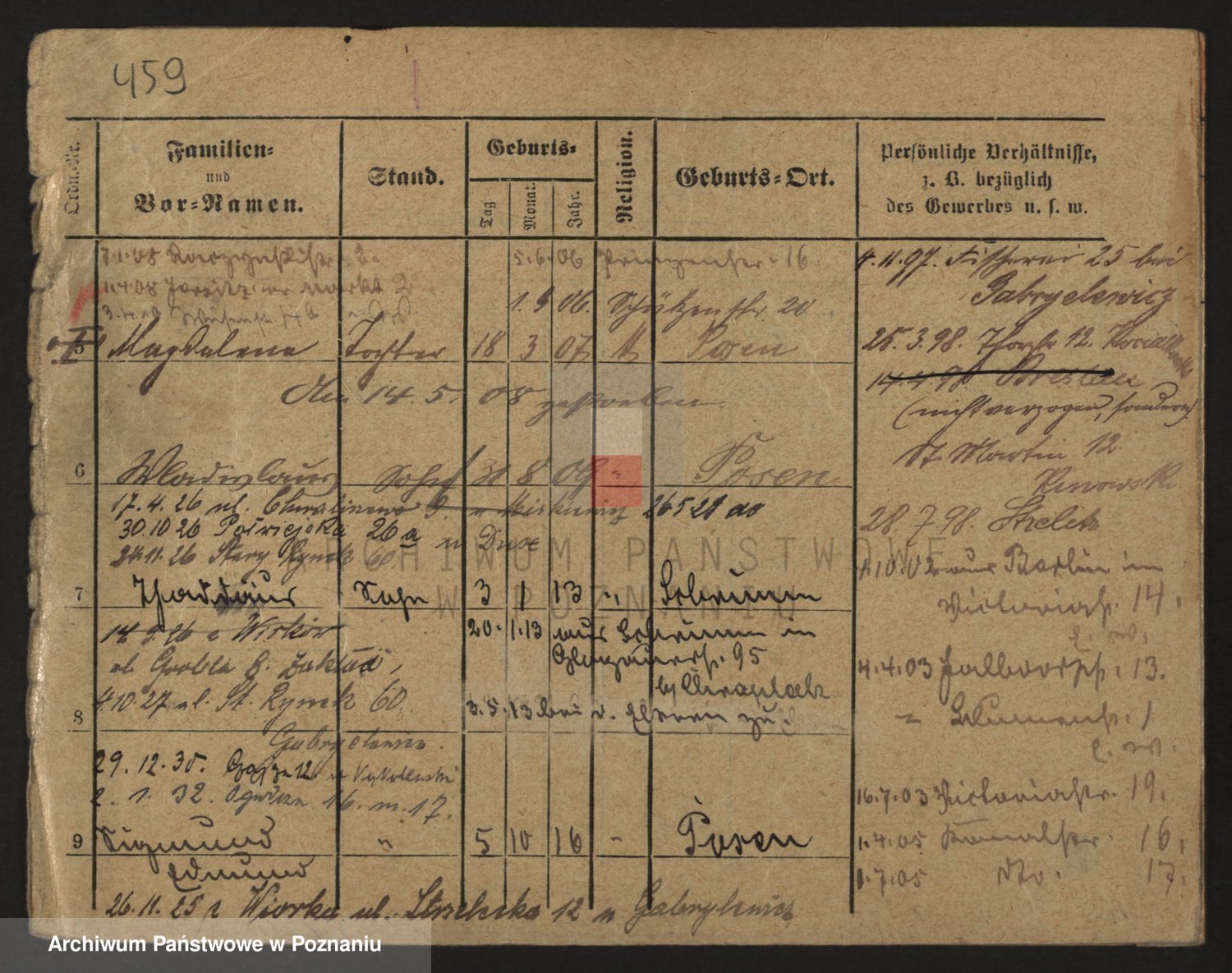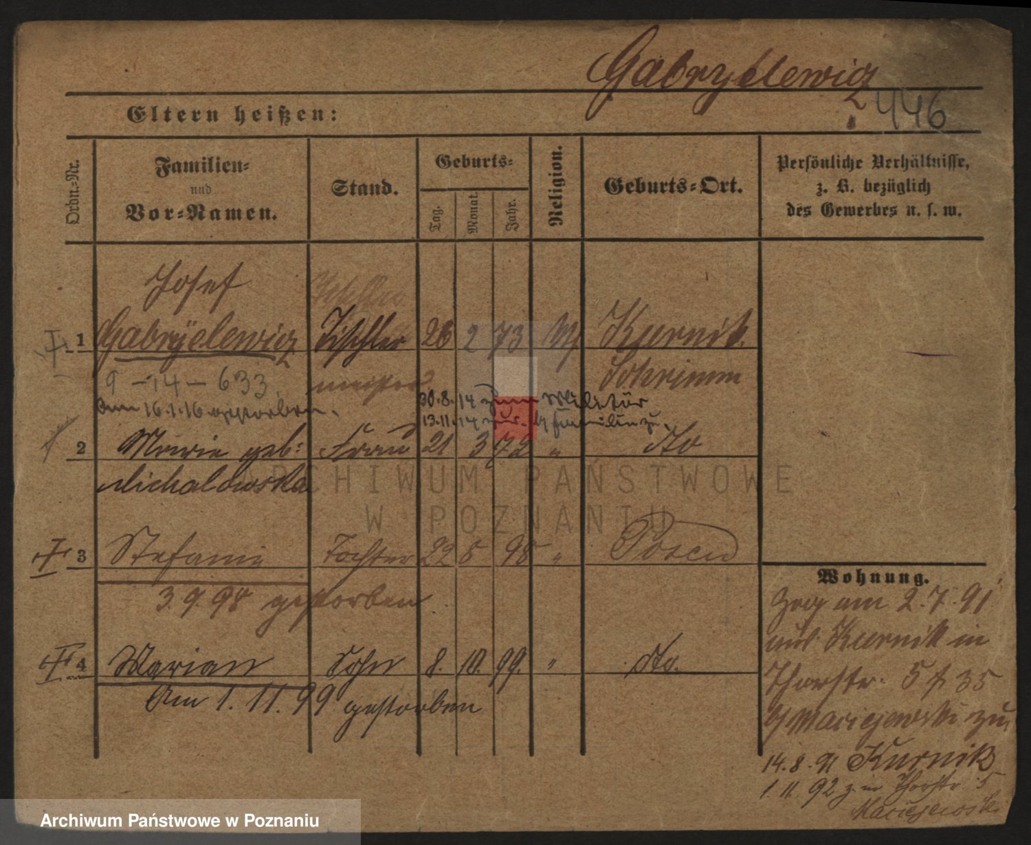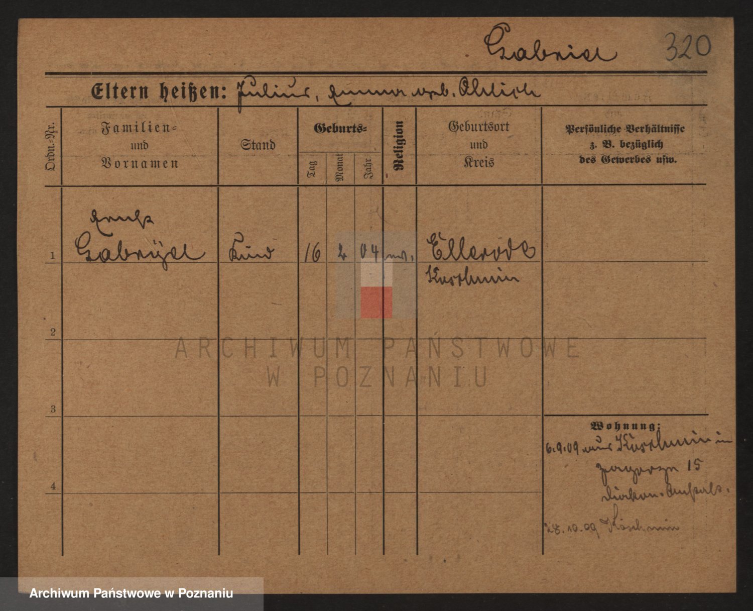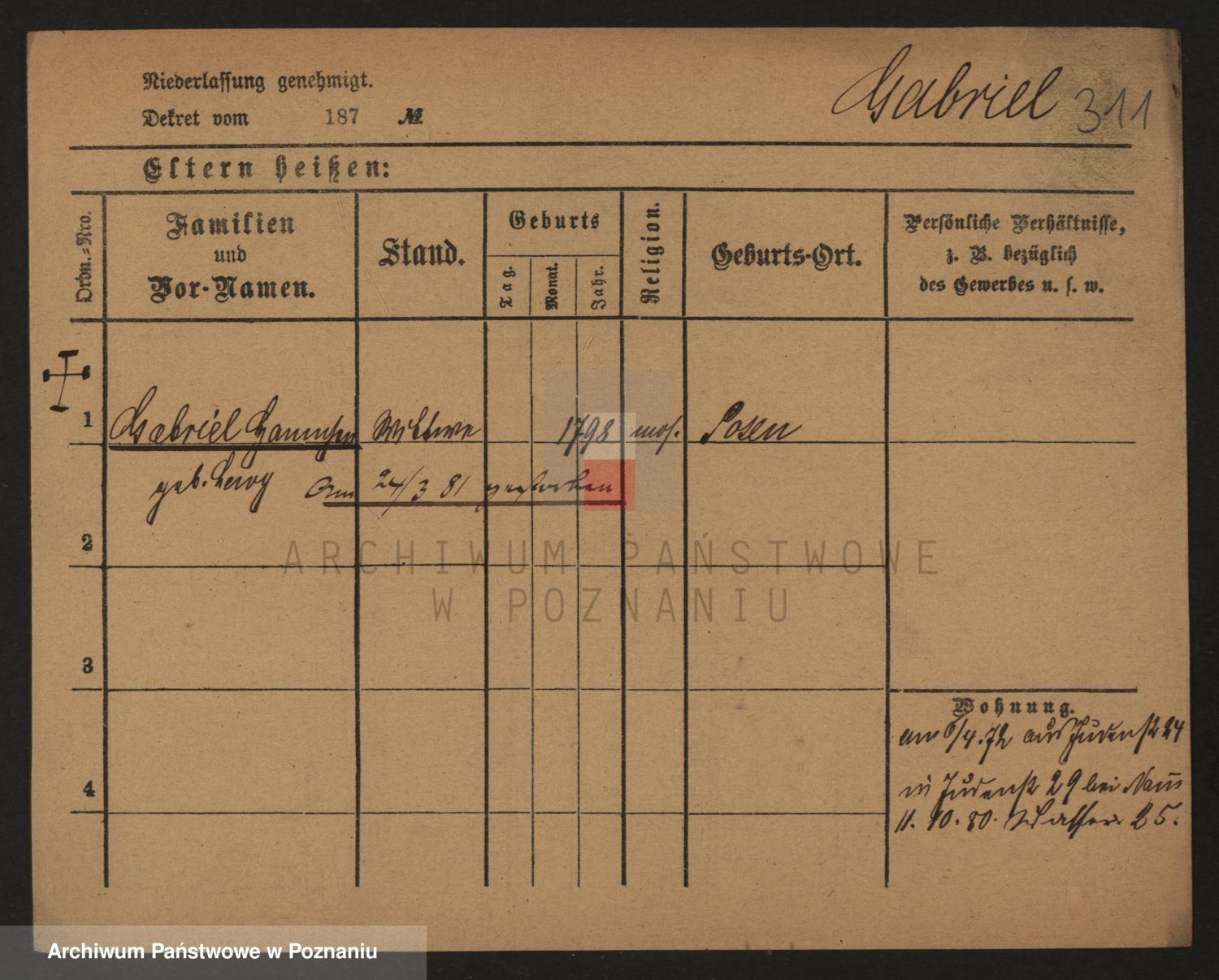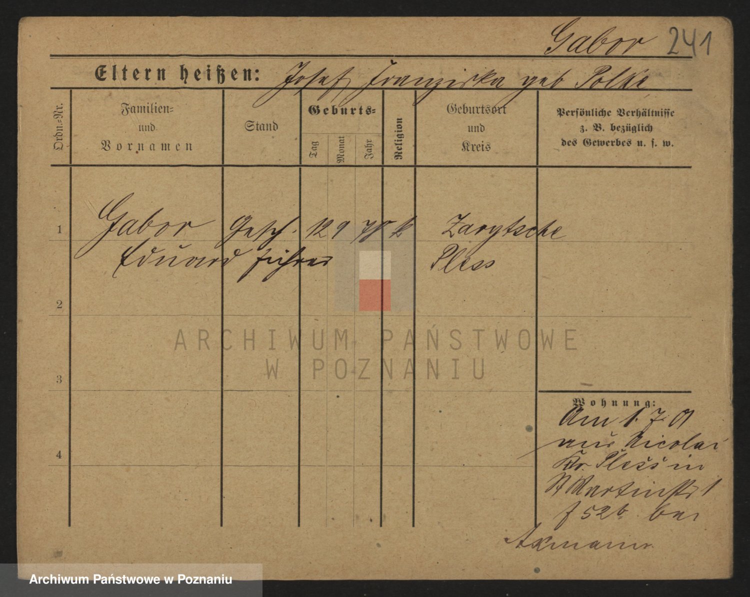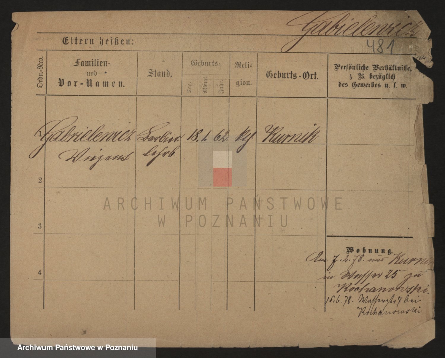 Podgląd karty osobowej dostępny jest po kliknięciu na nazwisko lub ikonkę karty. Można dokonywać powiększenia (ikony na górze) lub przechodzić między kolejnymi skanami (strzałki po bokach).