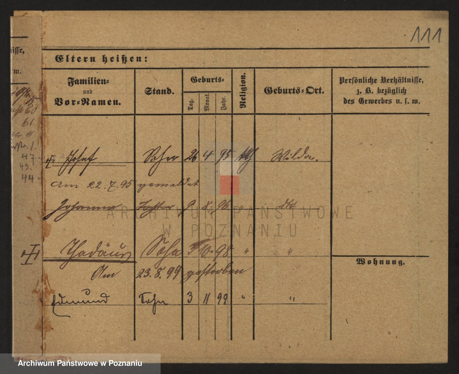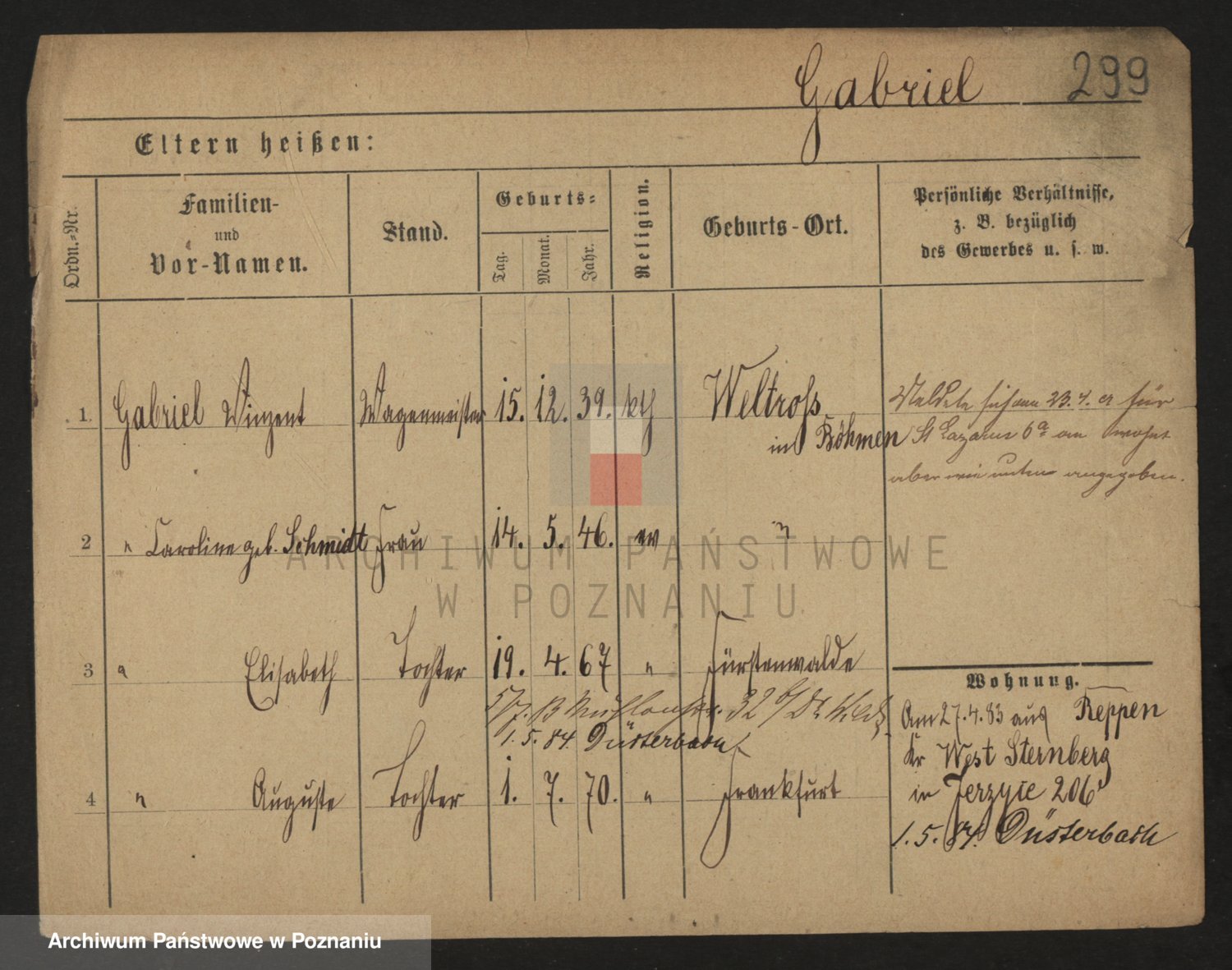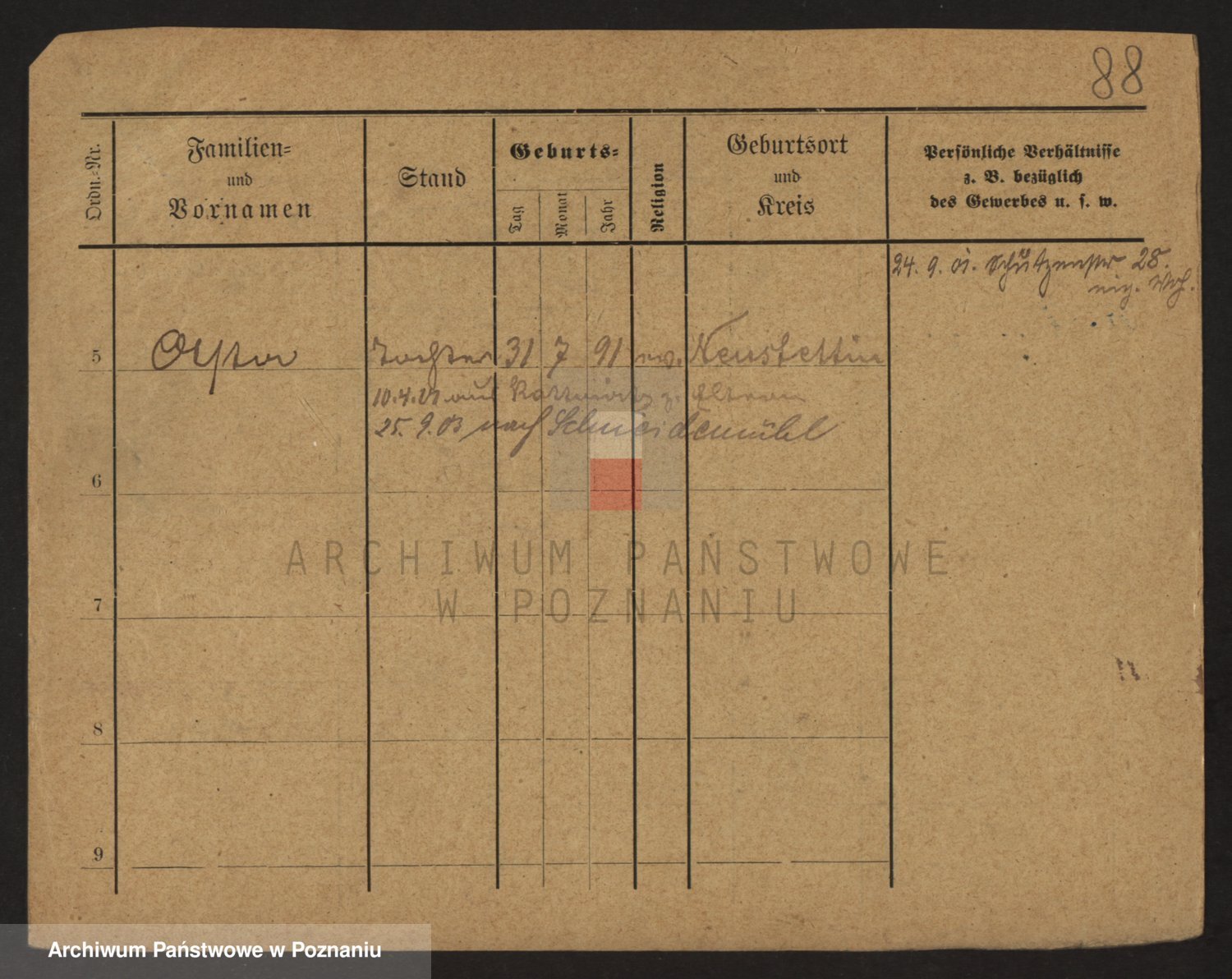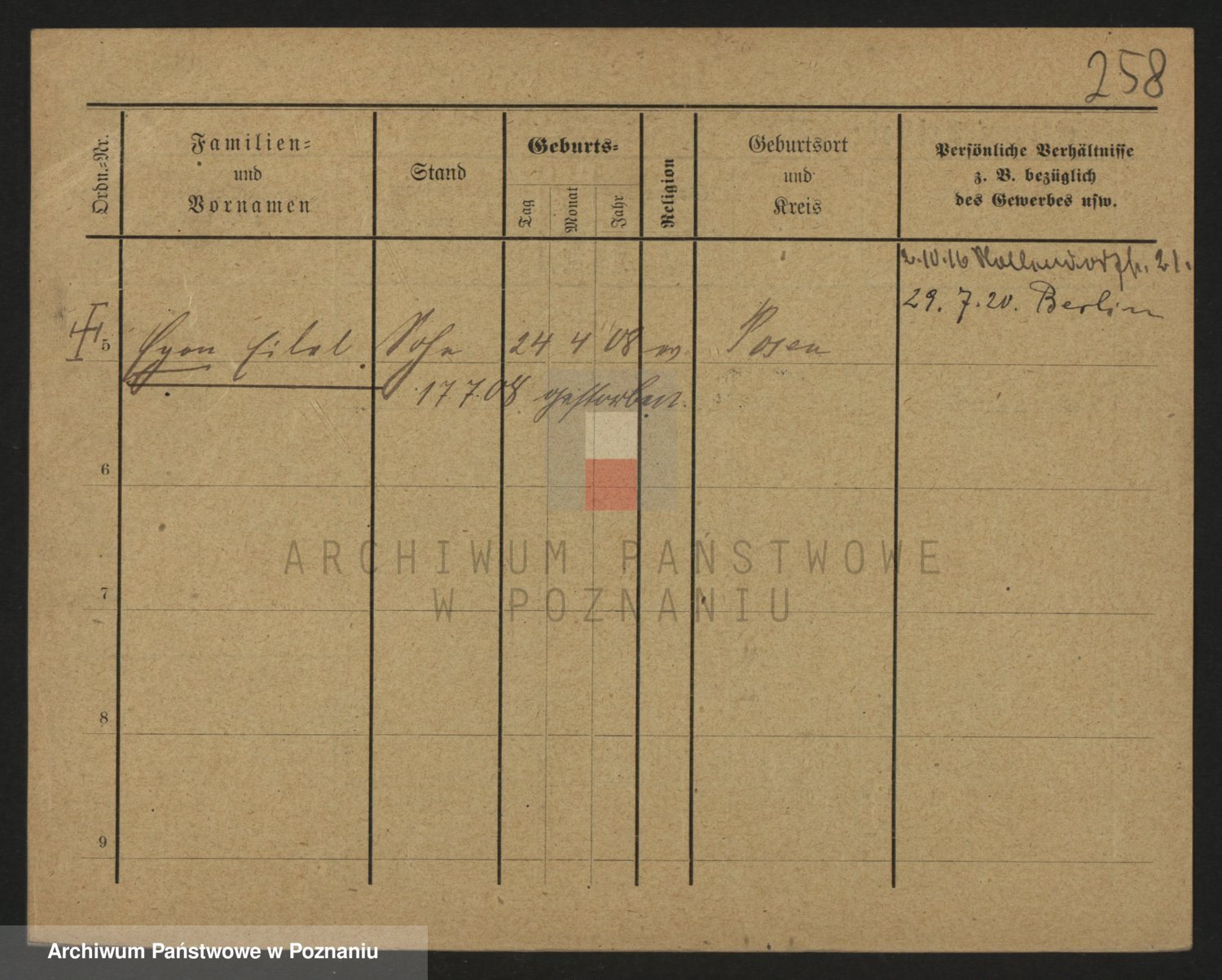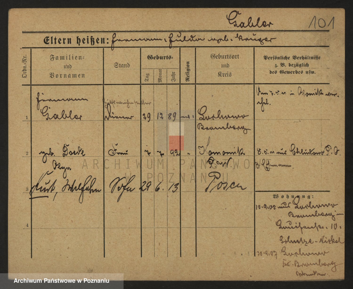 Podgląd karty osobowej dostępny jest po kliknięciu na nazwisko lub ikonkę karty. Można dokonywać powiększenia (ikony na górze) lub przechodzić między kolejnymi skanami (strzałki po bokach).