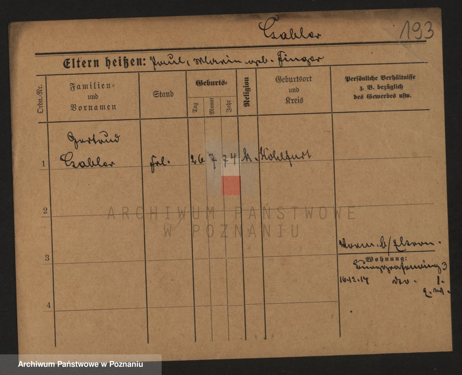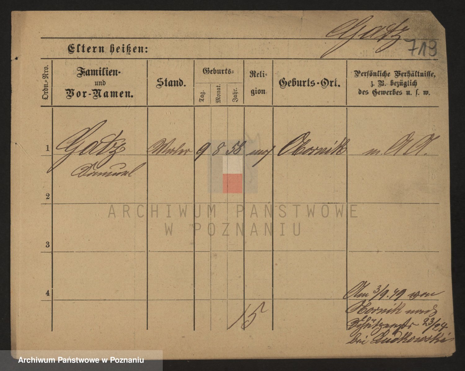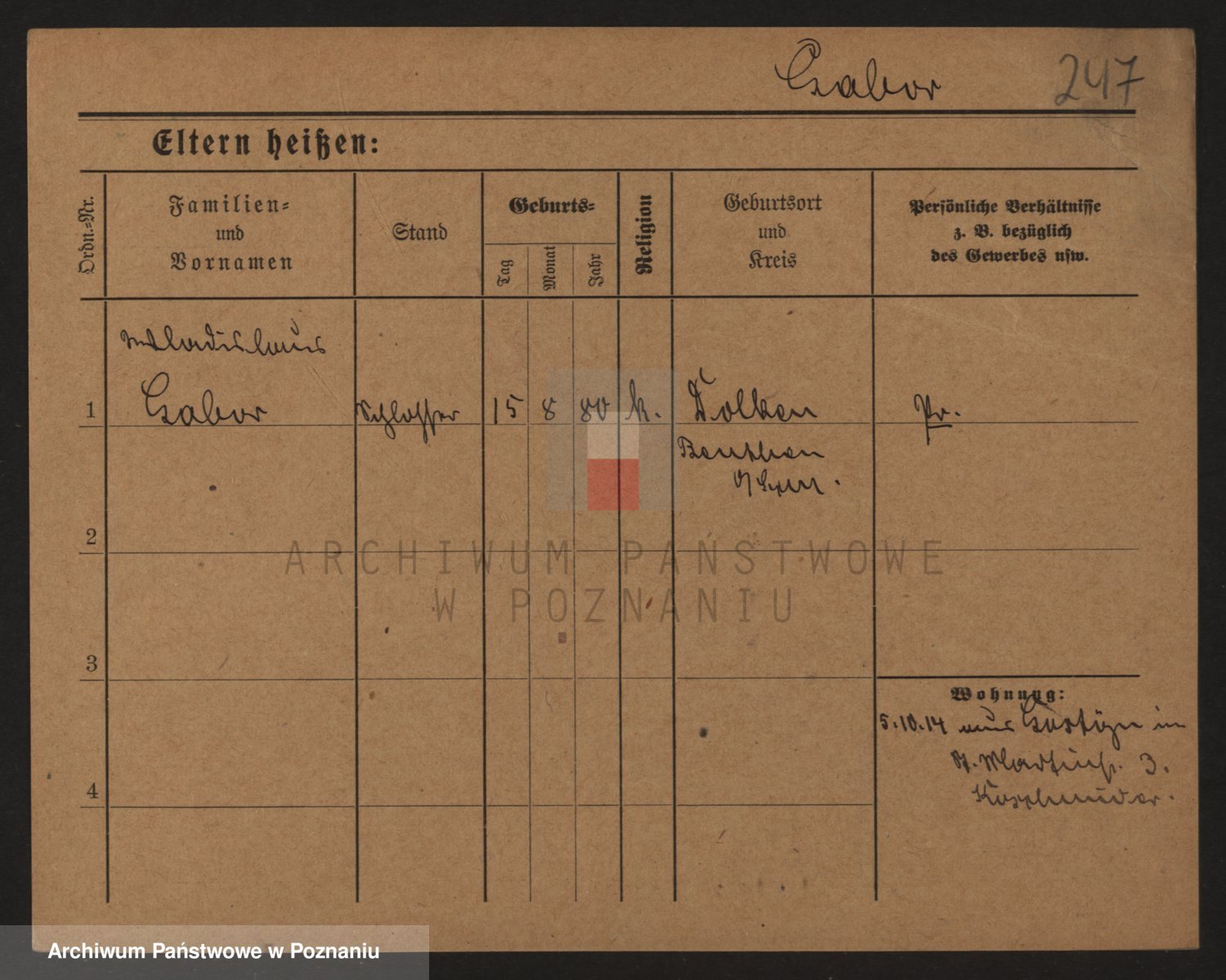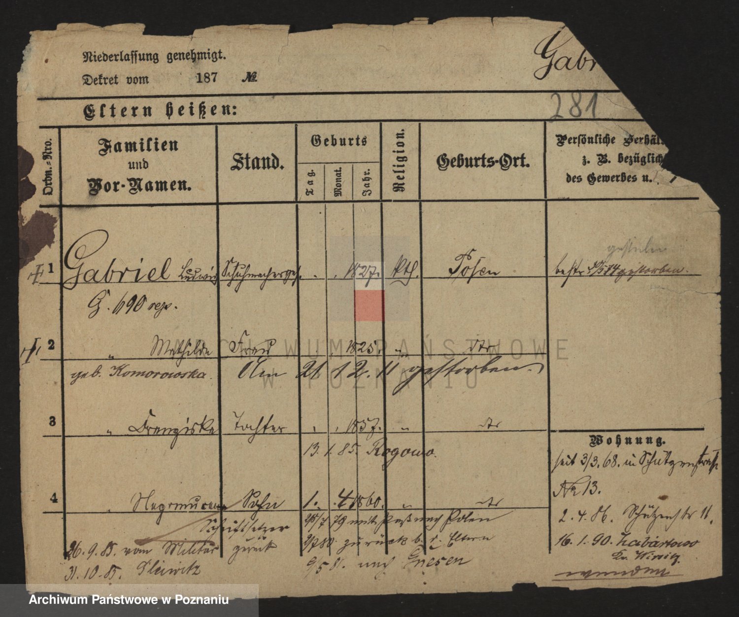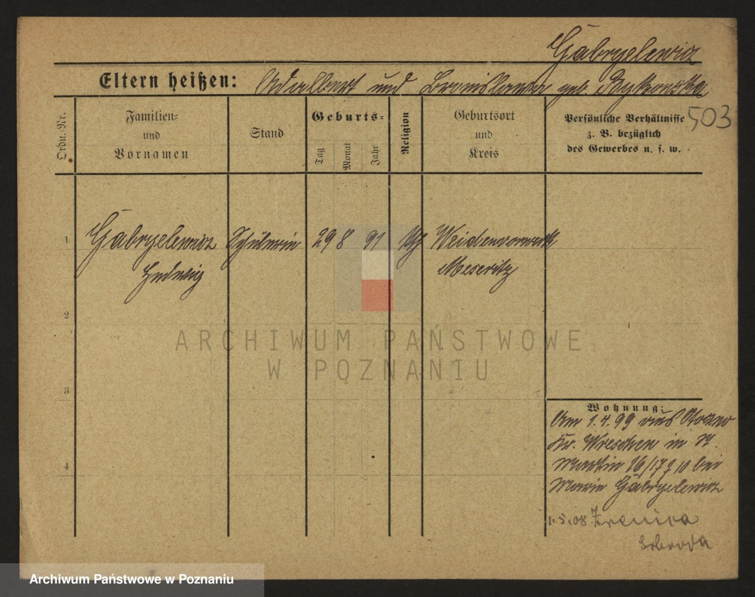 Podgląd karty osobowej dostępny jest po kliknięciu na nazwisko lub ikonkę karty. Można dokonywać powiększenia (ikony na górze) lub przechodzić między kolejnymi skanami (strzałki po bokach).