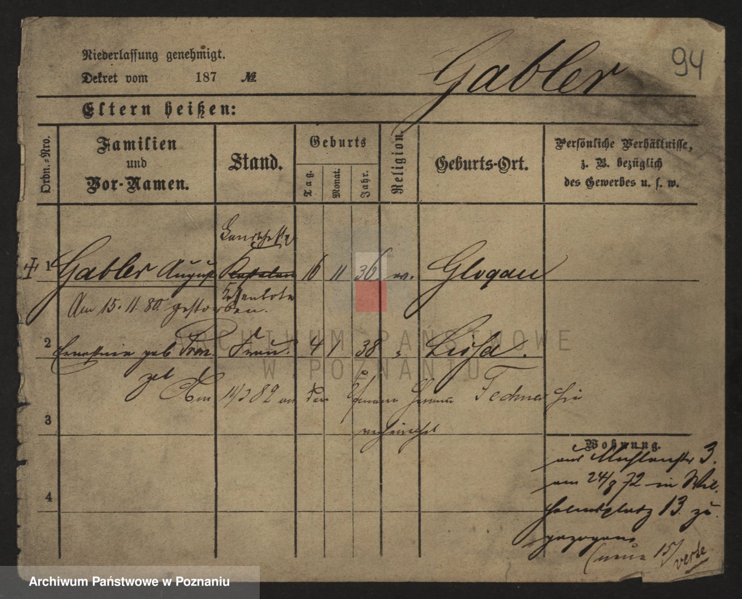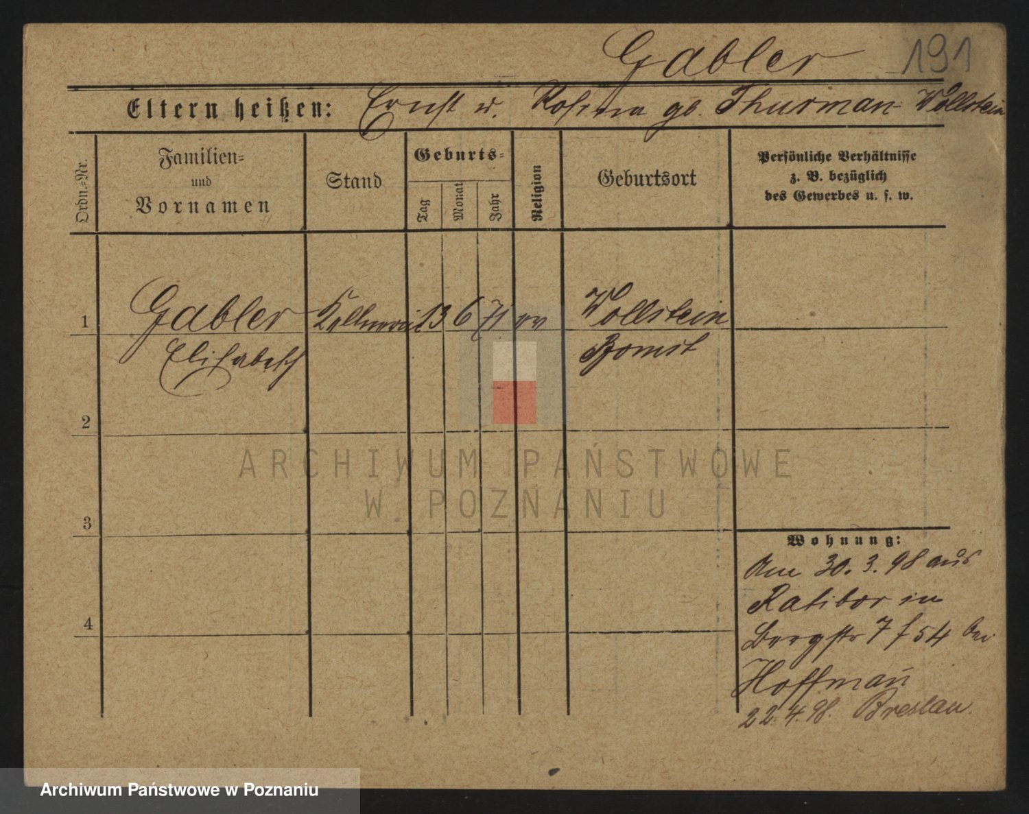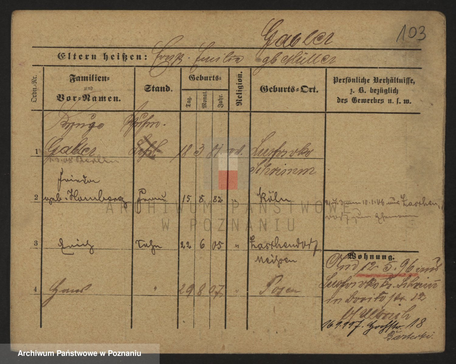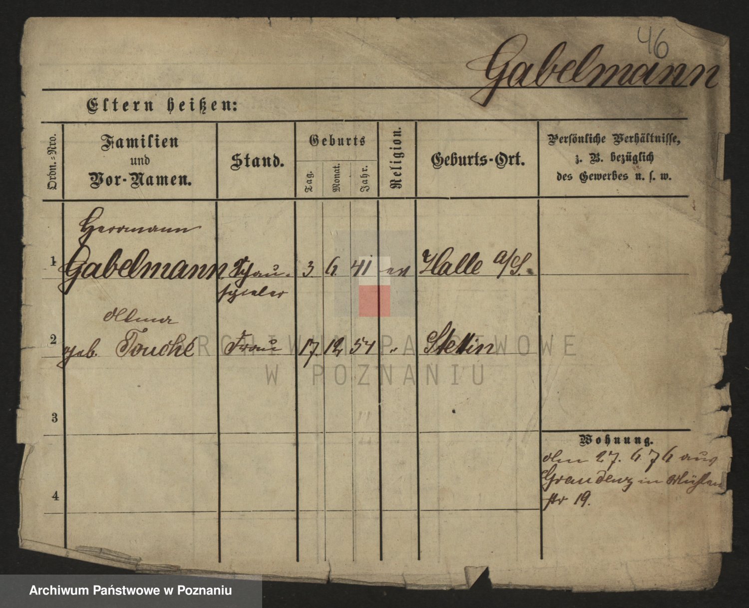 Gabelmann z.d. Touche, Alma
