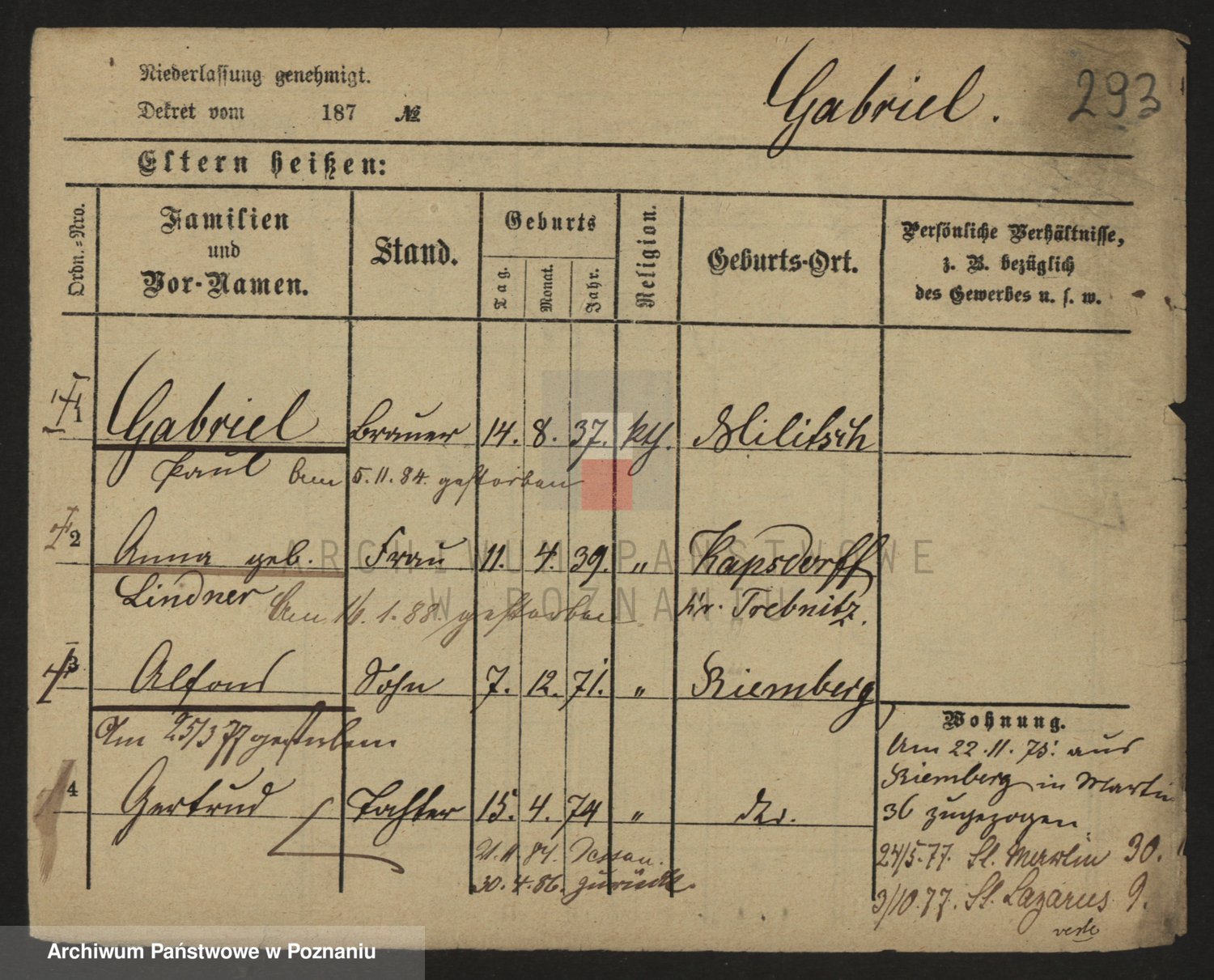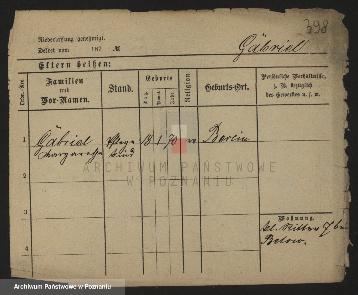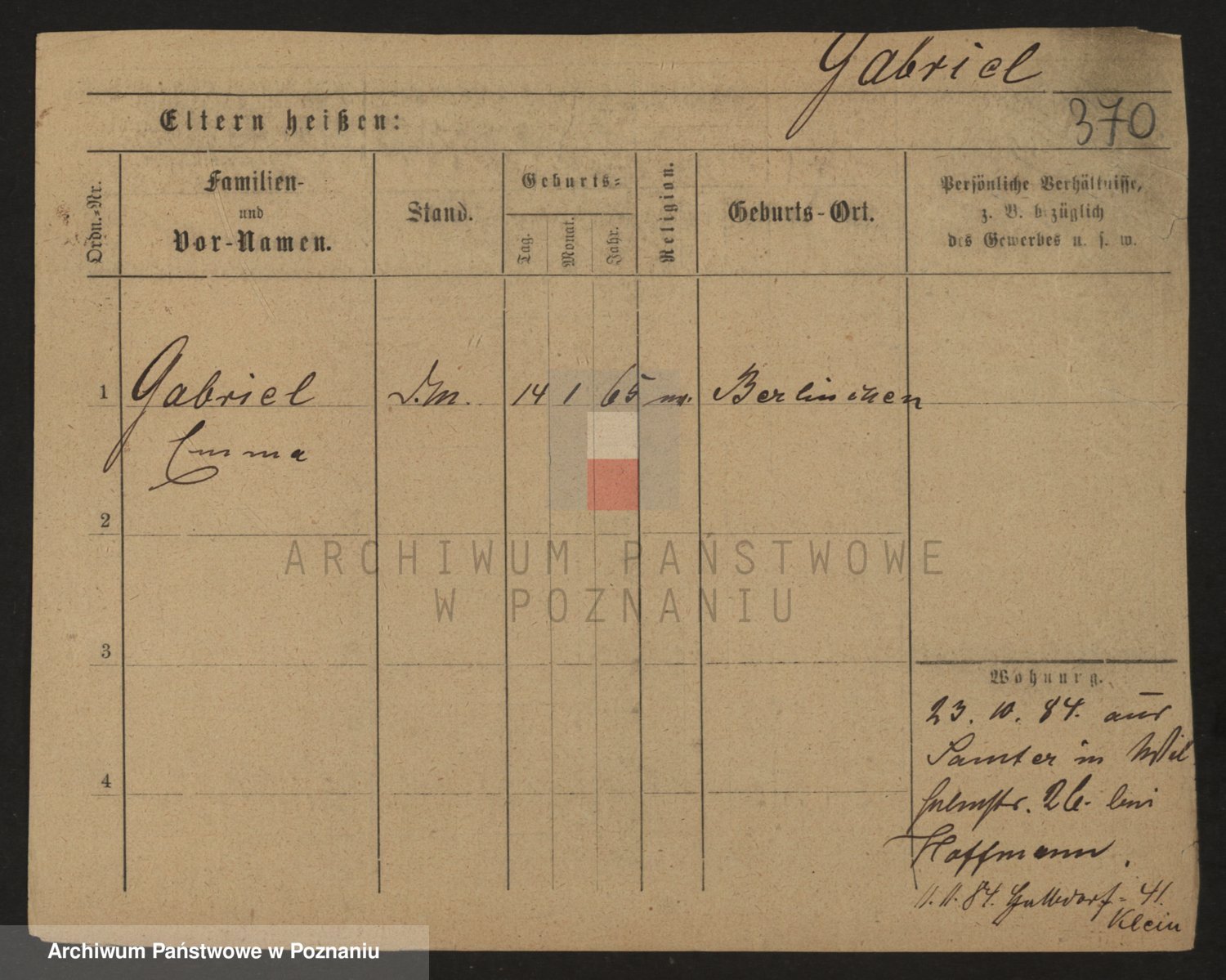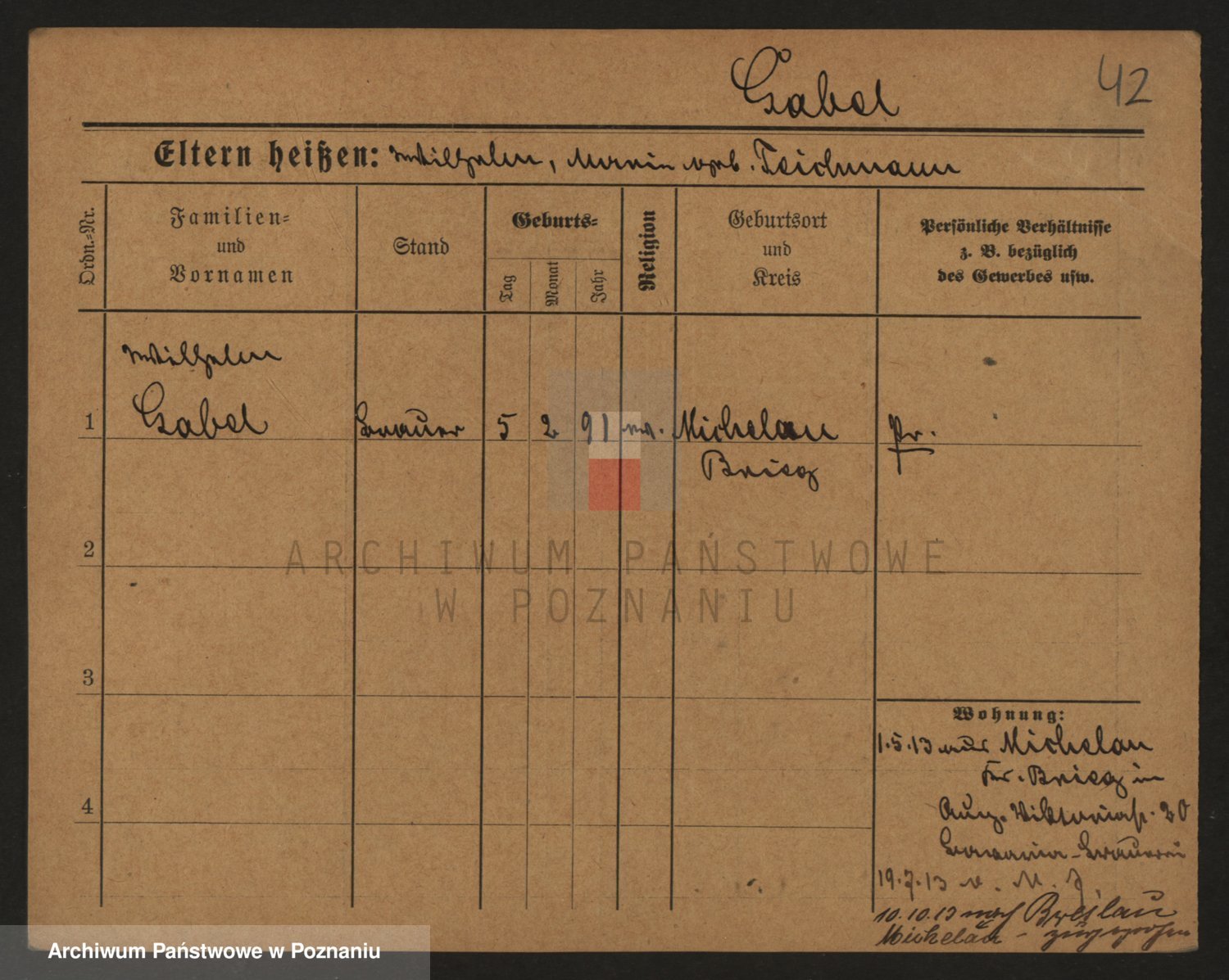 Gabelmann z.d. Touche, Alma
