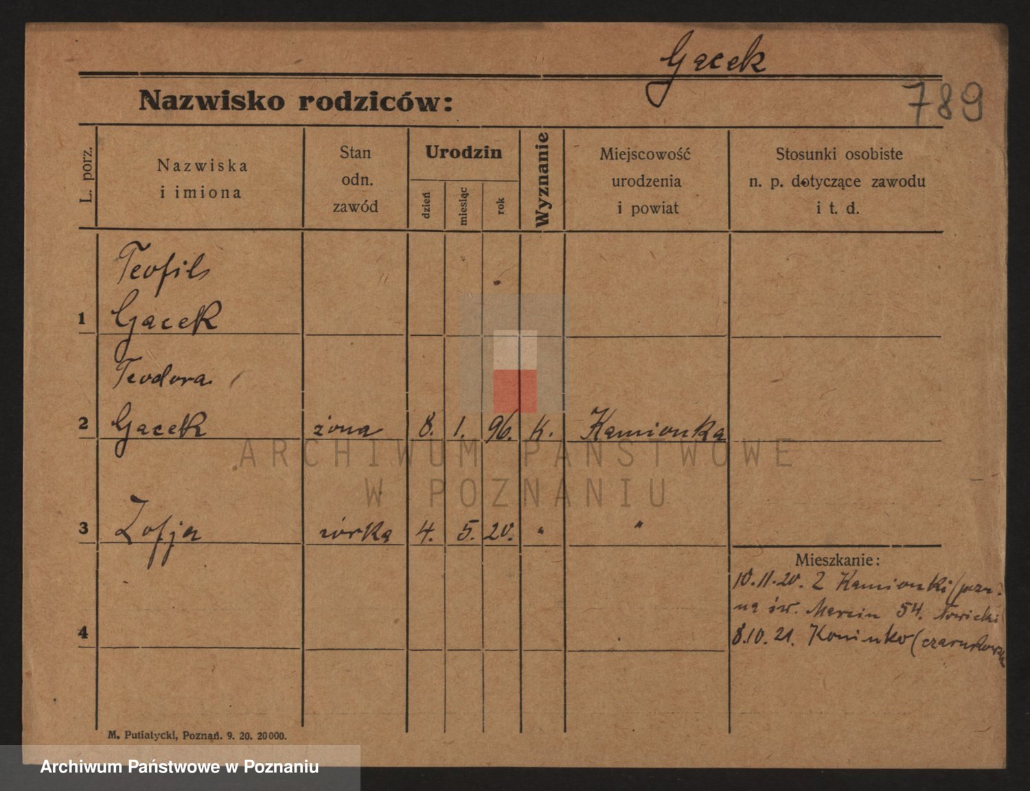 Gacek, Zofjia