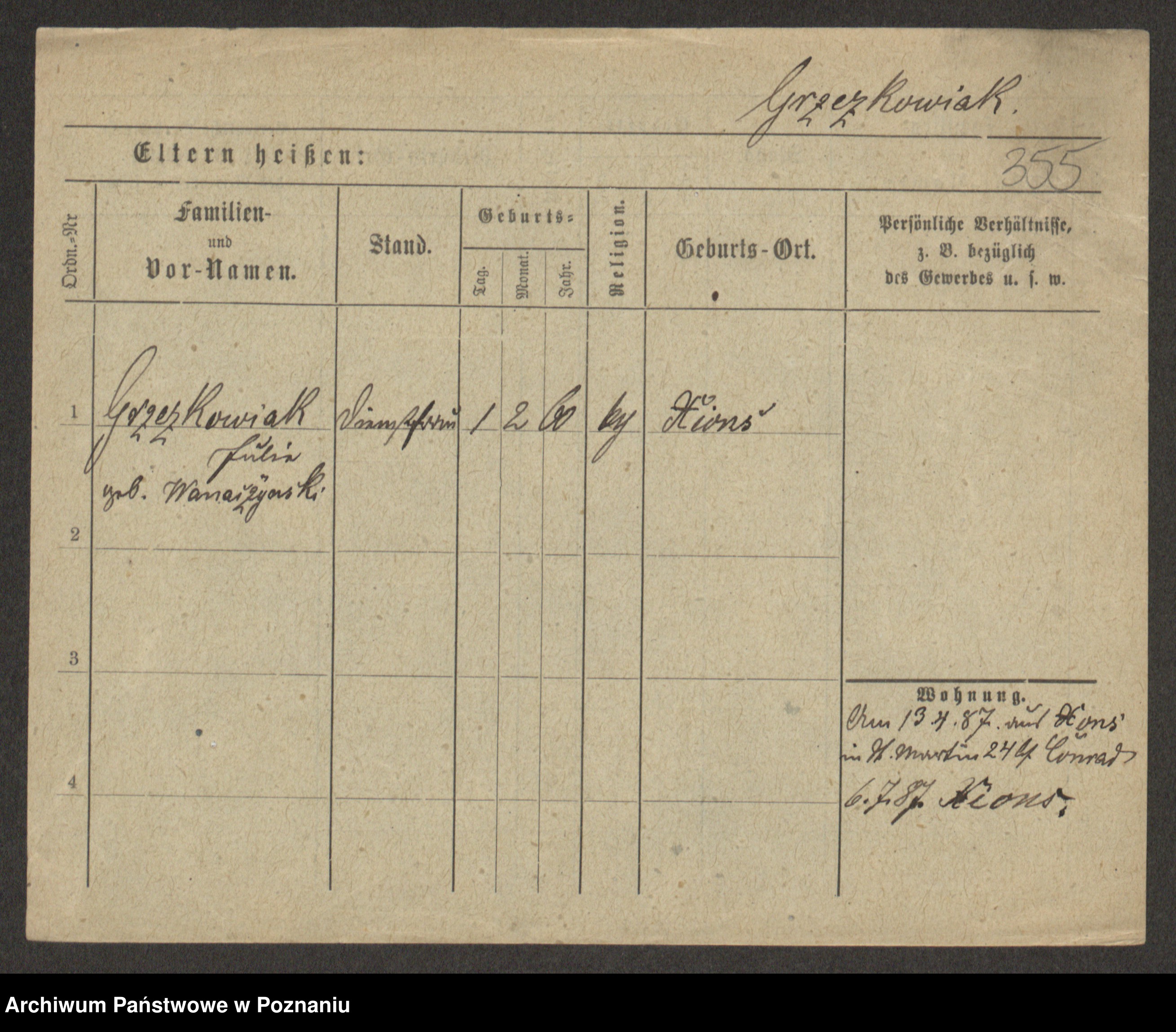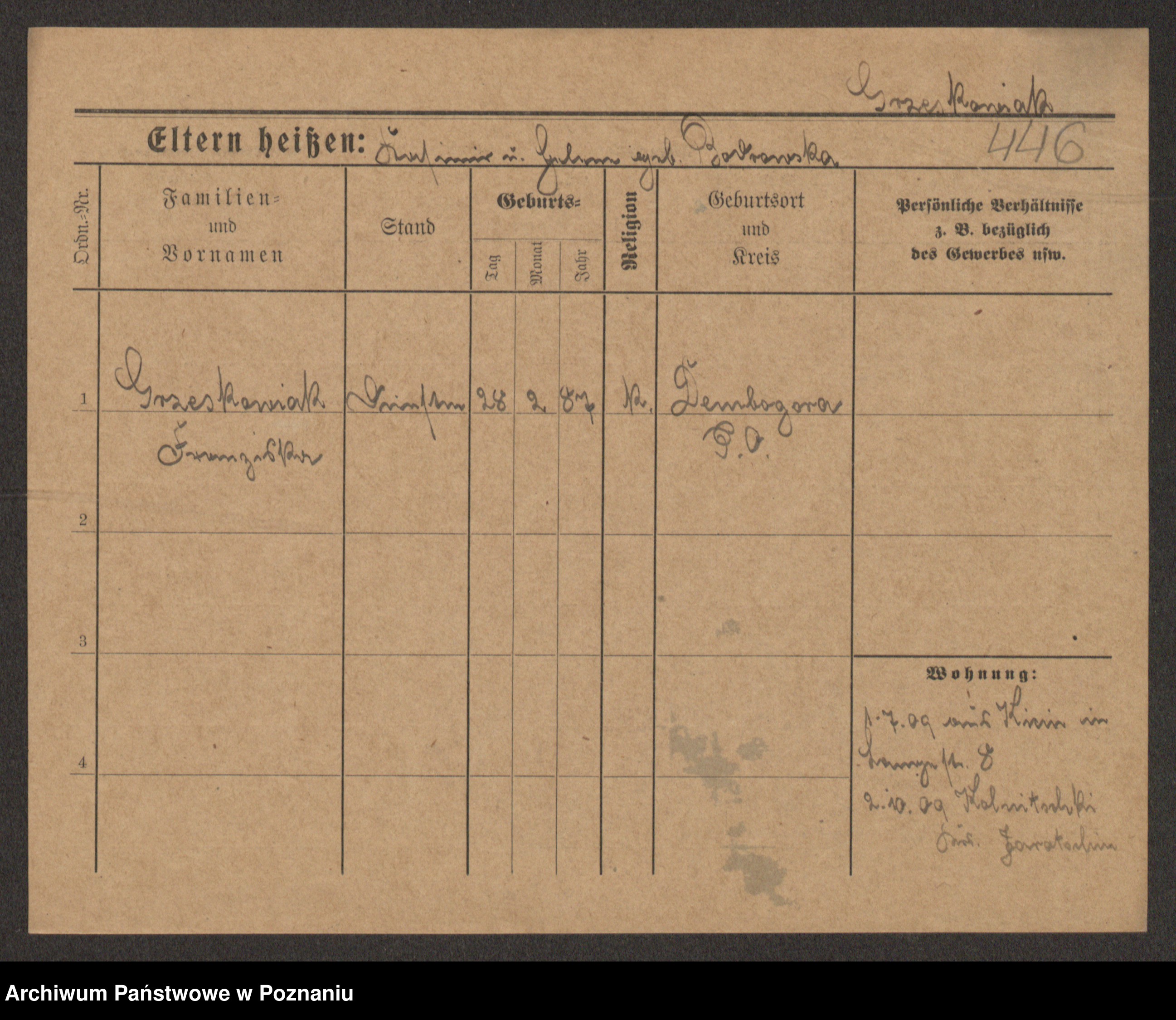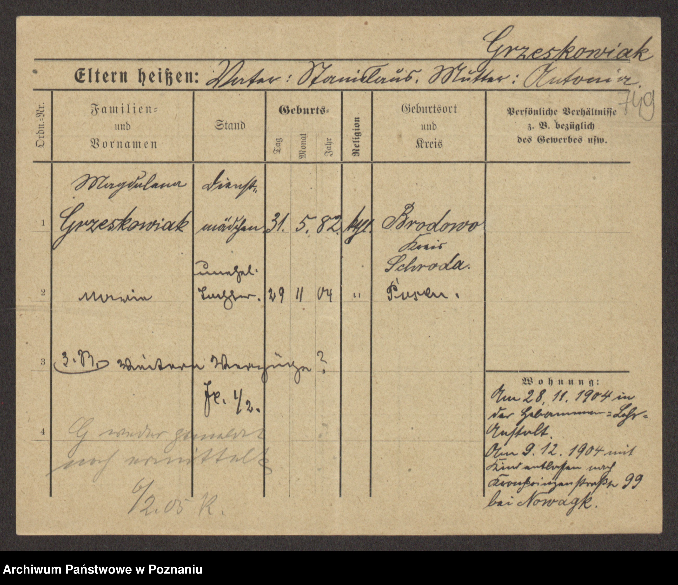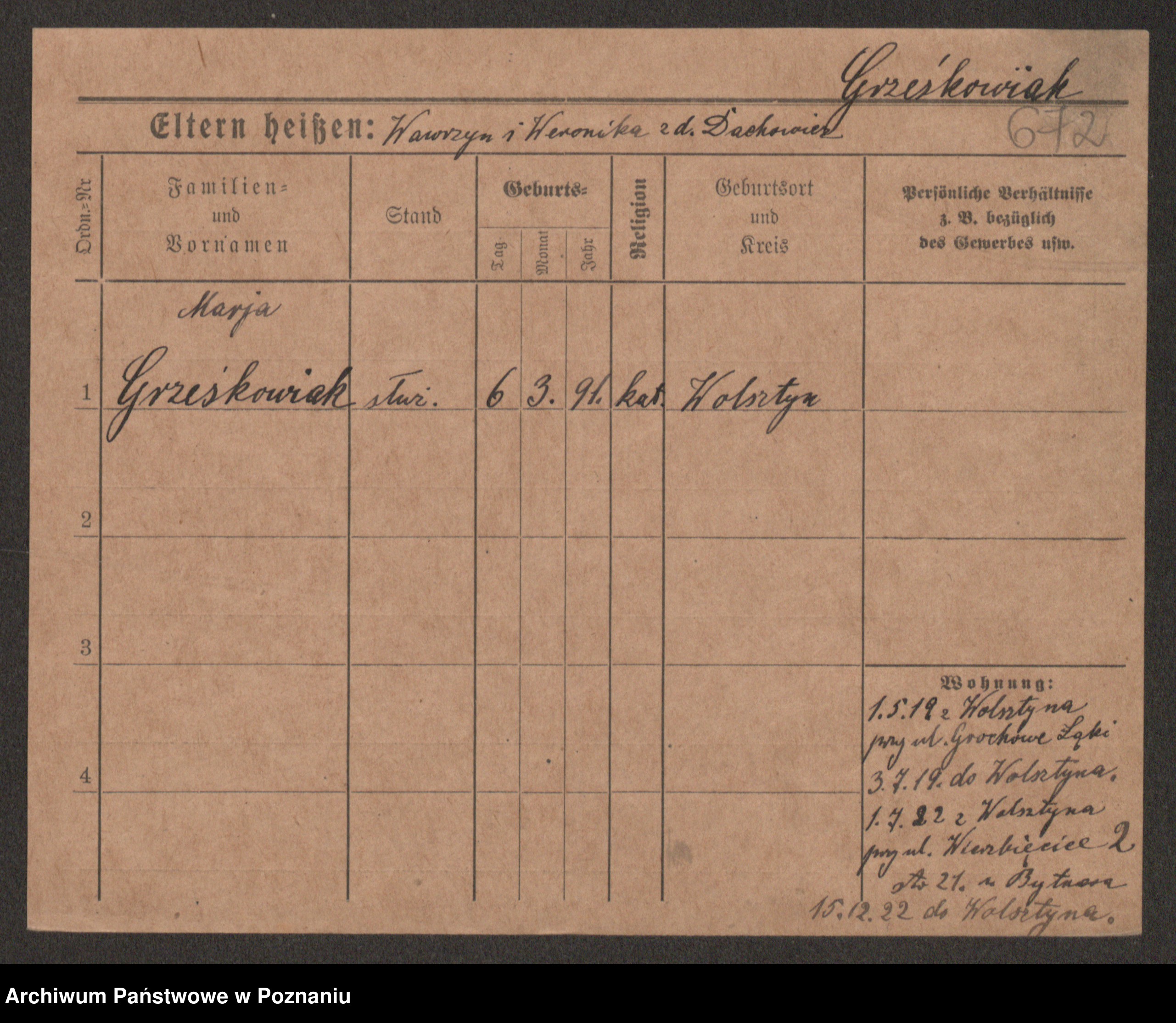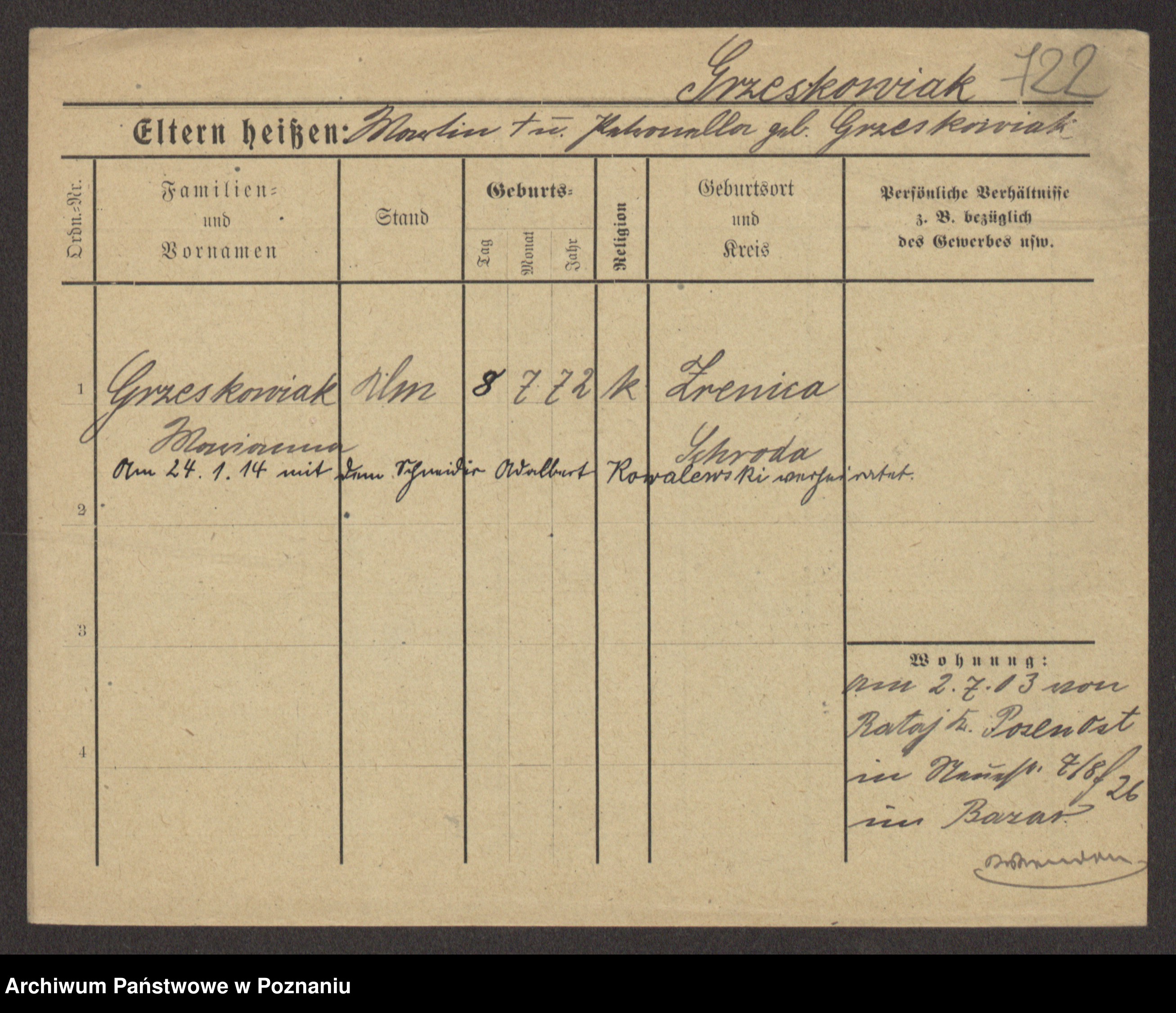 Grześkowiak z d.Wolinska I voto Bertrand, Wilhelmina