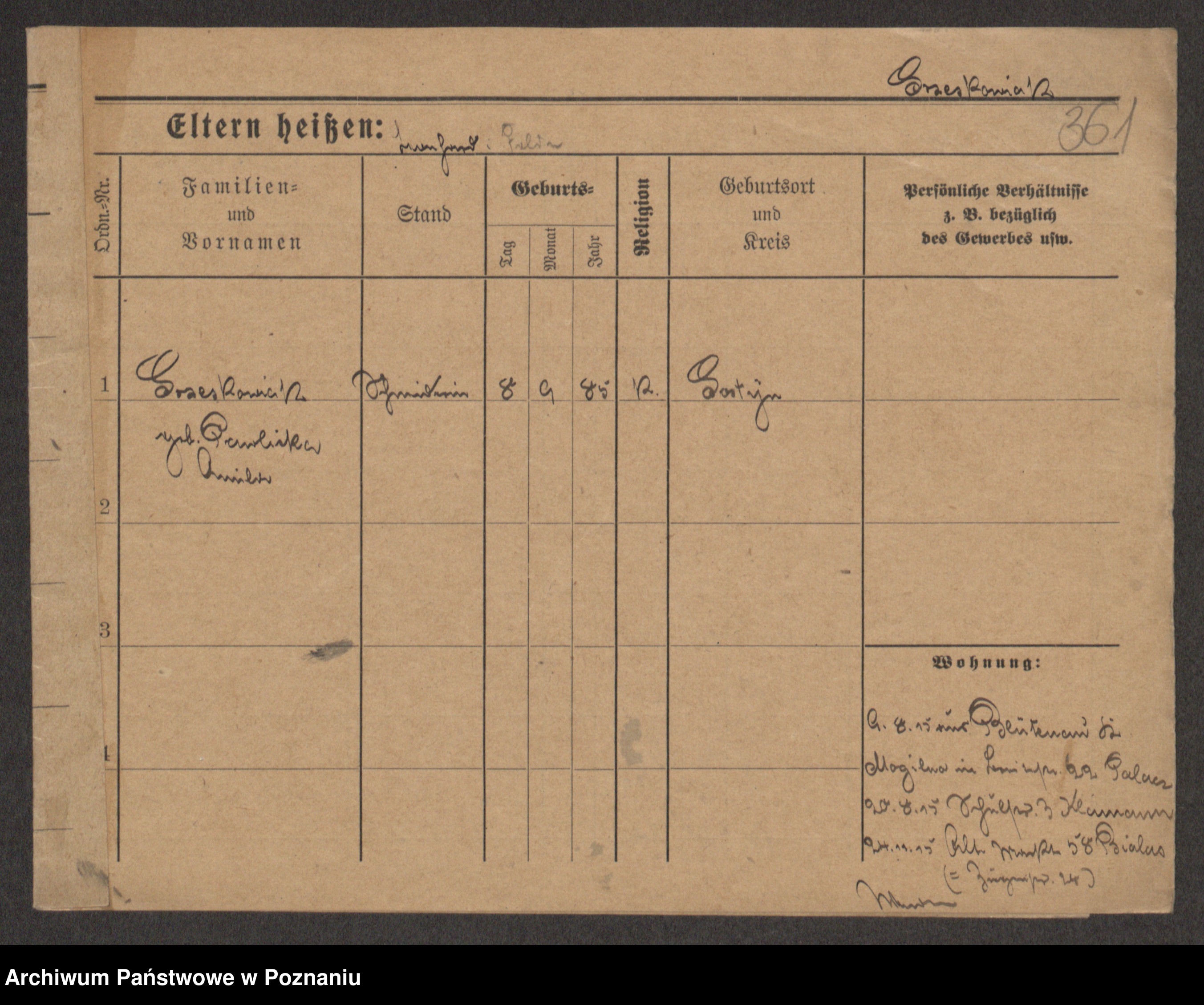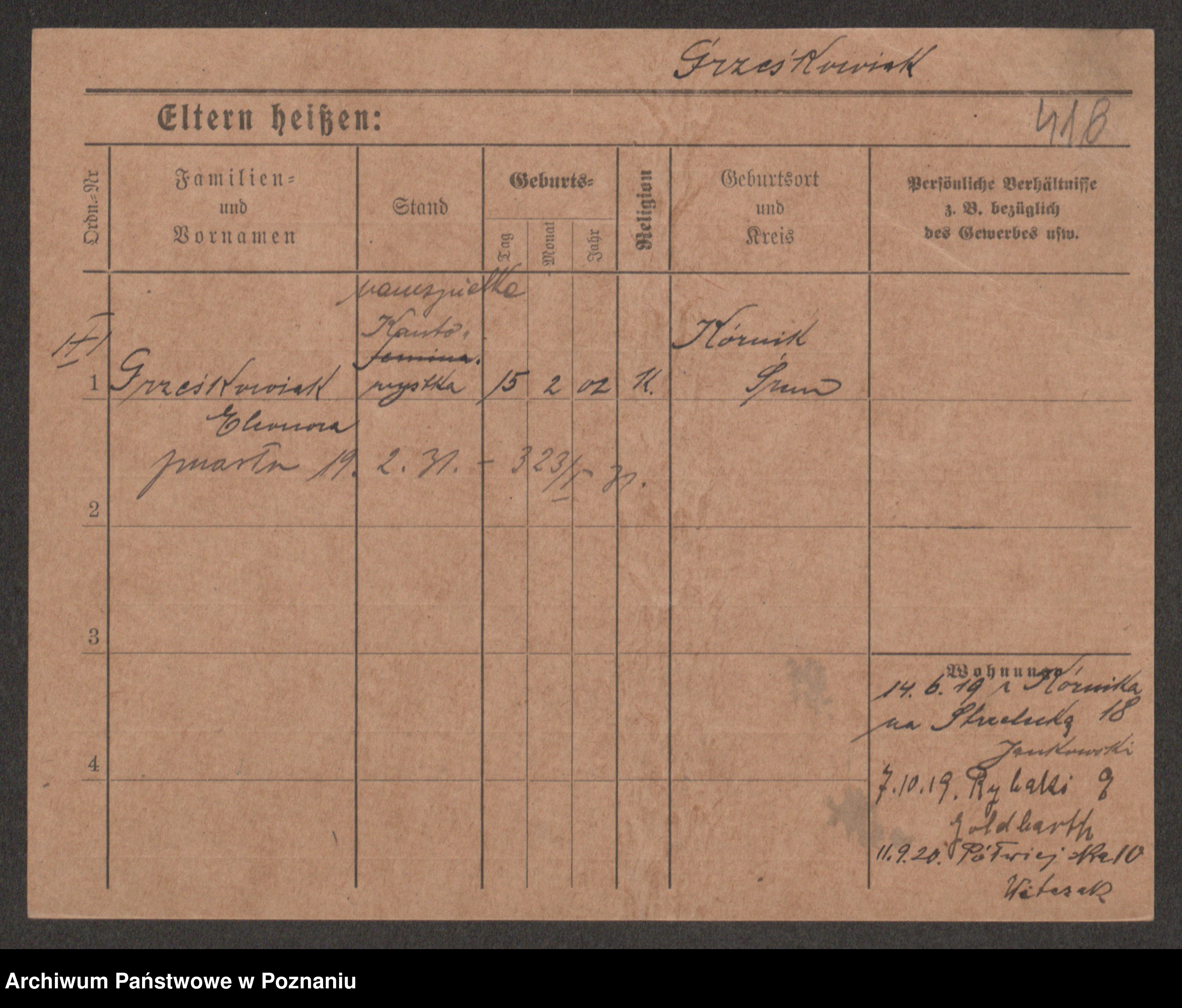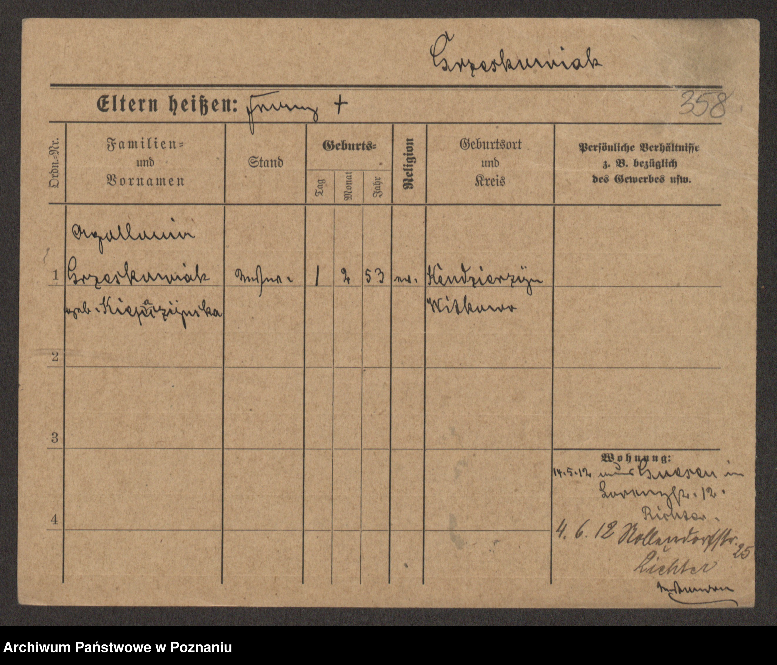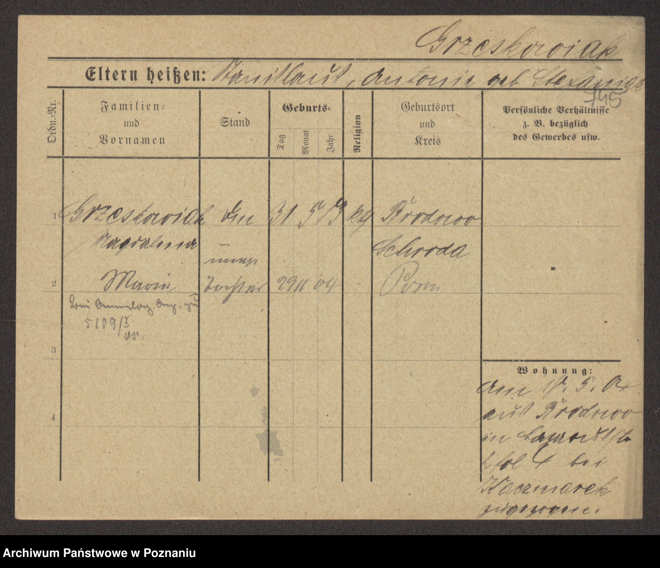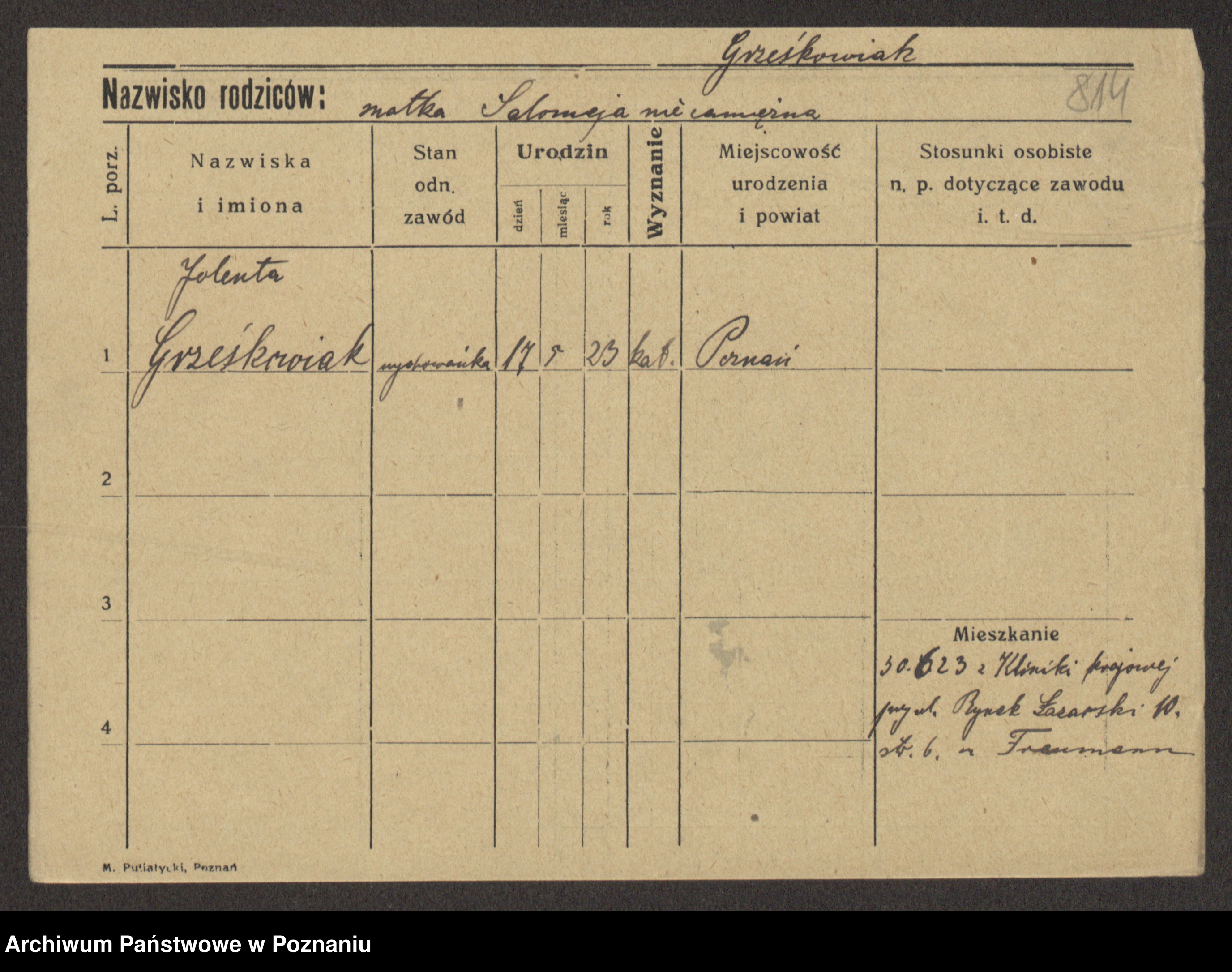 Grześkowiak z d.Wolinska I voto Bertrand, Wilhelmina