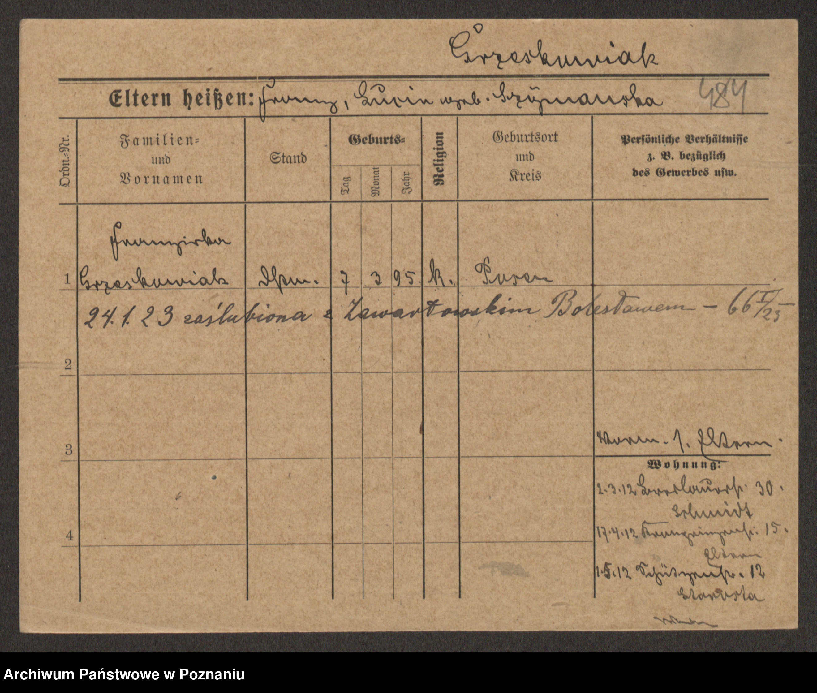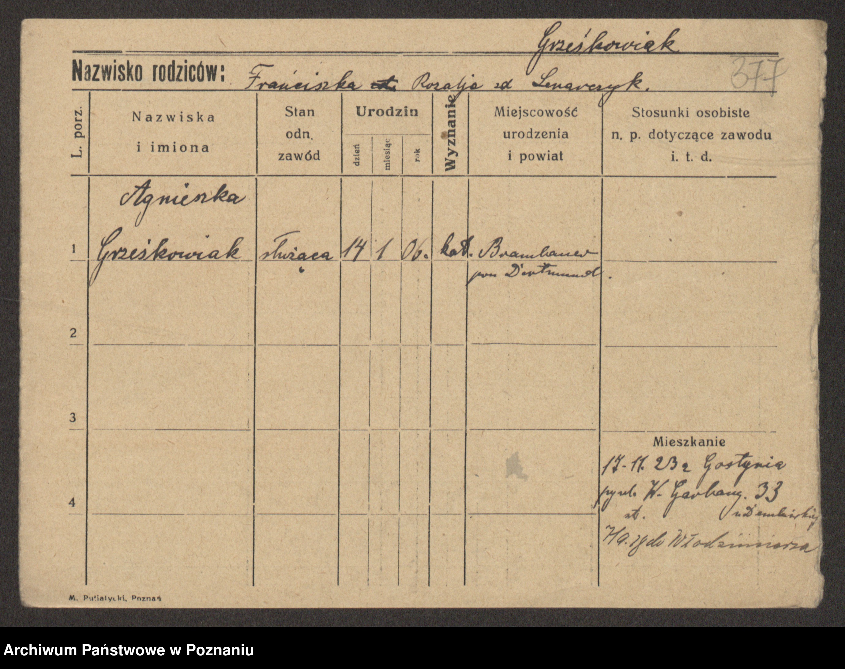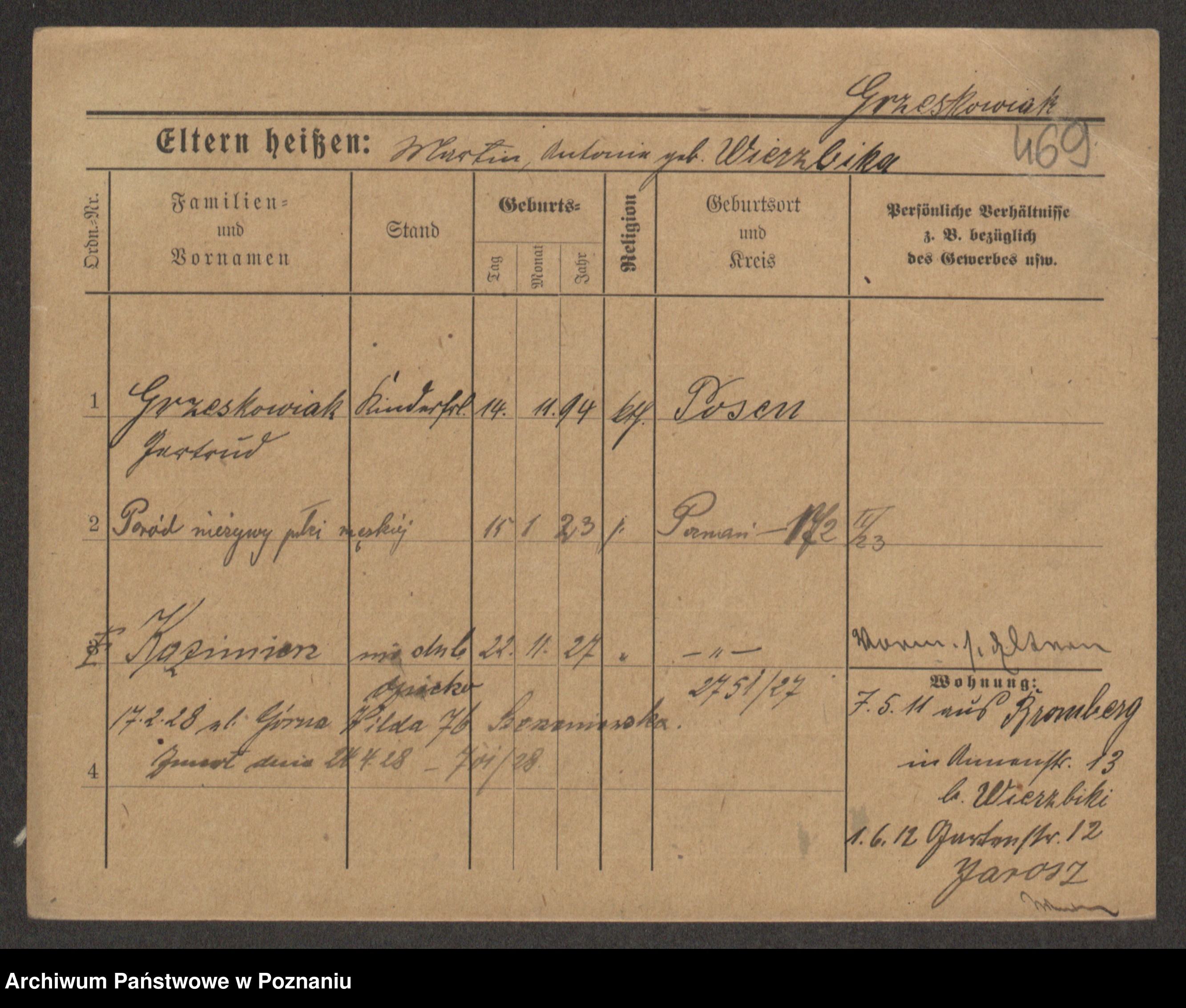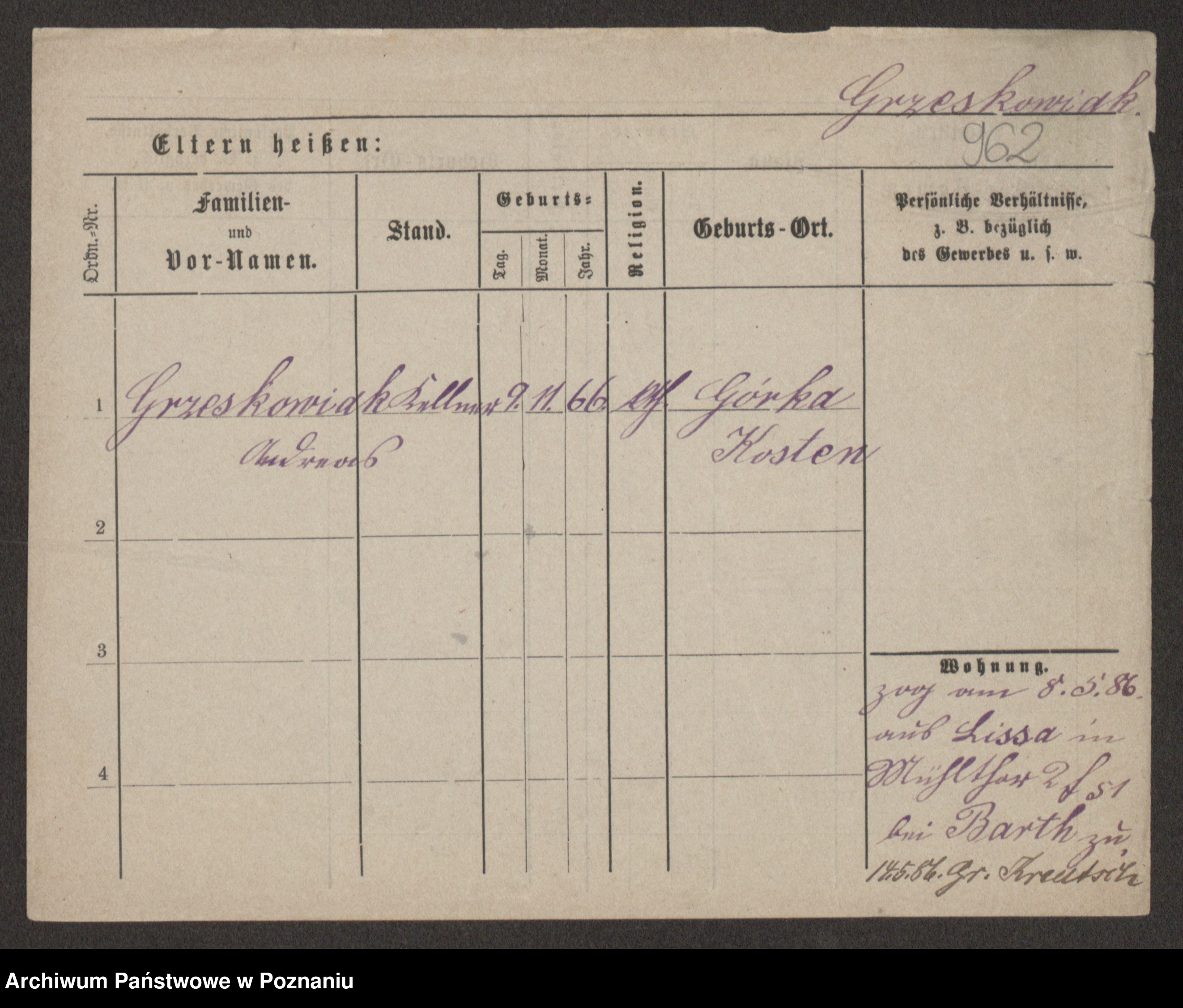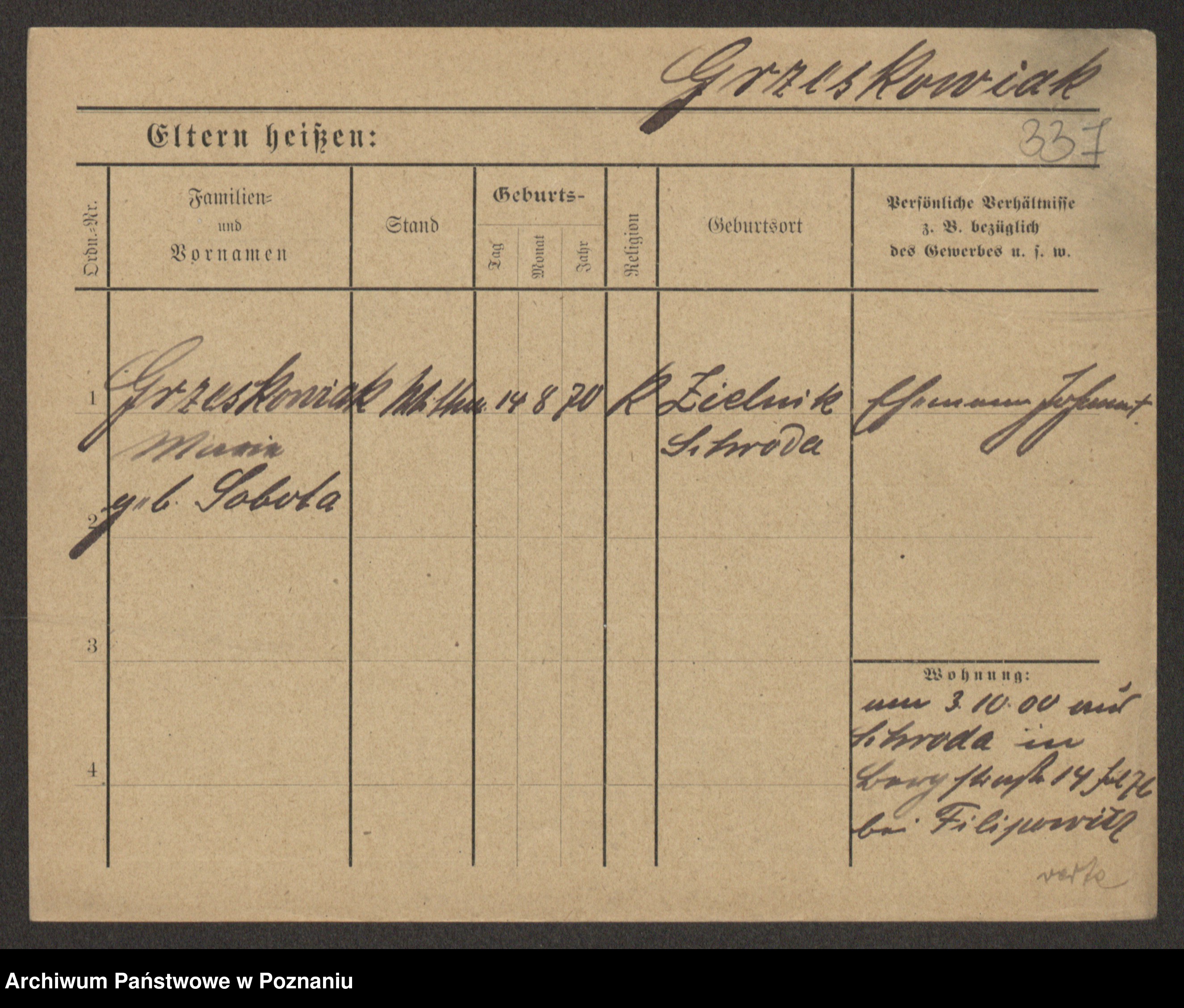 Grześkowiak z d.Wolinska I voto Bertrand, Wilhelmina