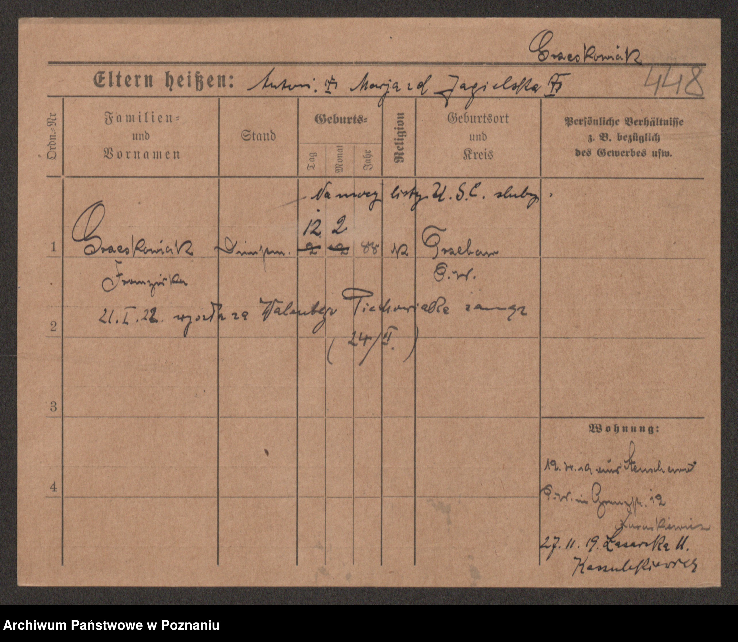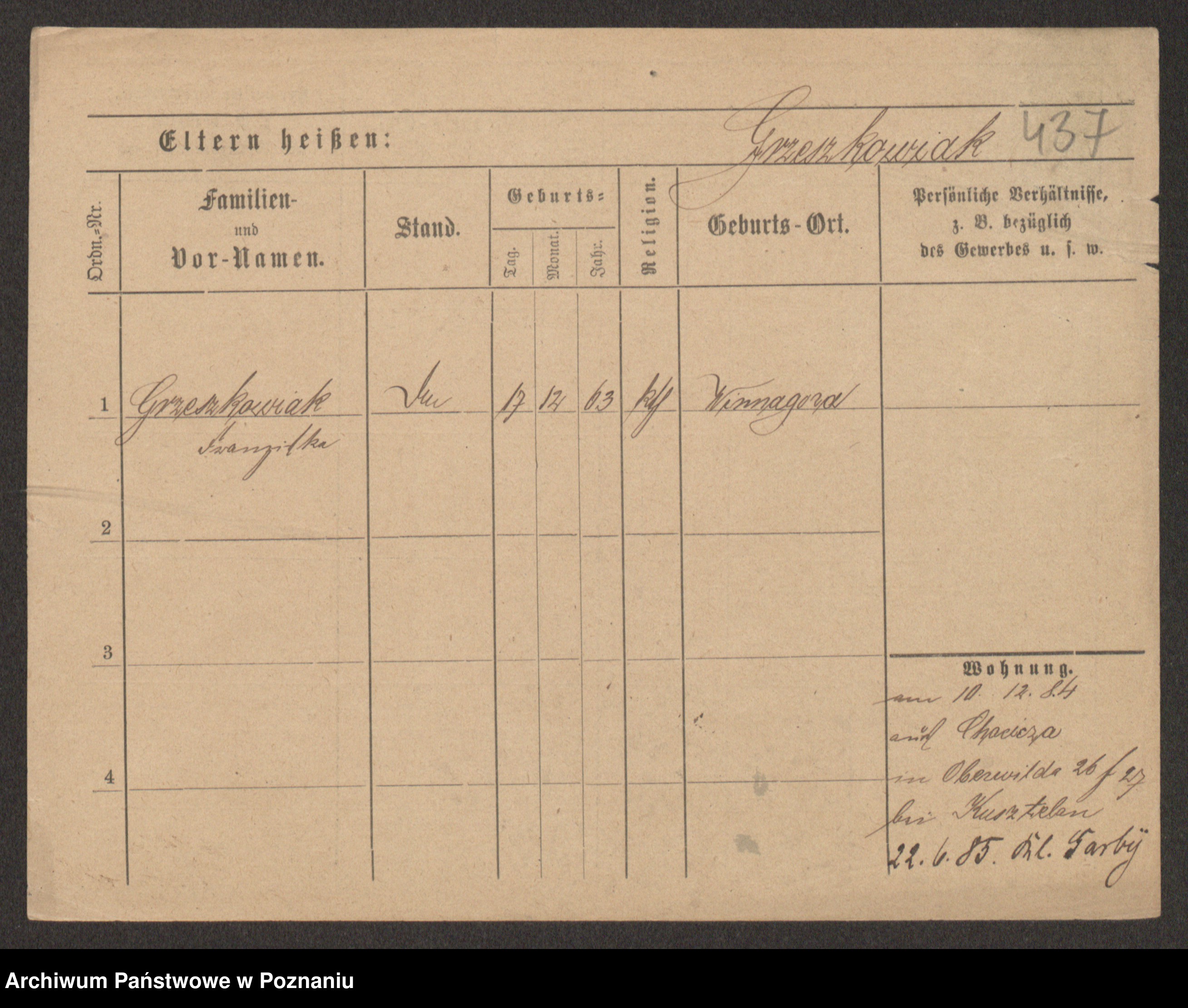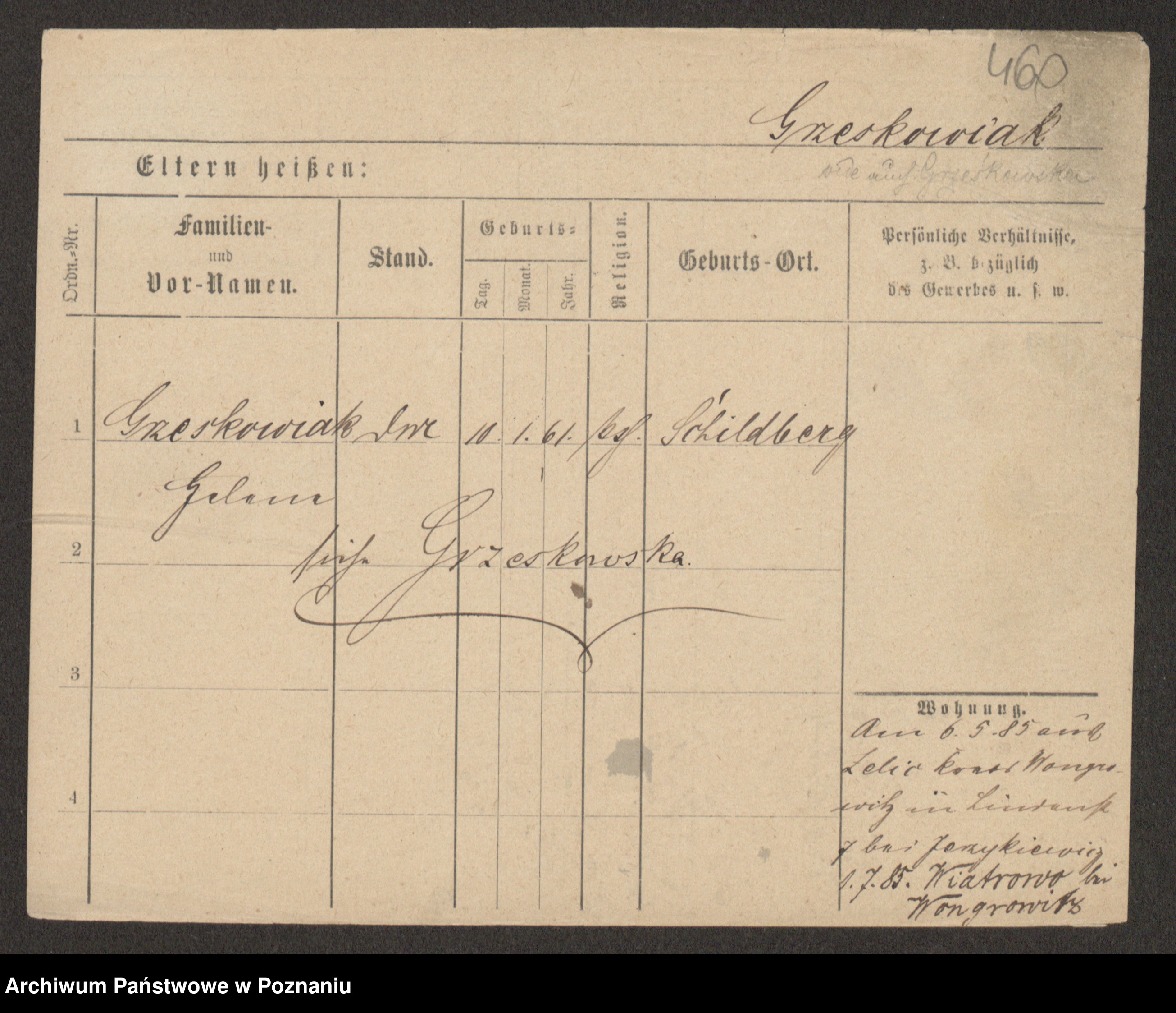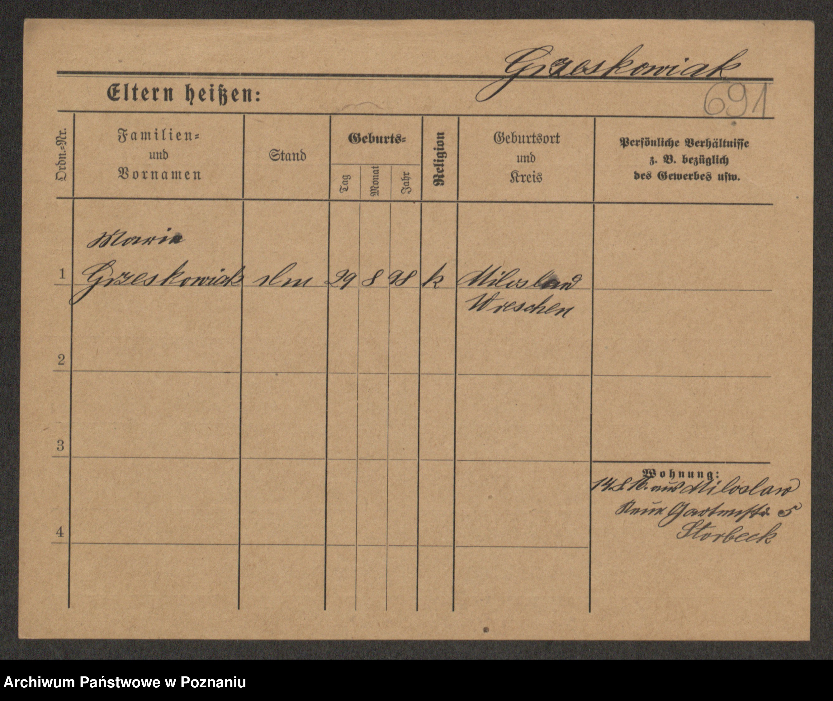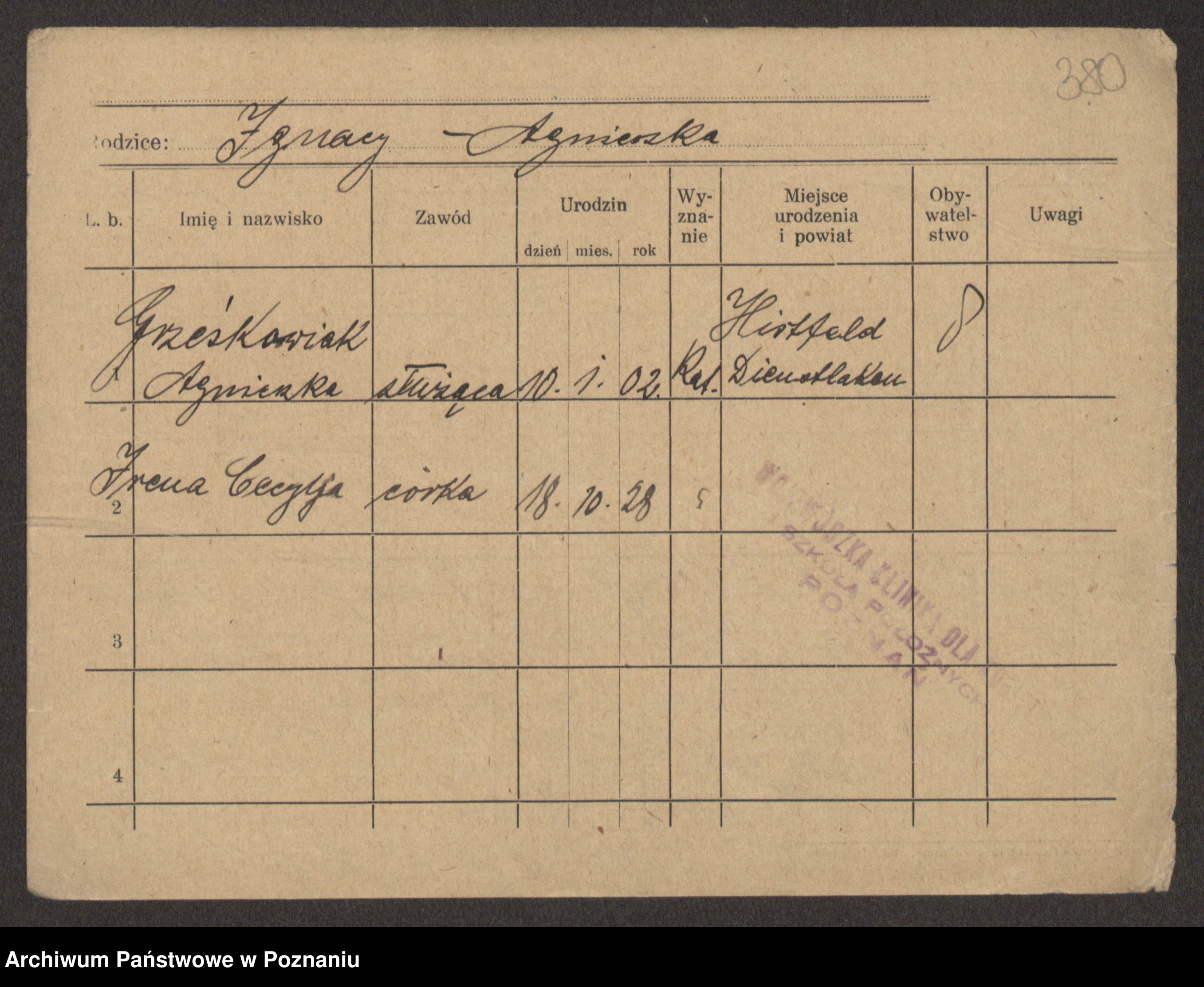 Grześkowiak z d.Wolinska I voto Bertrand, Wilhelmina