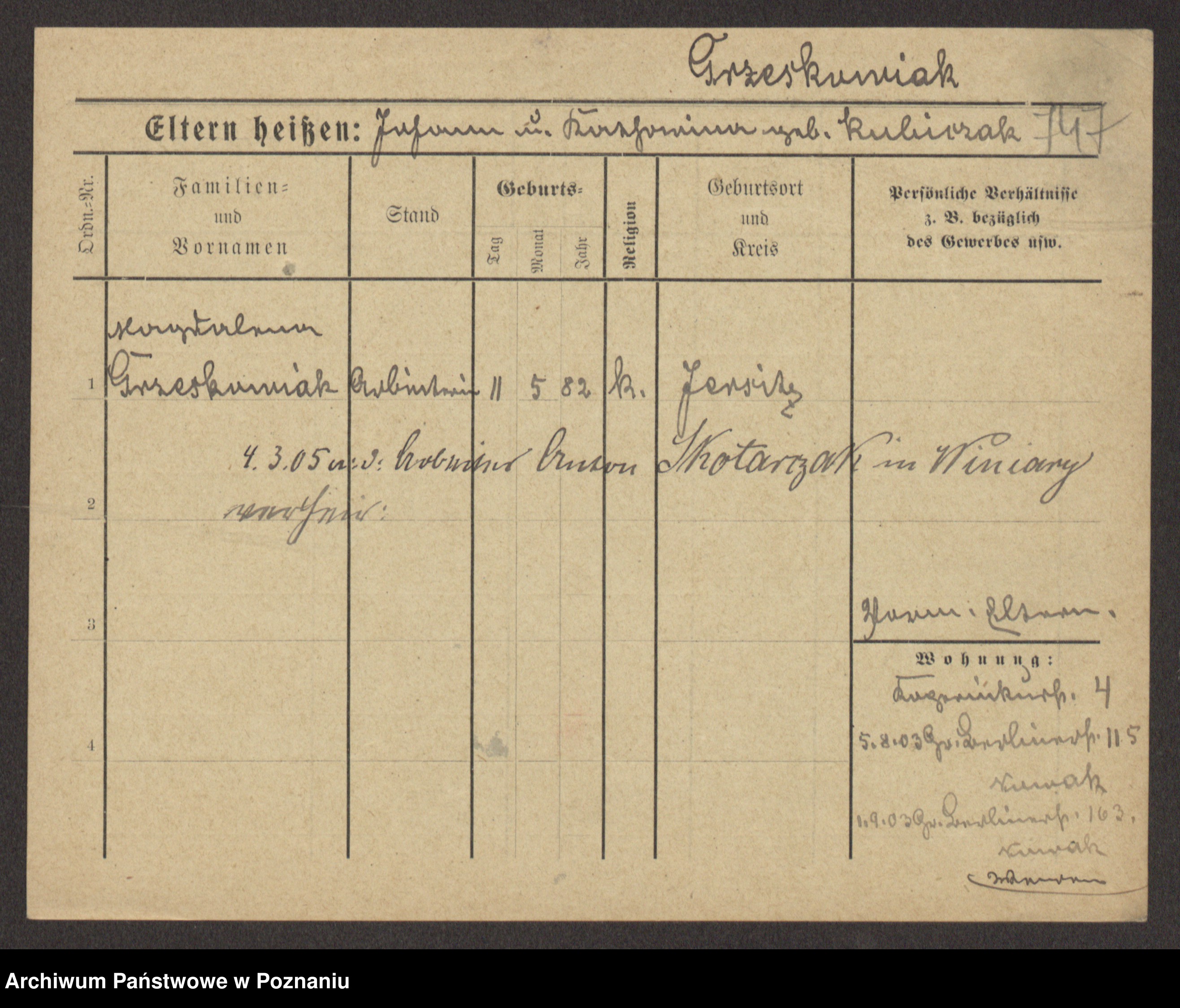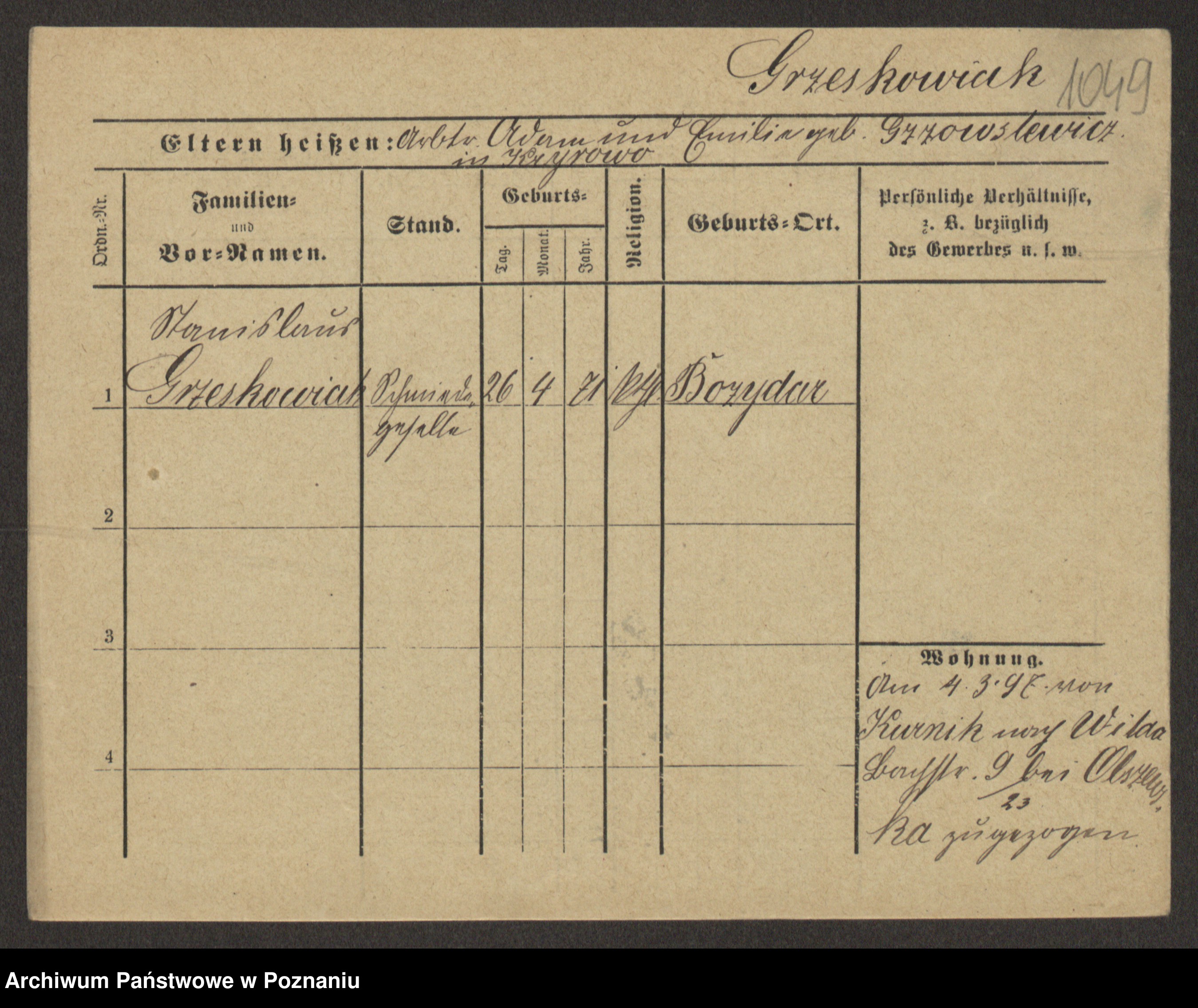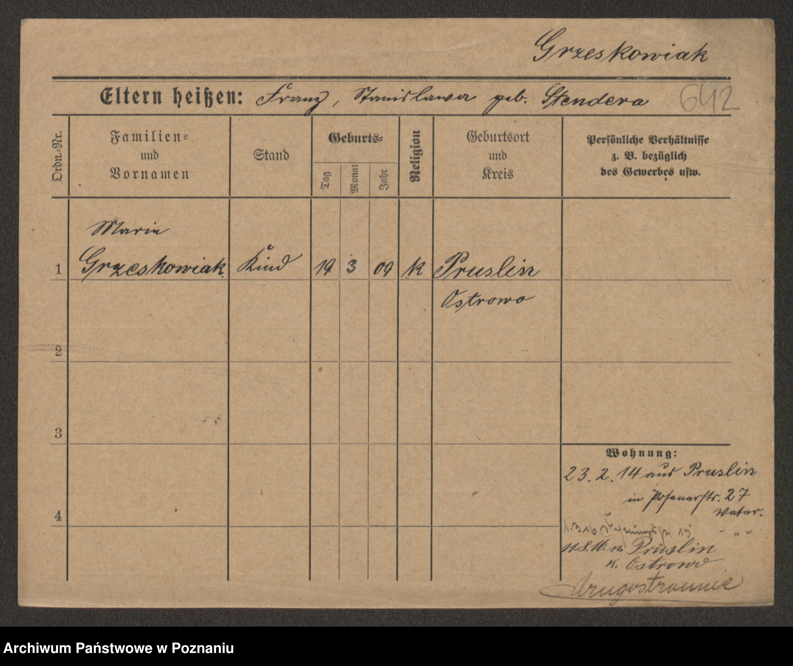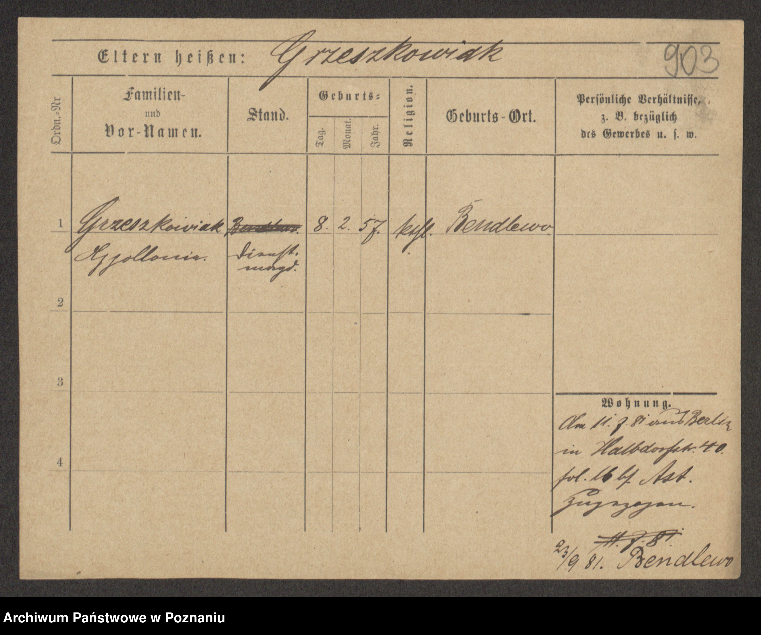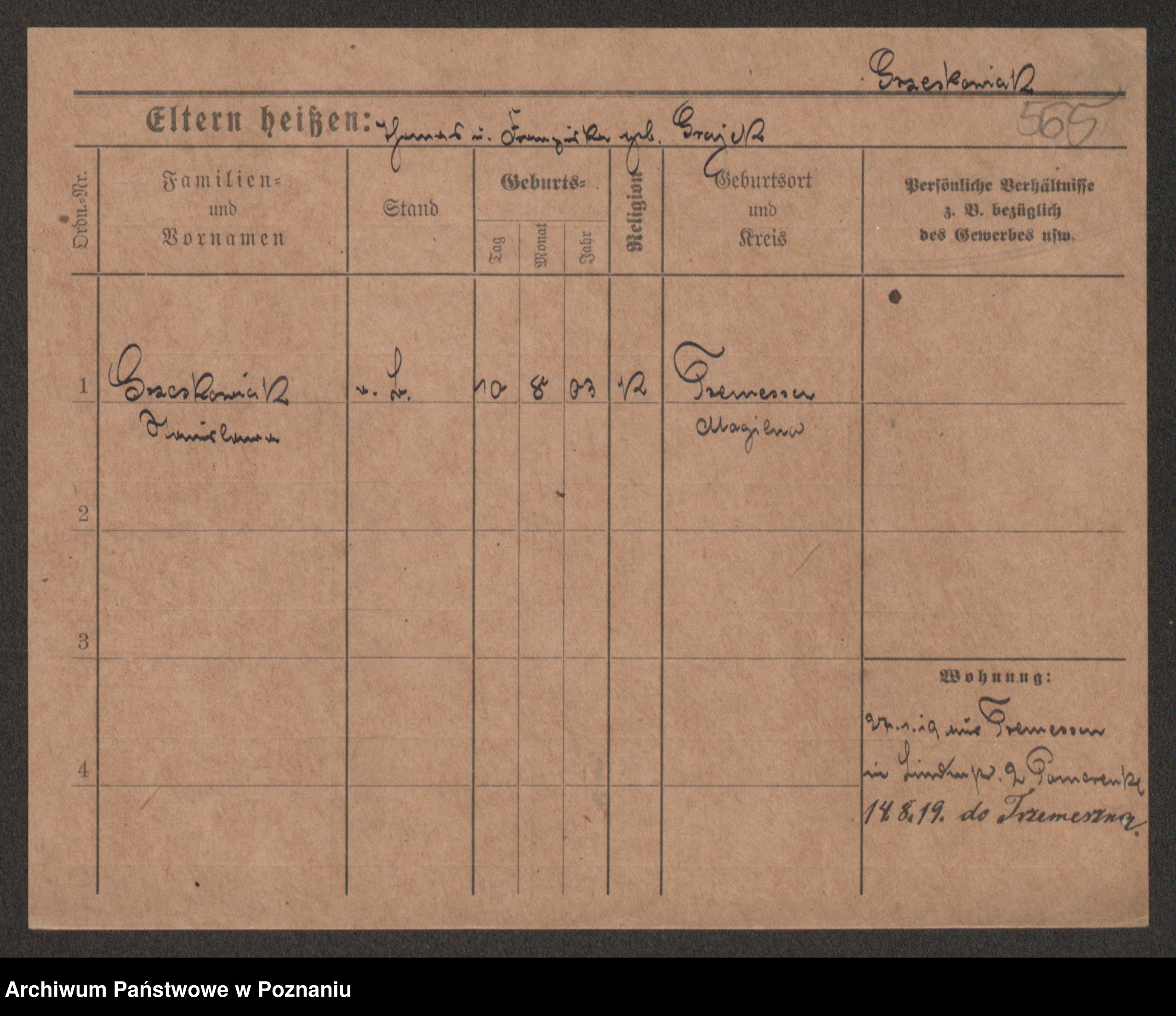 Grześkowiak z d.Wolinska I voto Bertrand, Wilhelmina