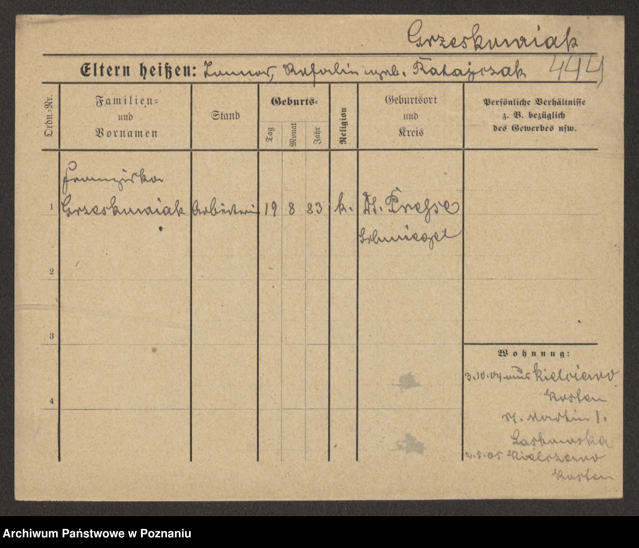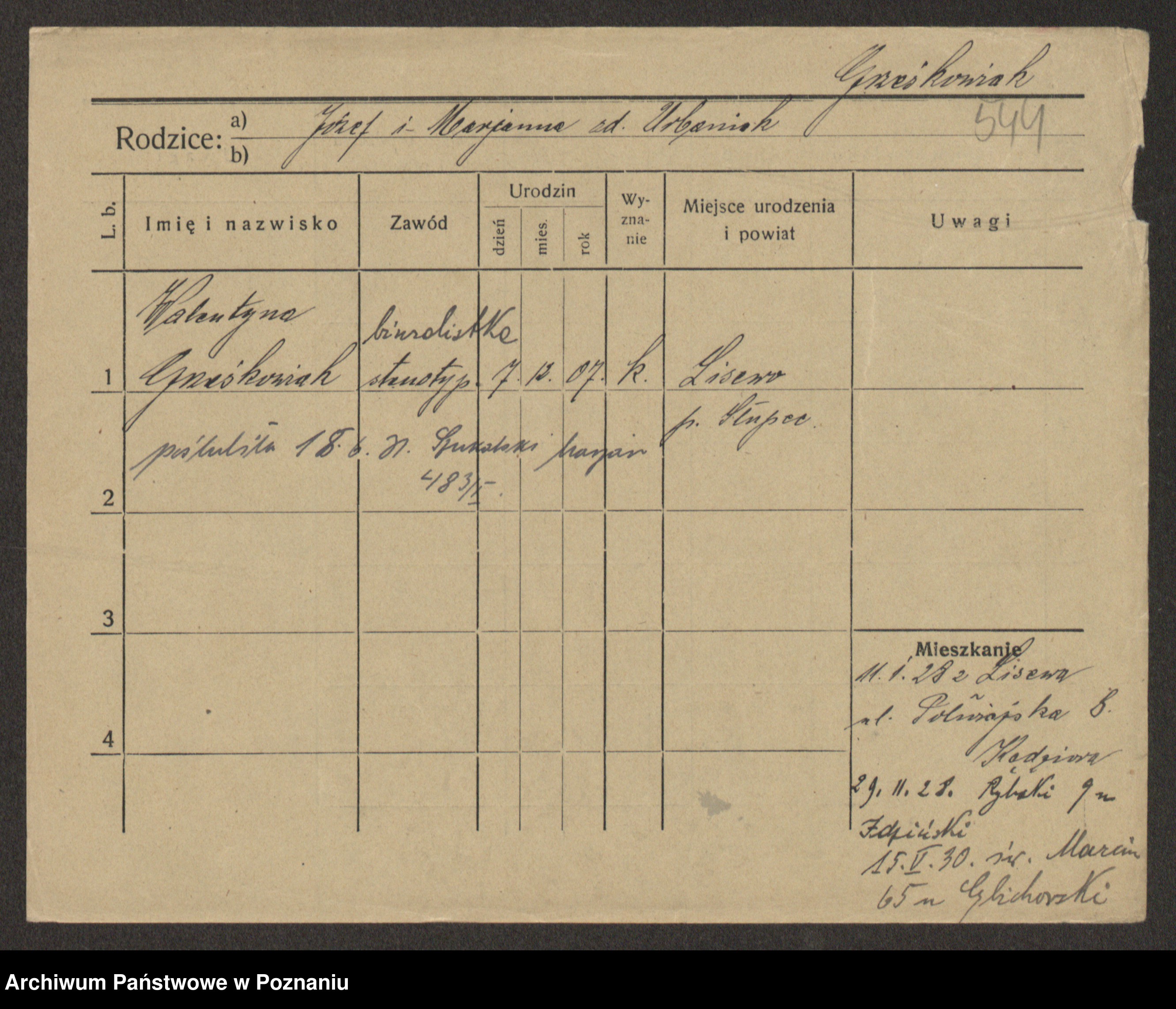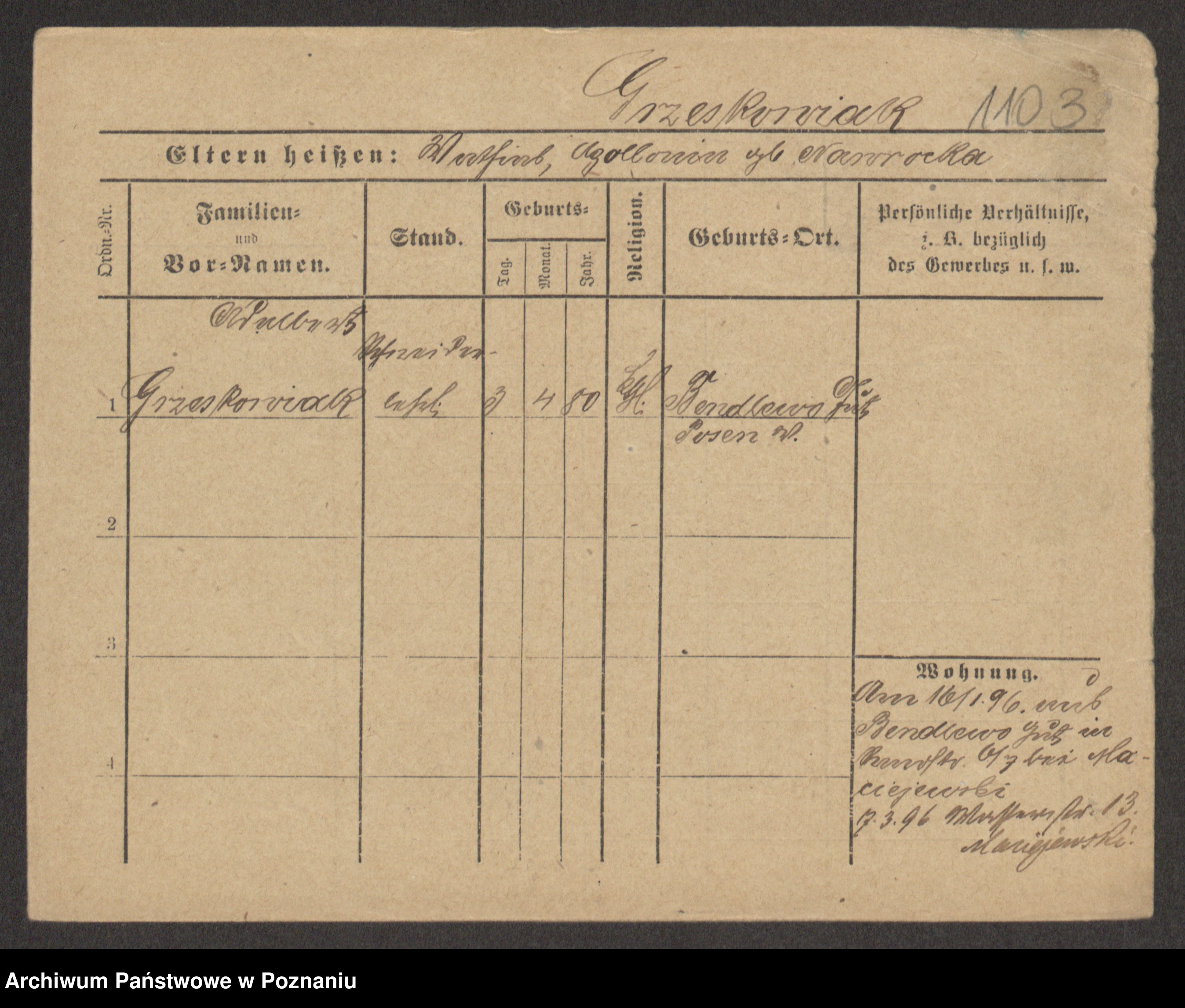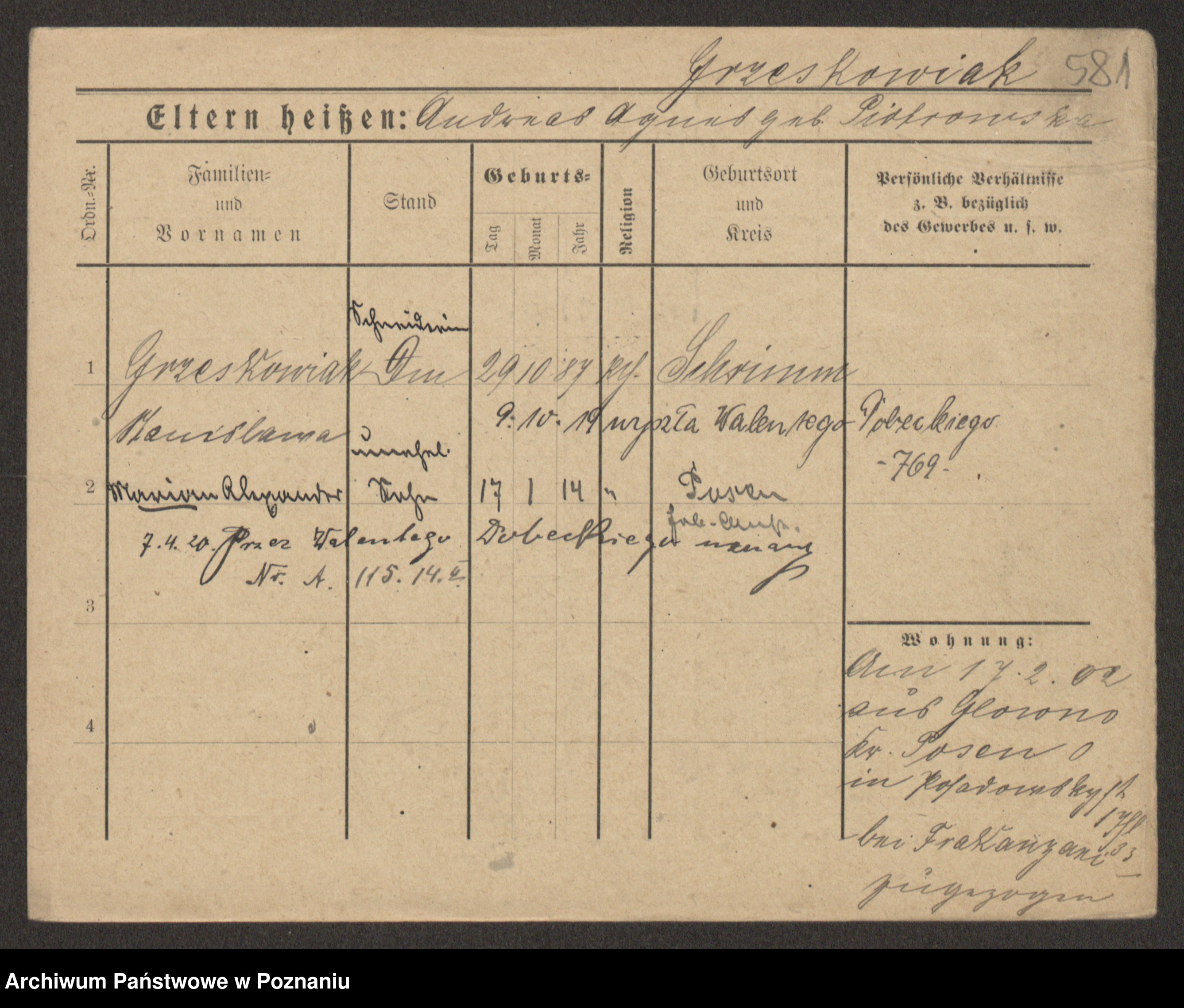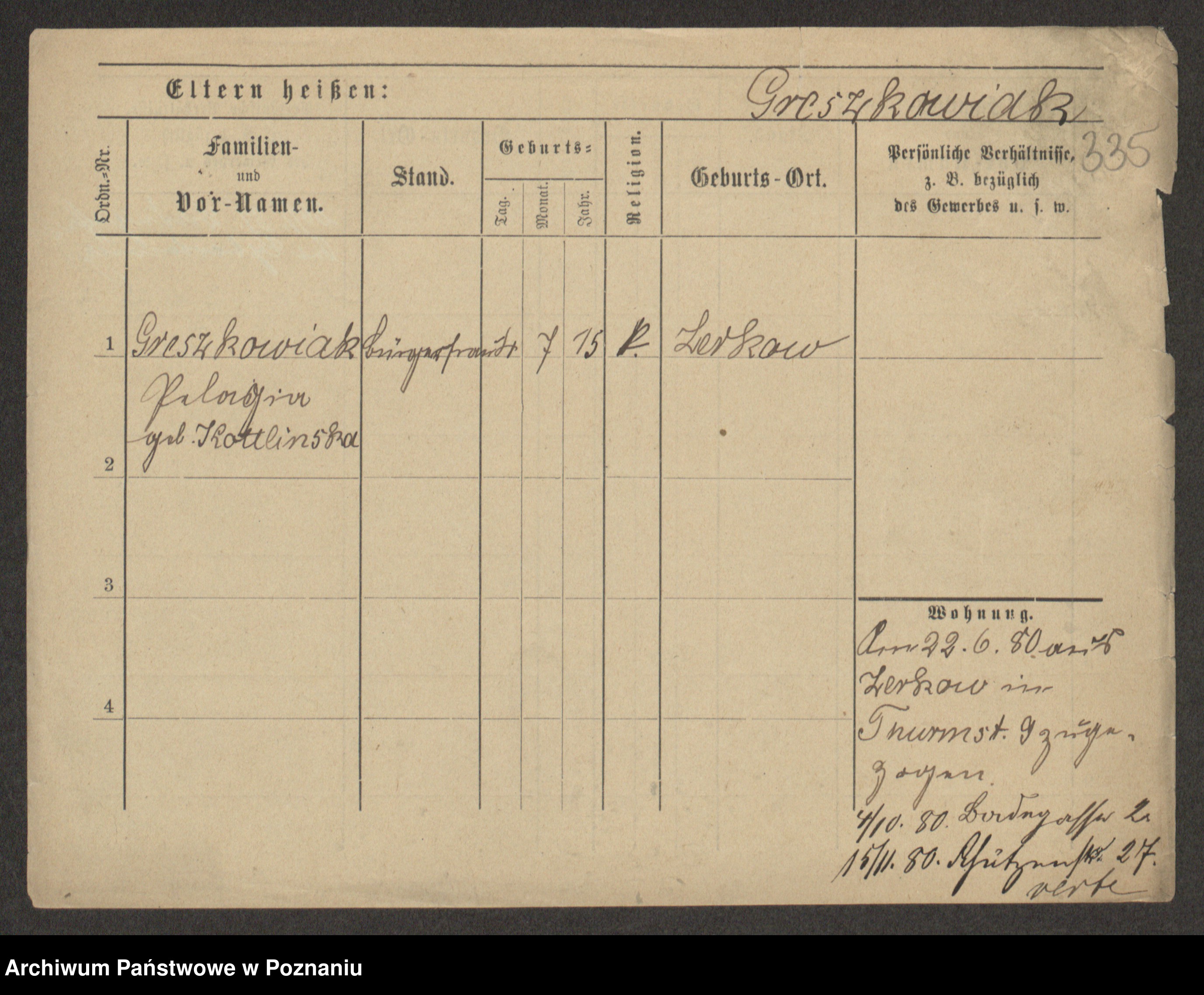 Grześkowiak z d.Wolinska I voto Bertrand, Wilhelmina