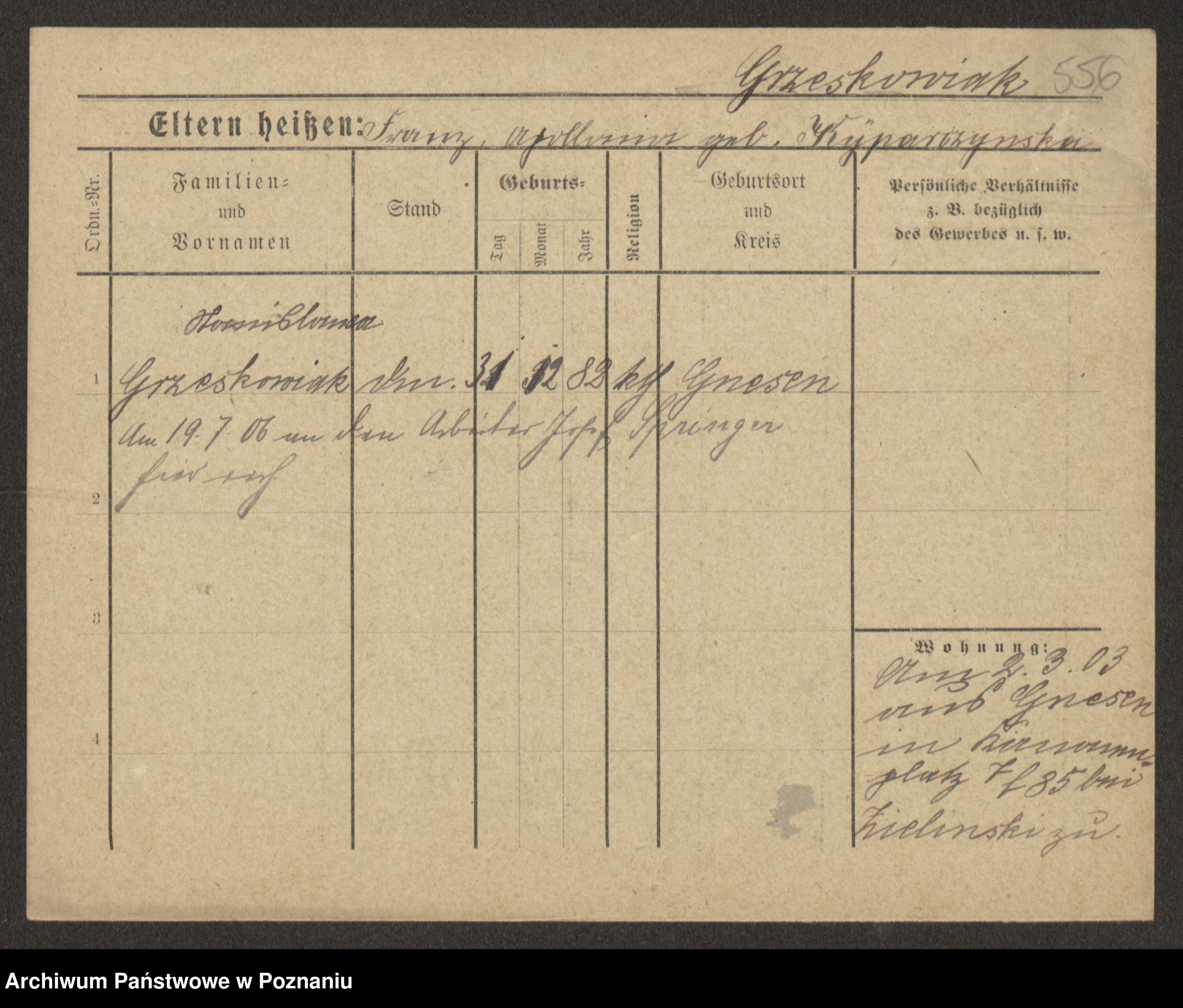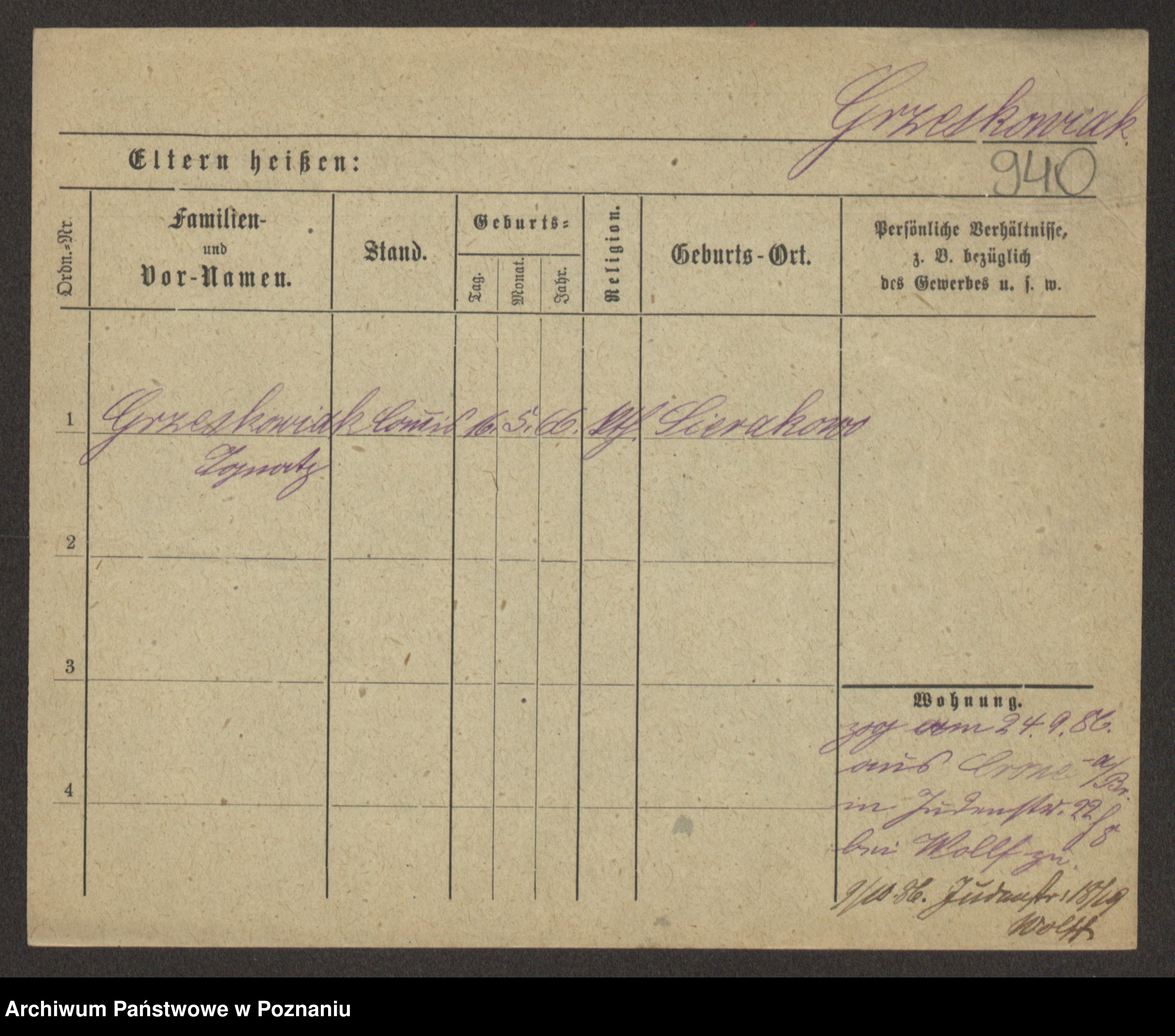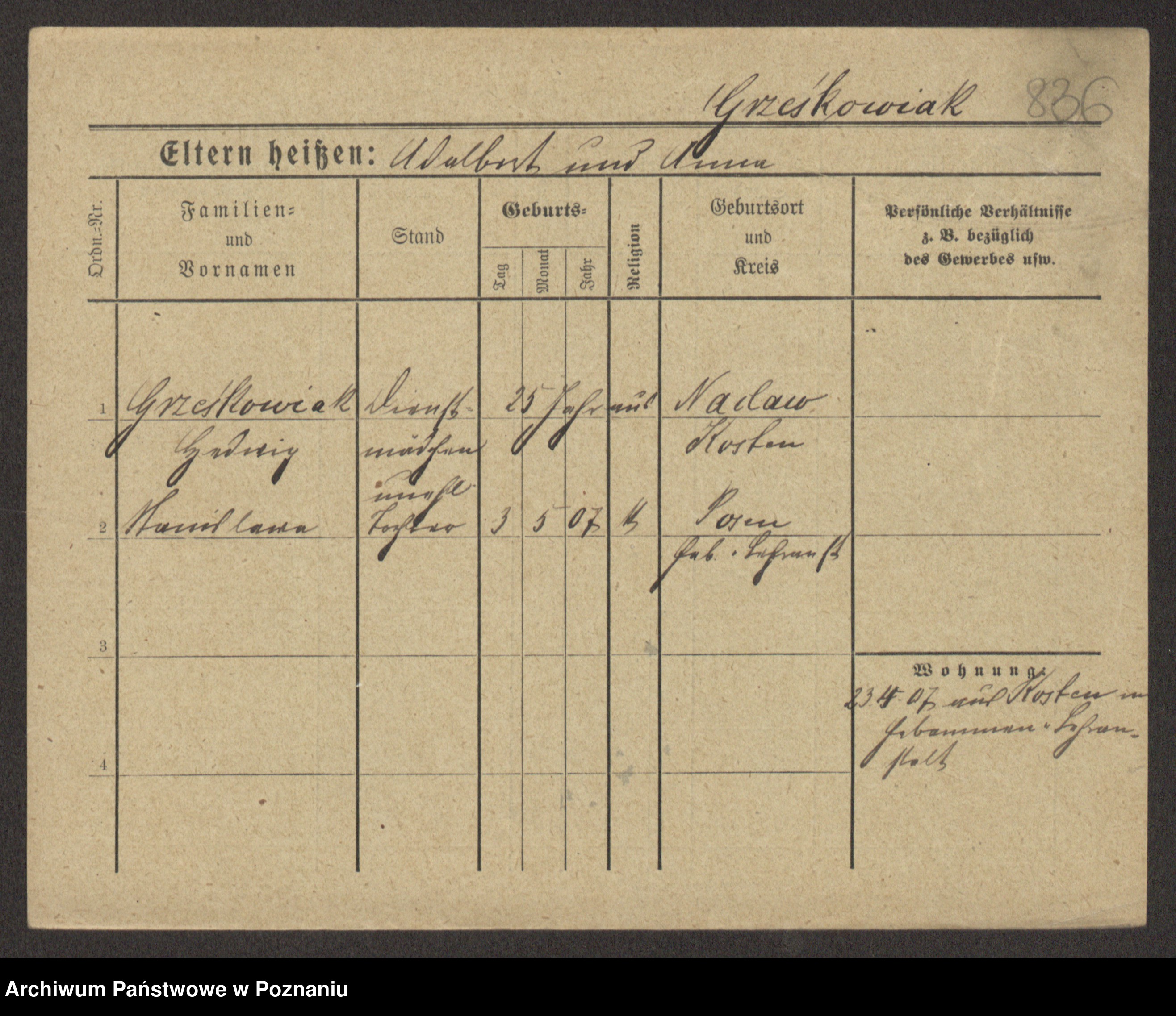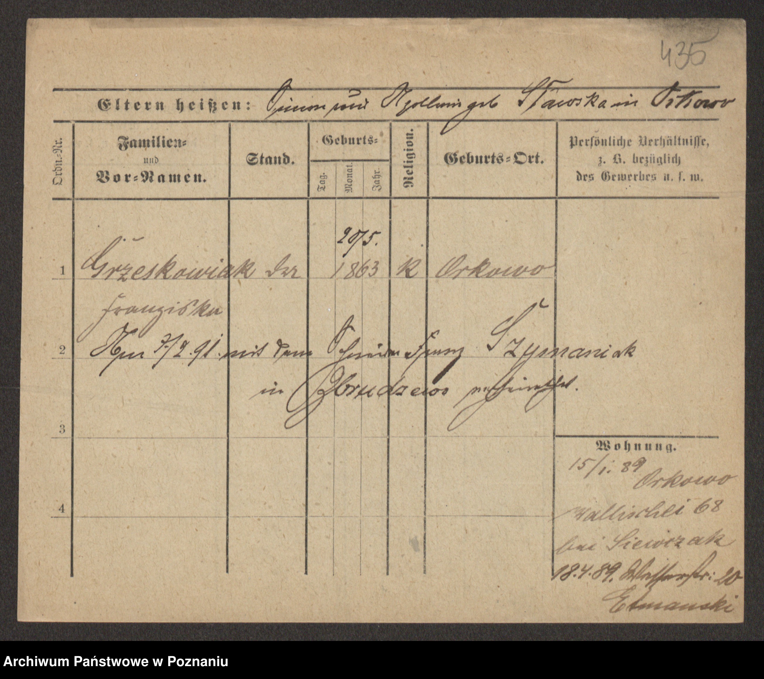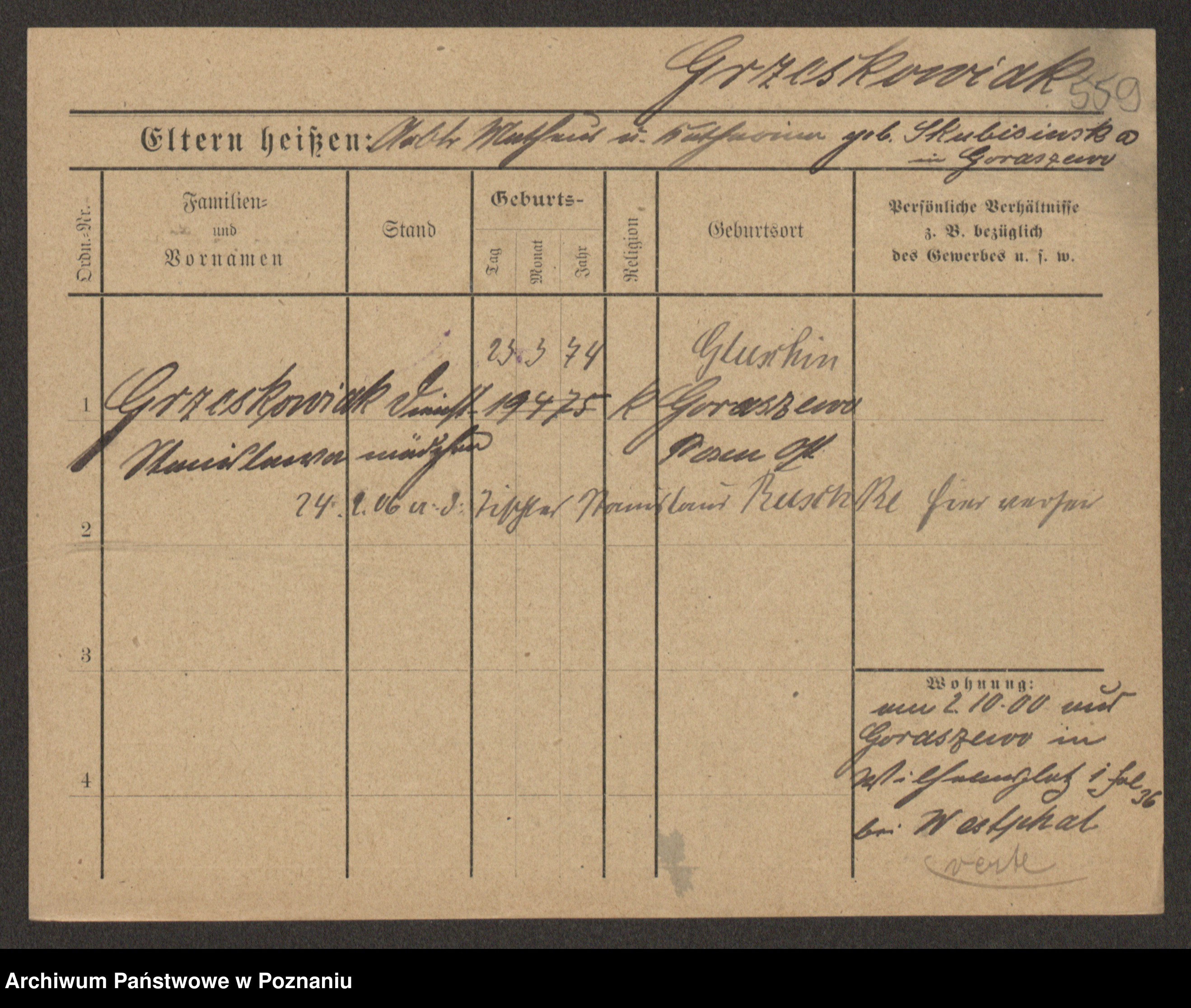 Grześkowiak z d.Wolinska I voto Bertrand, Wilhelmina