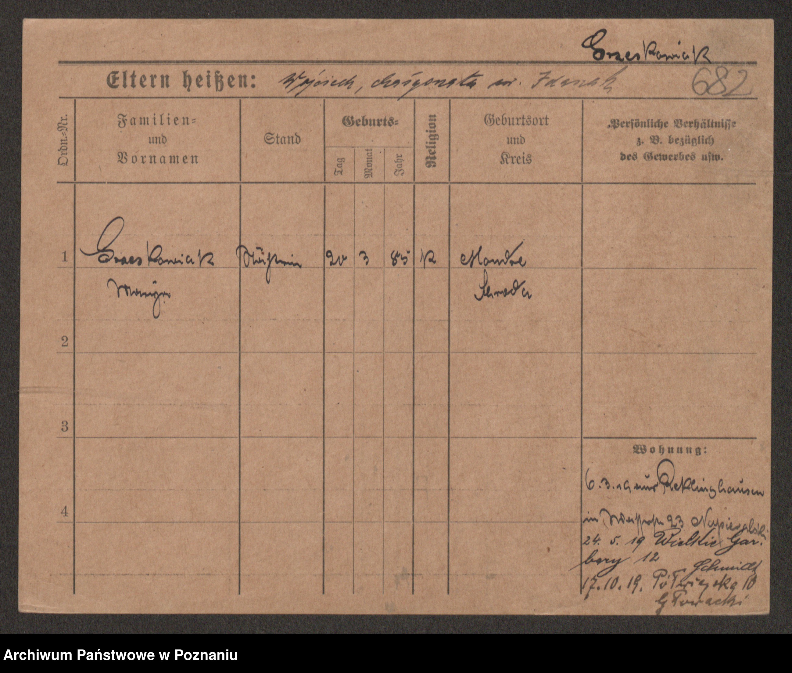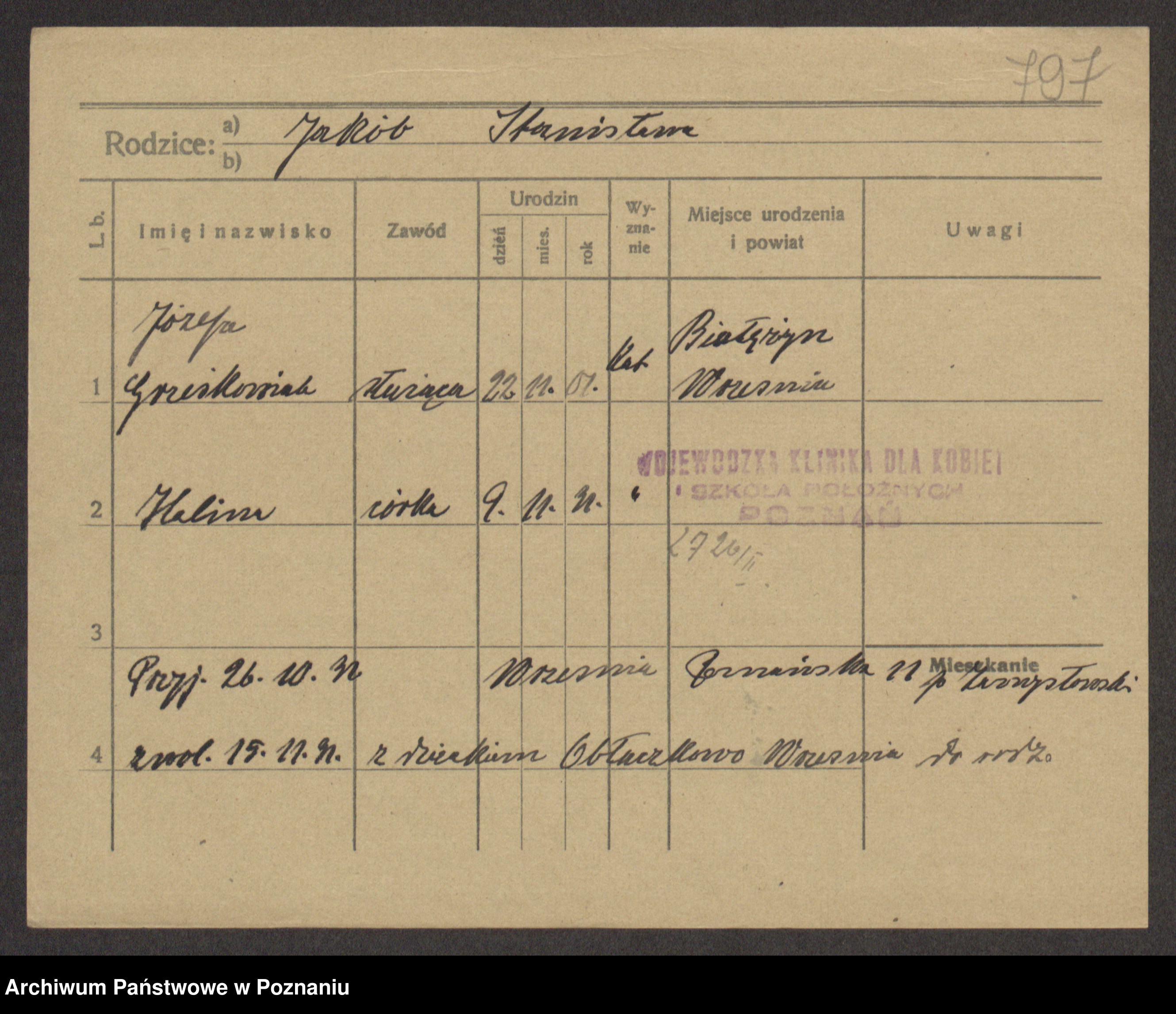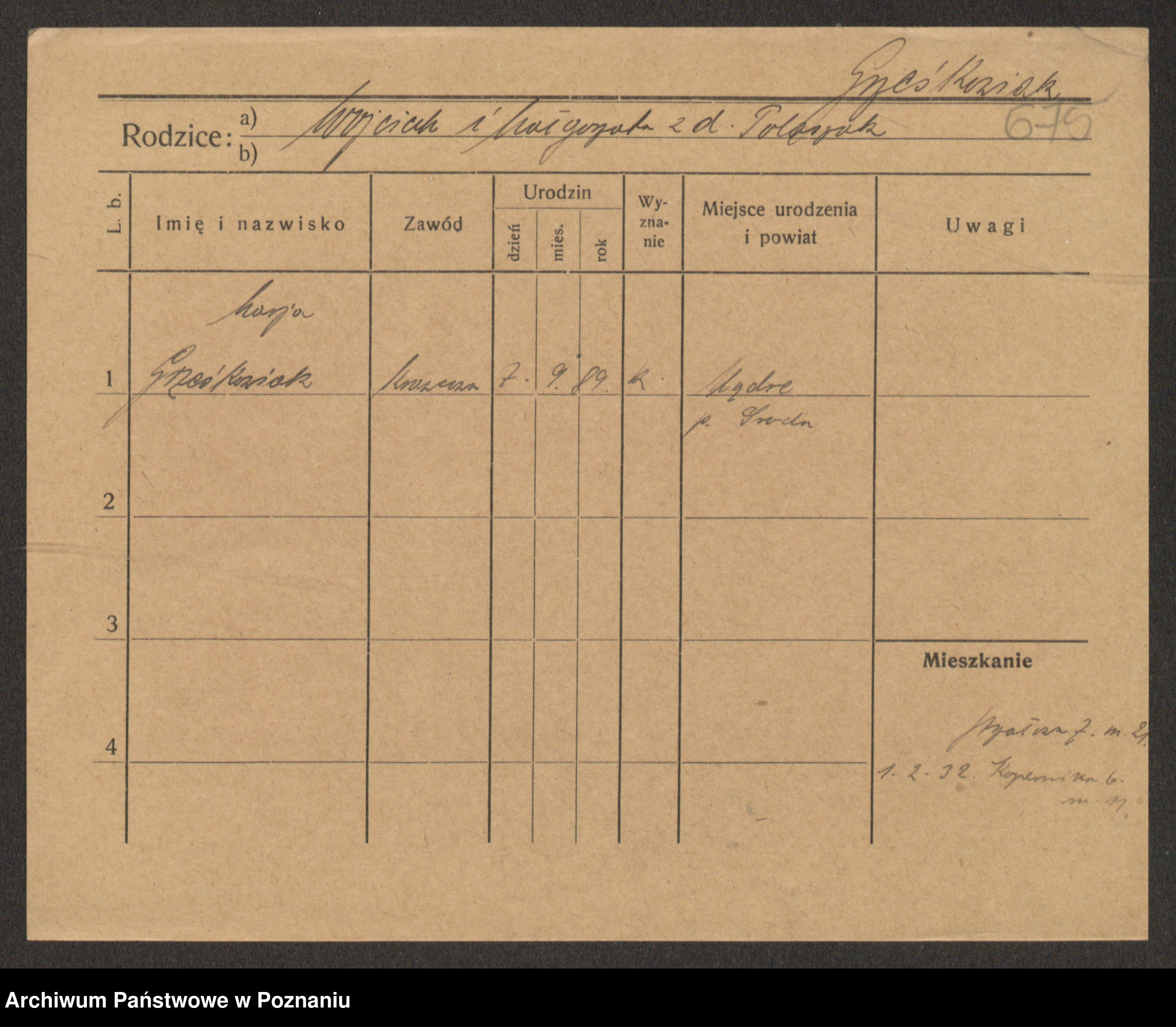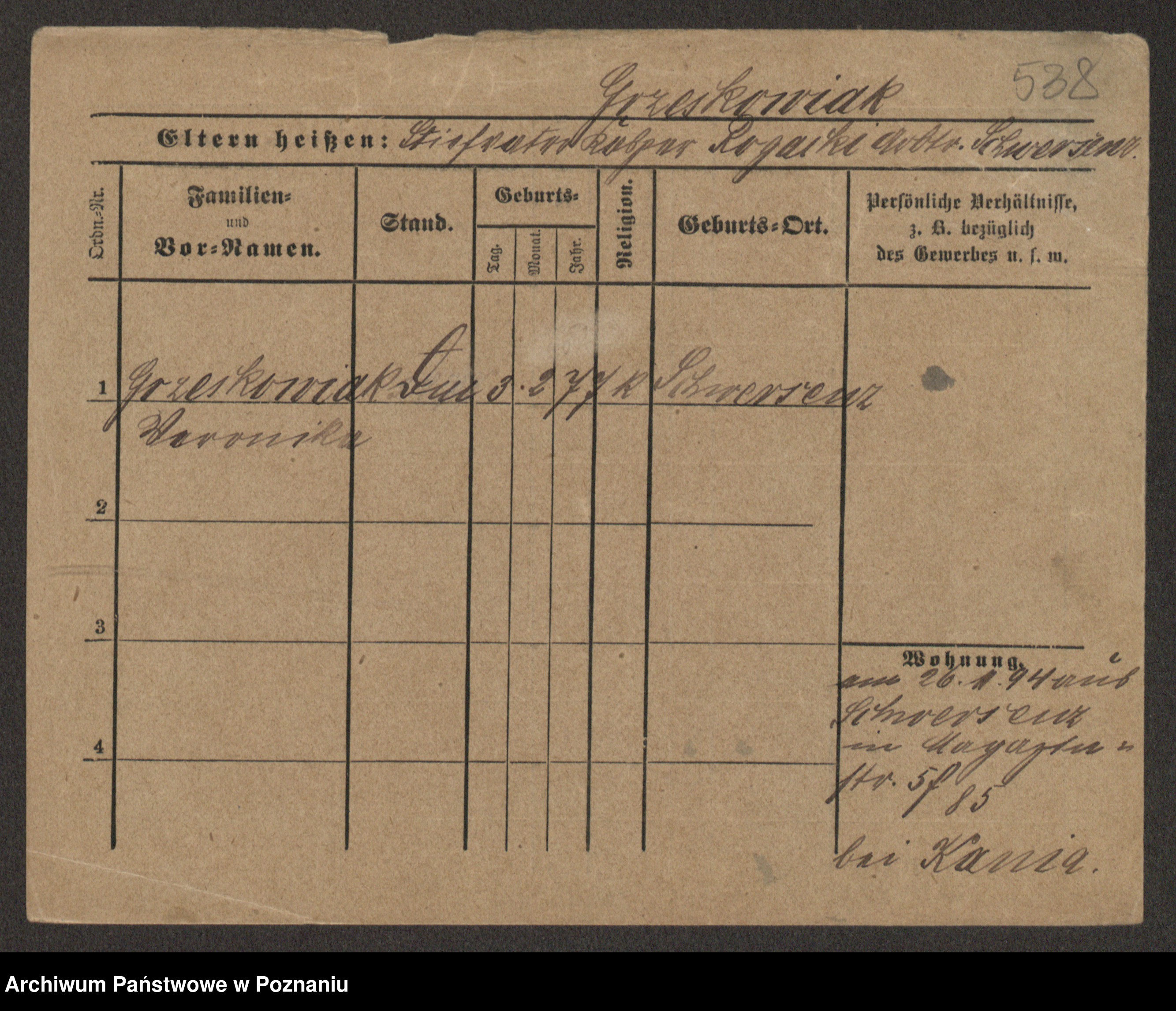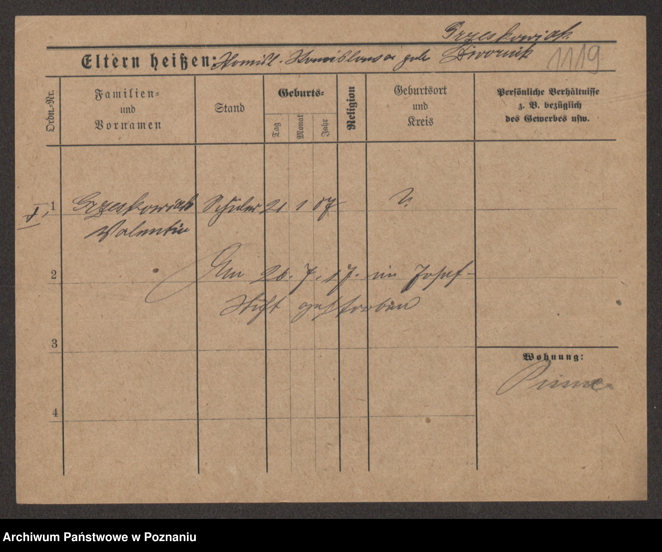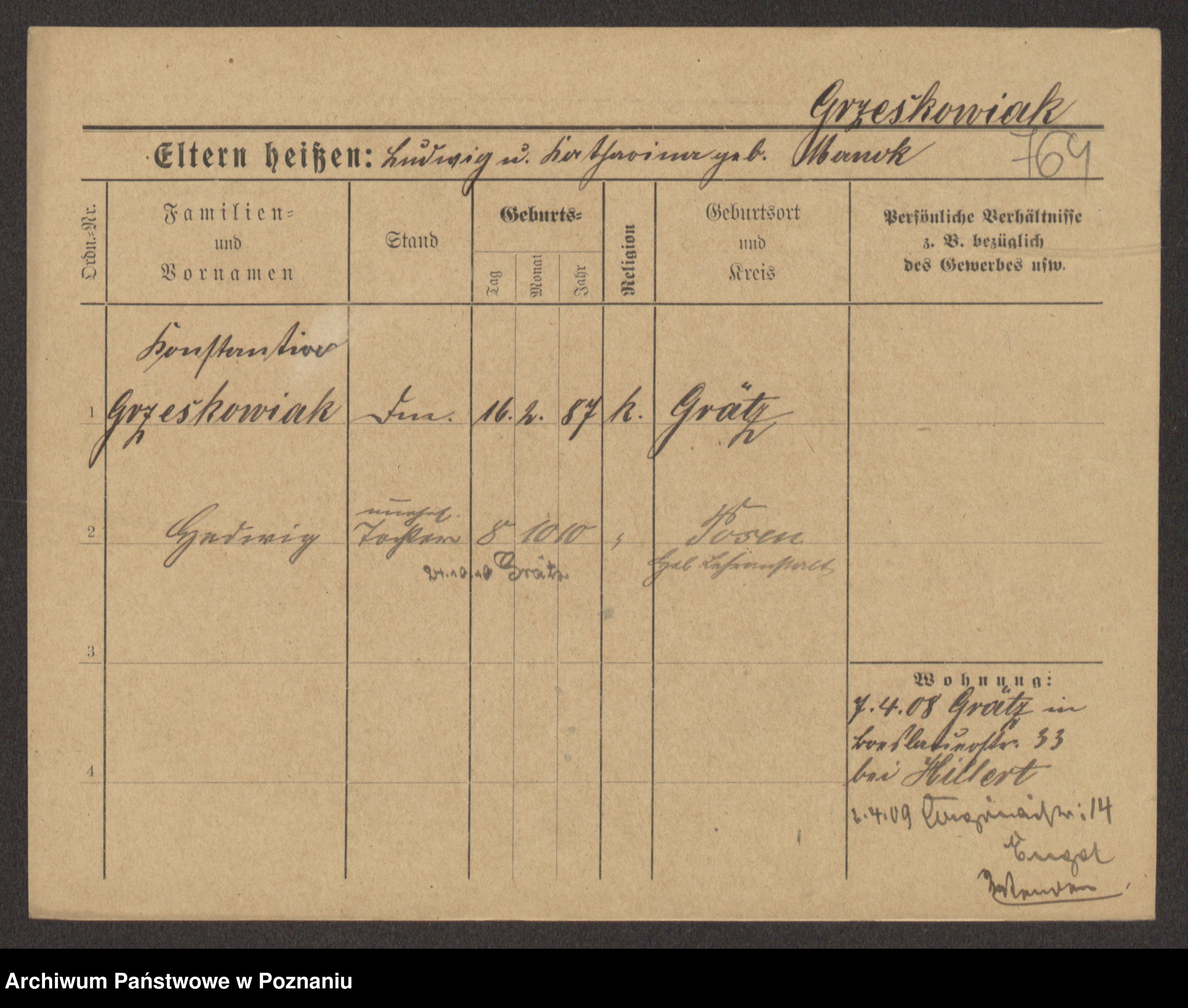 Grześkowiak z d.Wolinska I voto Bertrand, Wilhelmina