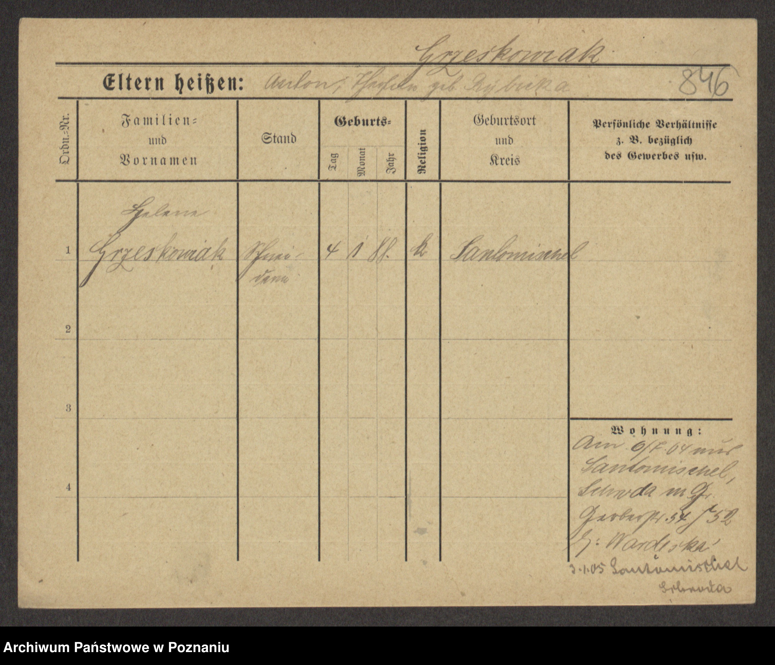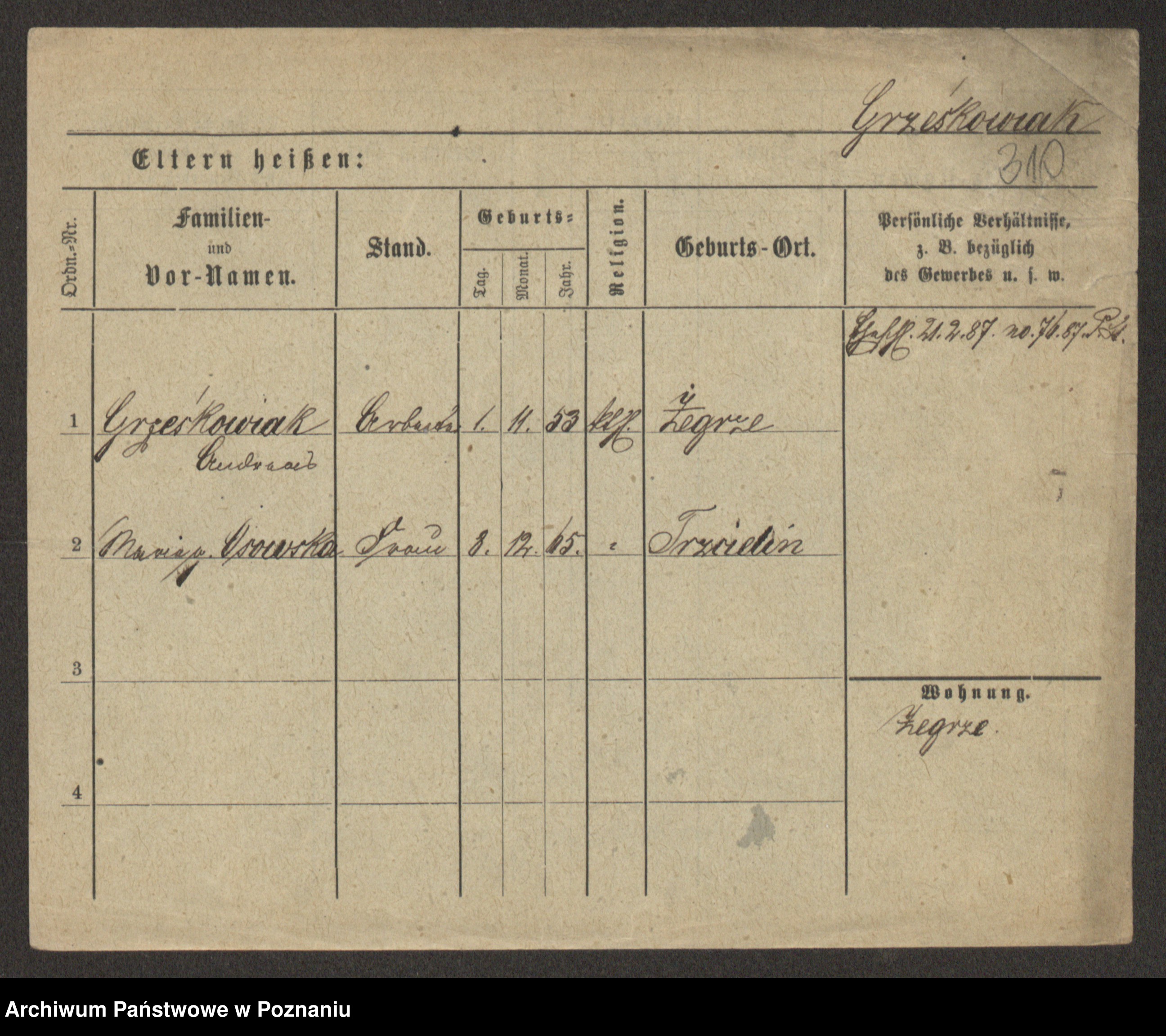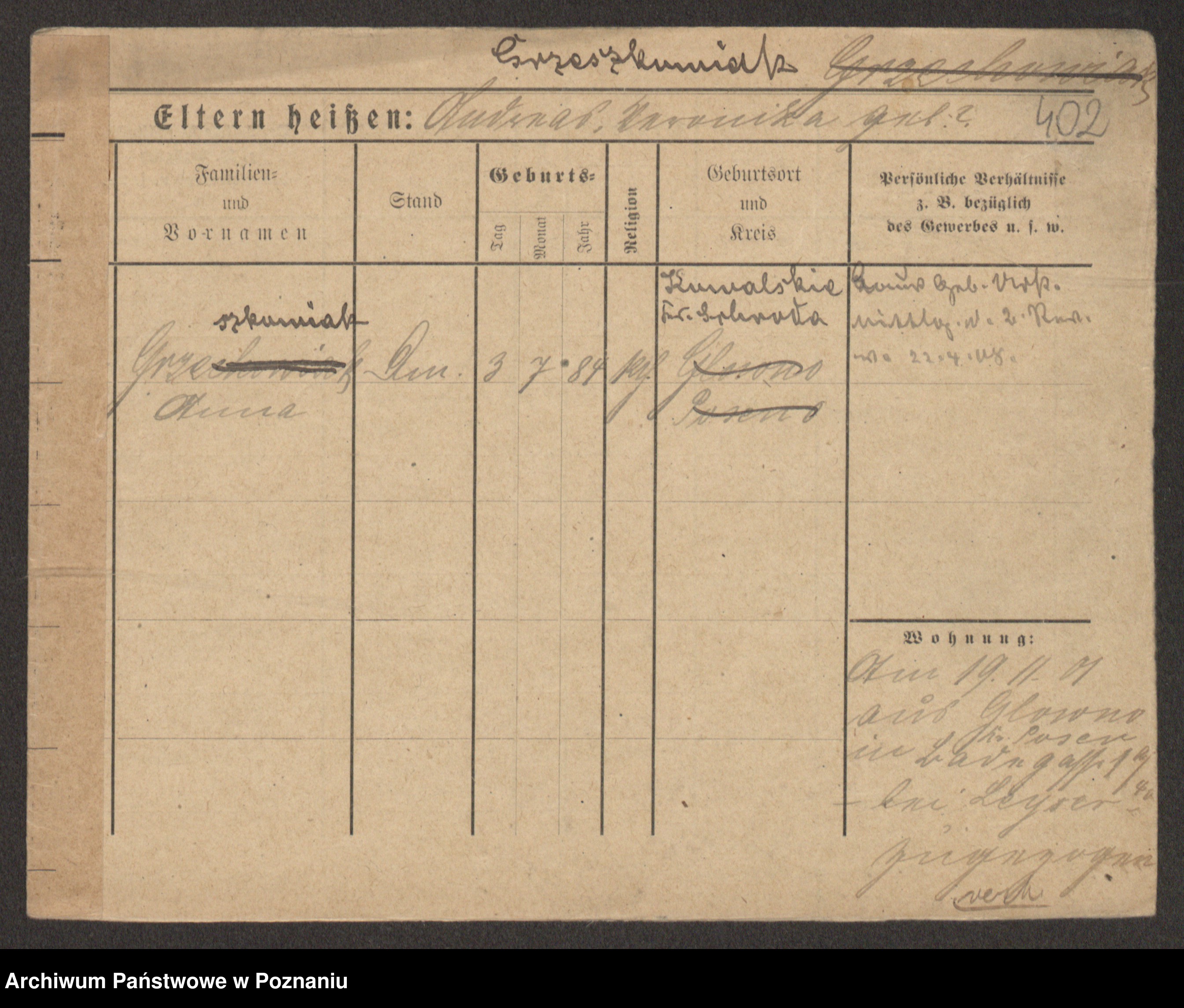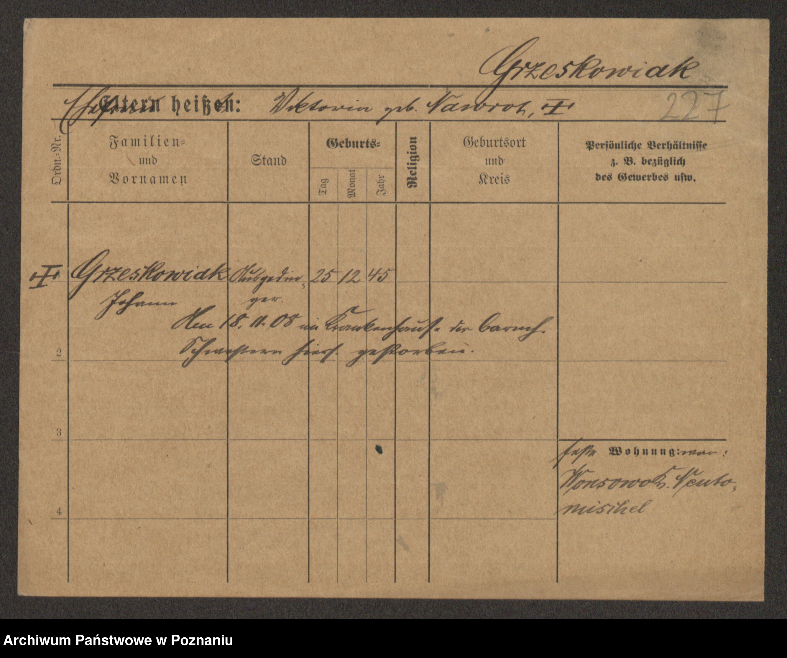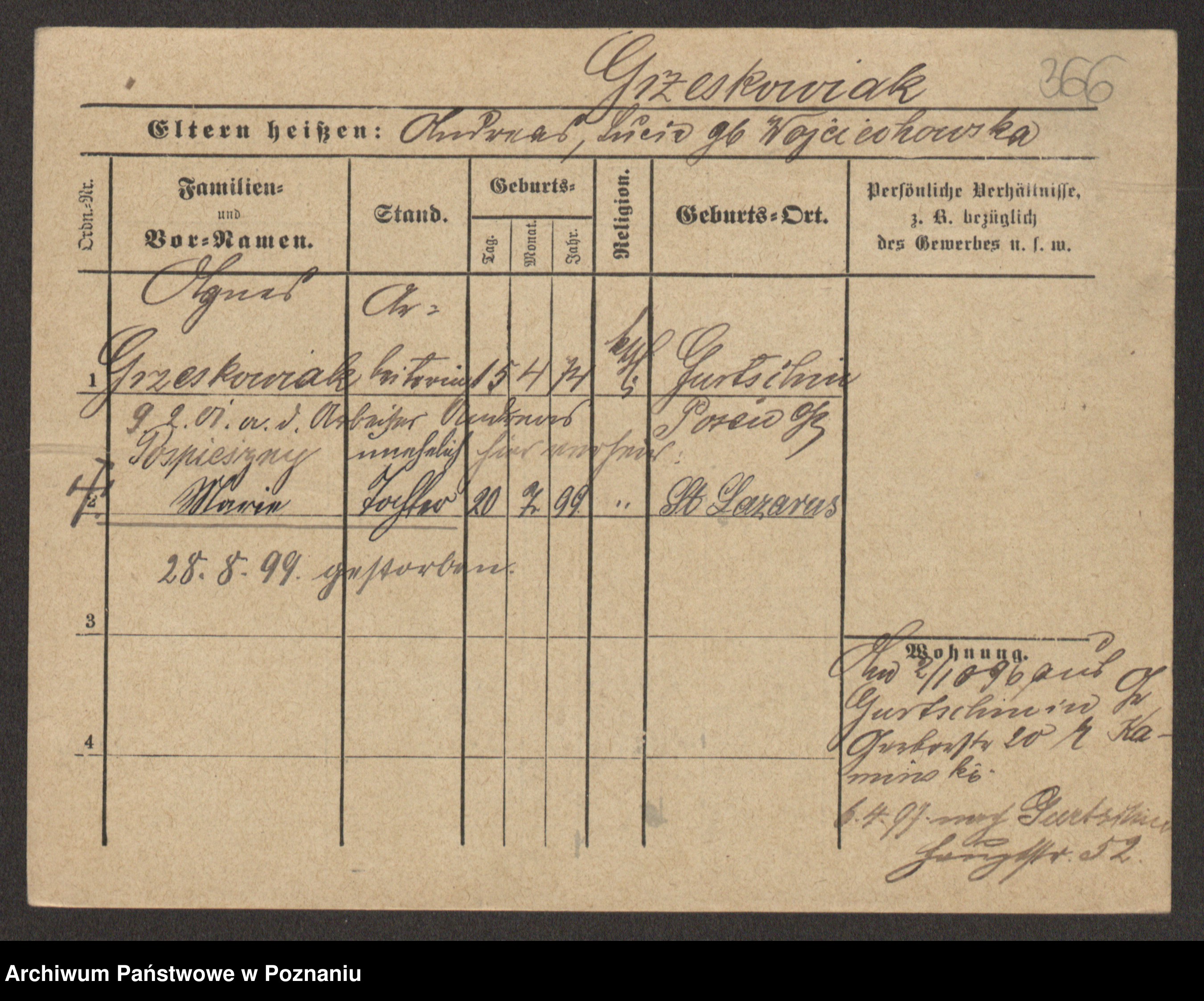 Grześkowiak z d.Wolinska I voto Bertrand, Wilhelmina