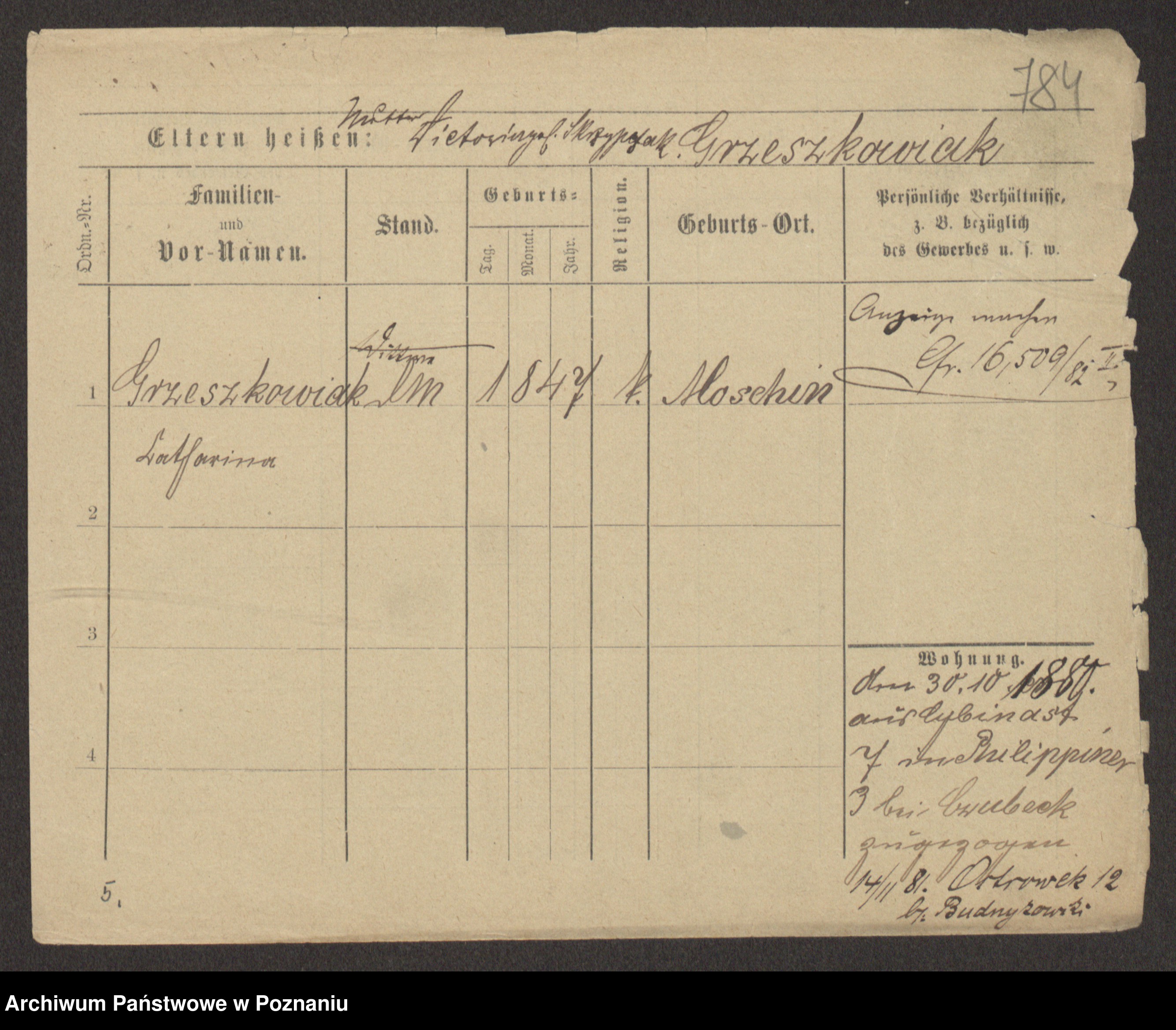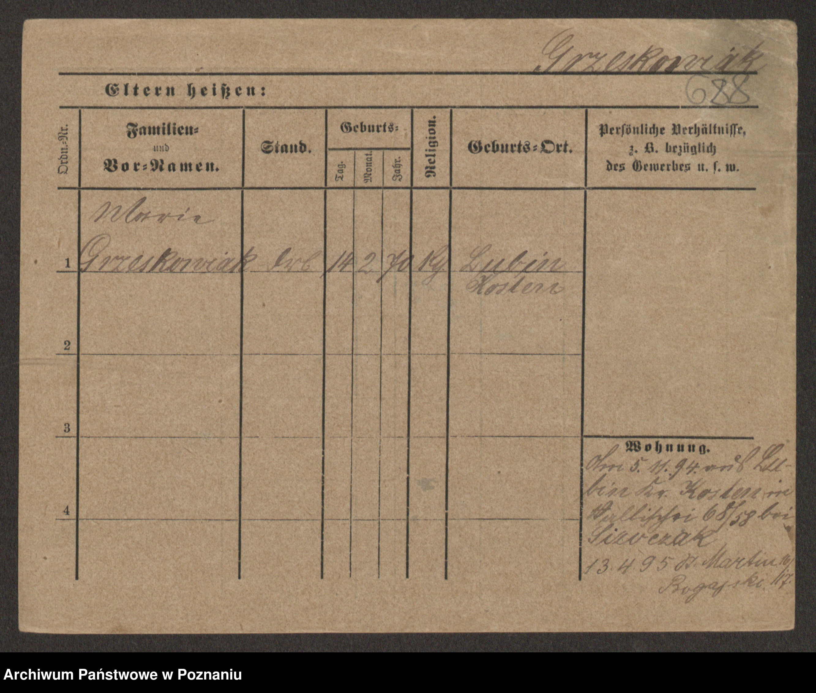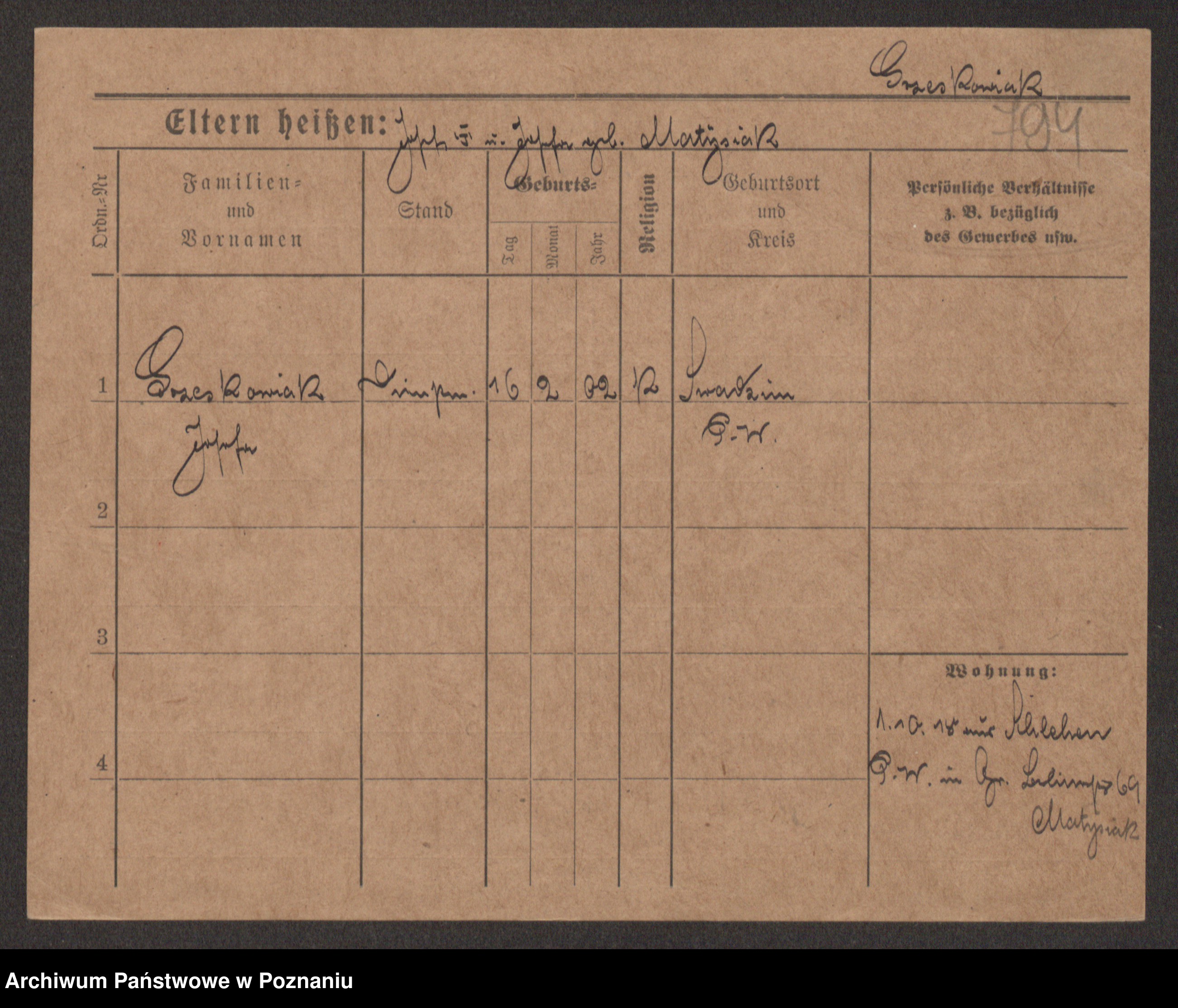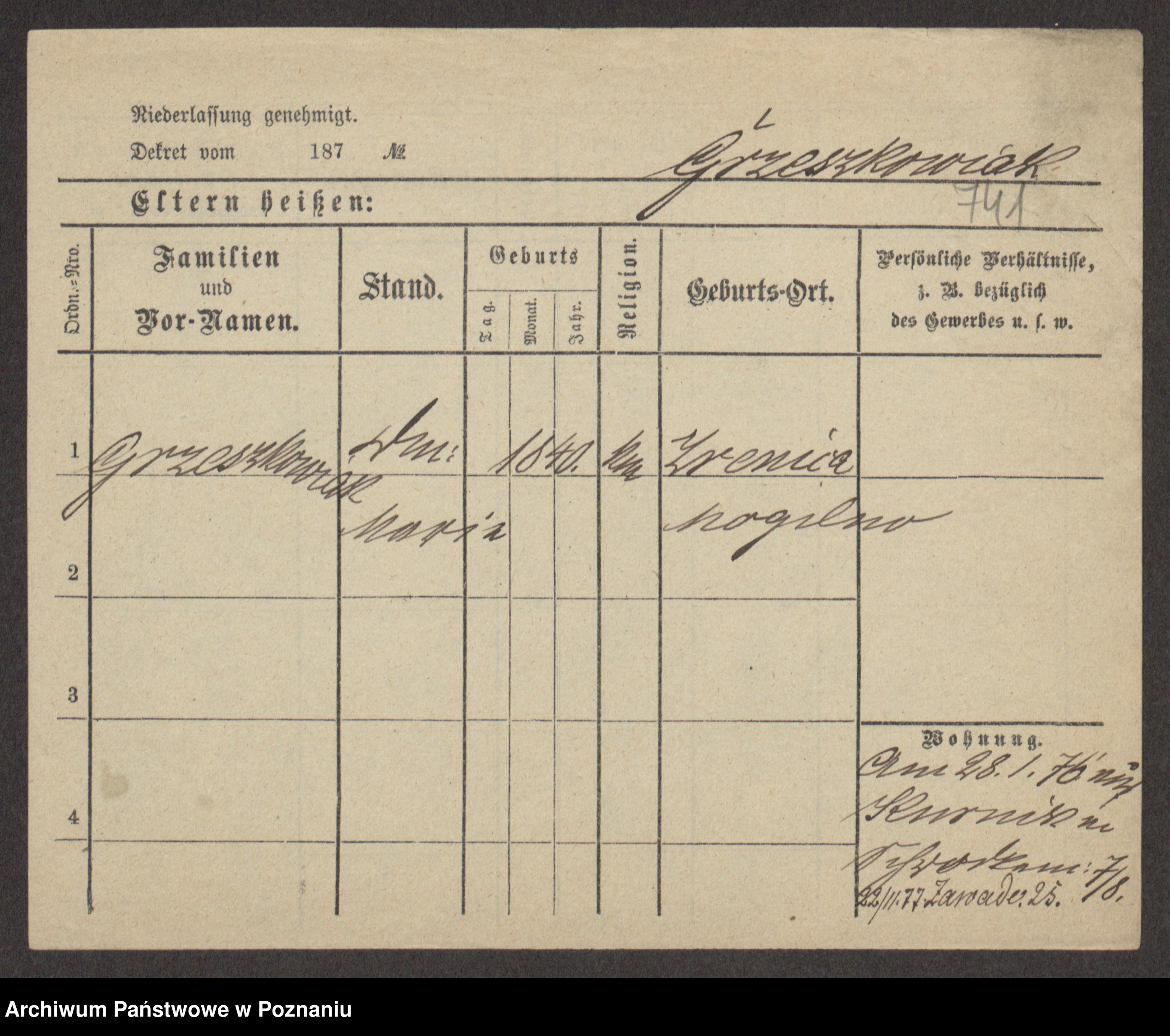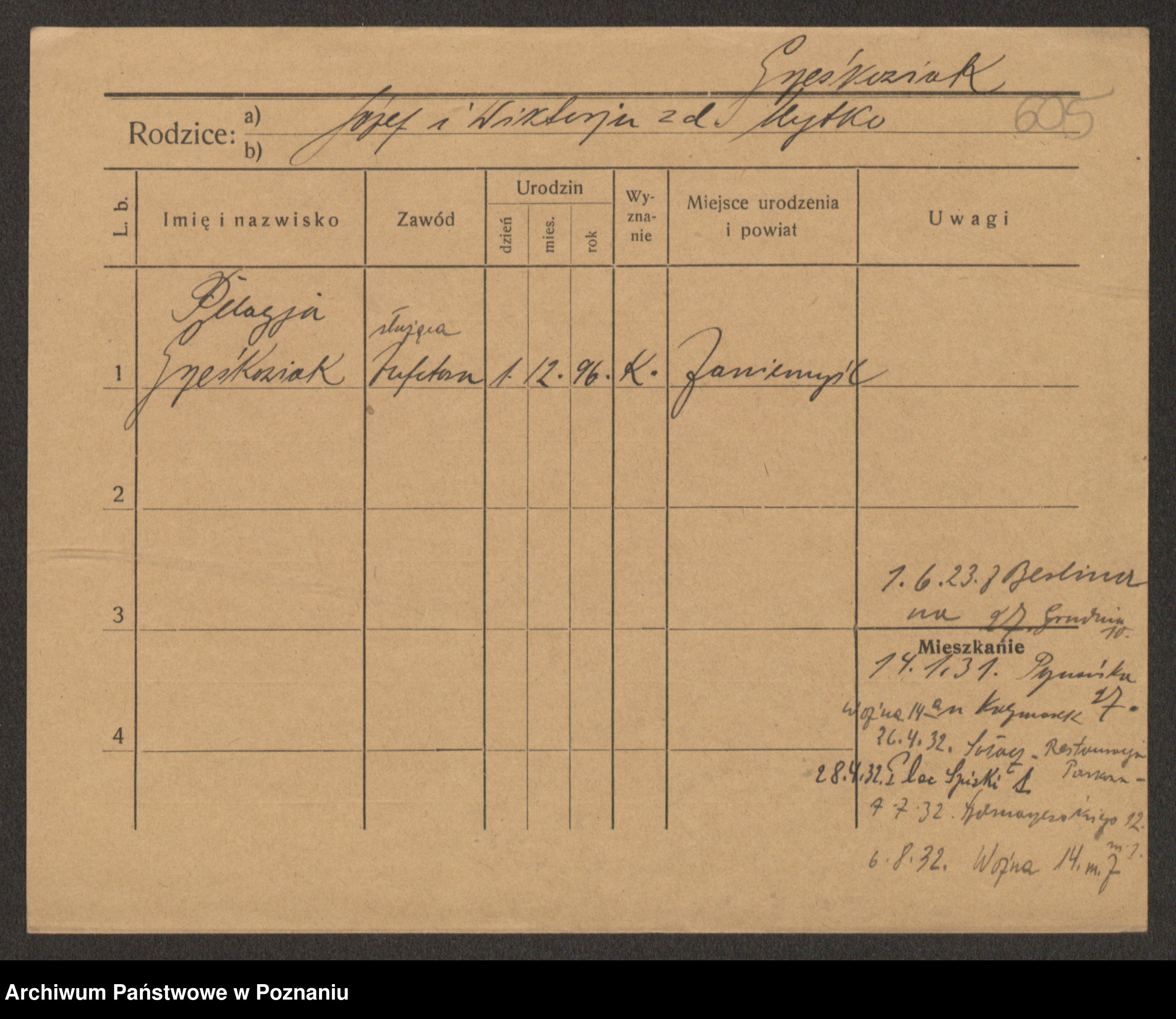 Grześkowiak z d.Wolinska I voto Bertrand, Wilhelmina