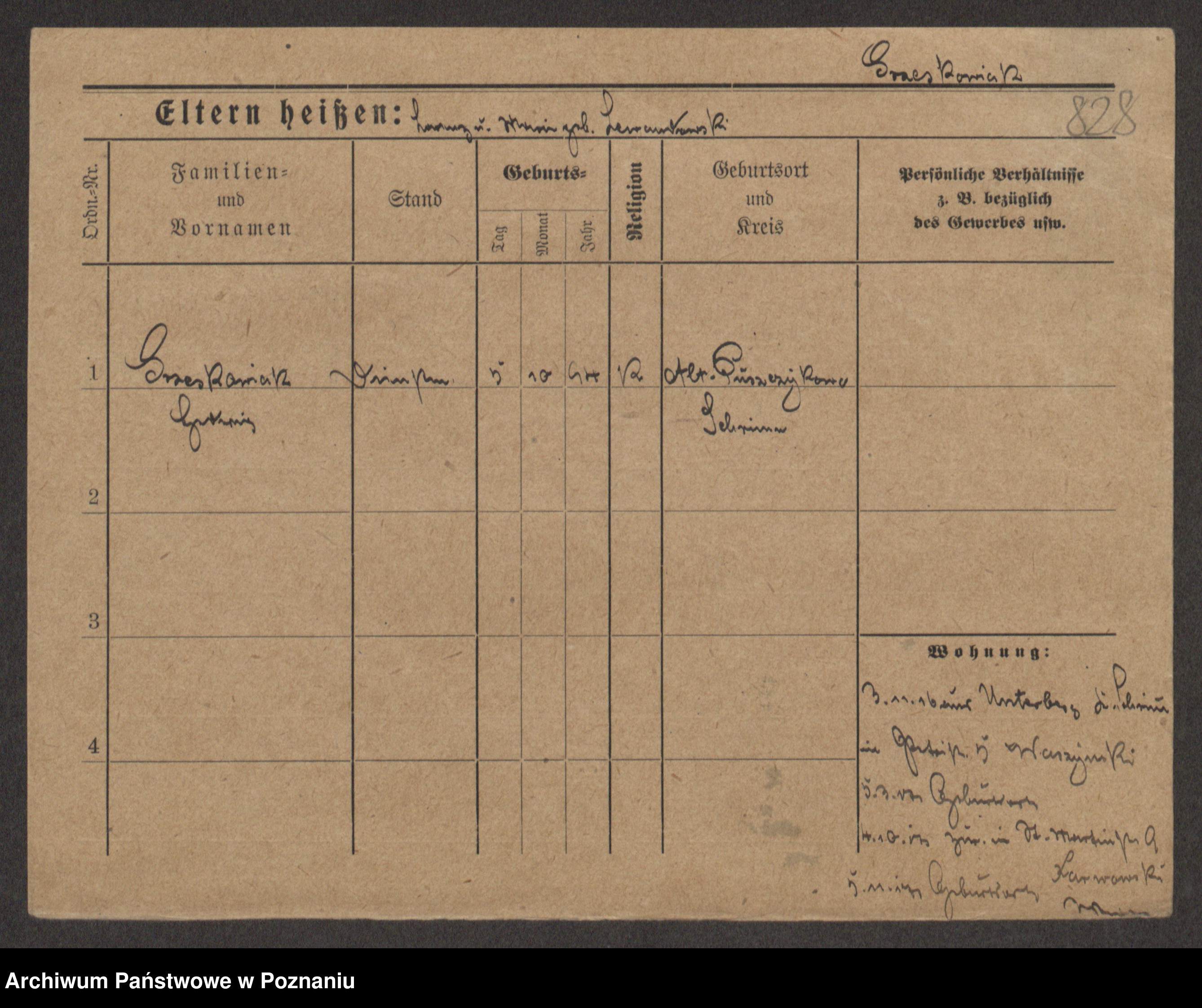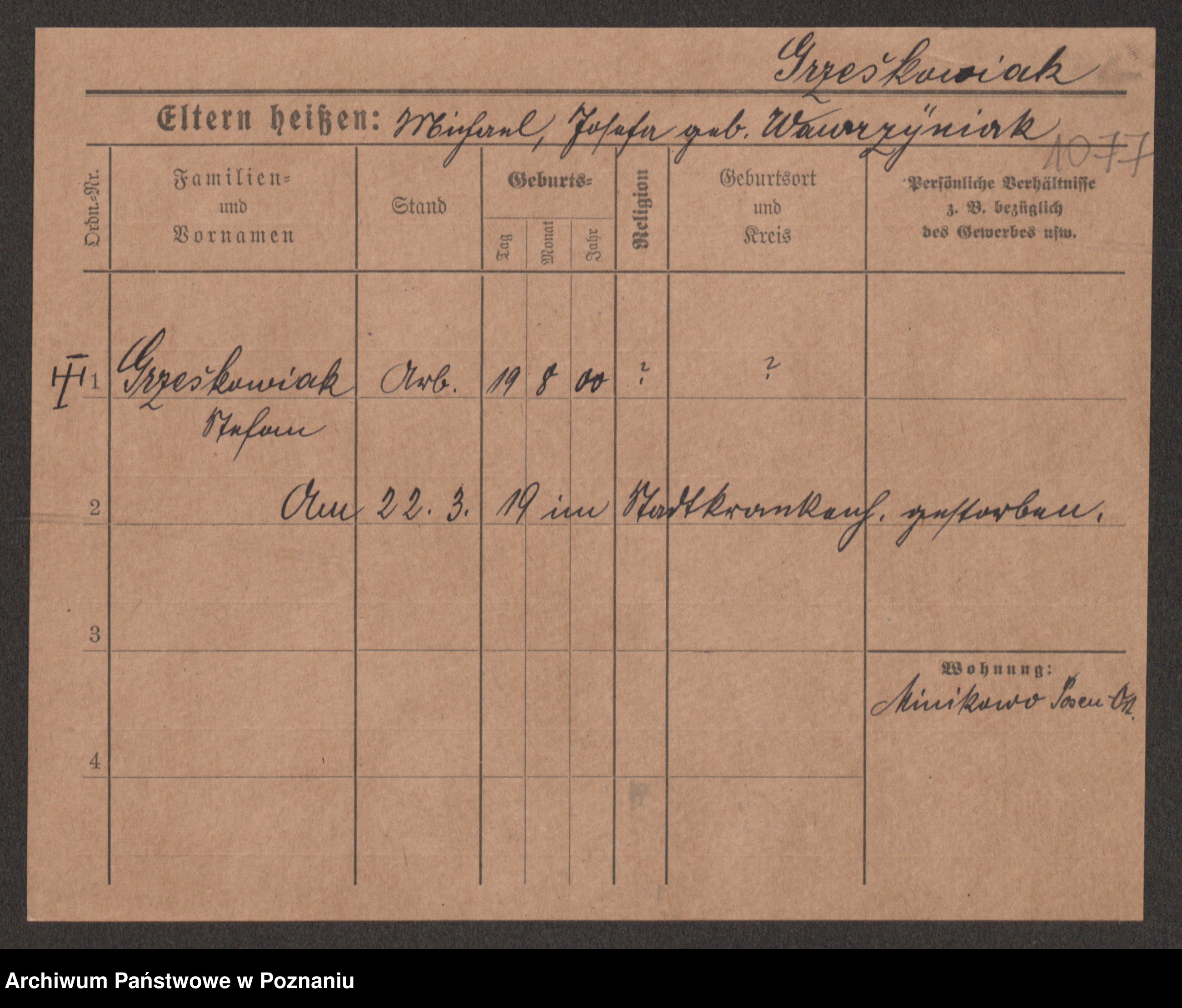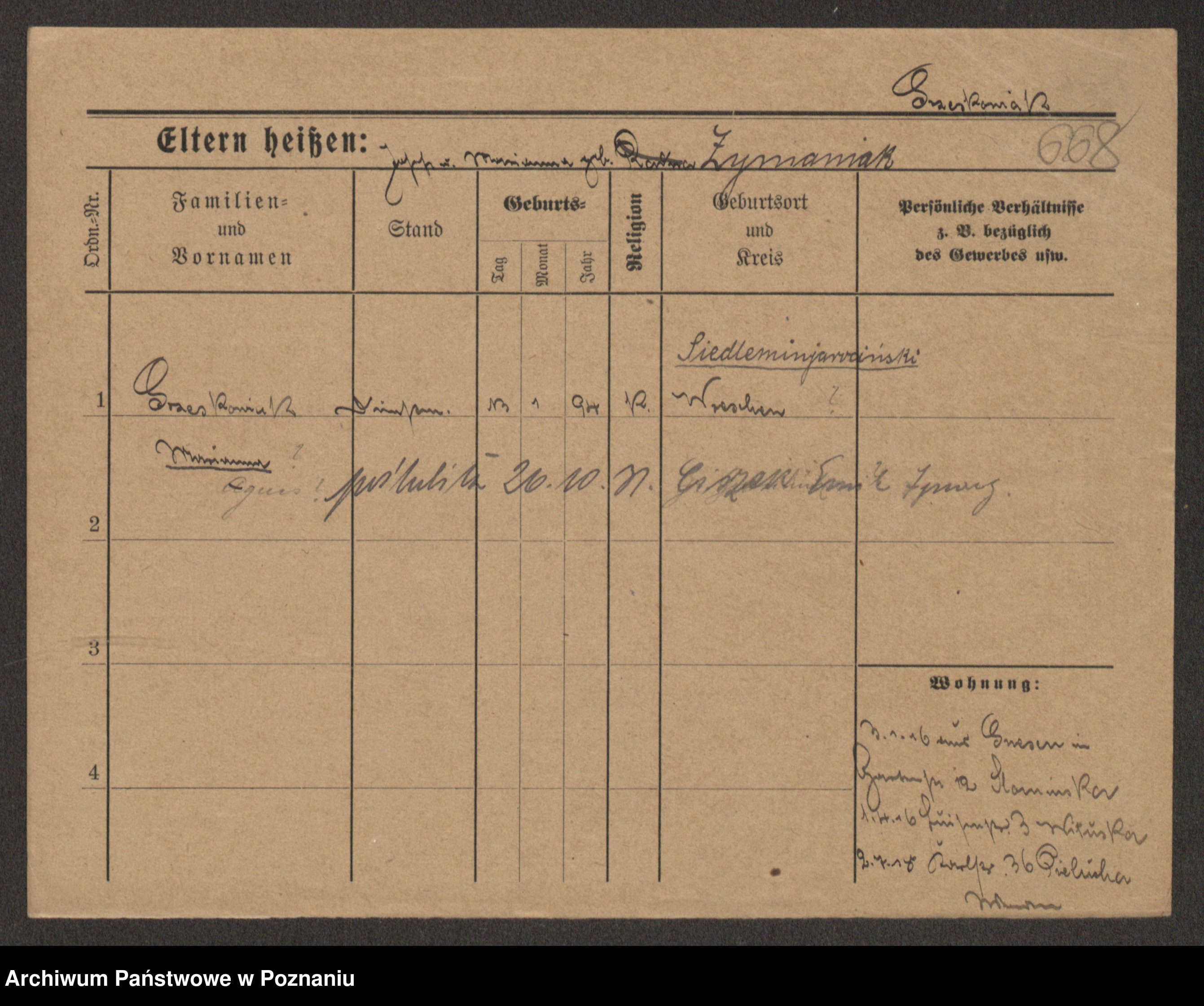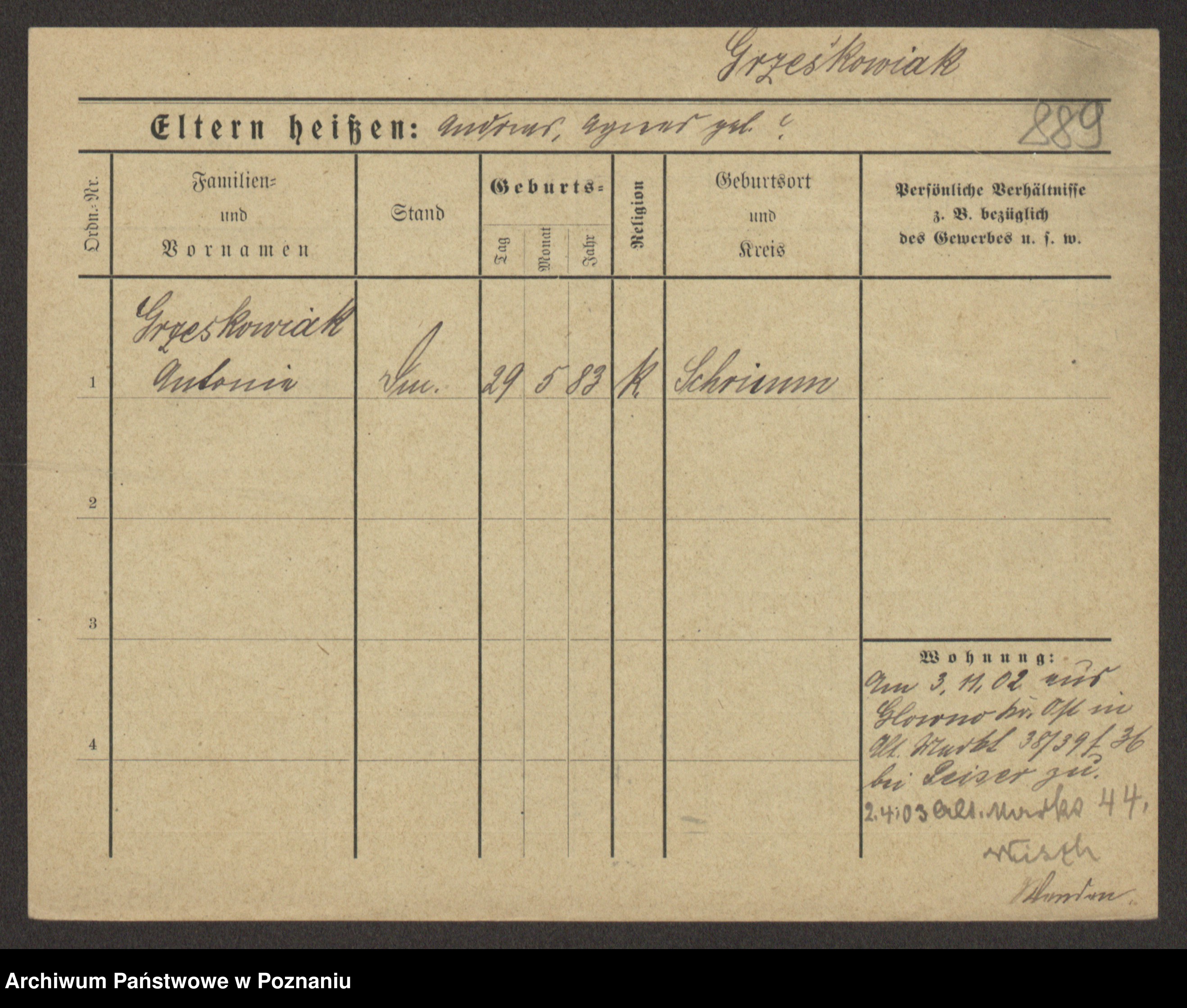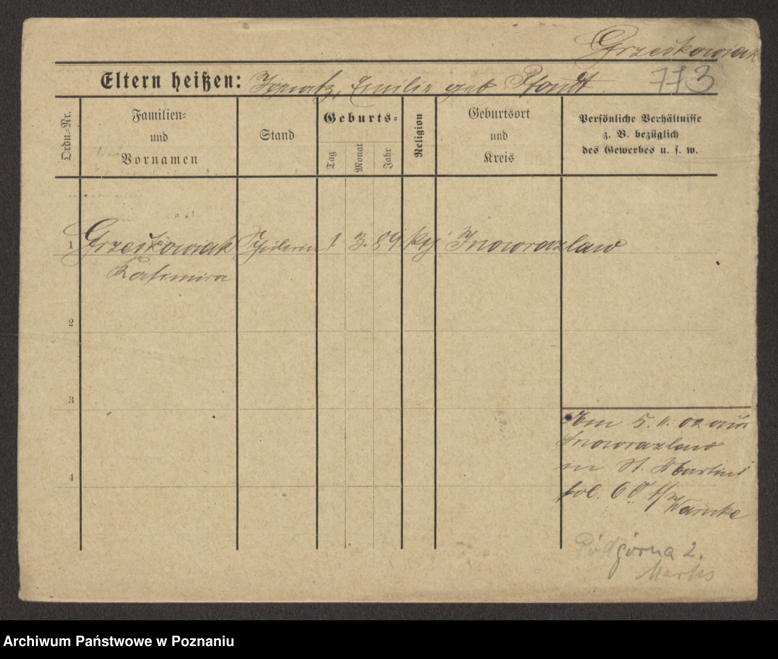 Grześkowiak z d.Wolinska I voto Bertrand, Wilhelmina