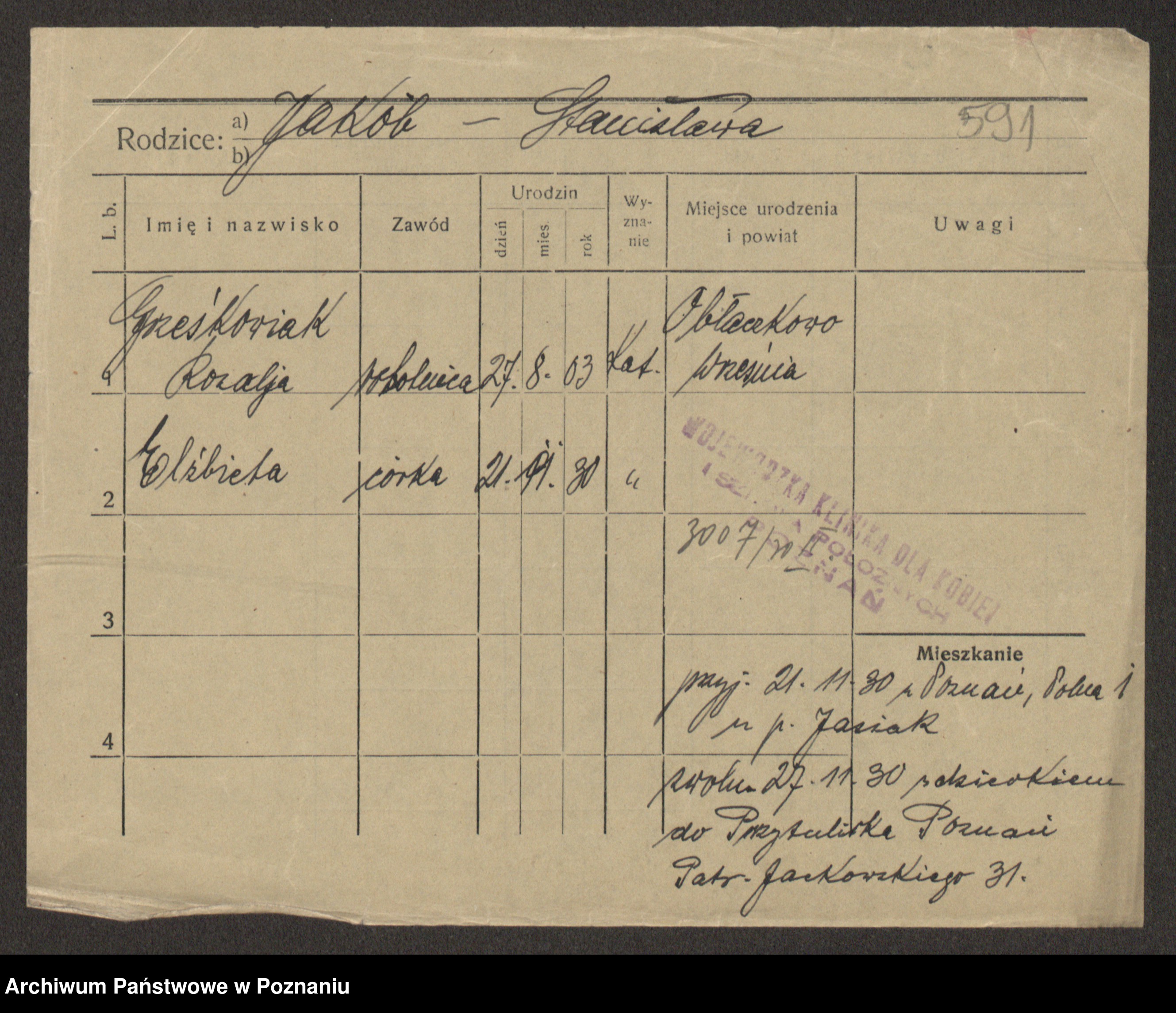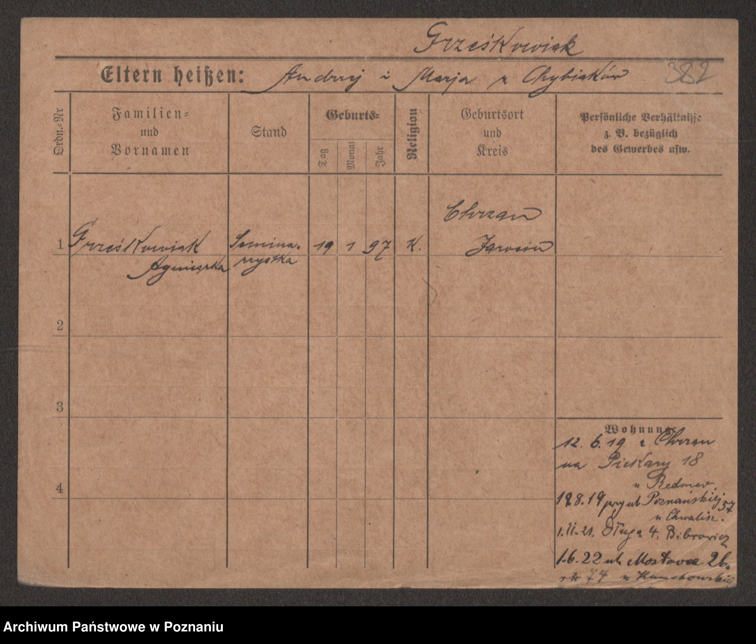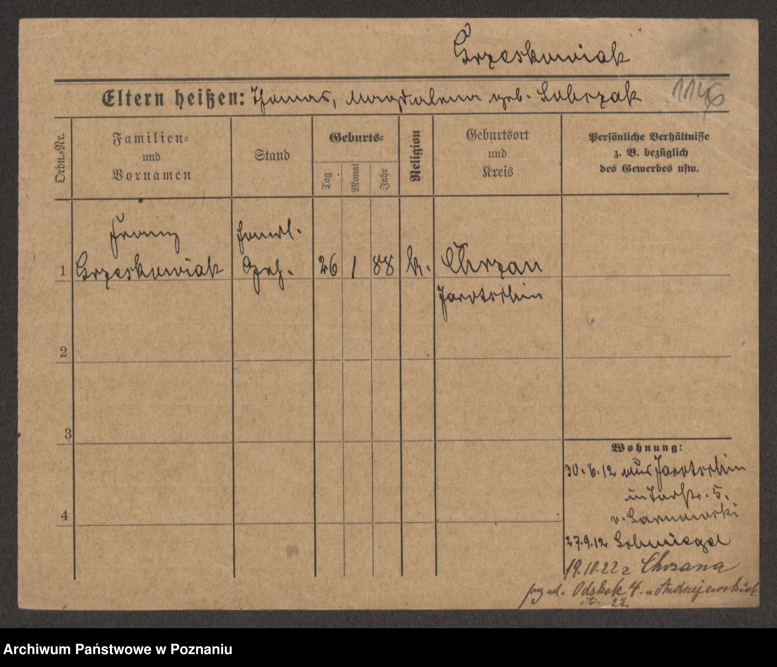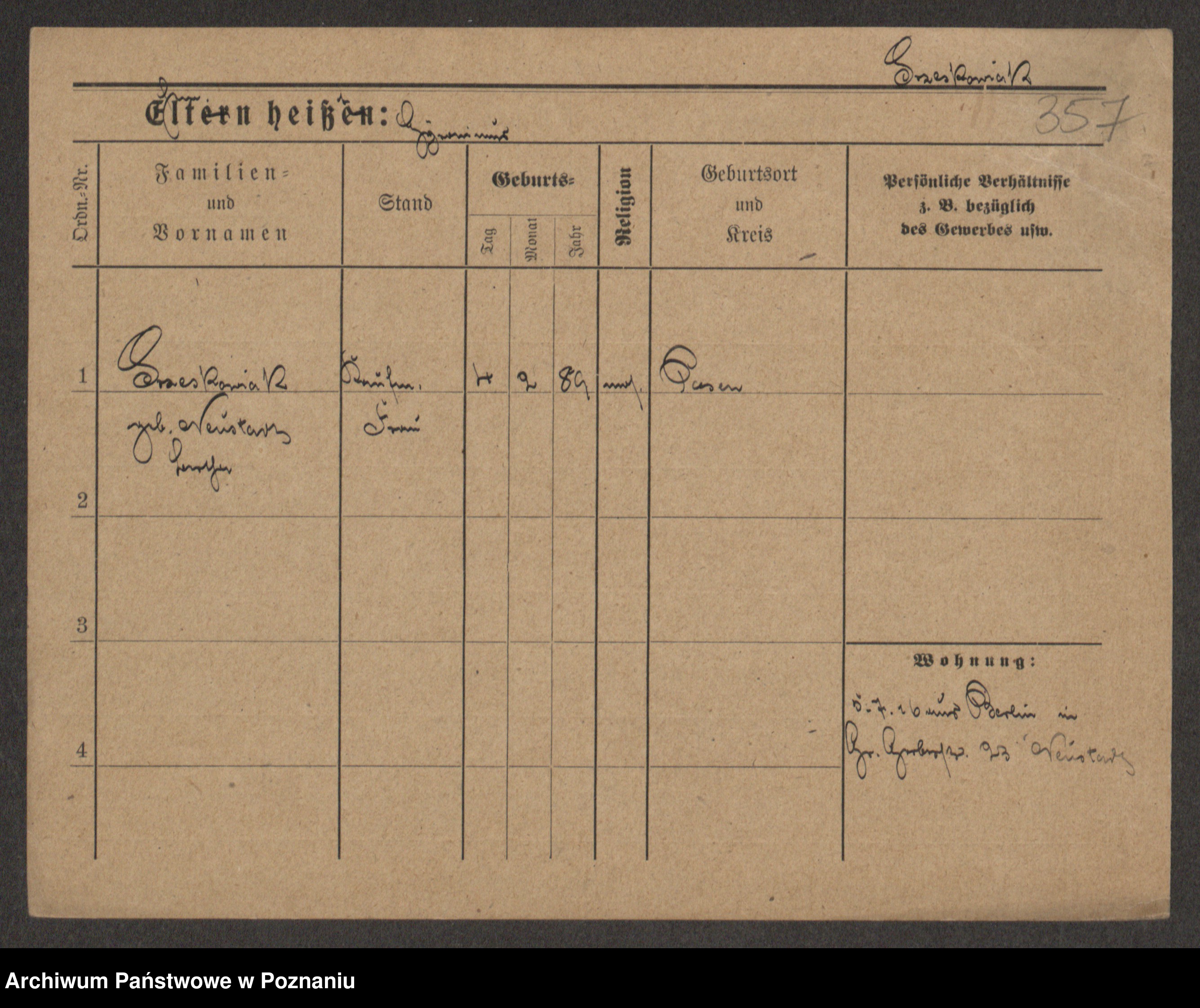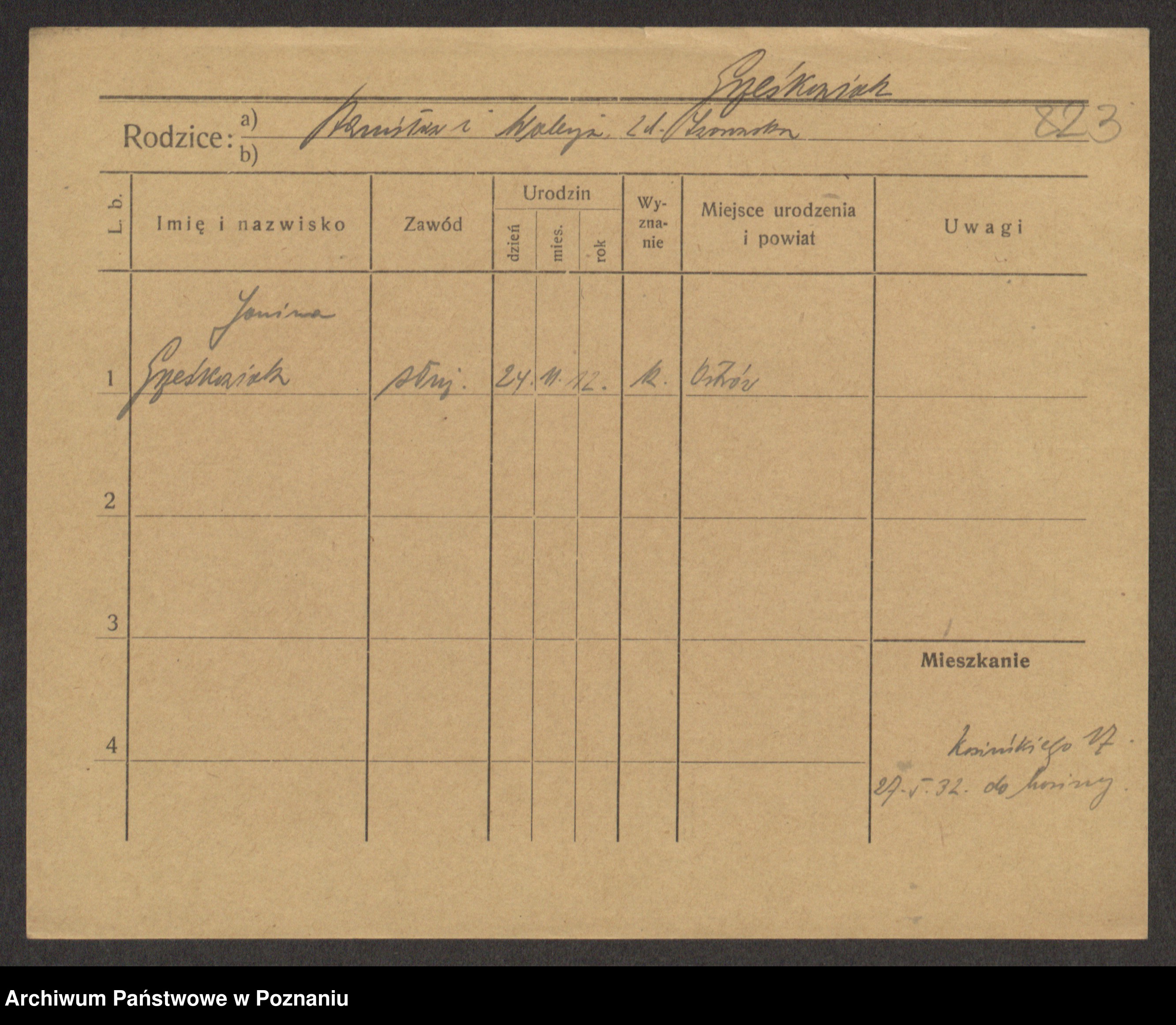 Grześkowiak z d.Wolinska I voto Bertrand, Wilhelmina