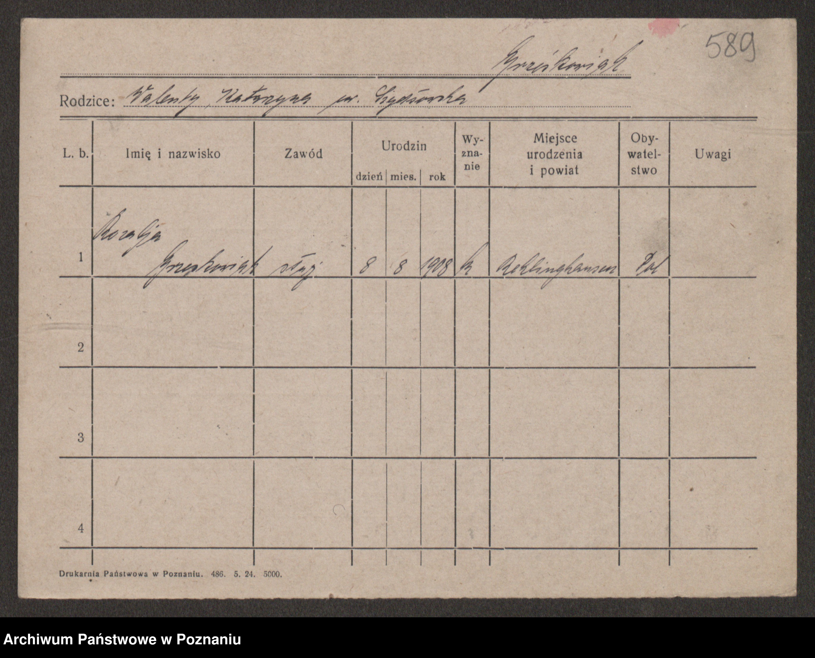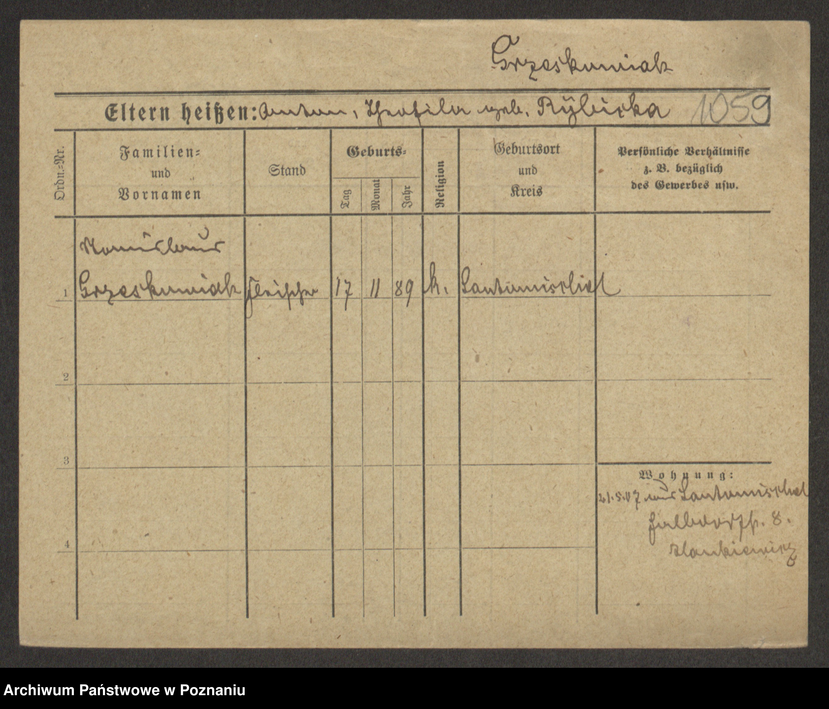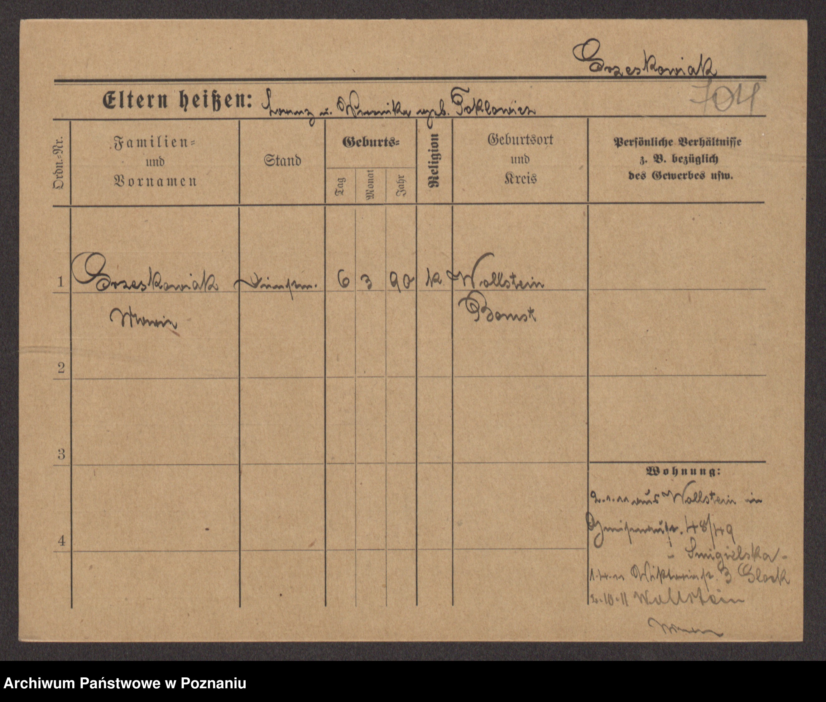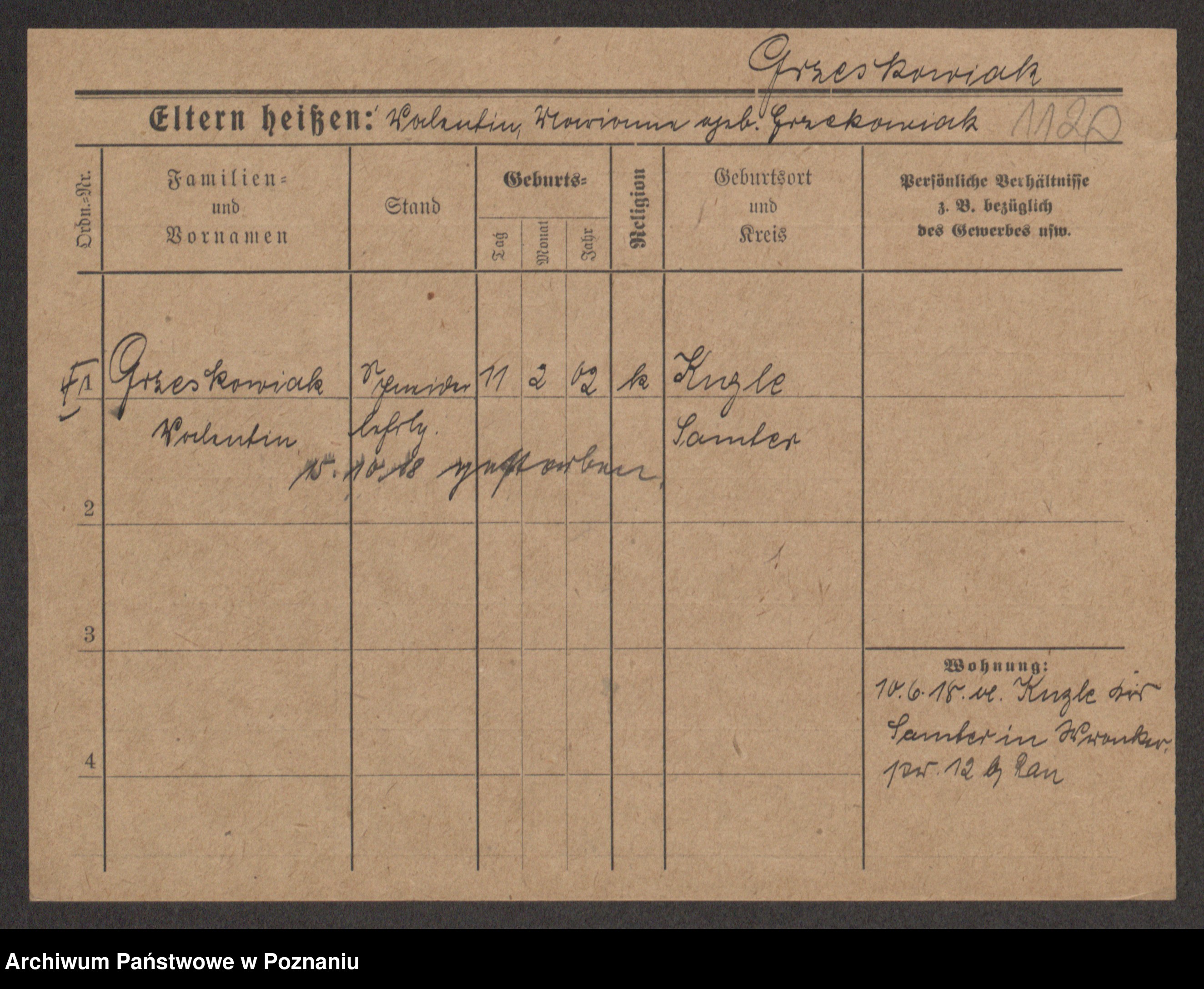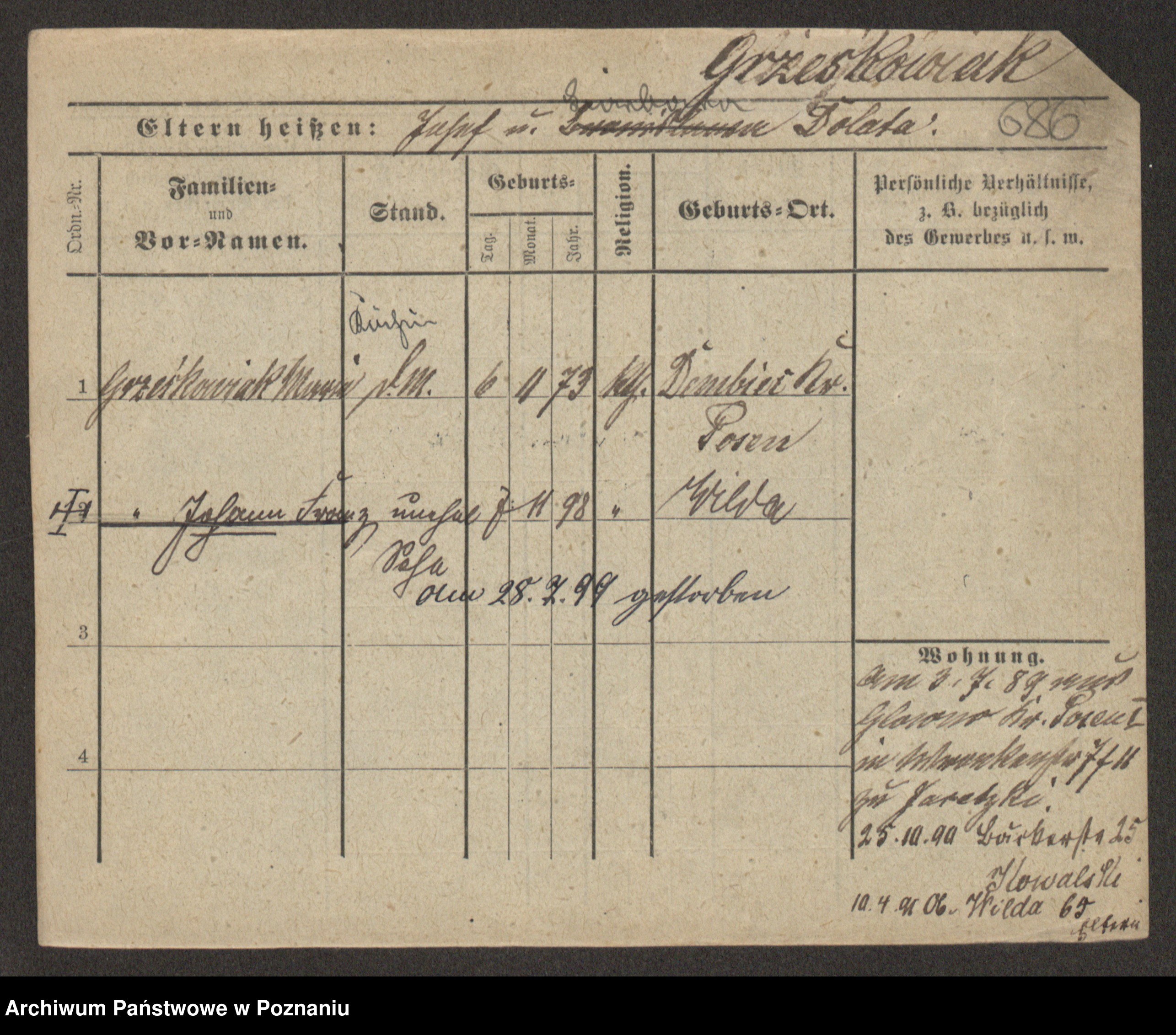 Grześkowiak z d.Wolinska I voto Bertrand, Wilhelmina