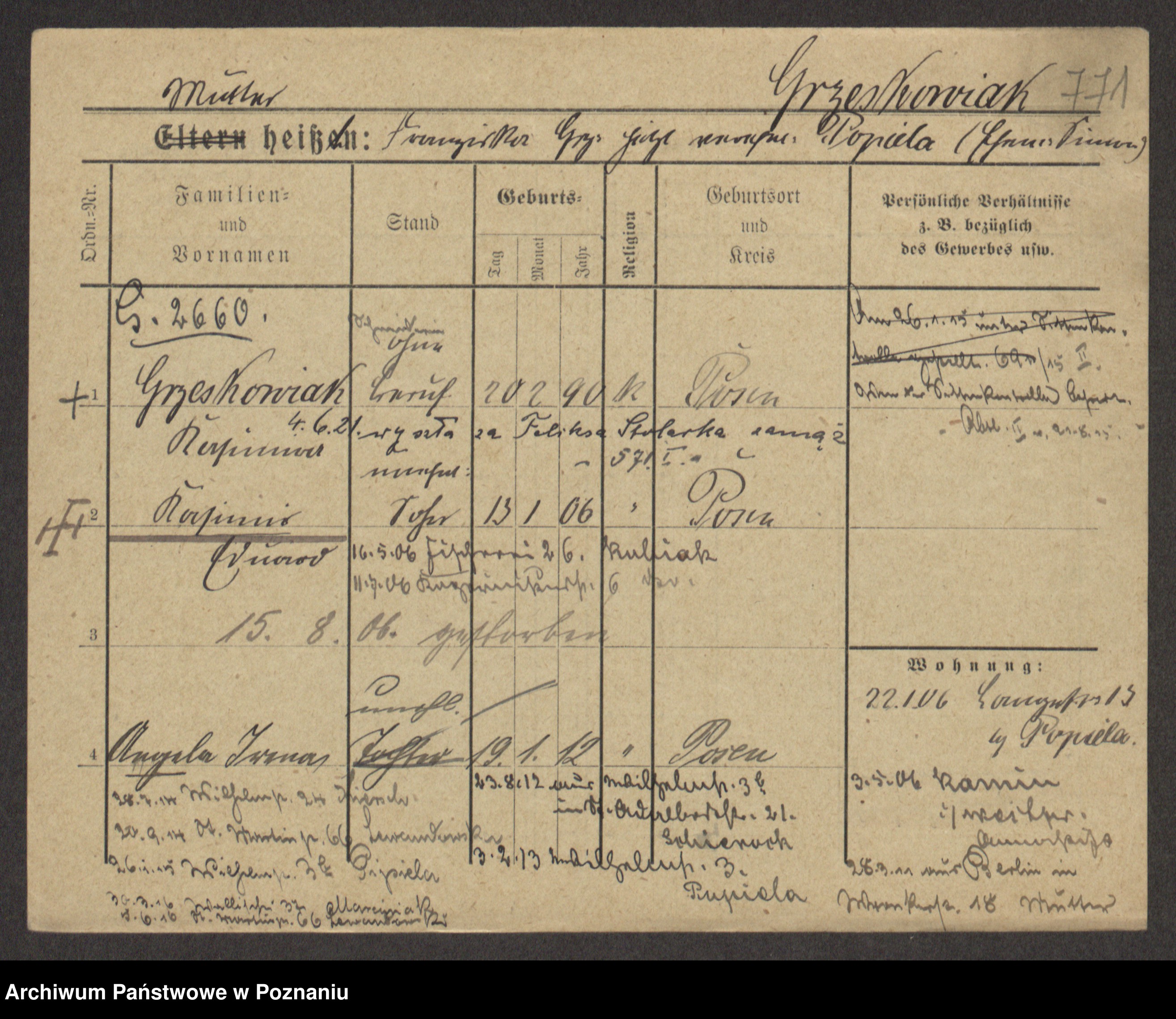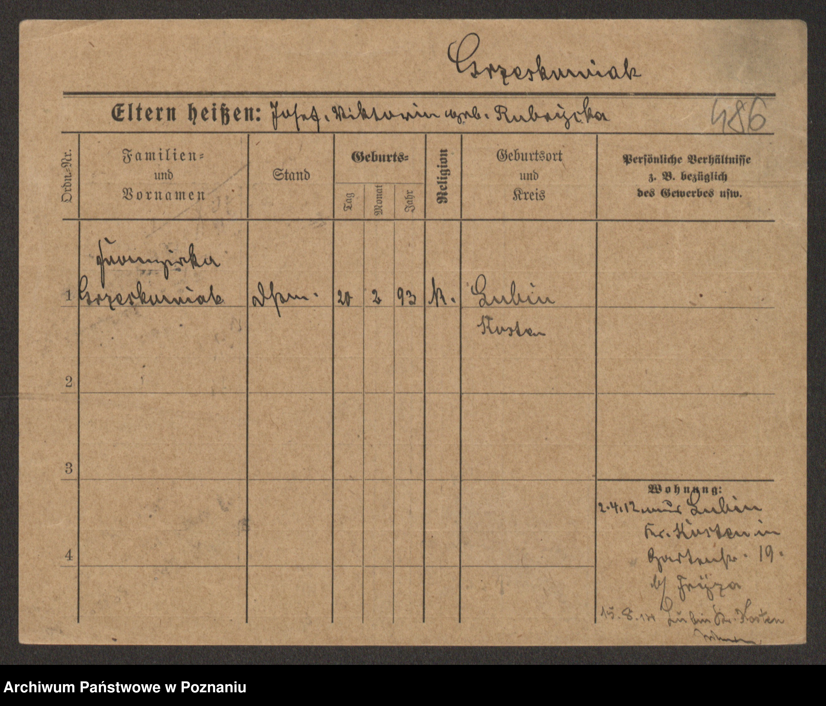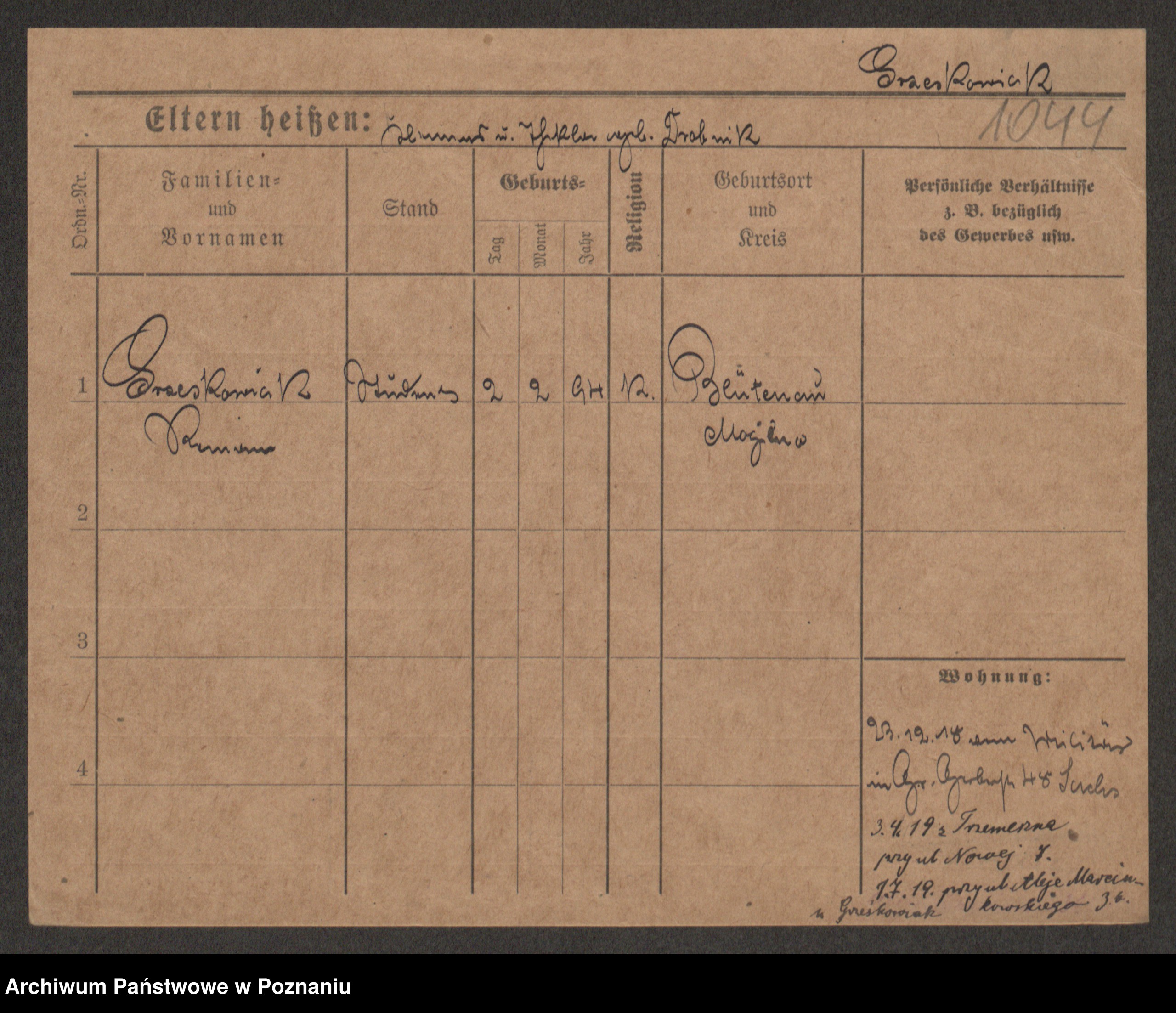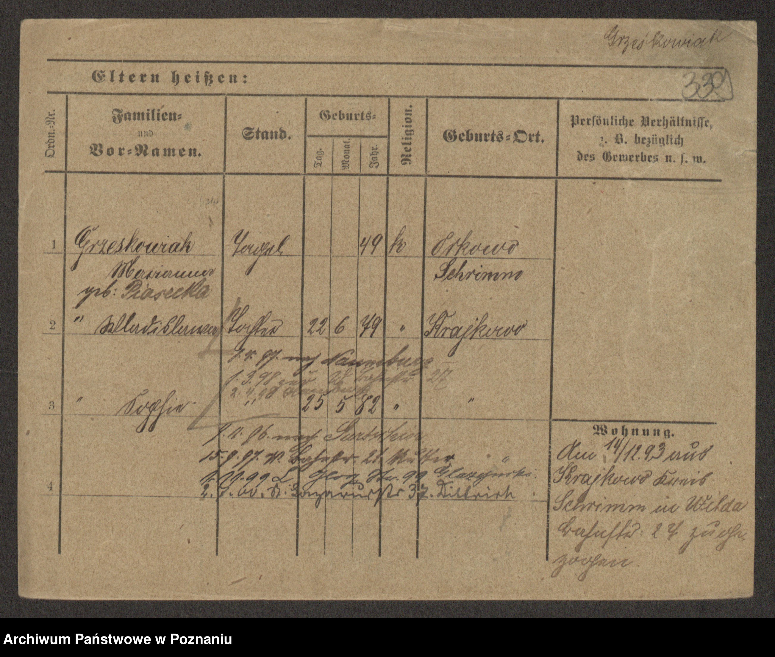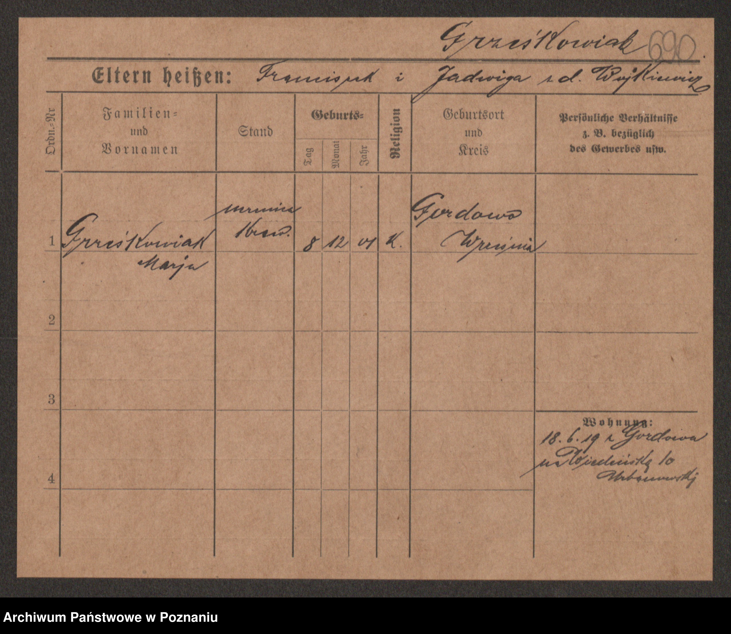 Grześkowiak z d.Wolinska I voto Bertrand, Wilhelmina