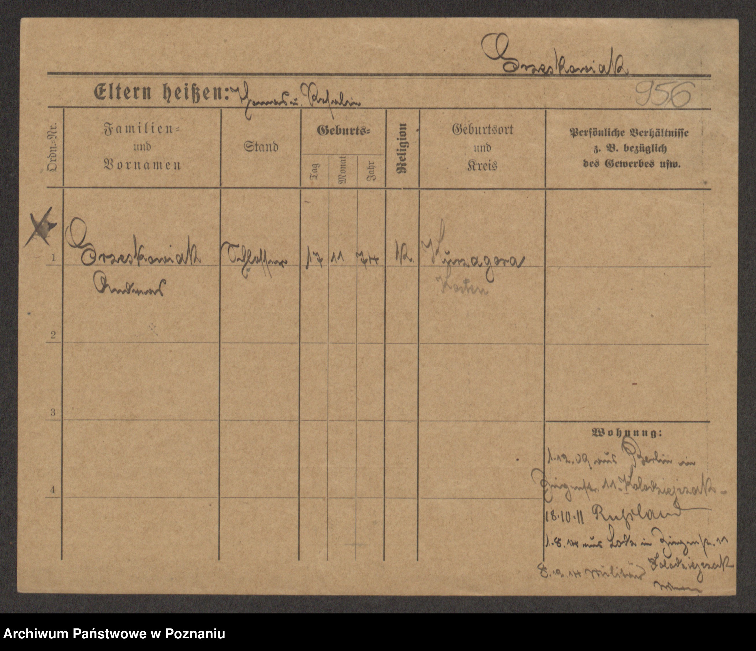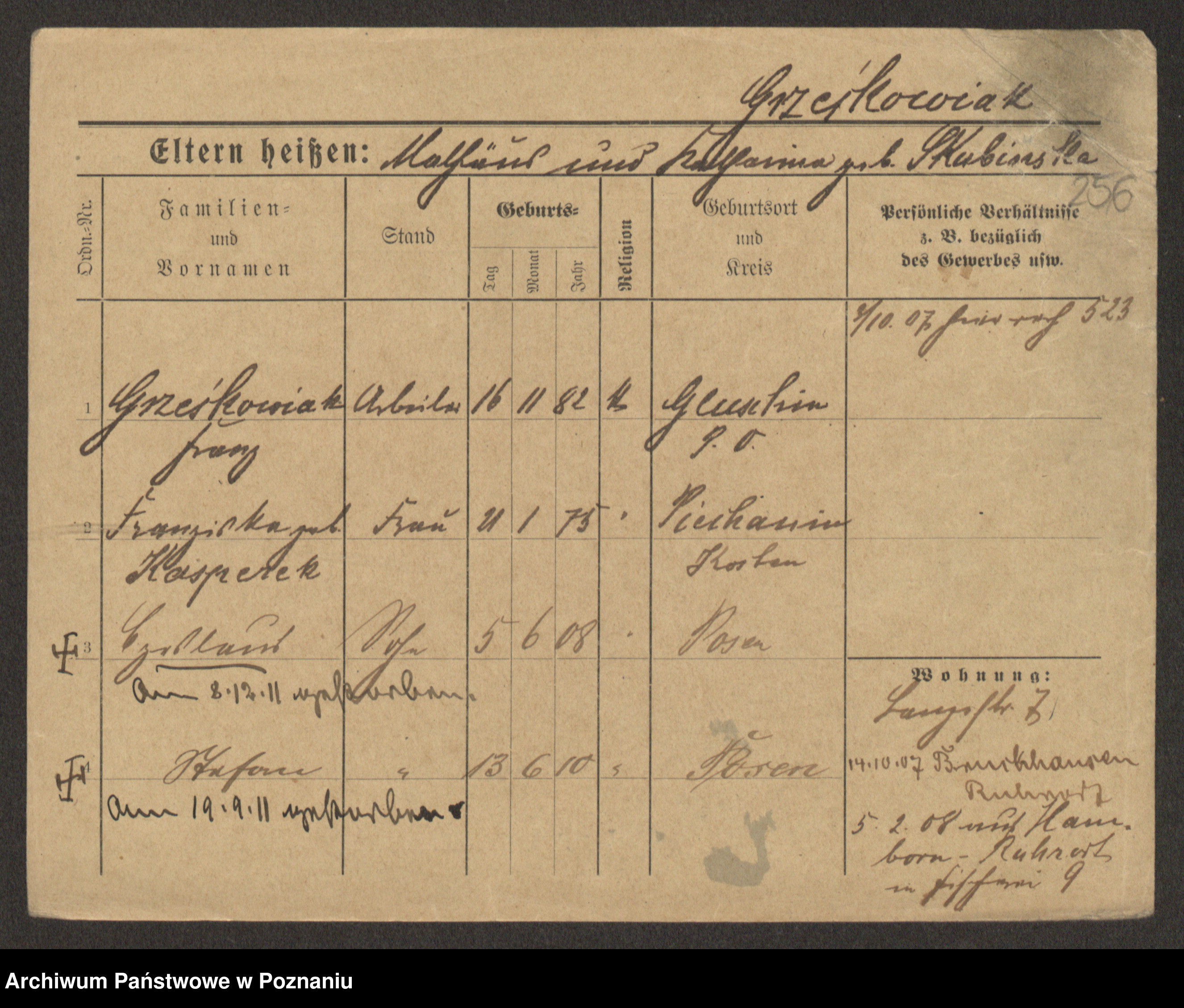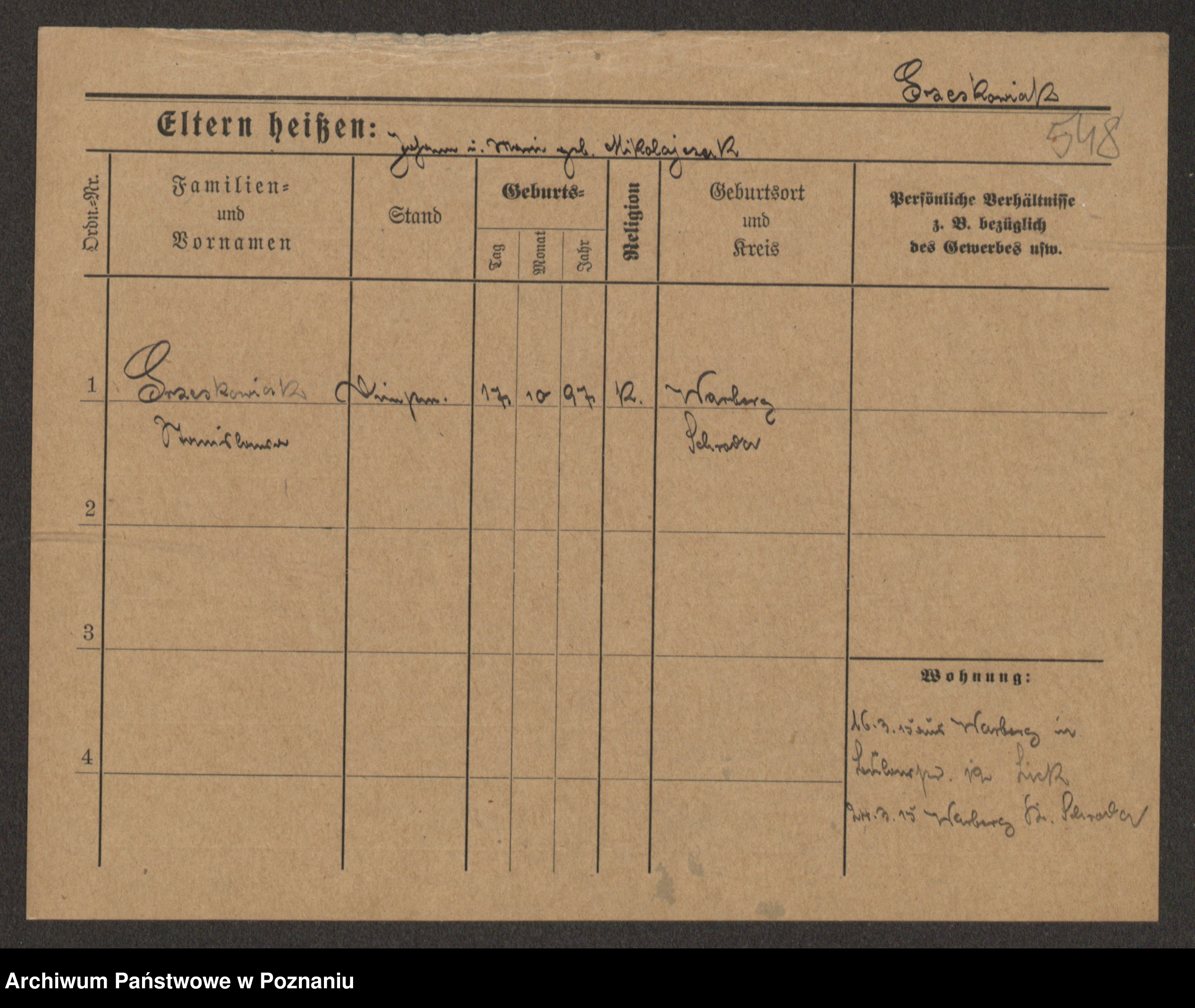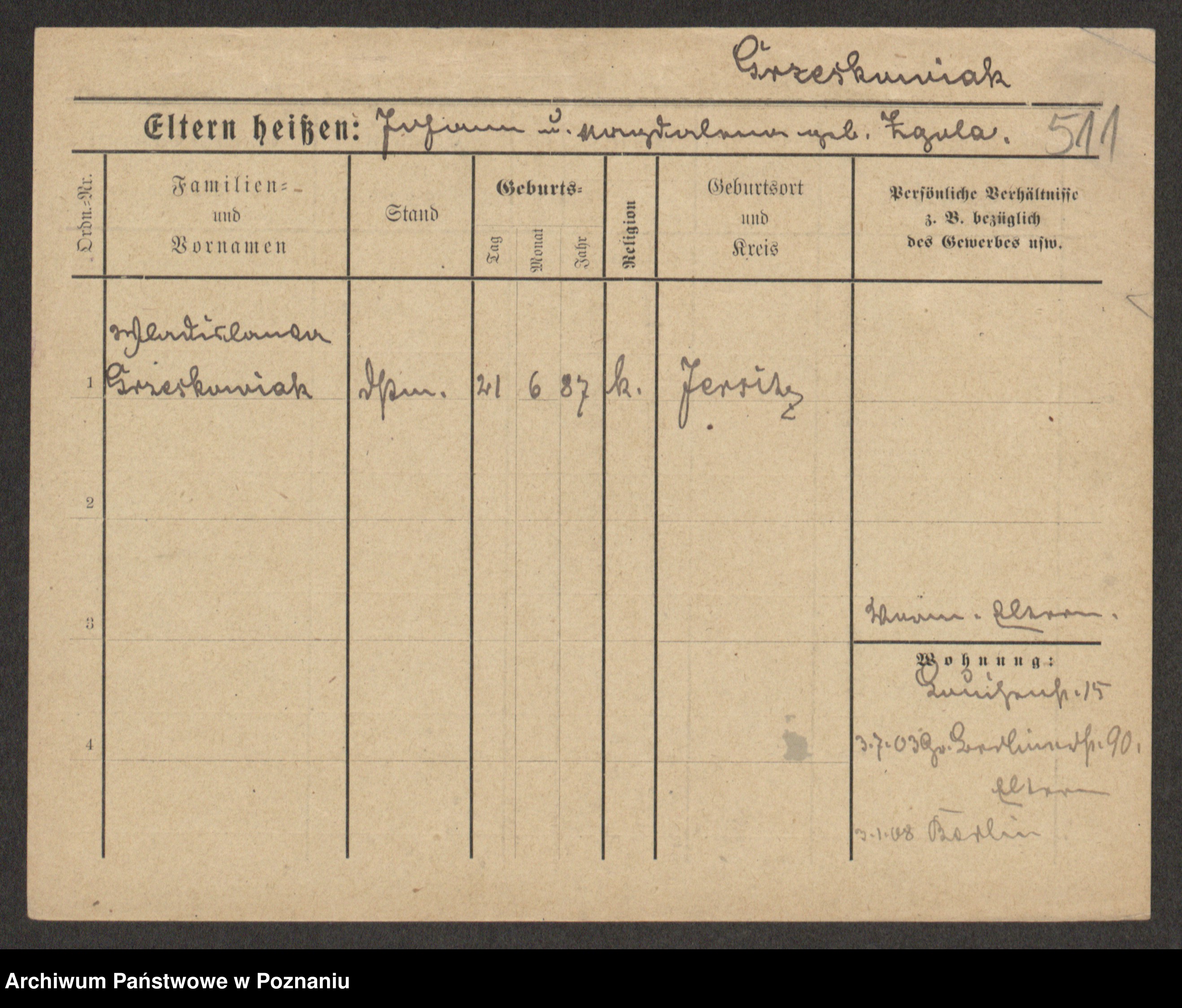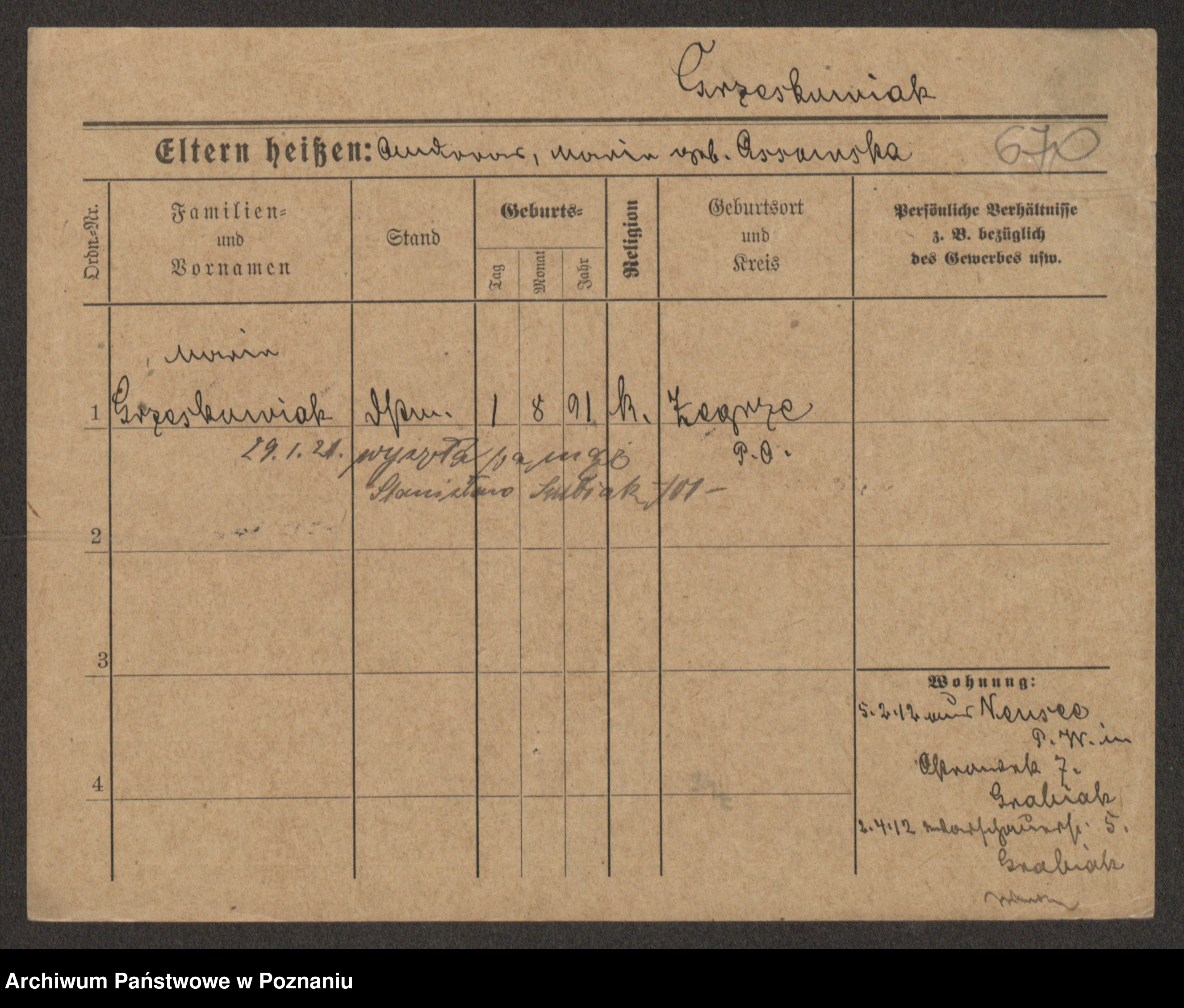 Grześkowiak z d.Wolinska I voto Bertrand, Wilhelmina